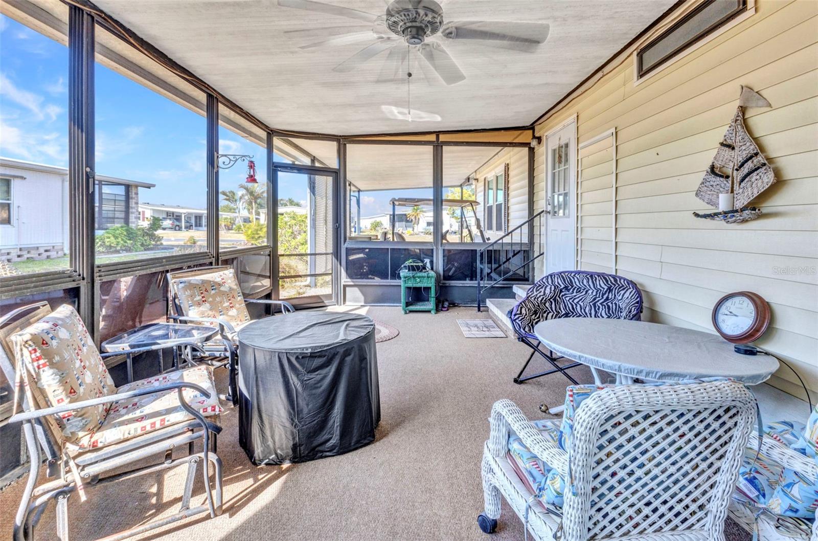 Welcome to this beautifully maintained and fully furnished 2-bedroom, 2-bath doublewide manufactured home, nestled in an active 55+ community just minutes from Manasota Key and Englewood Beach! Step inside to discover an open, airy layout with generous living and dining spaces, complemented by a well-appointed kitchen featuring warm wood cabinetry. French doors invite you into a BRAND NEW 2025 spacious 22' x 12' enclosed front lanai—perfect for morning coffee or relaxing evenings. Enjoy even more outdoor living with a second screened lanai, plus a separate workshop complete with utility sink for hobbies or storage. The expansive primary suite offers a peaceful retreat, boasting a walk-in closet, garden tub, and separate shower. Additional highlights include an air-conditioned laundry room, insulated windows, and a NEW fully fenced backyard—ideal for pets or gardening. Best of all, there’s no monthly HOA—you own the land! This pet-friendly, golf cart-friendly community offers fantastic amenities for just $350/year, including a clubhouse, pool, tennis courts, and more. Move right in—this home is being sold furnished and let's not forget the golf cart that is INCLUDED! Don’t miss your chance to enjoy affordable Florida living at its finest!