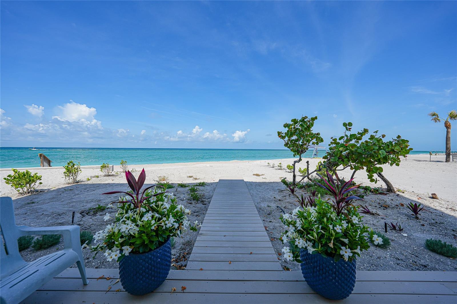 Welcome to Krystal Key Condominiums, an exclusive, gated enclave on the pristine shores of Manasota Key where luxury, privacy, and laid-back elegance converge. This exquisite 2-bedroom, 2.5-bath residence is a rare gem—offering all the sophistication of high-end coastal living while embracing the serenity of the Gulf Coast. This building made it through all storms practically un-scathed, like a local Fort Knox. Enter through your privately gated drive and enjoy the convenience of two assigned covered parking spaces tucked beneath the building—shielded from the elements and secured for peace of mind. A private elevator delivers you directly to a semi-private grand foyer, which can be key-locked for enhanced security and exclusivity. Step through double entry doors into a space designed to impress. The open-concept layout is enhanced by PGT impact-rated tilt-and-turn windows and sliders that bathe the home in natural light while offering effortless views of both the Gulf of America and Lemon Bay. Relax in the inviting living area anchored by a modern glass crystal fireplace—a shimmering statement of both warmth and sophistication. The chef-inspired kitchen is a culinary dream: featuring a massive quartzite island, Bosch stainless steel appliances (including induction range, warming drawer, and refrigerator), a Houzz apron-front sink, extensive cabinetry, and a custom-built pantry with pull-out drawers. Adjacent, a charming media/family room with built-in shelving provides the perfect space to unwind or entertain. Both bedroom suites are luxuriously appointed with walk-in closets and private baths. The primary suite boasts a spa-like experience, featuring dual vanities, a steam shower, and a deep soaking tub. Step onto either of the two expansive private balconies to enjoy partial Gulf views and the soothing sounds of the surf. The primary balcony also includes hurricane roll-down shutters for added protection and convenience. Additional features include: • Impact glass throughout • Custom chef’s desk with quartzite surface • Elegant finishes and designer touches in every room • Access to a saltwater community pool, heated spa, and outdoor grilling area • Keypad entry, security cameras, and guest parking • Just a short stroll to Stump Pass State Park, restaurants, and charming island boutiques Whether you're seeking a full-time residence or a seasonal escape, this home offers unmatched comfort, security, and coastal beauty. Live where others vacation. Showings by private appointment only.