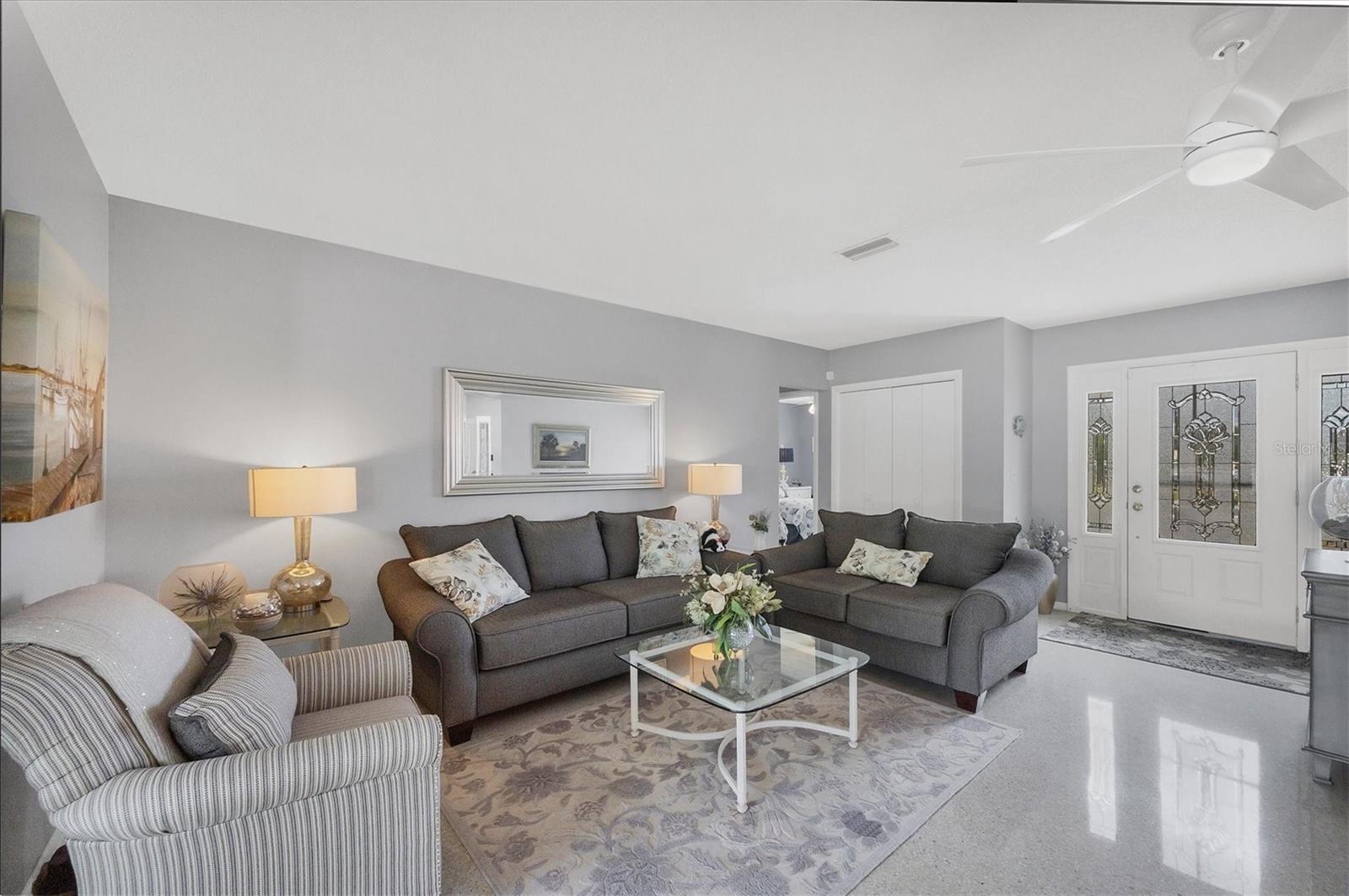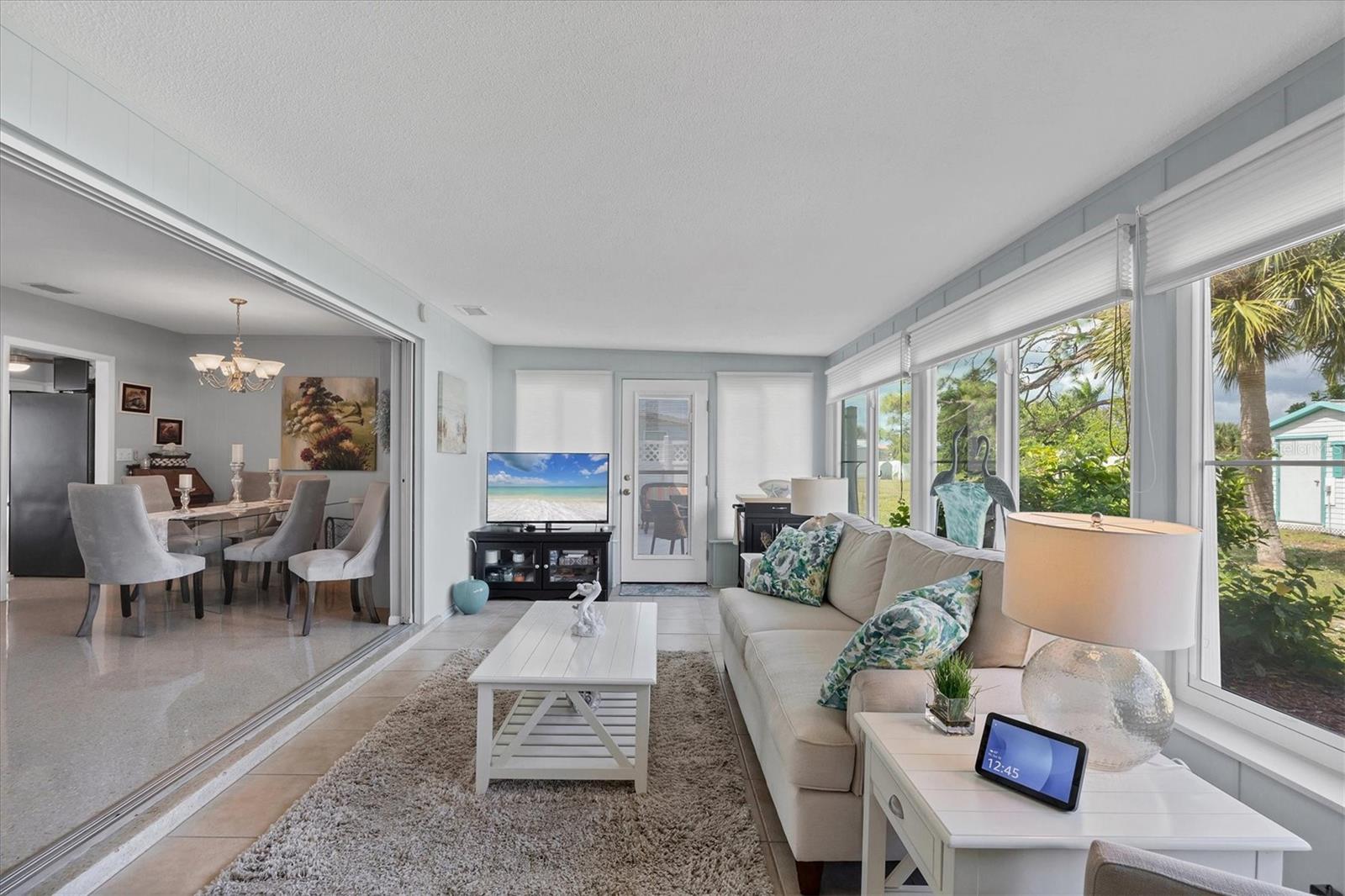 Come see this lovely furnished turnkey located 1.8 miles from Englewood beach. The home features two spacious bedrooms, two UPDATED bathrooms, UPDATED KITCHEN, one car garage and LARGE enclosed Florida Room. This property is a perfect second home, rental investment property; or make it your permanent residence! If you are looking for Florida living close to the BEACHES, this home is for you! The kitchen and bathrooms have been beautifully updated and the Terrazzo flooring has been perfectly preserved and maintained throughout the majority of the home, complimented with superbly matching ceramic tile in the Florida room which gives this home a cohesive flow and provides cozy comfort. The dining room boasts a built-in cabinet and shelf for easy entertaining and storage. NO HOA! NO CDD! Recent updates include a new roof (2023), newer HVAC (2019) and electric panel (2021). IMPACT WINDOWS for peace of mind and energy savings. Bring your clothes and yourself (beach chairs are already included!) and enjoy the beautiful Florida weather with plenty of outdoor activities. Turnkey furnished - you can move right in! Property includes deeded boat lot on Godfrey Creek with access to Lemon Bay and the Gulf.