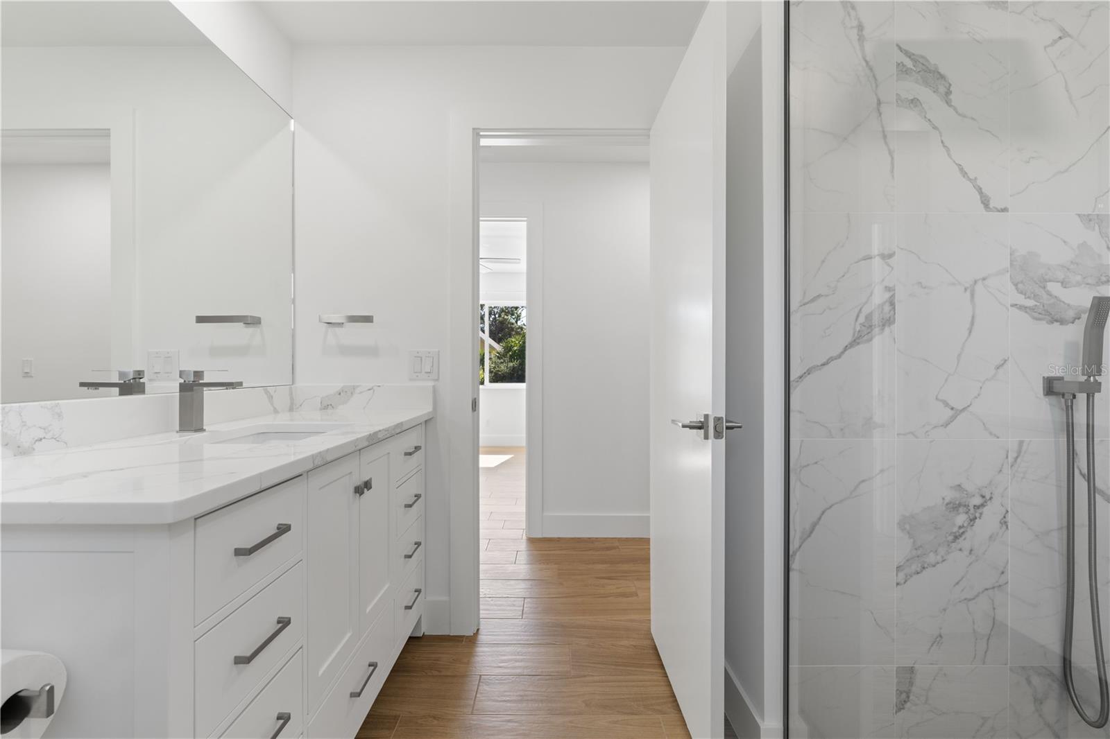 FULLY UPDATED ONE-ACRE MODERN COASTAL HOME NEAR MANASOTA BEACH - Set on a full acre in the heart of Englewood, this completely renovated 3 BED/2 BATH home pairs crisp coastal design with modern functionality—all just over a mile from the Manasota Key Beach. With the whole home updated, it’s ready to enjoy from day one. Whether you’re seeking a primary home with room to breathe, a seasonal escape, or an income-generating short-term rental, this property delivers flexibility and long-term value. A bright, open layout welcomes you inside, where vaulted ceilings and natural light create an airy sense of space. The brand-new kitchen is a showstopper featuring KraftMaid cabinetry, Carrara quartz waterfall countertops, artisan tile backsplash, and a full suite of stainless-steel smart appliances. The adjacent dining area features complimentary built-in cabinetry. Great room and dining area flow effortlessly together. Both bathrooms have been beautifully redone with frameless glass showers w/floor to ceiling tile, luxury vanities, and Carrara quartz counters. Split bedroom layout boasts large bedrooms. The bonus room is suitable for use as a 3rd bedroom, an office, studio, or exercise room. Wood-look, plank tile runs throughout the home, adding warmth and continuity. Peace of mind is provided by the 13ft structural elevation and superior HURRICANE PROTECTION with ALL NEW IMPACT-RESISTANT doors & windows installed in 2024. Home has county water & sewer plus on-site well for irrigation. Additional upgrades include a 2019 roof, NEW window blinds, all new ceiling fans, fresh interior & exterior paint, custom closets w/built-ins, NEW 3-ton, variable speed Goodman HVAC system. A 15x25 standalone shed with electric is perfect as a workshop or as storage for your toys and gear. With just over an acre of Residential Estate–zoned land, there’s room to expand—add a pool or even build a larger home & use current residence as a guest house/in-law suite or studio. Property has been cleared and new landscaping installed giving it great curb appeal. The setting is private yet conveniently close to Englewood’s dining, boutiques, and beach access points. PROPERTY HIGHLIGHTS: 3 Bedrooms | 2 Bathrooms | 1,532 SF under air | 1.01-Acre Lot | Roof 2019 | Impact Windows 2024 | HVAC 2025 - Enjoy the space, serenity, and style of this beautifully finished Englewood home—just minutes from the Gulf. Make an appointment today.