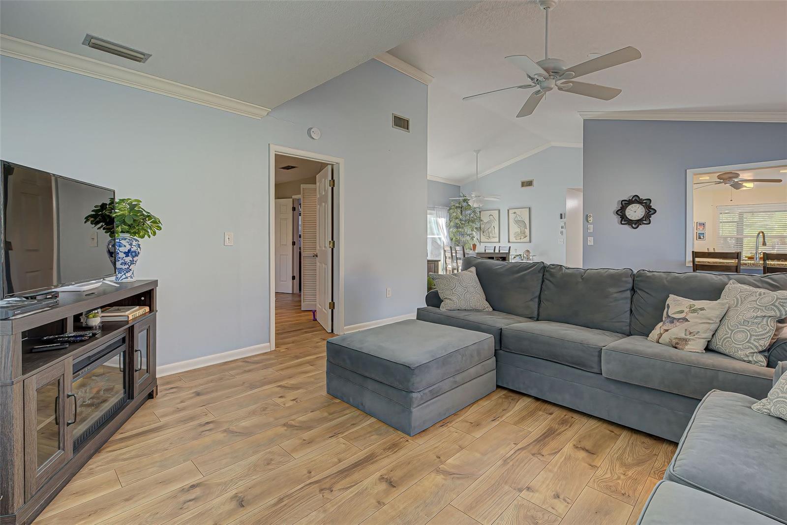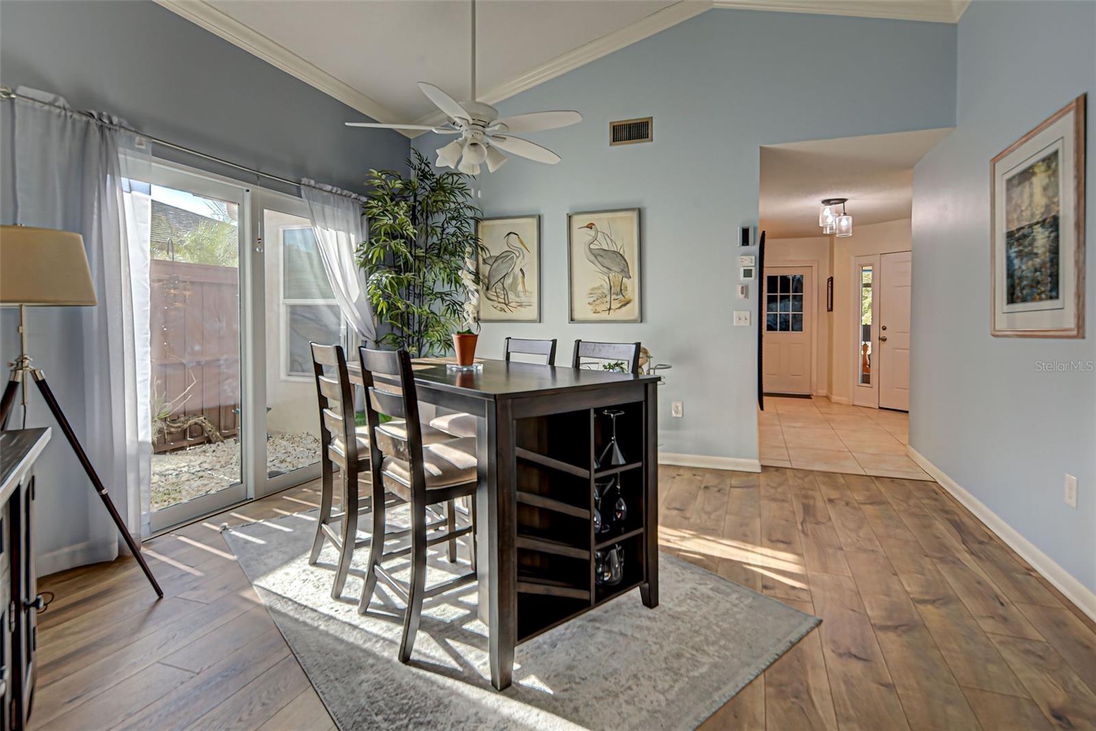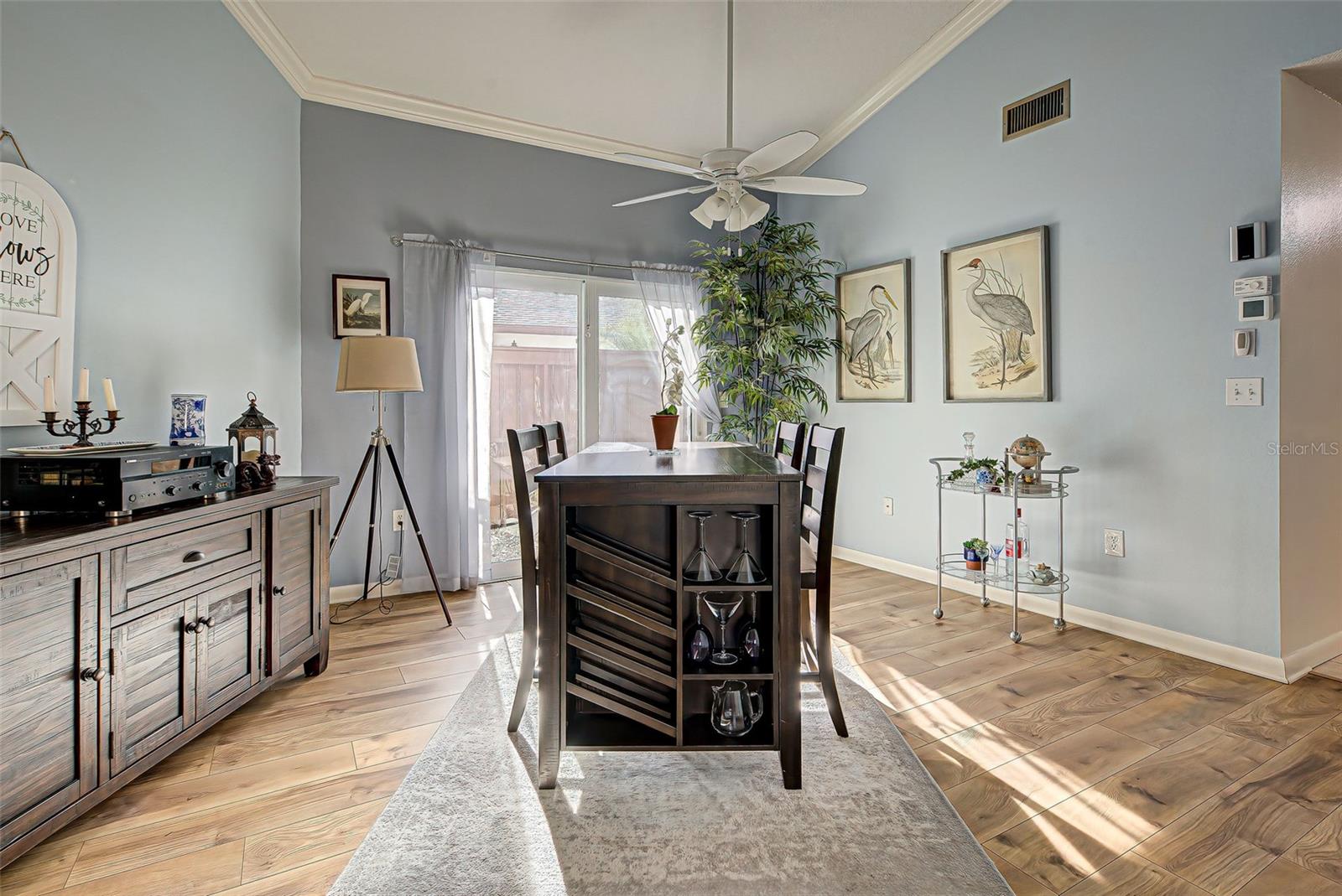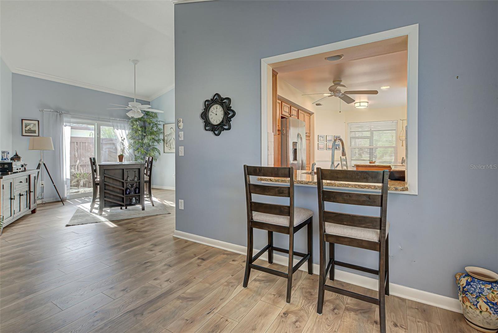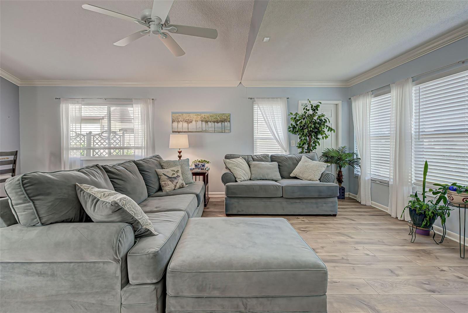 SINGLE FAMILY HOME - STAND ALONE - PRIVATE - SPLIT PLAN - TWO CAR GARAGE - UPDATED AND BEAUTIFUL INSIDE - READY FOR OCCUPANCY- DIRECTLY ACROSS FROM THE LAKE AND CLUBHOUSE FACILITIES. Come take a look at this super nice home. First thing walking in you have a screened in lanai that gives you 170 square feet of covered area to enjoy your morning coffee as you look over to the lake - no houses in your view! Newer updates, Kitchen has all stainless appliances, Debut Cabinetry with slide outs and custom pantry with drawers, all countertops are granite. Side entry to kitchen takes you outdoors to a 16x8 concrete pad for convenient grilling space and room for table and chairs. Flooring is larger neutral color tiles and wood grain laminate throughout. The large primary bedroom has its own attached ensuite with a custom tiled walk-in shower. Living room is bright and airy with vaulted ceilings and open feel. The dining area has a view of the garden/ spa area. Open the sliders to bring this outdoor privacy space into your home. All windows are impact glass, Full size 2 car garage with built in cabinets, workspace and impact rated overhead door. NEW ROOF - NEW HOT WATER HEATER - AC IS 5 YEARS. Check out this wonderful home in a friendly and active community. COME DISCOVER THIS LOVELY HOME - CALL FOR YOUR SHOWING APPOINTMENT TODAY!!