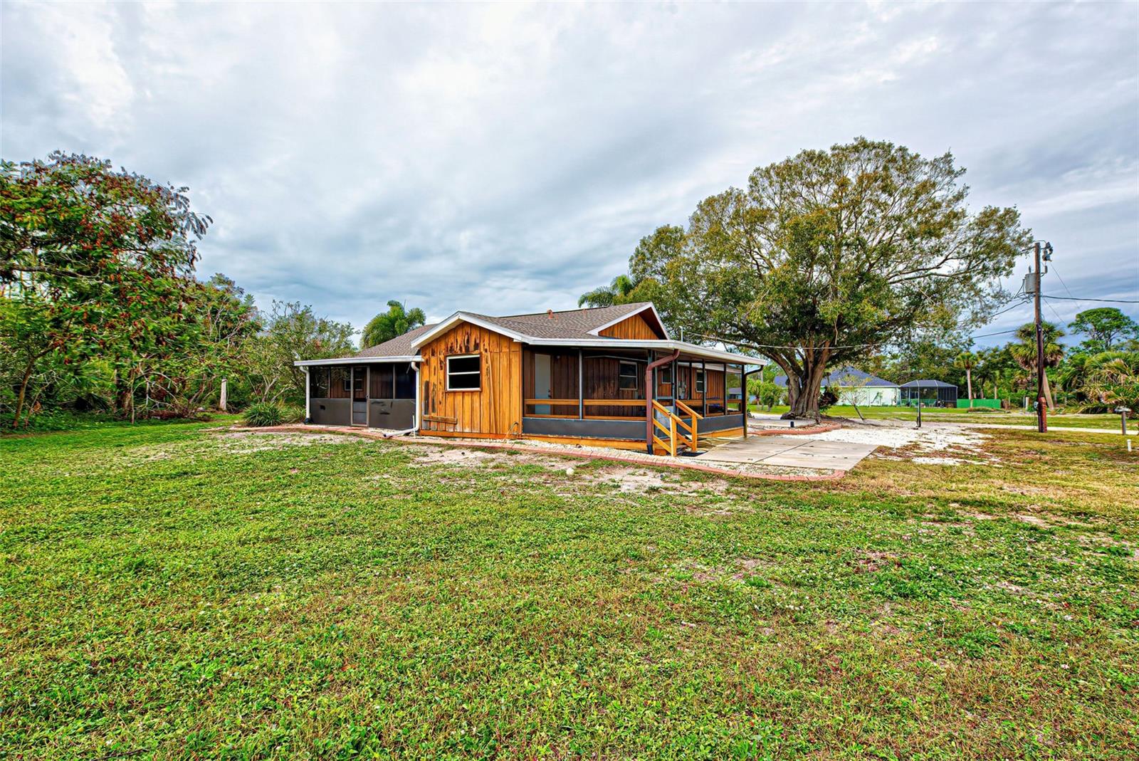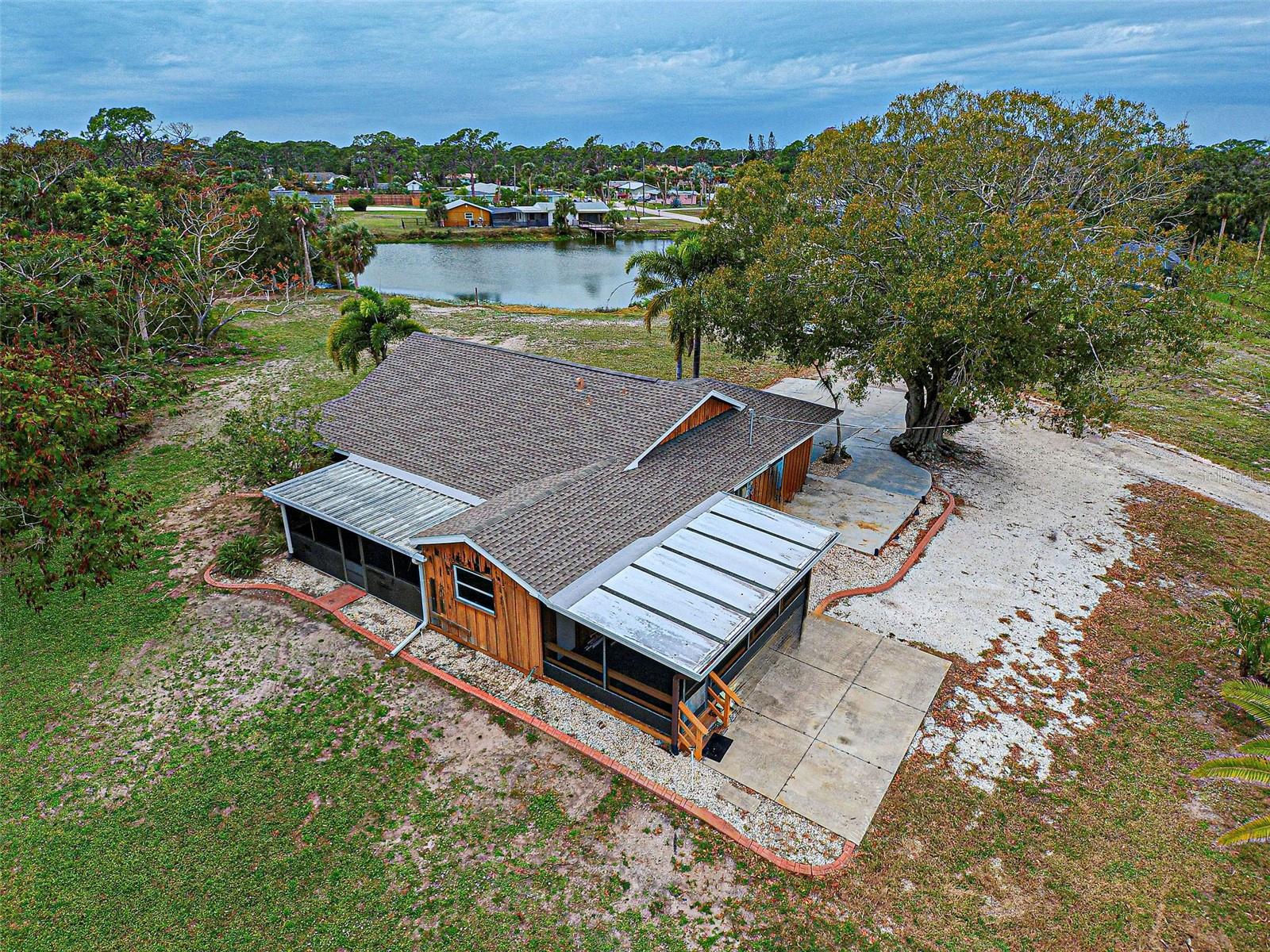 TOTAL PRICE IS FOR TWO SEPERATE PARCELS! COMBINE AND BUILD YOUR DREAM ESTATE HERE ON ACERAGE WITH POND VIEW! LOCATION-LOCATION -LOCATION - BEAUTIFUL SETTING WITH TRANQUIL WATERFRONT (POND) VIEW. THIS HOME HAS TWO SEPARATE LOTS- DEAD END STREET - PRIVATE SETTING- AND LOCATED IN THE VERY DESIREABLE SECTION OF "OLD ENGLEWOOD" IN SARASOTA COUNTY, ENGLEWOOD, FLORIDA. THERE ARE TWO PARCELS INCLUDED IN THIS SALE!! SEPARATE PARCEL ID'S. THIS ONE-OF-A-KIND PROPERTY IS AVAILABLE FOR SOMEONE WITH VISION AND THE DESIRE TO OBTAIN HARD TO FIND LAND, ALMOST 2 ACRES ALL TOGETHER. HOME HAS A NEW ROOF AND UPDATED ELECTRICAL PANEL- PERMITED AND CLOSED. If you have been seeking that "special" piece of property in OLD ENGLEWOOD - LOOK NO FURTHER. SO MANY POSSIBILITIES HERE. RENT OUT THE EXISTING HOUSE AND BUILD NEW CONSTRUCTION ON THE ADDITIONAL LOT. CREATE YOUR OWN FAMILY ESTATE. ROOM FOR OUTBUILDINGS, HUGE AREA FOR HOME GARDENING OR FOOD FOREST. LIVE IN THE EXISTING HOUSE UNTIL READY TO BULID THAT CUSTOM HOME!! THESE PROERTIES ARE LOCATED JUST A FEW MILES TO MANASOTA KEY AND PUBLIC BEACHES. 1.3 MILES TO EXCITING DEARBORN STREET- WHERE ALL THE ACTION IS WITH WEEKLY (SEASONAL) FARMERS MARKET, CAR SHOWS, LIVE OUTDOOR MUSIC, SEVERAL RESTAURANTS, GREAT SELECTION OF SHOPS FROM CLOTHING TO HOME GOODS, ART GALLERIES, BARS, AND MORE! RIDE, WALK, OR BIKE TO MANY WATERFRONT PARKS. THIS IS A PRIMO LOCATION OFFERING A UNIQUE OPPRTUNITY AND LIFESTYLE. YOU MUST SEE - CALL FOR A PRIVATE SHOWING TODAY!! Flood Quote from Brightway Insurance available ( $1051.00 - annual policy) Extremely reasonable flood insurance available for this property!! UPDTAE: SOME SLIGHT CEILING DAMAGE FROM RAIN/ WIND DURING MILTON - NO FLOOD WATER INTRUSION.