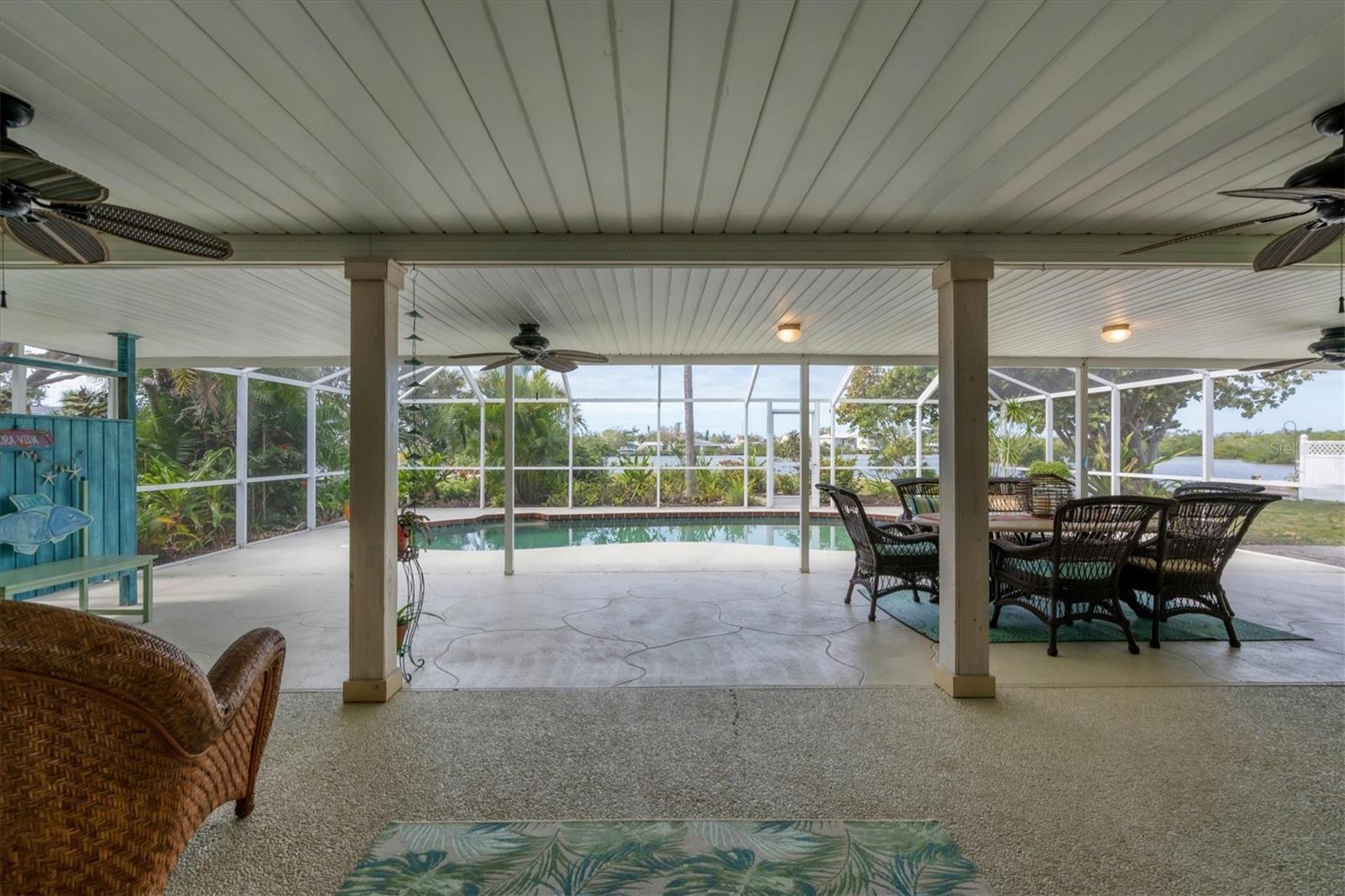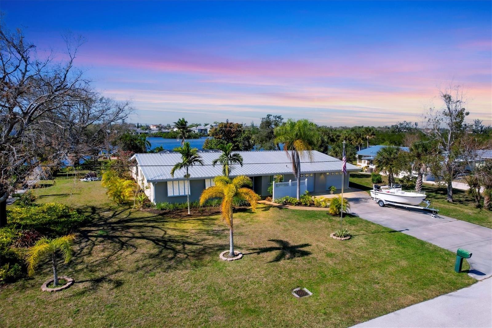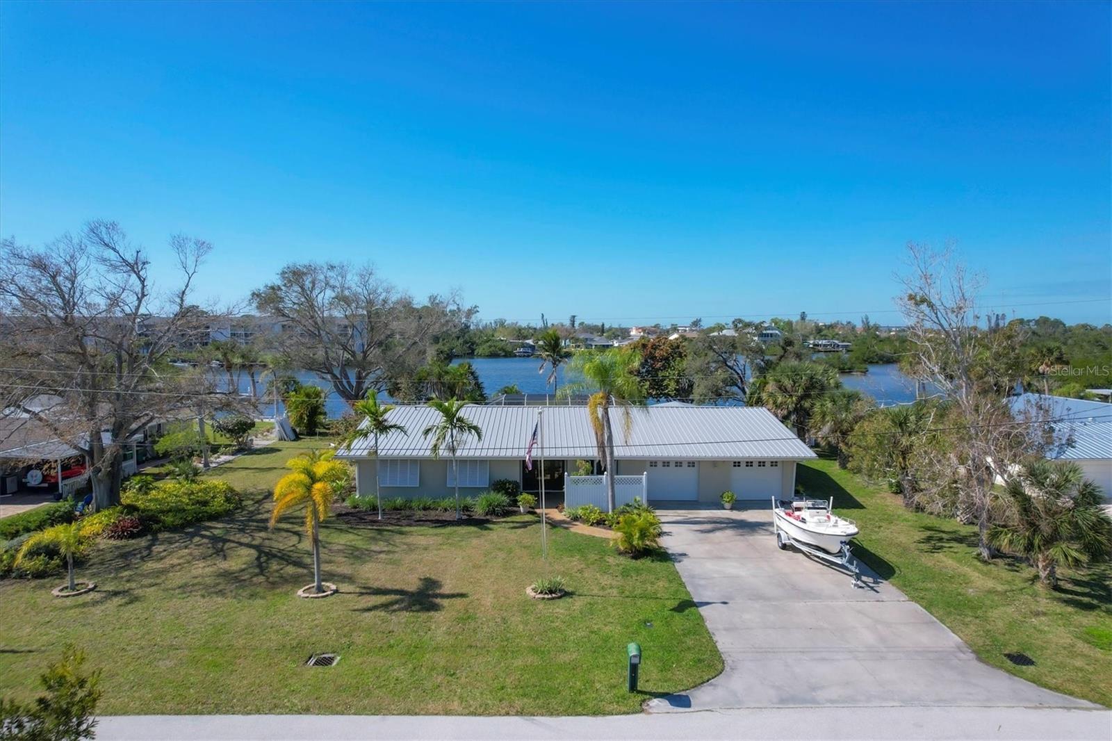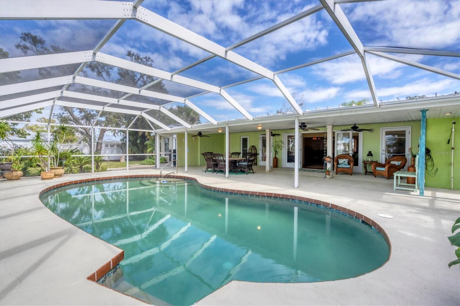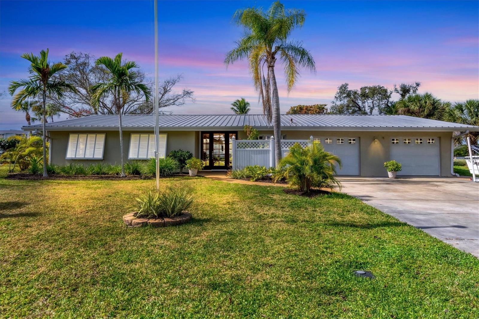 May your journey always lead you home to a place of sustenance, invitation, and welcome. Nestled on a quiet street along the shores of Gottfried Creek, just that place, your 'paradise found,' awaits. This home evokes a sense of nostalgia in all who enter with its undeniable 'Old Florida' Key West-inspired charm. Open the door to this inviting residence, and you will be instantly drawn to its bucolic setting and the breathtaking water view out back, where the surrounding waters of Gottfried Creek are dotted with numerous mangroves, the magical forests rife with nature's secrets that straddle the connection between land, sea, and humans. From your backyard, you might observe a manatee and her babies basking in the sun's warmth in shallow waters. The home's interior is open, and flows, yet traditional structural bones give each room its distinct identity. French doors highlight the main living area and open to the lanai, gracefully integrating the indoor and outdoor living areas and showcasing a heated pool with pastoral views of Gottfried Creek and a highly coveted Western exposure as a backdrop. The large lanai allows room for conversation-friendly seating arrangements that encourage guests to slow down, engage in lively conversation, or enjoy a 5:00 cheeseboard before a romantic al fresco dinner--the choice is yours. The kitchen is just off the main living area and offers abundant cabinetry, granite countertops, a dinette, and stainless steel appliances. The resident hobbyist will surely appreciate the home's oversized garage with a spacious adjacent laundry room. The primary bedroom offers an ensuite bath with a step-in (Roman) tub/shower and dual sinks. A flex room, the 'pink' room, adjoins the primary bedroom via French doors and is currently in use as additional sleeping quarters; however, this room could be utilized as a den or a home office if desired. Bedrooms two and three share a bath outfitted with a tub/shower combination highlighted with whimsical tile, sure to bring a smile to the faces of all who enter. Ceramic tile flooring is found throughout the home and helps keep everything neat. Other notable amenities include a metal roof, an updated AC (2 years), a newer hot water heater (2 years), a concrete seawall, a beautiful brick patio overlooking the creek, an outdoor shower, and abundant storage throughout the home. It is a short boat ride from here with one bridge to the ICW and the Gulf of Mexico, and the home's rear Western exposure provides spectacular sunset views nightly. This home pays homage to Englewood's humble beginnings when life was simpler--the kind of place where you don't want to leave once you sit down. For generations, it has been a cozy, tranquil gathering place for family and friends where treasured, happy memories have been made. Nearby Dearborn Street, in Englewood, offers various unique shops, excellent eateries, and a lovely outdoor amphitheater. Residents and guests regularly delight in the fresh produce and unique offerings at the ever-expanding farmer's markets. The pristine beaches on Manasota Key are within a short drive. This home is the perfect setting for creating your very own picture-perfect memories. Take advantage of the opportunity to bask in the tranquil magic offered when bathed in the color of the sun's setting right in your backyard. Call today to schedule a private showing, and prepare to be captivated by this truly exceptional, laid-back waterfront Florida lifestyle.