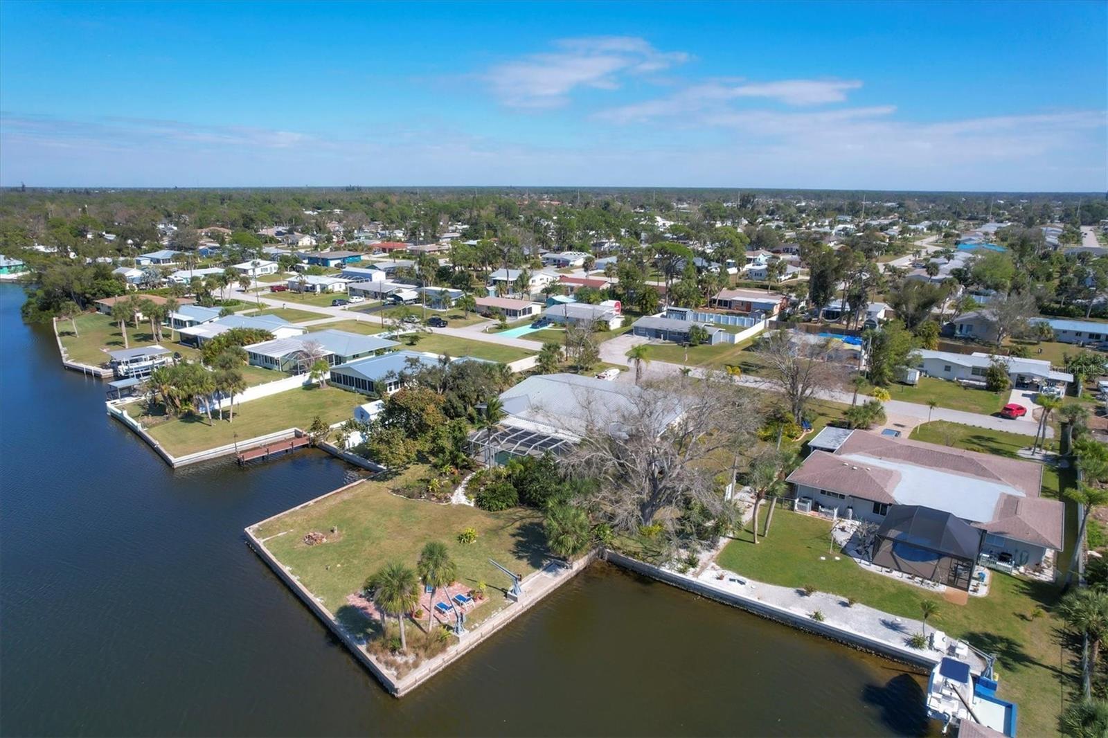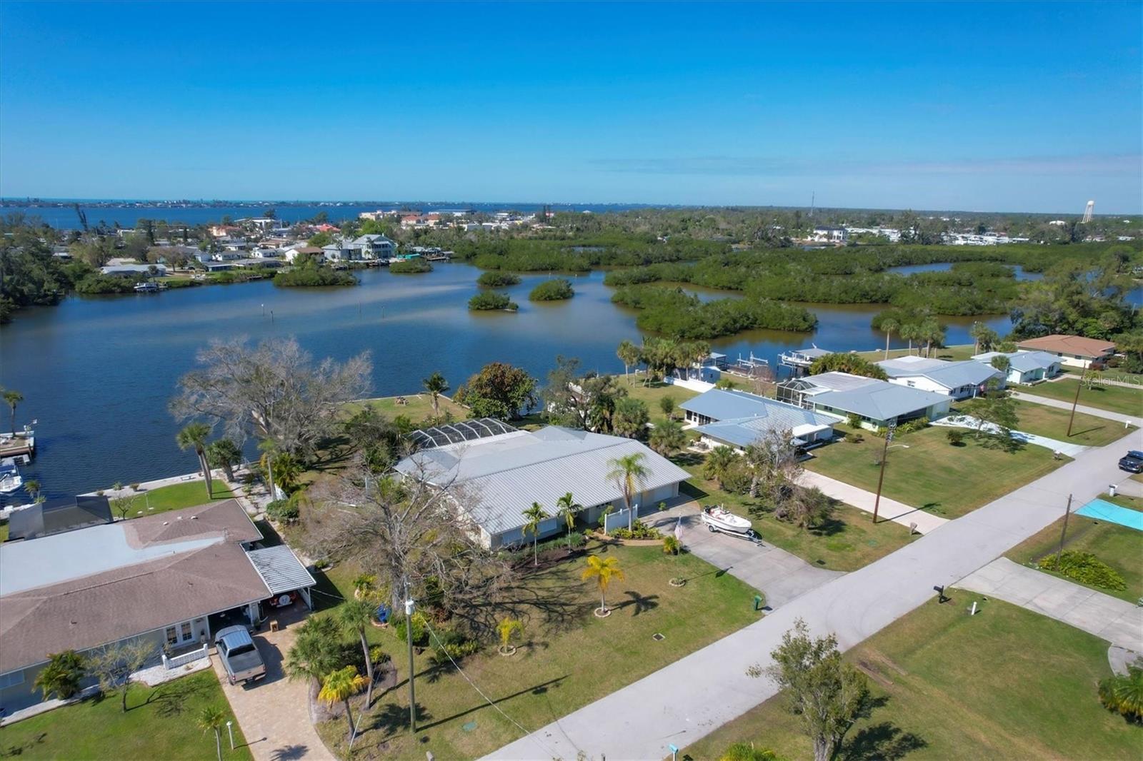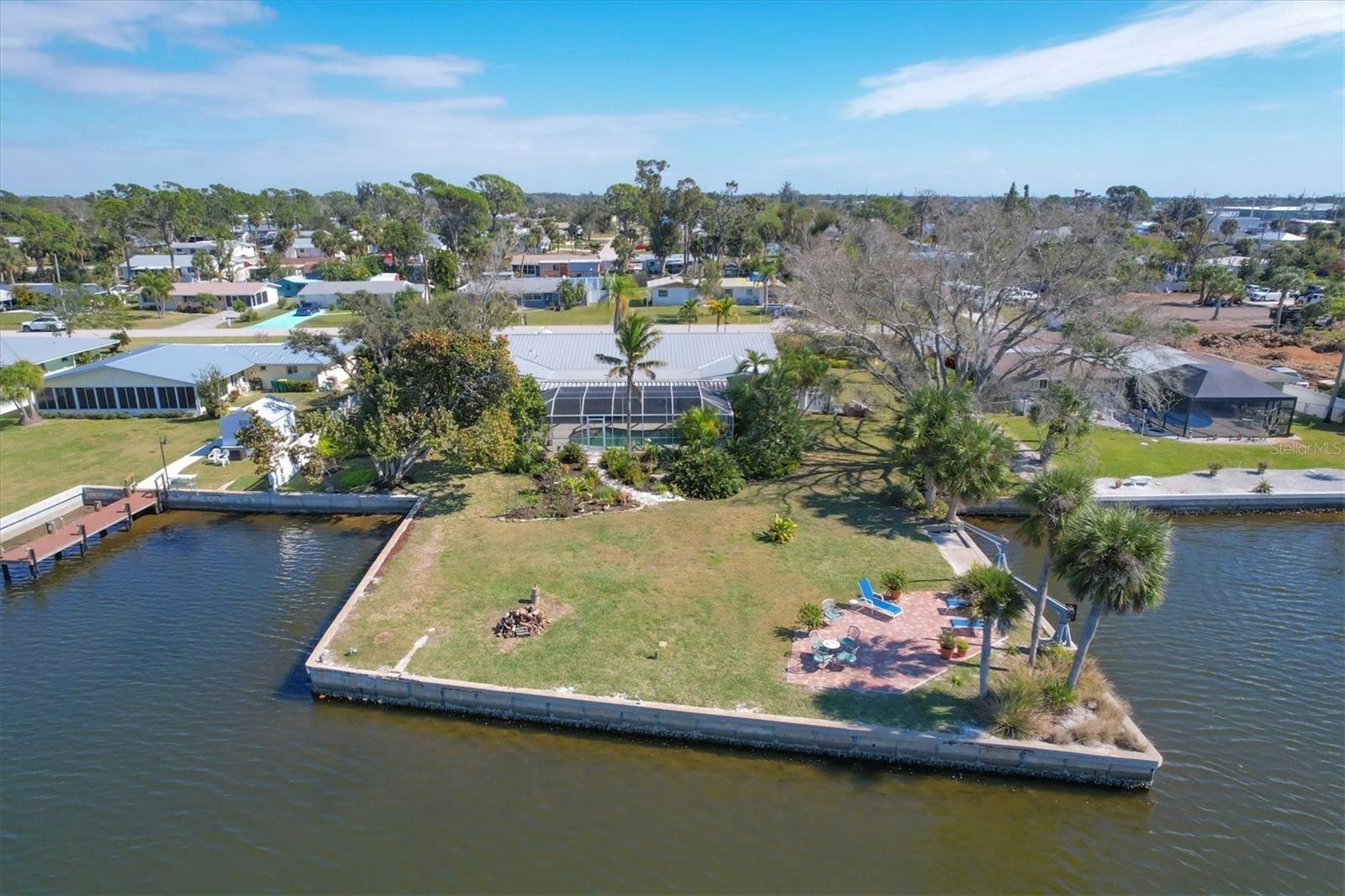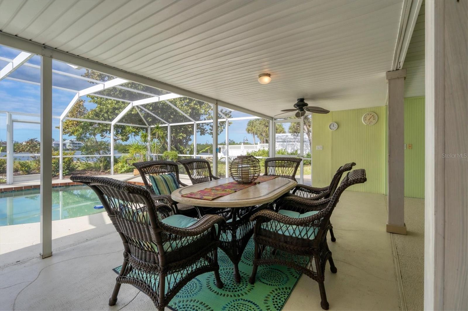 May your journey always lead you home to a place of sustenance, invitation, and welcome. Nestled on a quiet street along the shores of Gottfried Creek, just that place, your 'paradise found,' awaits. This home evokes a sense of nostalgia in all who enter with its undeniable 'Old Florida' Key West-inspired charm. Open the door to this inviting residence, and you will be instantly drawn to its bucolic setting and the breathtaking water view out back, where the surrounding waters of Gottfried Creek are dotted with numerous mangroves, the magical forests rife with nature's secrets that straddle the connection between land, sea, and humans. From your backyard, you might observe a manatee and her babies basking in the sun's warmth in shallow waters. The home's interior is open, and flows, yet traditional structural bones give each room its distinct identity. French doors highlight the main living area and open to the lanai, gracefully integrating the indoor and outdoor living areas and showcasing a heated pool with pastoral views of Gottfried Creek and a highly coveted Western exposure as a backdrop. The large lanai allows room for conversation-friendly seating arrangements that encourage guests to slow down, engage in lively conversation, or enjoy a 5:00 cheeseboard before a romantic al fresco dinner--the choice is yours. The kitchen is just off the main living area and offers abundant cabinetry, granite countertops, a dinette, and stainless steel appliances. The resident hobbyist will surely appreciate the home's oversized garage with a spacious adjacent laundry room. The primary bedroom offers an ensuite bath with a step-in (Roman) tub/shower and dual sinks. A flex room, the 'pink' room, adjoins the primary bedroom via French doors and is currently in use as additional sleeping quarters; however, this room could be utilized as a den or a home office if desired. Bedrooms two and three share a bath outfitted with a tub/shower combination highlighted with whimsical tile, sure to bring a smile to the faces of all who enter. Ceramic tile flooring is found throughout the home and helps keep everything neat. Other notable amenities include a metal roof, an updated AC (2 years), a newer hot water heater (2 years), a concrete seawall, a beautiful brick patio overlooking the creek, an outdoor shower, and abundant storage throughout the home. It is a short boat ride from here with one bridge to the ICW and the Gulf of Mexico, and the home's rear Western exposure provides spectacular sunset views nightly. This home pays homage to Englewood's humble beginnings when life was simpler--the kind of place where you don't want to leave once you sit down. For generations, it has been a cozy, tranquil gathering place for family and friends where treasured, happy memories have been made. Nearby Dearborn Street, in Englewood, offers various unique shops, excellent eateries, and a lovely outdoor amphitheater. Residents and guests regularly delight in the fresh produce and unique offerings at the ever-expanding farmer's markets. The pristine beaches on Manasota Key are within a short drive. This home is the perfect setting for creating your very own picture-perfect memories. Take advantage of the opportunity to bask in the tranquil magic offered when bathed in the color of the sun's setting right in your backyard. Call today to schedule a private showing, and prepare to be captivated by this truly exceptional, laid-back waterfront Florida lifestyle.