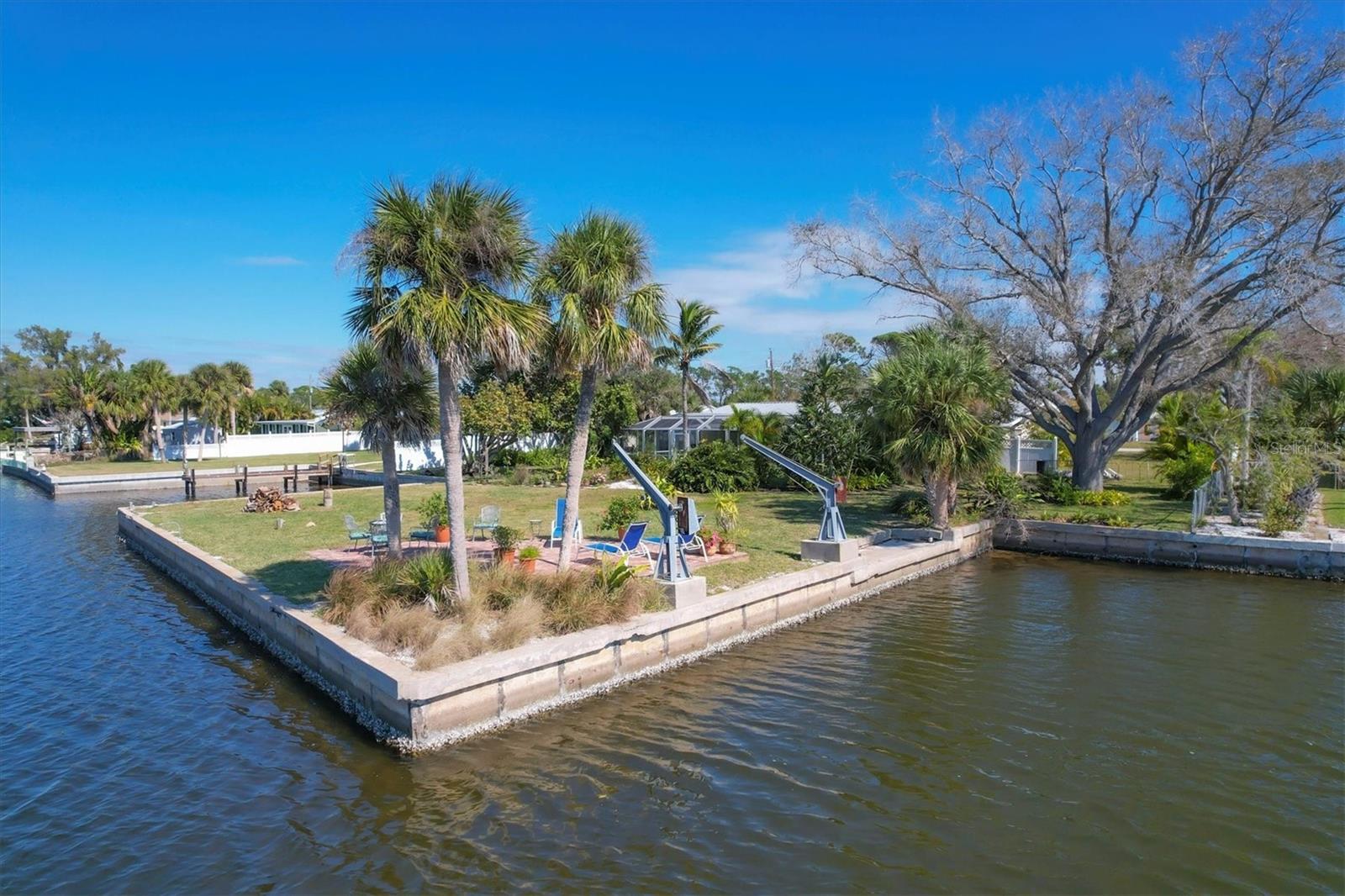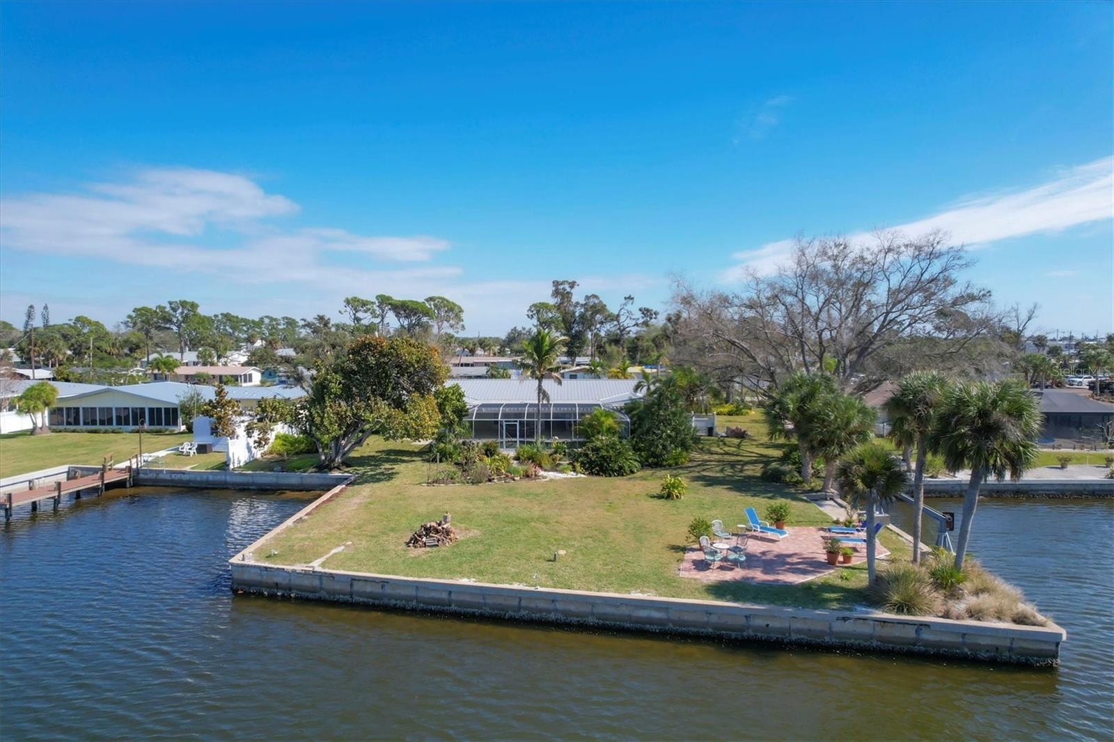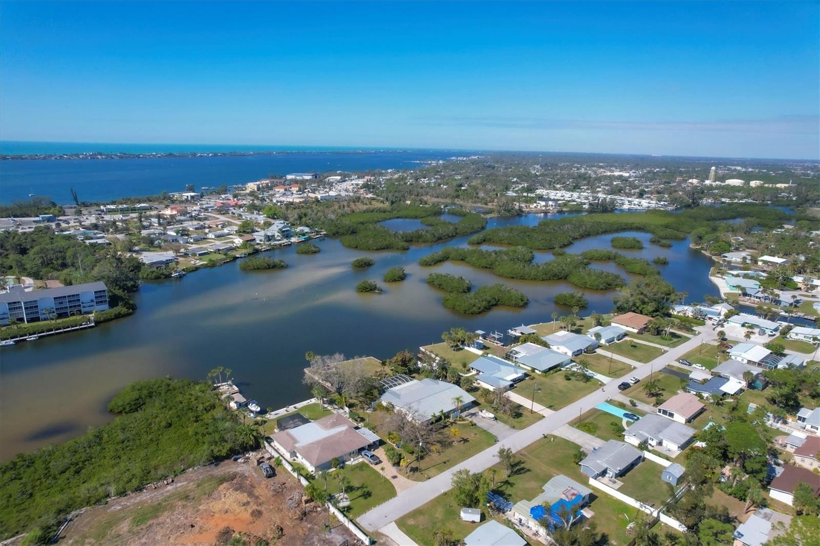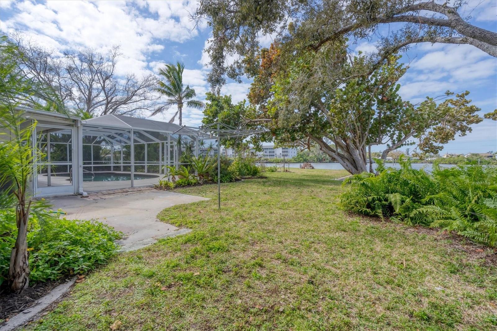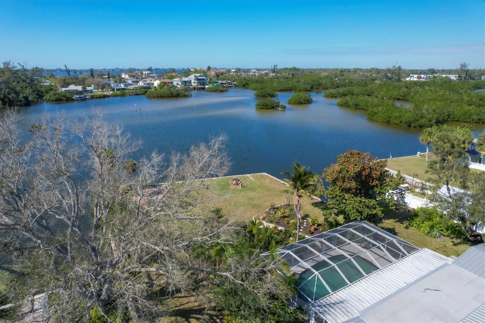 May your journey always lead you home to a place of sustenance, invitation, and welcome. Nestled on a quiet street along the shores of Gottfried Creek, just that place, your 'paradise found,' awaits. This home evokes a sense of nostalgia in all who enter with its undeniable 'Old Florida' Key West-inspired charm. Open the door to this inviting residence, and you will be instantly drawn to its bucolic setting and the breathtaking water view out back, where the surrounding waters of Gottfried Creek are dotted with numerous mangroves, the magical forests rife with nature's secrets that straddle the connection between land, sea, and humans. From your backyard, you might observe a manatee and her babies basking in the sun's warmth in shallow waters. The home's interior is open, and flows, yet traditional structural bones give each room its distinct identity. French doors highlight the main living area and open to the lanai, gracefully integrating the indoor and outdoor living areas and showcasing a heated pool with pastoral views of Gottfried Creek and a highly coveted Western exposure as a backdrop. The large lanai allows room for conversation-friendly seating arrangements that encourage guests to slow down, engage in lively conversation, or enjoy a 5:00 cheeseboard before a romantic al fresco dinner--the choice is yours. The kitchen is just off the main living area and offers abundant cabinetry, granite countertops, a dinette, and stainless steel appliances. The resident hobbyist will surely appreciate the home's oversized garage with a spacious adjacent laundry room. The primary bedroom offers an ensuite bath with a step-in (Roman) tub/shower and dual sinks. A flex room, the 'pink' room, adjoins the primary bedroom via French doors and is currently in use as additional sleeping quarters; however, this room could be utilized as a den or a home office if desired. Bedrooms two and three share a bath outfitted with a tub/shower combination highlighted with whimsical tile, sure to bring a smile to the faces of all who enter. Ceramic tile flooring is found throughout the home and helps keep everything neat. Other notable amenities include a metal roof, an updated AC (2 years), a newer hot water heater (2 years), a concrete seawall, a beautiful brick patio overlooking the creek, an outdoor shower, and abundant storage throughout the home. It is a short boat ride from here with one bridge to the ICW and the Gulf of Mexico, and the home's rear Western exposure provides spectacular sunset views nightly. This home pays homage to Englewood's humble beginnings when life was simpler--the kind of place where you don't want to leave once you sit down. For generations, it has been a cozy, tranquil gathering place for family and friends where treasured, happy memories have been made. Nearby Dearborn Street, in Englewood, offers various unique shops, excellent eateries, and a lovely outdoor amphitheater. Residents and guests regularly delight in the fresh produce and unique offerings at the ever-expanding farmer's markets. The pristine beaches on Manasota Key are within a short drive. This home is the perfect setting for creating your very own picture-perfect memories. Take advantage of the opportunity to bask in the tranquil magic offered when bathed in the color of the sun's setting right in your backyard. Call today to schedule a private showing, and prepare to be captivated by this truly exceptional, laid-back waterfront Florida lifestyle.