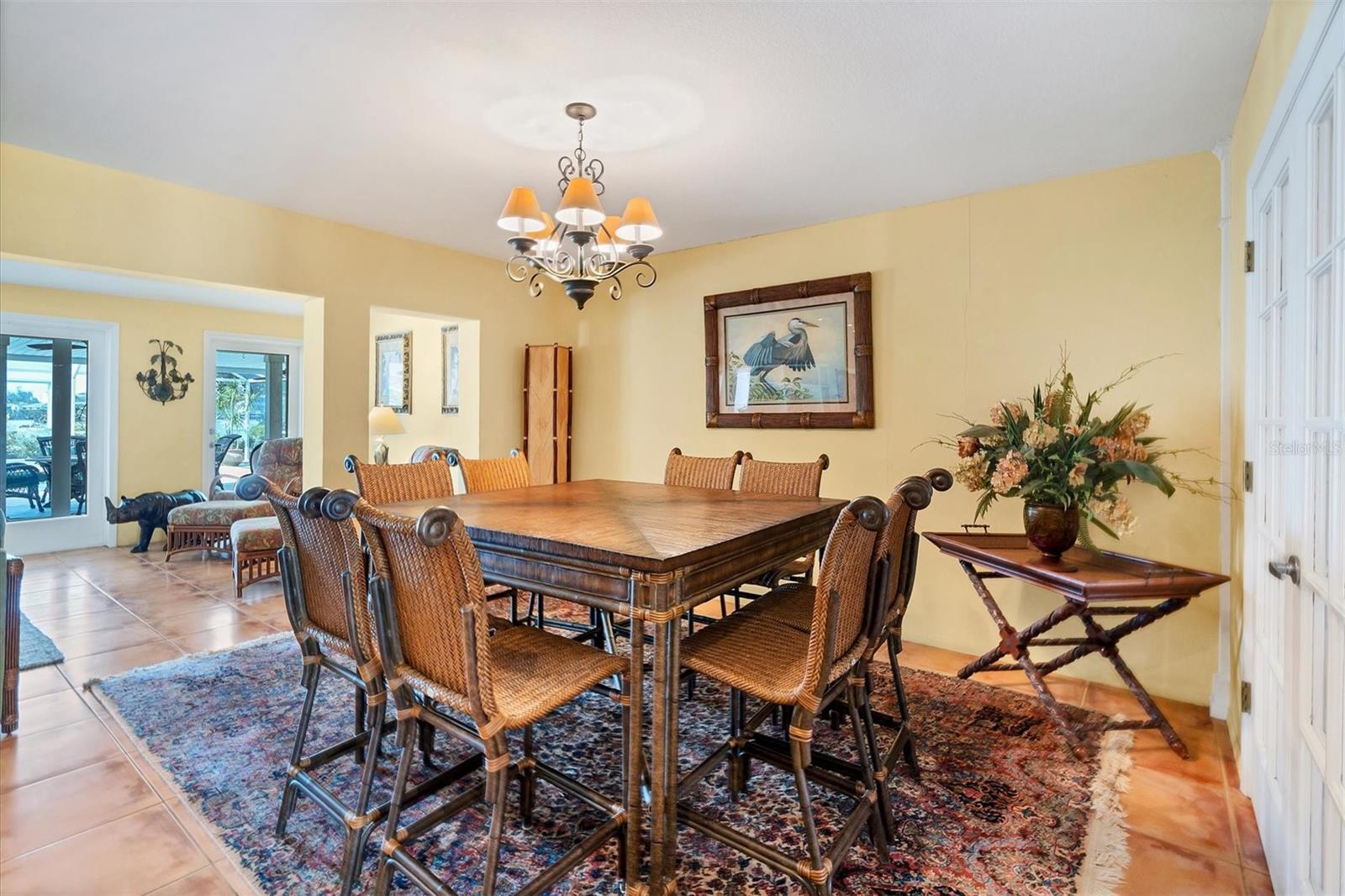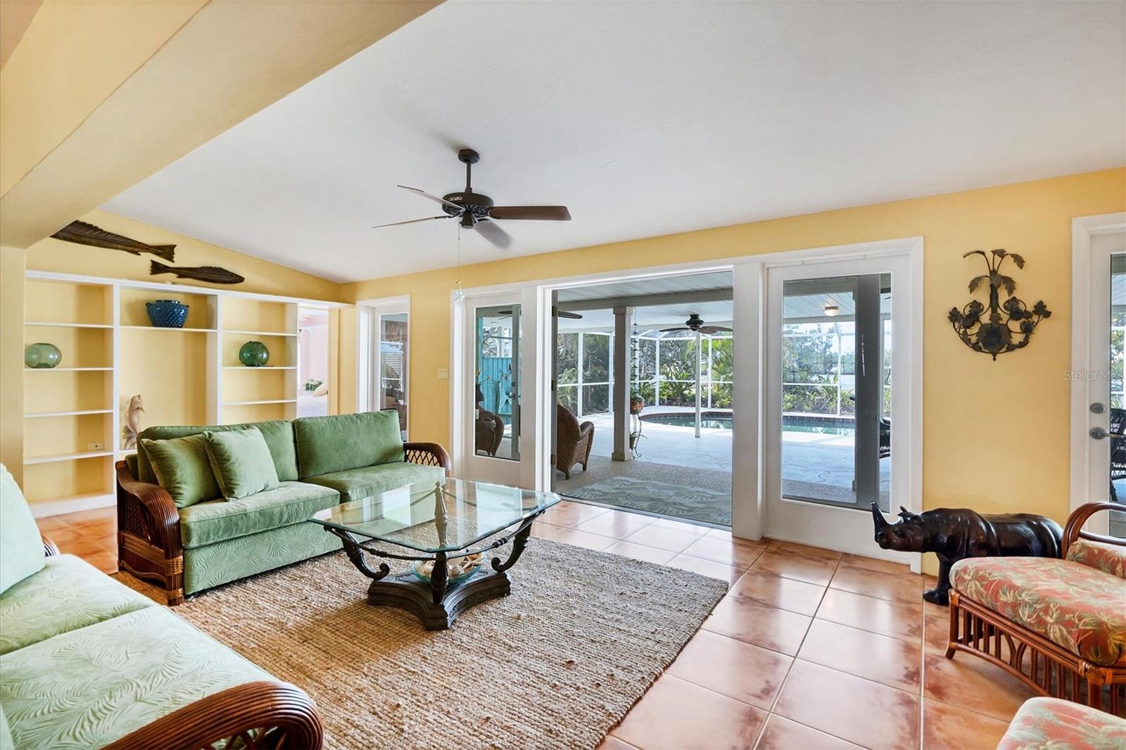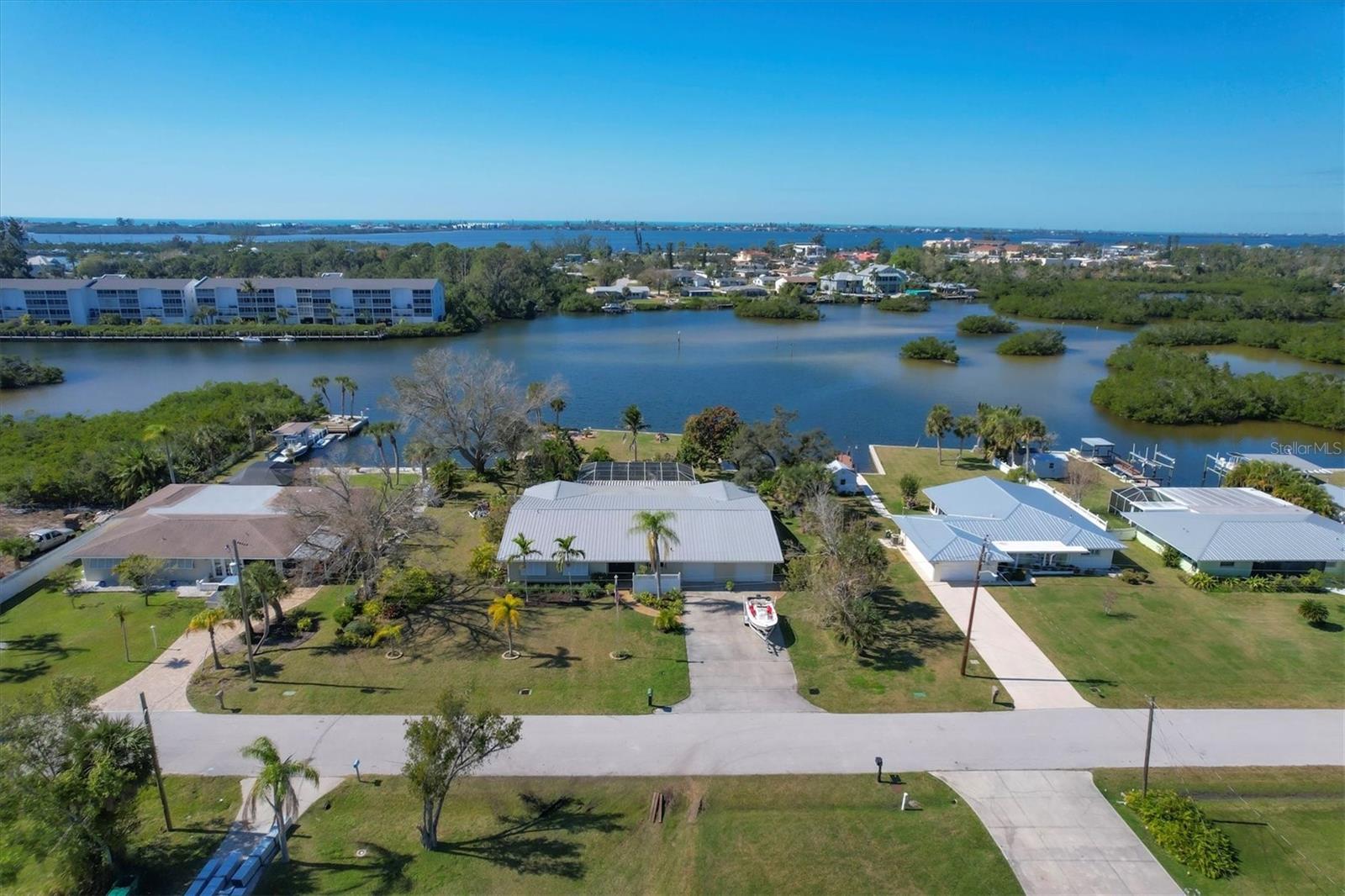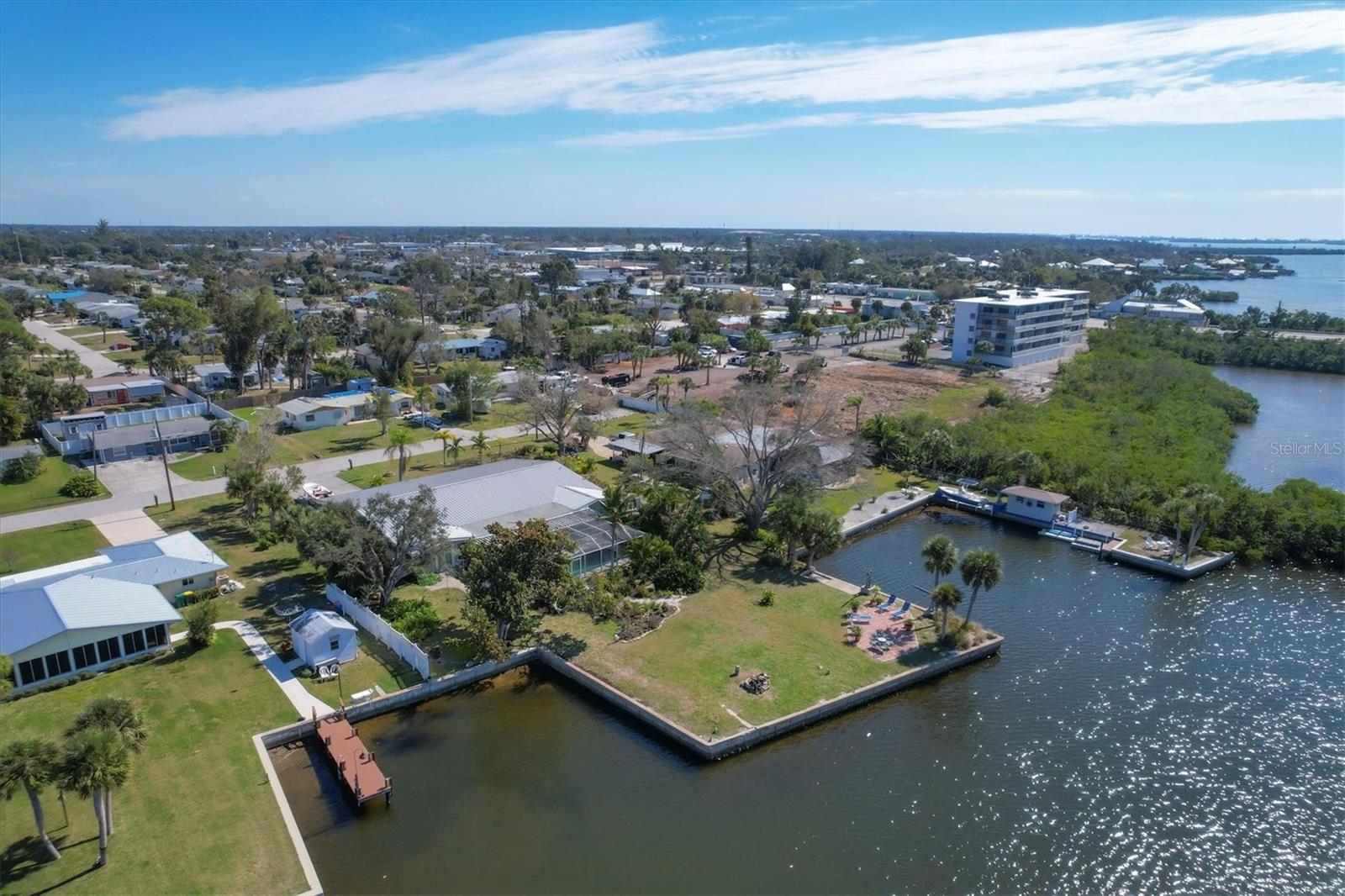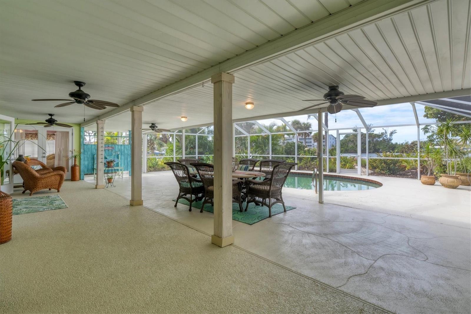 May your journey always lead you home to a place of sustenance, invitation, and welcome. Nestled on a quiet street along the shores of Gottfried Creek, just that place, your 'paradise found,' awaits. This home evokes a sense of nostalgia in all who enter with its undeniable 'Old Florida' Key West-inspired charm. Open the door to this inviting residence, and you will be instantly drawn to its bucolic setting and the breathtaking water view out back, where the surrounding waters of Gottfried Creek are dotted with numerous mangroves, the magical forests rife with nature's secrets that straddle the connection between land, sea, and humans. From your backyard, you might observe a manatee and her babies basking in the sun's warmth in shallow waters. The home's interior is open, and flows, yet traditional structural bones give each room its distinct identity. French doors highlight the main living area and open to the lanai, gracefully integrating the indoor and outdoor living areas and showcasing a heated pool with pastoral views of Gottfried Creek and a highly coveted Western exposure as a backdrop. The large lanai allows room for conversation-friendly seating arrangements that encourage guests to slow down, engage in lively conversation, or enjoy a 5:00 cheeseboard before a romantic al fresco dinner--the choice is yours. The kitchen is just off the main living area and offers abundant cabinetry, granite countertops, a dinette, and stainless steel appliances. The resident hobbyist will surely appreciate the home's oversized garage with a spacious adjacent laundry room. The primary bedroom offers an ensuite bath with a step-in (Roman) tub/shower and dual sinks. A flex room, the 'pink' room, adjoins the primary bedroom via French doors and is currently in use as additional sleeping quarters; however, this room could be utilized as a den or a home office if desired. Bedrooms two and three share a bath outfitted with a tub/shower combination highlighted with whimsical tile, sure to bring a smile to the faces of all who enter. Ceramic tile flooring is found throughout the home and helps keep everything neat. Other notable amenities include a metal roof, an updated AC (2 years), a newer hot water heater (2 years), a concrete seawall, a beautiful brick patio overlooking the creek, an outdoor shower, and abundant storage throughout the home. It is a short boat ride from here with one bridge to the ICW and the Gulf of Mexico, and the home's rear Western exposure provides spectacular sunset views nightly. This home pays homage to Englewood's humble beginnings when life was simpler--the kind of place where you don't want to leave once you sit down. For generations, it has been a cozy, tranquil gathering place for family and friends where treasured, happy memories have been made. Nearby Dearborn Street, in Englewood, offers various unique shops, excellent eateries, and a lovely outdoor amphitheater. Residents and guests regularly delight in the fresh produce and unique offerings at the ever-expanding farmer's markets. The pristine beaches on Manasota Key are within a short drive. This home is the perfect setting for creating your very own picture-perfect memories. Take advantage of the opportunity to bask in the tranquil magic offered when bathed in the color of the sun's setting right in your backyard. Call today to schedule a private showing, and prepare to be captivated by this truly exceptional, laid-back waterfront Florida lifestyle.
