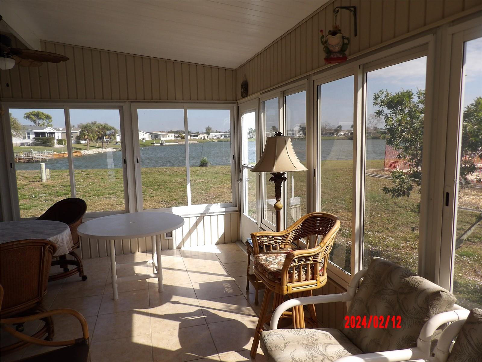 ANNOUNCING A NEW PRICE REDUCTION ON THIS WONDERFUL HOME ON THE LAKE. YOU MIGHT OF TOURED THIS HOME BEFORE THE CARPORT WAS REPAIRED AND THE CHANGE IN PRICE. NOW COME TAKE A SERIOUS LOOK. EVERYTHING YOU WOULD WANT IN A WINTER HOME OR YOUR HOME FOR GOOD. This is a true 3 bedroom with lots of upgrades/updates. Great for entertaining. You will notice there is an oversized Florida Room with lots of windows and the views are wonderful. How does a Florida Room that measures 36' X 14' feet sound to you. There is an attached shed in a private door there too. Why not enjoy a meal or perhaps just entertaining your new friends here? Light and bright When you enter the home there is an updated Kitchen with Wood Cabinets. Separate Dining Room. The living room opens into the Family room/Den and there are 2 separate entrances. There is plenty of room to decide what to do here. It is currently being used as a big dining room. The Primary Bedroom offers extra space to perhaps have an office/den. You decide? The Bathroom is updated and wait until you see it. There is a Custom designed retractable Shower Chair. This is a split plan home with the other 2 Bedrooms. The 2nd bedroom will go out to the Family room if you want and the 3rd Bedroom has a separate entrance into the Updated Guest Bathroom as well as there is a Hallway Entrance. Move in ready with it being sold Furnished and Turnkey minus Owner's personal Property. Membership to The Edgewater Clubhouse Transfers with sale. It is then optional to retain the annual fee of $300 a year. There you have a heated pool, Tennis and Shuffleboard Courts and other outdoor Amenities. The Clubhouse has many activities such as dinner dances, Holiday Themed Parties, Potluck meals, Coffee time to meet you new friends along with arts and crafts, card groups and more. The optional Homeowner's Association is just $35. a year. You own Your LAND by fee-simple and there are no monthly Maintenance fees. Pet and Golf Cart friendly. The Beaches are just over 3.5 miles away. If you enjoy Fishing and Boating this is your place. There are Public Golf Courses in area as well as county Owned Boat Ramps. The Membrane Roof Was inspected by another State licensed Membrane Roofing Company and per Owner the Roof was fine and not needing to be repaired or replaced. Also must mention there is a seawall. All the information we supplied is to the best of our knowledge, but should be verified by buyer and or buyer's agent. Selling as-is, subject to Buyer's Approval. Pet and golf cart friendly.