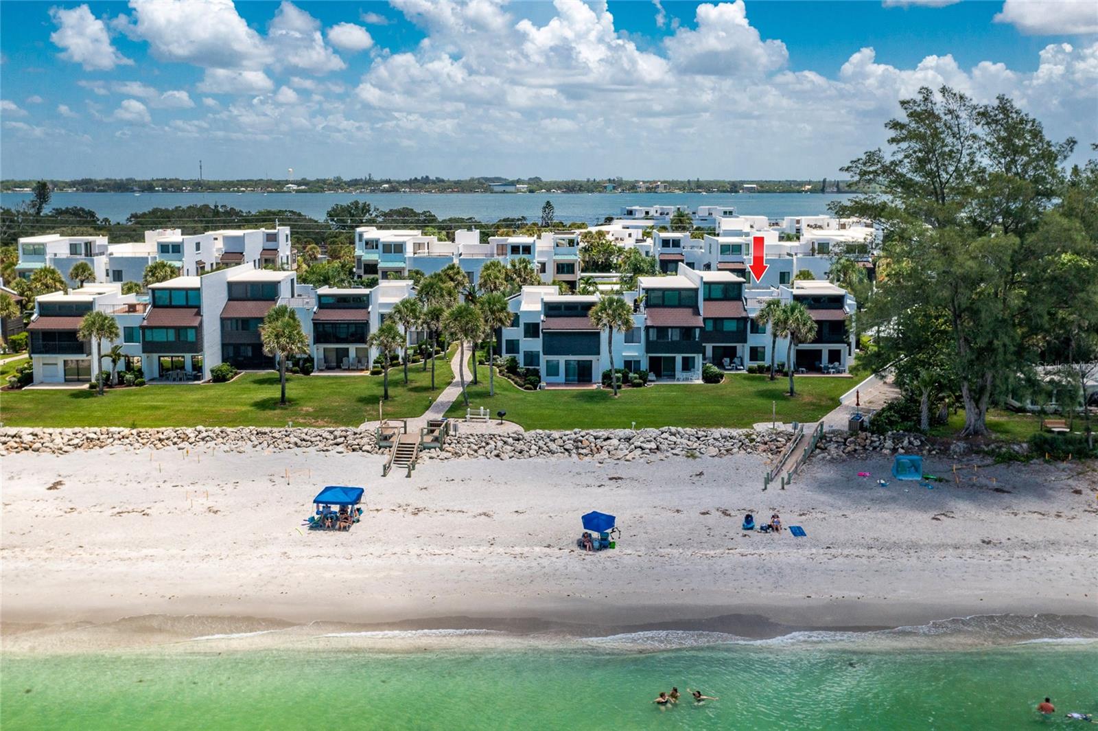 Experience the epitome of coastal living in this exquisite second-floor loft unit at Tamarind Gulf & Bay Condominiums on Manasota Key, in Englewood, Florida. Revel in the opportunity to wake up to breathtaking views of the Gulf of Mexico from your very own beachfront oasis. Immerse yourself in the coastal ambiance with soaring high ceilings and oversized windows that frame mesmerizing sunsets and unobstructed views of the beach and Gulf of Mexico. Boasting a generously sized private sundeck with low-maintenance composite deck boards, indulge in the natural beauty of the beach amidst the rolling waves. The main living level encompasses a lovely, updated kitchen, and two updated bedrooms and bathrooms, all adorned with oversized tile flooring. The added allure of a versatile loft space, which is being utilized as a third bedroom, comes complete with an attached 3rd full bathroom and catwalk to the beachside windows. Unit includes a downstairs owner's storage closet, perfect for stashing away beach essentials, golf clubs, fishing gear, and more. Tamarind Gulf & Bay is where you can experience condo and island living at its finest; lounge in your unit, on the pristine beach, moor your boat in Lemon Bay, or swim in the heated community pool! Maintenance fee includes: water/sewer, cable TV, pest control, manager, and maintenance and insurance of all common elements and areas. Amenities for Tamarind’s residents include: a heated pool, clubhouse with full kitchen, 26 boat slips (1st come), boat ramp, assigned covered parking, BBQ areas and approximately 450’ of frontage on the Gulf of Mexico. Elevate your lifestyle with this coastal haven that promises not just a home, but an everyday escape to paradise.