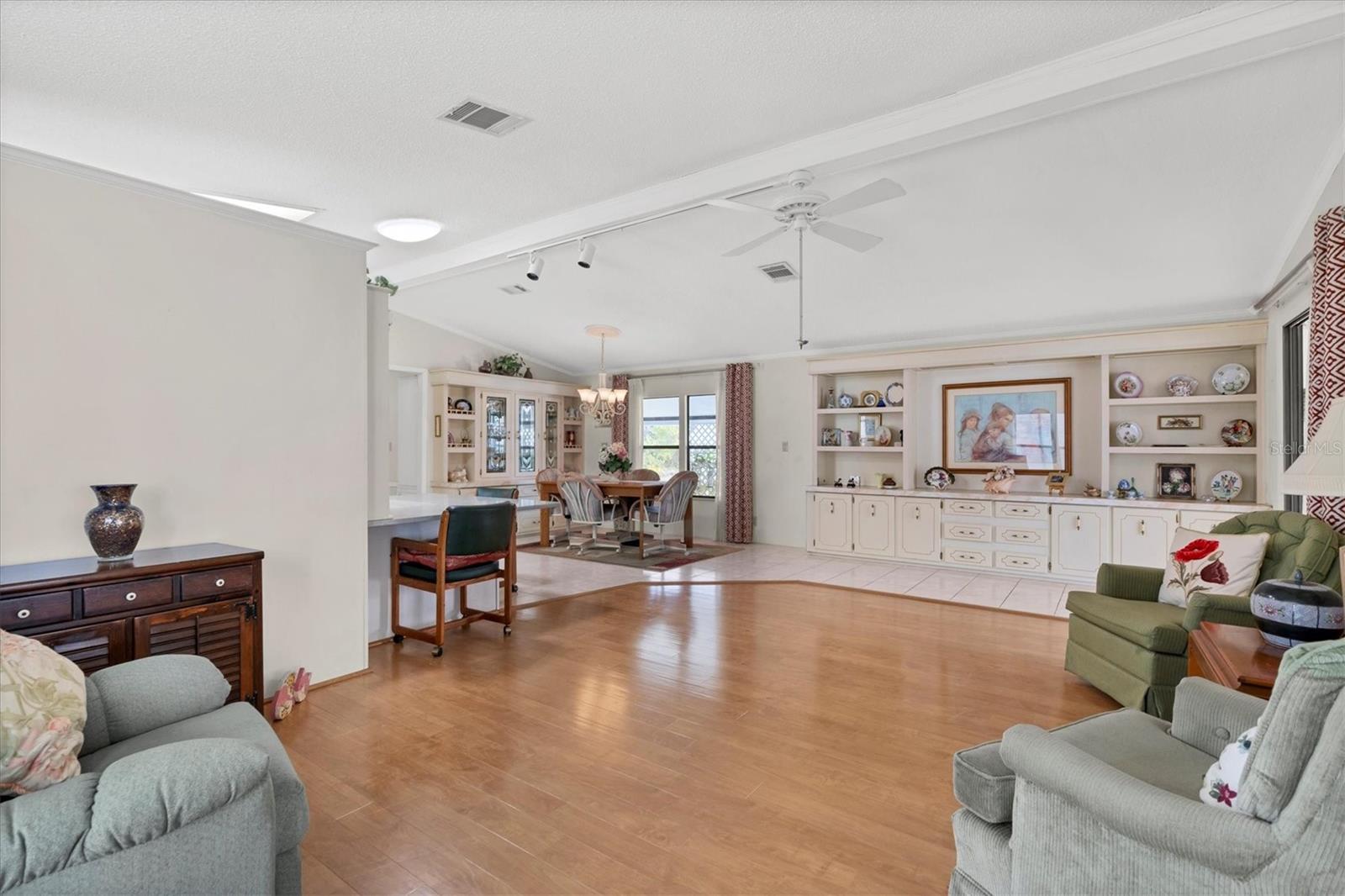 The absolute perfect piece of paradise. This home is located in the highly desirable Tangerine Woods, a premier adult community where you own your land; No hurricane damage to this home, being offered partially furnished; it's light and bright with laminate flooring in the Great room, gorgeous front porch where you can have your morning coffee or afternoon drinks; kitchen has new refrigerator and dishwasher, new counter tops, large pantry & breakfast bar. Great room has cathedral ceilings with large entertainment center with lots of shelves and cabinets, dining also has built in cabinet. Home backs up to greenbelt, mature landscaping, spacious master bedroom with huge closet and ensuite bathroom. Utility room houses the washer and dryer. Olympic sized heated pool and spa, shuffleboard, tennis courts, pickle ball, horseshoes, walking trails and much more. Englewood has so much to offer, Farmer's Market downtown on Thursdays, restaurants, shopping, golf courses, world class fishing, watching the sunset on Manasota Key or picking up shells on the beaches.