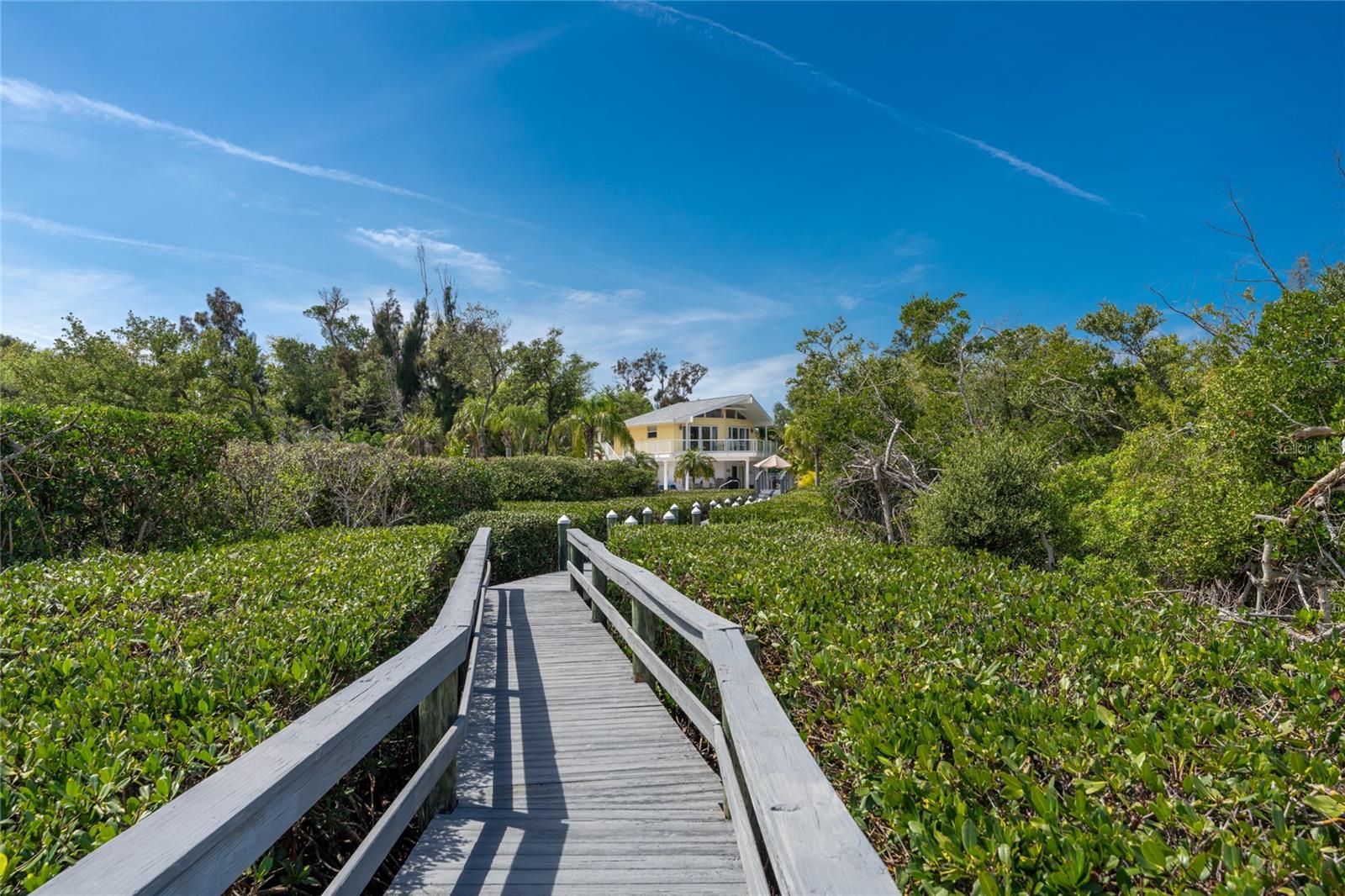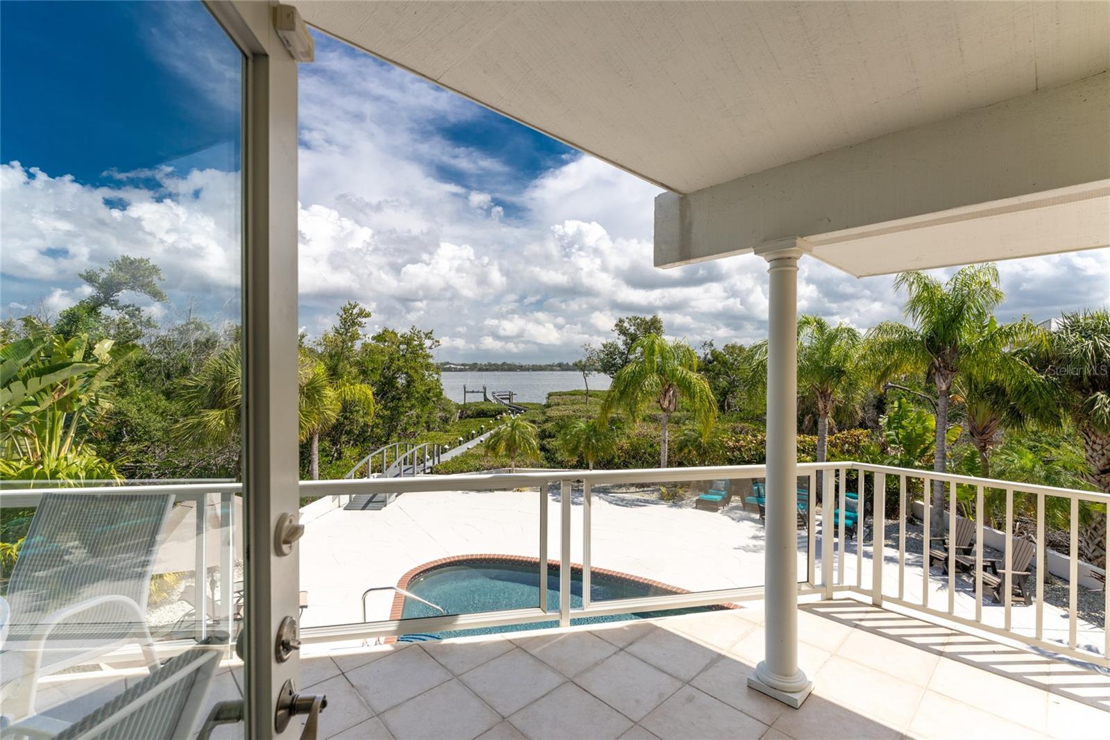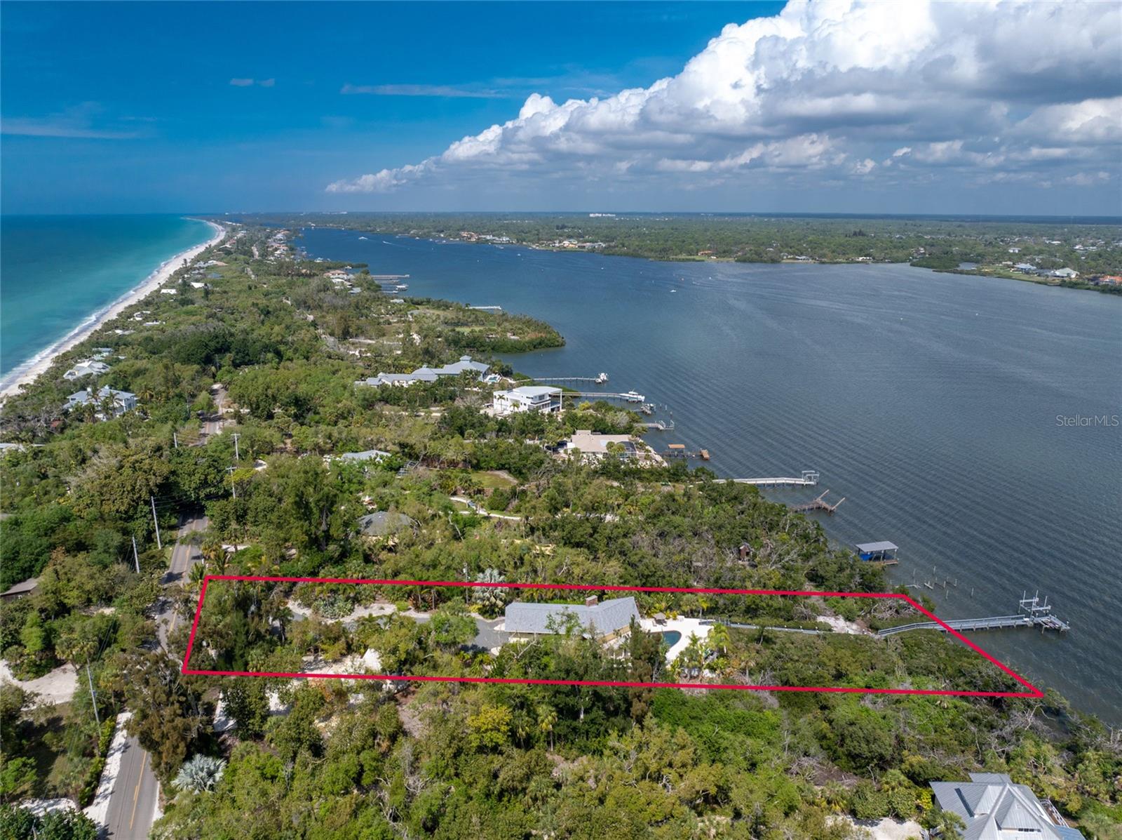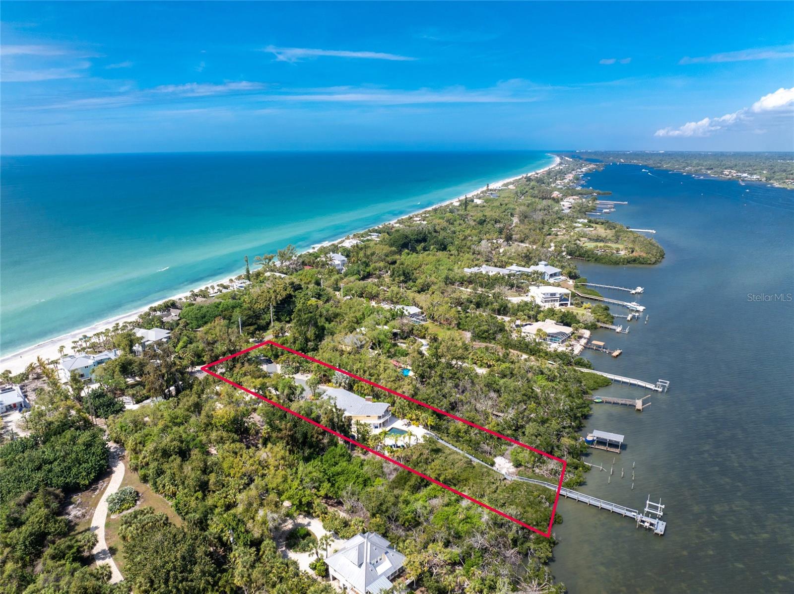 MANASOTA KEY – Don’t’ miss this BAYFRONT PRIVATE RETREAT -- with the laid-back charm of Island living. Located on almost 3/4 acre, this residence is nestled on a private waterfront lot surrounded by mature trees and tropical foliage. Sold fully furnished, boasting two living levels, 3 Bedrooms, 3 Bathrooms, and over 3,100 sq ft of airy, sunlit living space, this lovely waterfront residence features an awe-inspiring 2nd floor Great Room with a Cathedral ceiling and wood burning fireplace, and access to the covered, wrap-around balcony, perfect for watching sunrises over Lemon Bay. The formal dining room includes separate balcony access for outdoor dining and is located adjacent to the updated kitchen. Down the hall, the oversized Primary suite includes a walk-in closet and upgraded, en-suite bathroom with double-sink vanity and luxurious Roman shower with mounted body jets. The guest bedroom includes an adjacent bathroom with jetted tub. The ground level includes a welcoming family room, a 3rd full bathroom, 2 additional bedrooms alongside a utility room with full size washer/dryer, utility sink and an enclosed lanai located just off the pool area. Step outdoors and unwind on the spacious pool deck, perfect for hosting guests, or enjoy a refreshing swim in the heated pool. Adjacent to this area lies the boardwalk leading to the boat dock with 2 lifts; one for your boat, the other for your personal watercraft/jet skiis. New roof January 2022, new A/C in 2023 and 2020. Storm-rated windows and doors throughout and spacious 2-car garage with storage closets. This is the ideal spot to discover the quintessential Island experience. Paradise awaits!