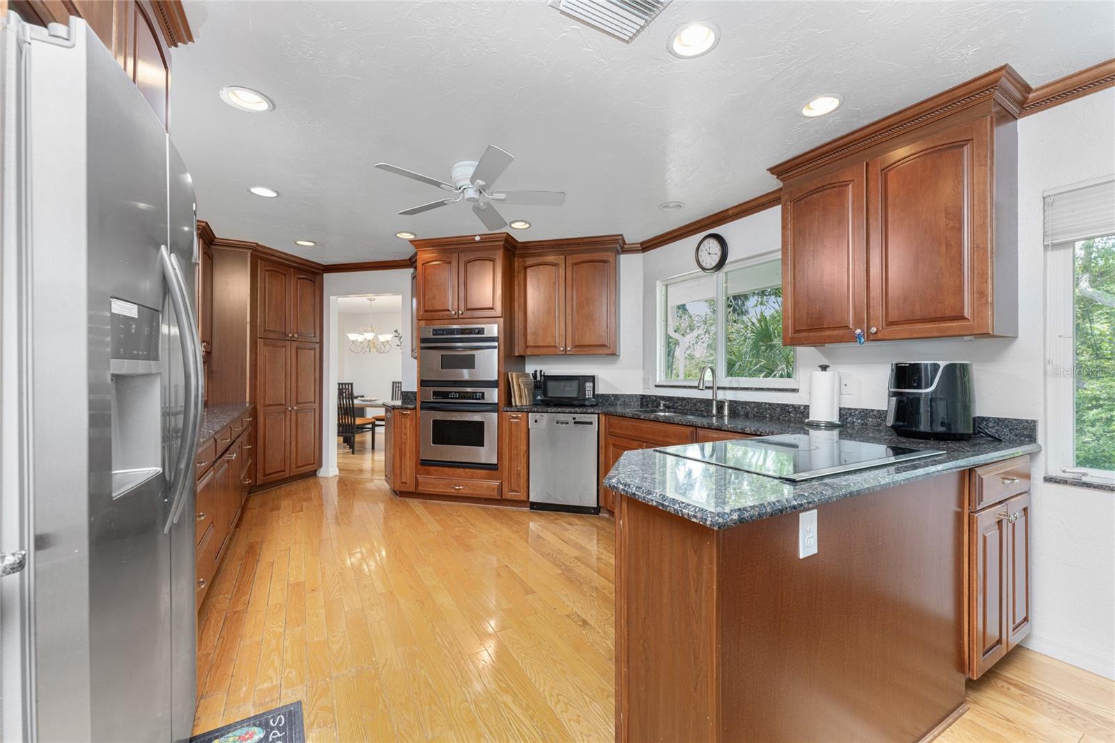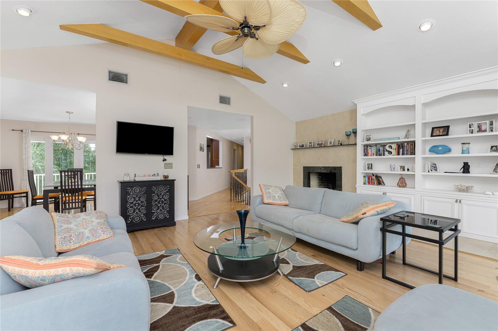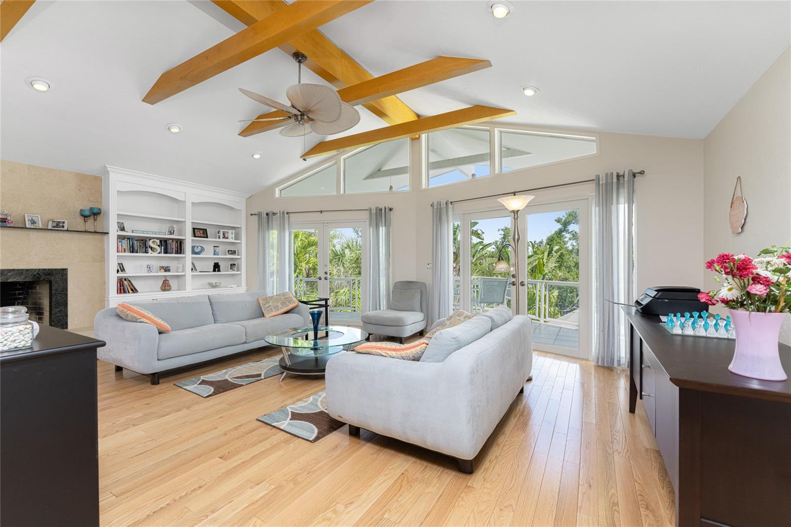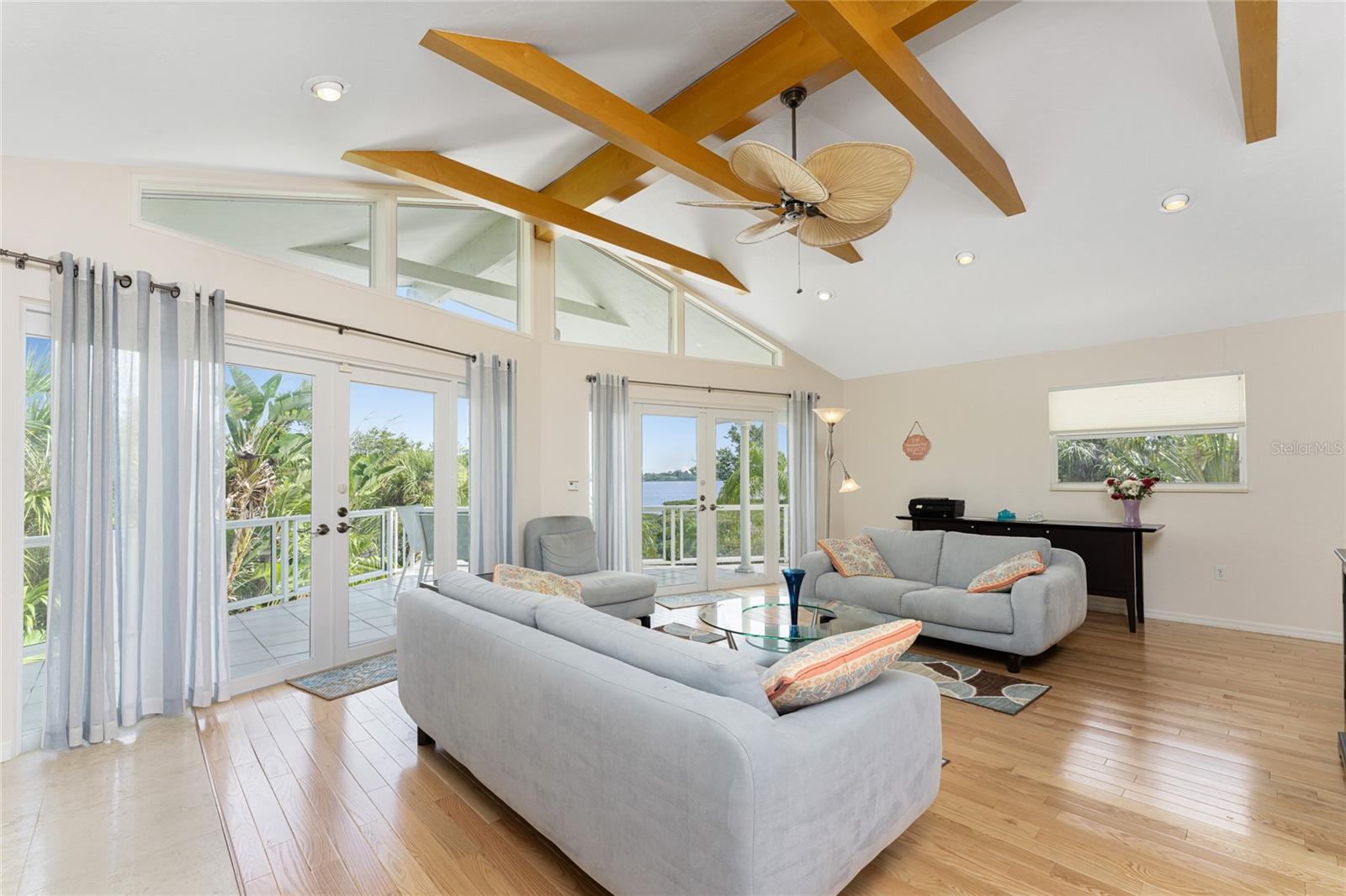 MANASOTA KEY – Don’t’ miss this BAYFRONT PRIVATE RETREAT -- with the laid-back charm of Island living. Located on almost 3/4 acre, this residence is nestled on a private waterfront lot surrounded by mature trees and tropical foliage. Sold fully furnished, boasting two living levels, 3 Bedrooms, 3 Bathrooms, and over 3,100 sq ft of airy, sunlit living space, this lovely waterfront residence features an awe-inspiring 2nd floor Great Room with a Cathedral ceiling and wood burning fireplace, and access to the covered, wrap-around balcony, perfect for watching sunrises over Lemon Bay. The formal dining room includes separate balcony access for outdoor dining and is located adjacent to the updated kitchen. Down the hall, the oversized Primary suite includes a walk-in closet and upgraded, en-suite bathroom with double-sink vanity and luxurious Roman shower with mounted body jets. The guest bedroom includes an adjacent bathroom with jetted tub. The ground level includes a welcoming family room, a 3rd full bathroom, 2 additional bedrooms alongside a utility room with full size washer/dryer, utility sink and an enclosed lanai located just off the pool area. Step outdoors and unwind on the spacious pool deck, perfect for hosting guests, or enjoy a refreshing swim in the heated pool. Adjacent to this area lies the boardwalk leading to the boat dock with 2 lifts; one for your boat, the other for your personal watercraft/jet skiis. New roof January 2022, new A/C in 2023 and 2020. Storm-rated windows and doors throughout and spacious 2-car garage with storage closets. This is the ideal spot to discover the quintessential Island experience. Paradise awaits!