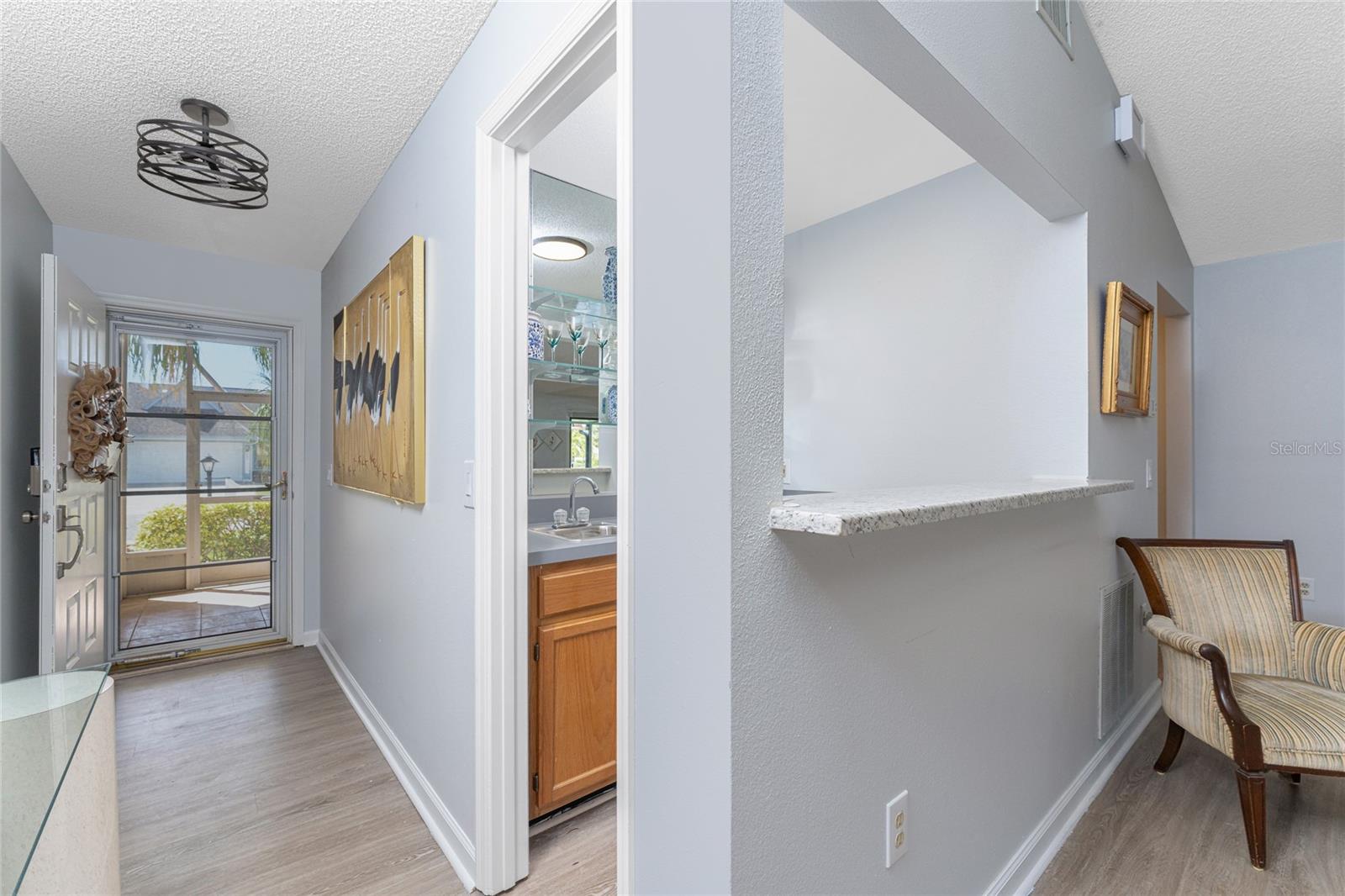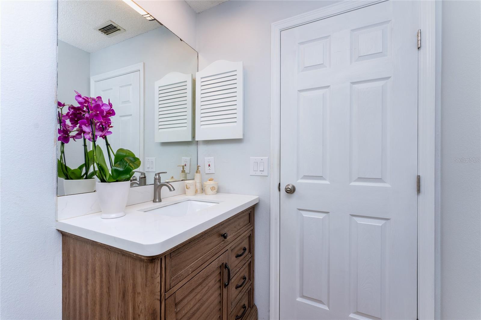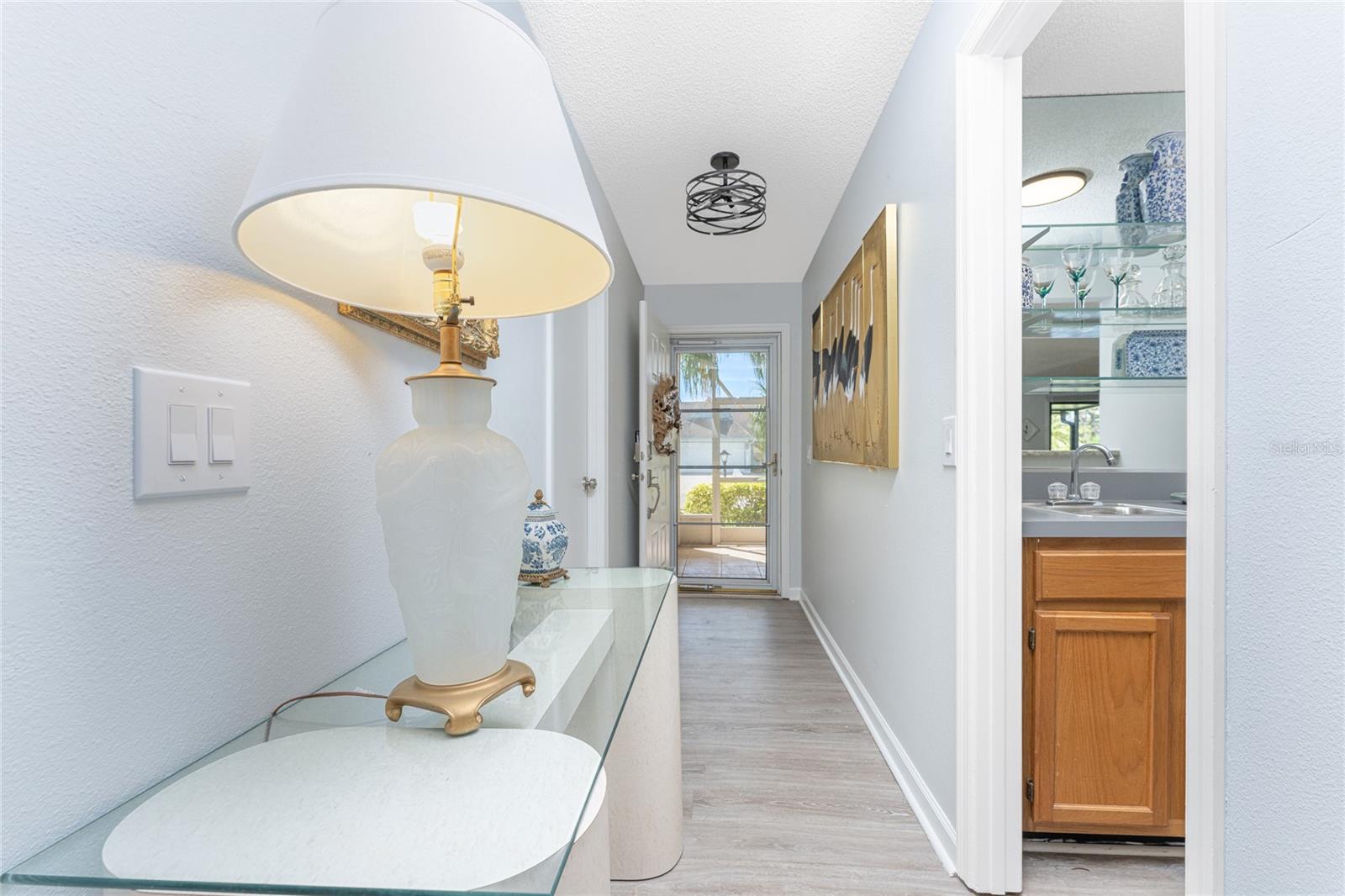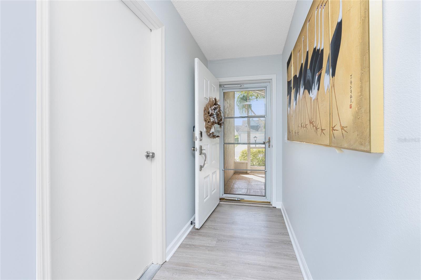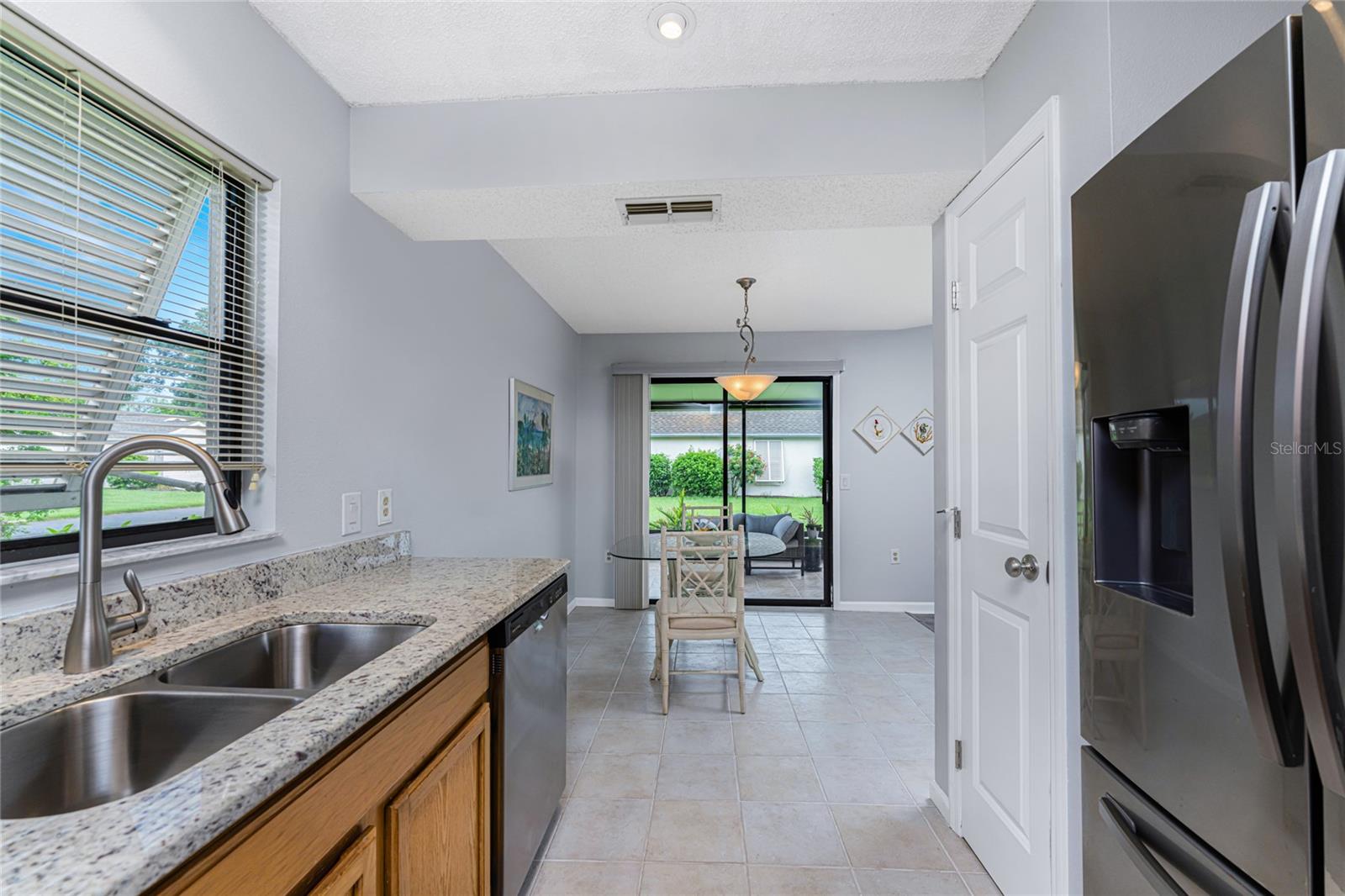 Welcome to the gated 55+ Community of Park Forest, nestled in the heart of Englewood. As you drive through the archway of Florida Oak Trees that surround the front entry. You will see mature landscaping. Drive up to this charming corner lot home & awe at the lush tropical landscape. Step inside the screened front entry patio, a perfect place to enjoy your morning coffee. Step through the foyer and into the Great Room with vaulted ceilings, new wood look flooring and a wet bar area for entertaining guests. Step around the dining and kitchen area and enjoy easy lanai access through the sliding doors. Perfect area to wind down after a long day at the beach. The expansive lanai extends along the the rear of the home, and is upgraded with tile flooring and new cage, a fabulous place for entertaining family and neighbors. It is also accessible from the spacious Master bedroom. Many updates in home include flooring, lighting, paint, interior doors, partial updates in baths including new vanities. The Master Bedroom has brand new neutral carpet, walk-in closet and ensuite bathroom with a step in shower and new vanity. The Guest Bedroom also has updated carpet and new matching vanity and a wall of closets. Loads of storage in this home. Other recent updates include 2018 A/C system, new roof March 2024. Home has interior laundry closet for your convenience. When you're ready, jump on your golf cart and take a short ride to the community pool or meet your friends for a tennis match. Park Forest is a highly sought after community where you can enjoy the peace of mind with*MAINTENANCE FREE LIVING including exterior, roofs and painting of homes on a regular basis. Full community calendar including swimming pool, recreation center, pickleball and tennis courts. There is also boat and RV storage within the community. Plus you will be just a few miles from numerous Gulf Beaches, restaurants and shopping! Home is furnished minus the lamps and some home decor. Call today for your private appointment.