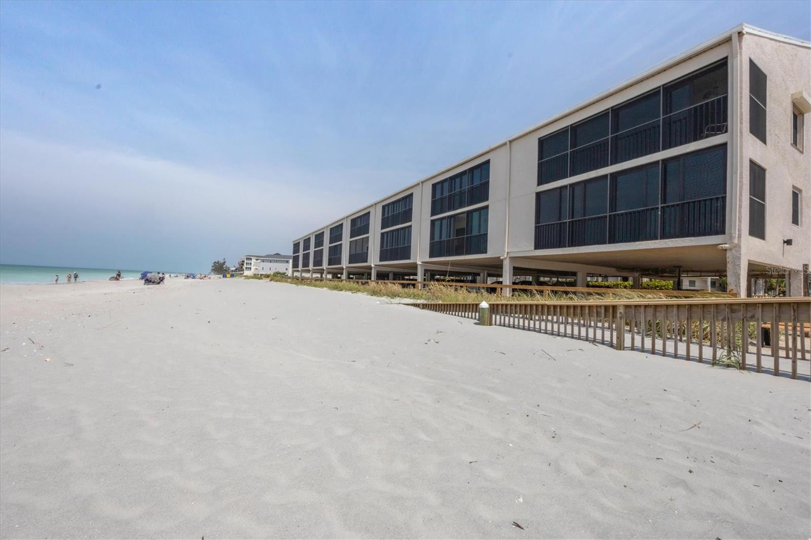 Beachfront Bliss! Rarely does a BEACHFRONT condo of this caliber hit the market! Recently, upgraded with new HVAC, steel roof, and hurricane windows, this coastal retreat offers durability and peace of mind. Step inside to find TURNKEY furnishings that complement the tasteful coastal decor and granite counters in the gourmet kitchen. The breakfast bar invites casual dining, while the extra-large lanai provides the perfect spot to soak in BREATHTAKING OCEAN VIEWS. Need extra space? The loft, complete with built-ins, can serve as a third bedroom or office. With ample attic storage, every inch of this condo is optimized for comfort and functionality. Experience coastal living at its finest in this "Gulf to Bay" community, mere steps from the sand. Enjoy Bay water access with a boat slip (first come first serve), a community pool, spa, tennis/pickleball courts, and outdoor BBQ areas. Revel in stunning sunsets daily! Manasota Key offers a perfect barrier island lifestyle with restaurants, beaches, shopping, and live music. Explore nearby Historic Dearborn Street and golf courses just a short drive away. Dive into paradise today!