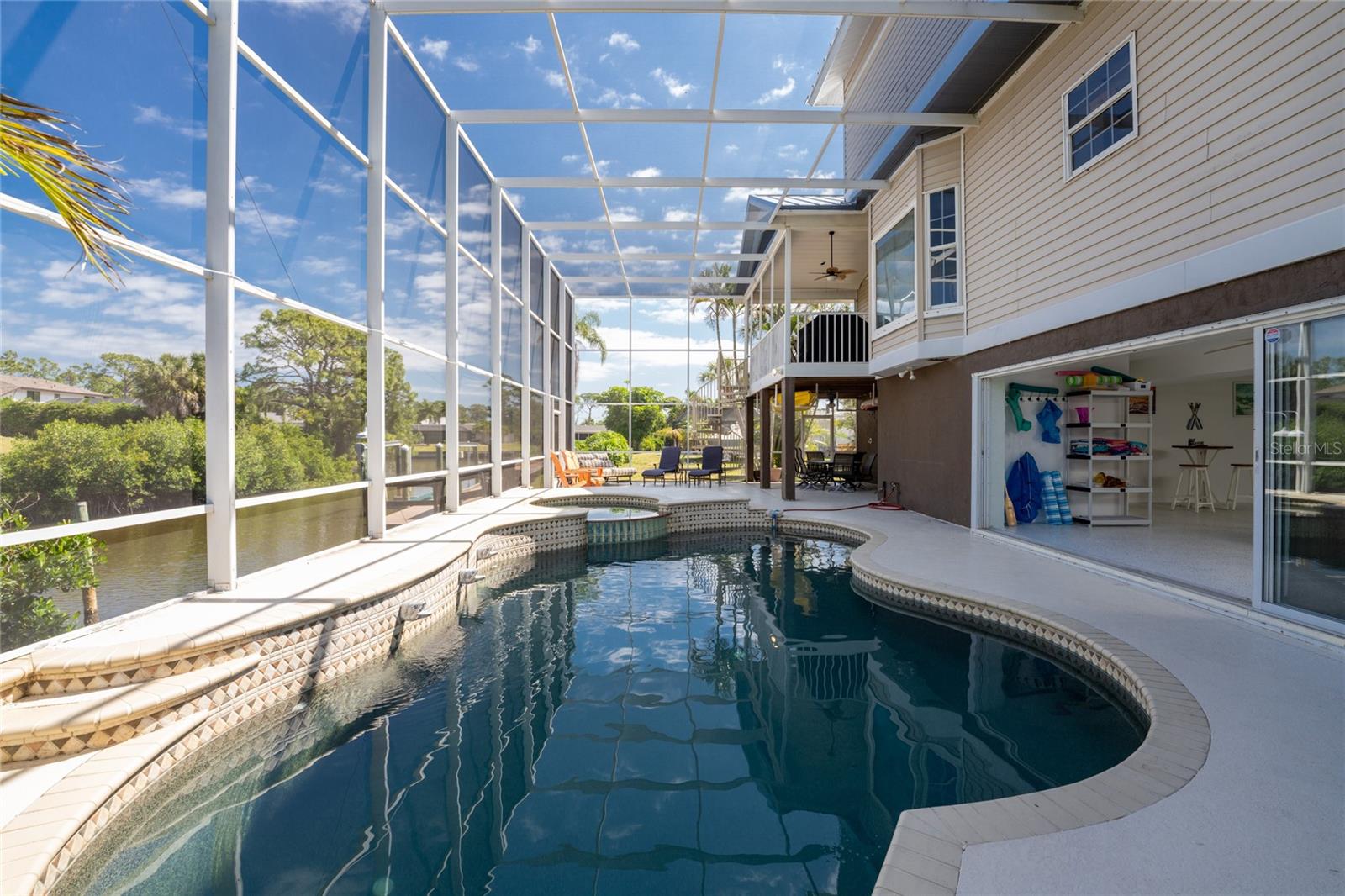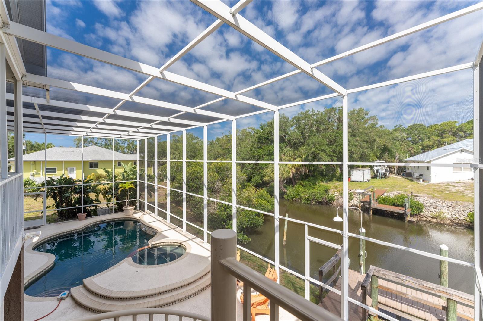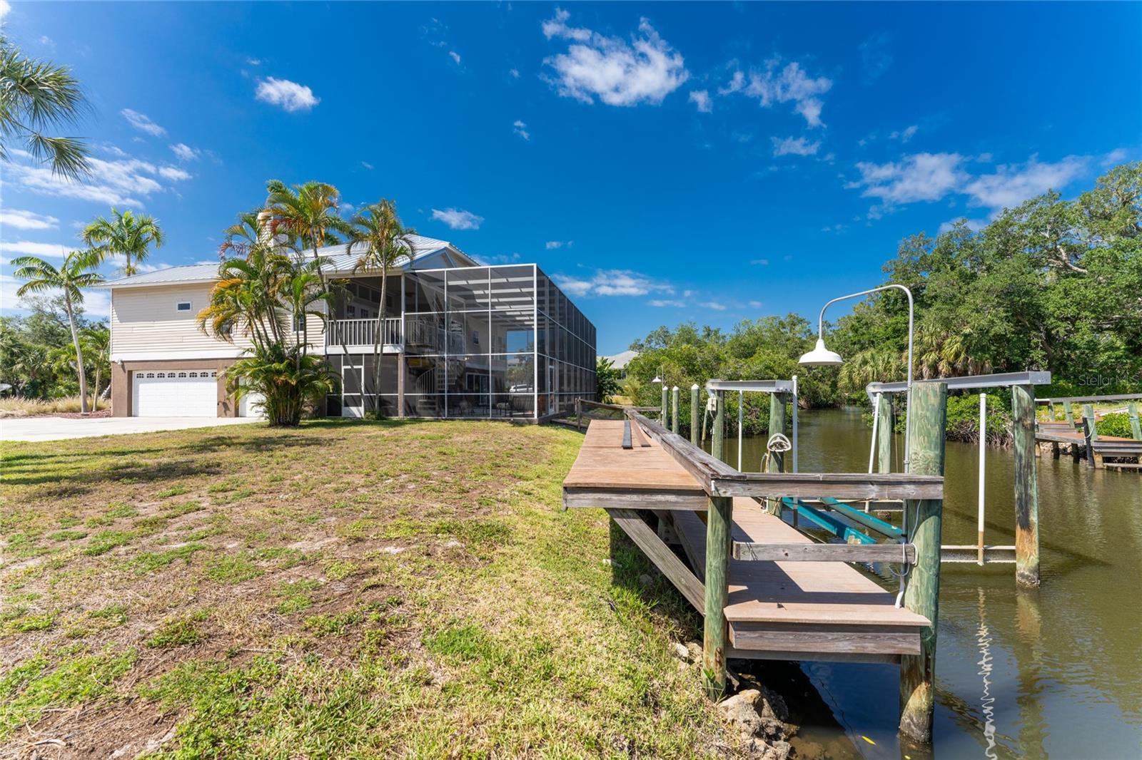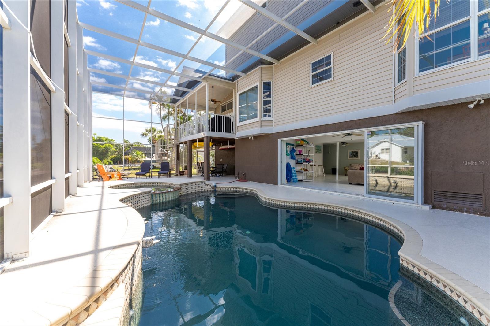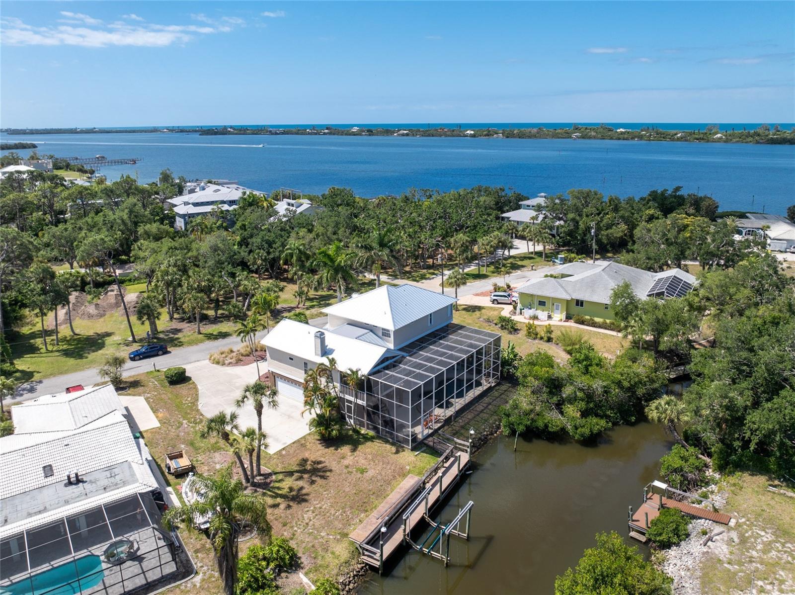 NEW 2023 STANDING SEAM METAL ROOF! TURN-KEY OPTIONAL! This custom-built WATERFRONT KEY WEST STYLE POOL HOME is a rare gem that could become your personal paradise. Situated in a highly sought-after neighborhood with many million-dollar properties, this stunning residence is conveniently located less than 1,000 feet from the Lemon Bay Intracoastal Waterway with no fixed bridges to the Gulf of Mexico. Boasting an oversized dock with a 13,000 LB. lift for your boat and ample space for guest's to tie up while enjoying the large pool or cleaning today's catch. This location is prime for waterfront adventures exploring top-notch inshore and offshore fishing spots, numerous sandbars, islands, and waterfront dining options. INSIDE and up the impressive entryway, this spacious home offers almost 3,000 square feet of living space, perfect for accommodating your family and guests. The main level includes a charming, vaulted ceiling bedroom with an en-suite bathroom, a billiard room, a formal dining room with a bay window, a large utility room, and an additional guest bathroom. The cozy kitchen features quartz countertops, a separate ice maker, a double oven, and a backyard view. You can cook while keeping an eye on the pool and have quick access to the SECOND-FLOOR PORCH with spiral staircase down. The breakfast bar and informal eating nook flow easily with this space and the family room that features a WOOD-BURNING FIREPLACE, CUSTOM BAR with wine refrigerator and French doors. On the top floor, the MASTER SUITE features a balcony for sunset views, custom office/library, walk-in closets, dual sinks, jetted tub and walk-in shower. The THIRD AND FOURTH BEDROOMS are located on this floor as well and share a jack and jill bath. DOWNSTAIRS, is the THREE CAR GARAGE and 1,000 SQUARE FOOT BONUS ROOM with pocket sliding glass doors that open onto your lanai. This versatile space could serve as an entertainment area, home gym, game room, or extra storage. OUTSIDE, the TWO STORY newly remodeled ALUMINUM SCREEN CAGE is where everyone will want to be - framing the sparkling, custom HEATED POOL + SPA with ample entertaining space surrounding it. Additional features include LOW FLOOD INSURANCE COSTS, NEW HVACS, oak wood floors, sprinkler system, hurricane shutters, NEW POOL EQUIPMENT and added cell foam insulation. Sellers willing to negotiate the home turn key for buyer convenience and easy enjoyment! Call today to schedule your private viewing. They aren’t making any more waterfront property & this home is one of a kind.