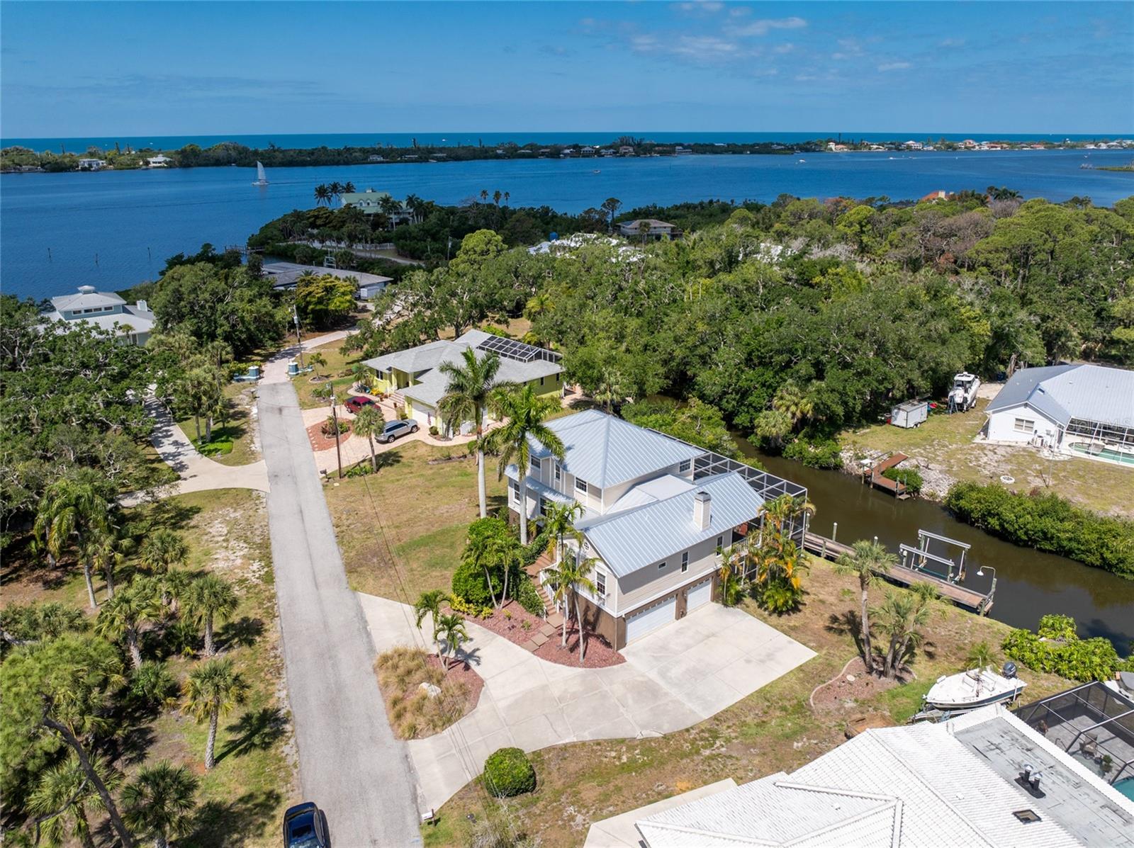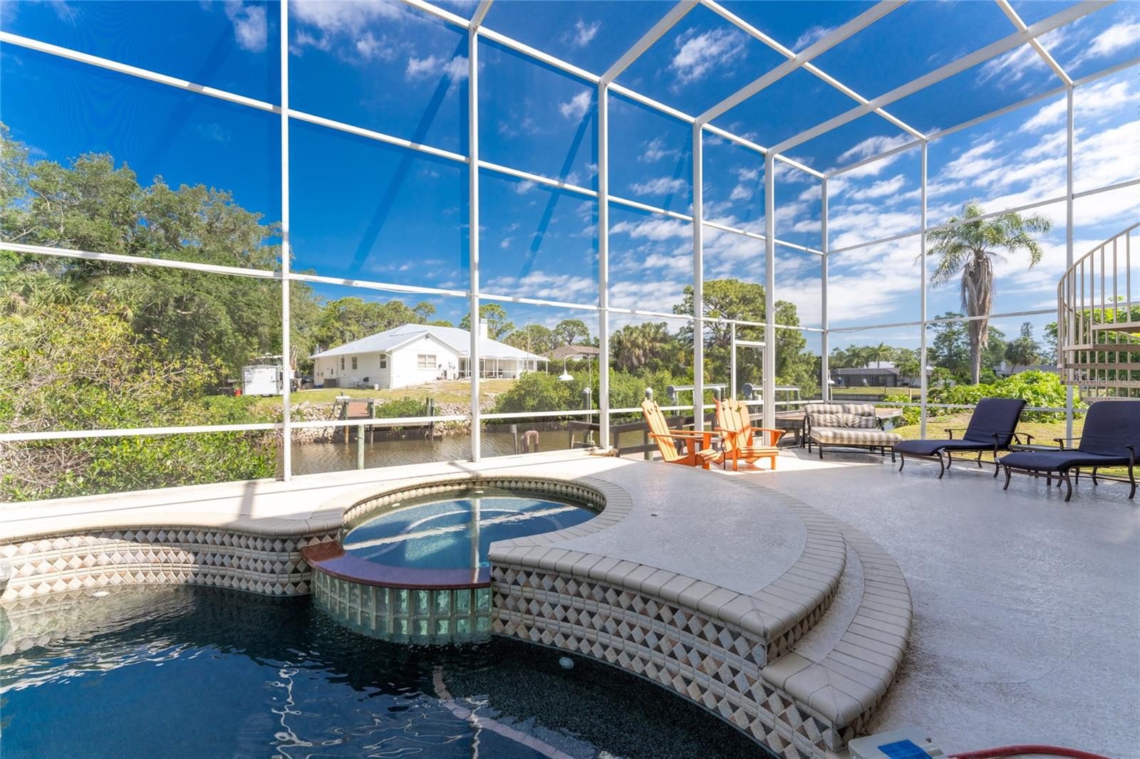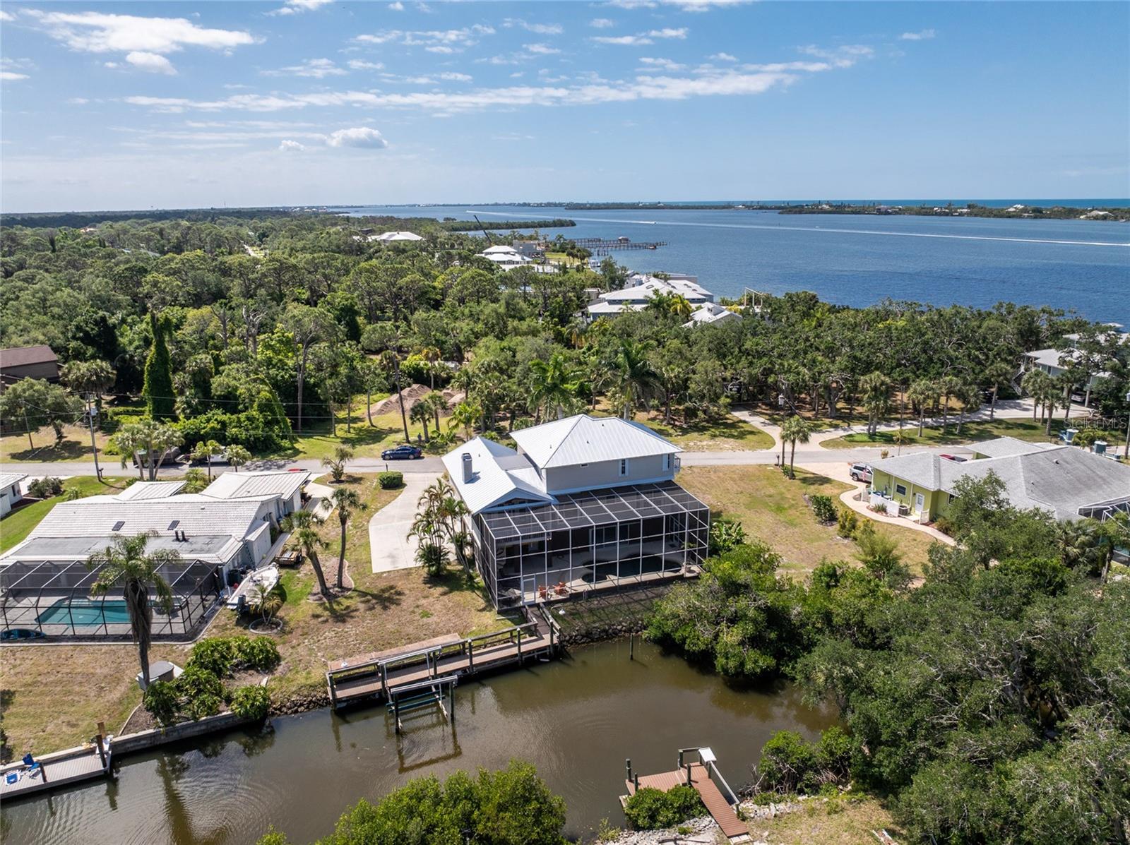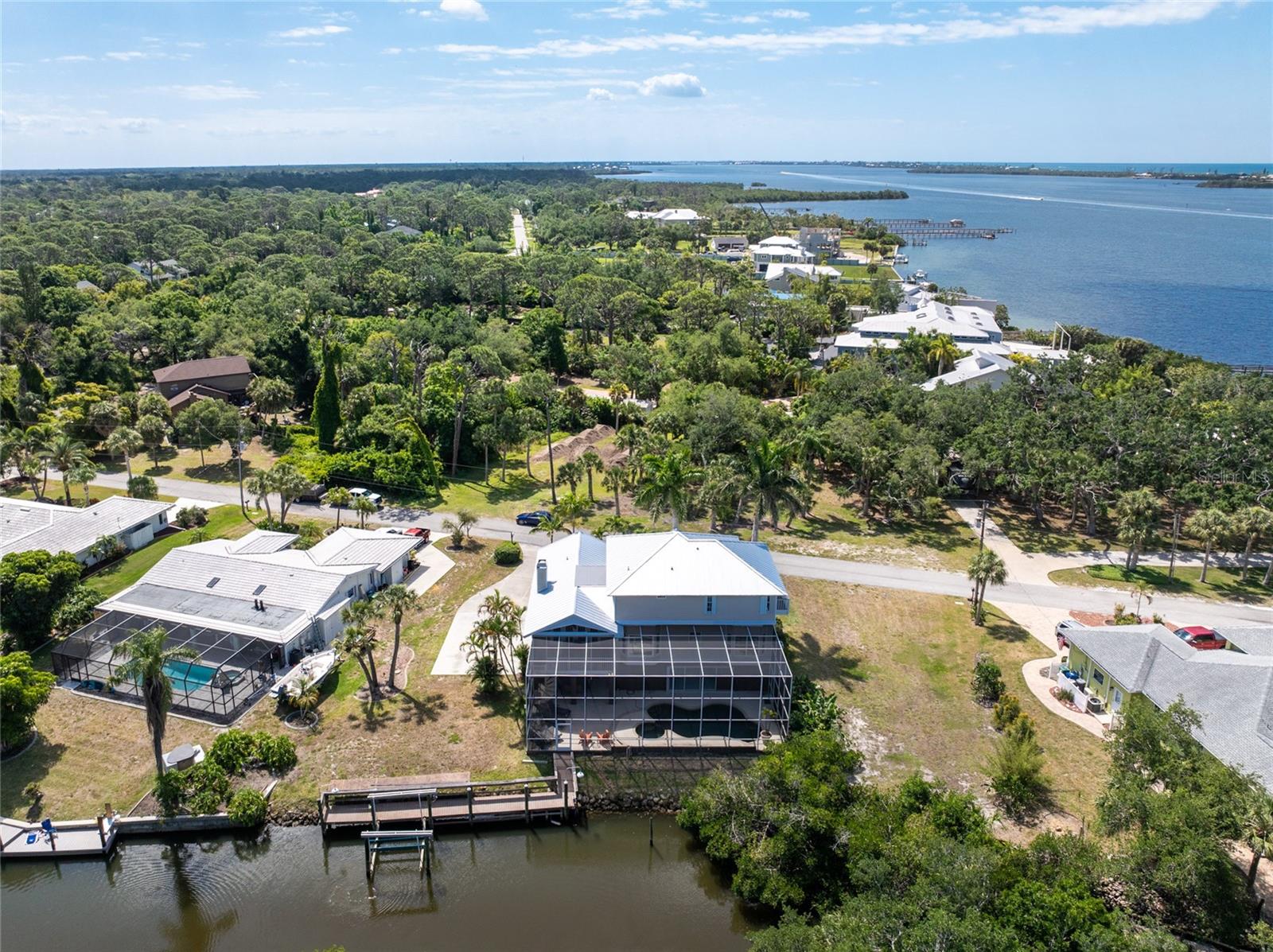 NEW 2023 STANDING SEAM METAL ROOF! TURN-KEY OPTIONAL! This custom-built WATERFRONT KEY WEST STYLE POOL HOME is a rare gem that could become your personal paradise. Situated in a highly sought-after neighborhood with many million-dollar properties, this stunning residence is conveniently located less than 1,000 feet from the Lemon Bay Intracoastal Waterway with no fixed bridges to the Gulf of Mexico. Boasting an oversized dock with a 13,000 LB. lift for your boat and ample space for guest's to tie up while enjoying the large pool or cleaning today's catch. This location is prime for waterfront adventures exploring top-notch inshore and offshore fishing spots, numerous sandbars, islands, and waterfront dining options. INSIDE and up the impressive entryway, this spacious home offers almost 3,000 square feet of living space, perfect for accommodating your family and guests. The main level includes a charming, vaulted ceiling bedroom with an en-suite bathroom, a billiard room, a formal dining room with a bay window, a large utility room, and an additional guest bathroom. The cozy kitchen features quartz countertops, a separate ice maker, a double oven, and a backyard view. You can cook while keeping an eye on the pool and have quick access to the SECOND-FLOOR PORCH with spiral staircase down. The breakfast bar and informal eating nook flow easily with this space and the family room that features a WOOD-BURNING FIREPLACE, CUSTOM BAR with wine refrigerator and French doors. On the top floor, the MASTER SUITE features a balcony for sunset views, custom office/library, walk-in closets, dual sinks, jetted tub and walk-in shower. The THIRD AND FOURTH BEDROOMS are located on this floor as well and share a jack and jill bath. DOWNSTAIRS, is the THREE CAR GARAGE and 1,000 SQUARE FOOT BONUS ROOM with pocket sliding glass doors that open onto your lanai. This versatile space could serve as an entertainment area, home gym, game room, or extra storage. OUTSIDE, the TWO STORY newly remodeled ALUMINUM SCREEN CAGE is where everyone will want to be - framing the sparkling, custom HEATED POOL + SPA with ample entertaining space surrounding it. Additional features include LOW FLOOD INSURANCE COSTS, NEW HVACS, oak wood floors, sprinkler system, hurricane shutters, NEW POOL EQUIPMENT and added cell foam insulation. Sellers willing to negotiate the home turn key for buyer convenience and easy enjoyment! Call today to schedule your private viewing. They aren’t making any more waterfront property & this home is one of a kind.