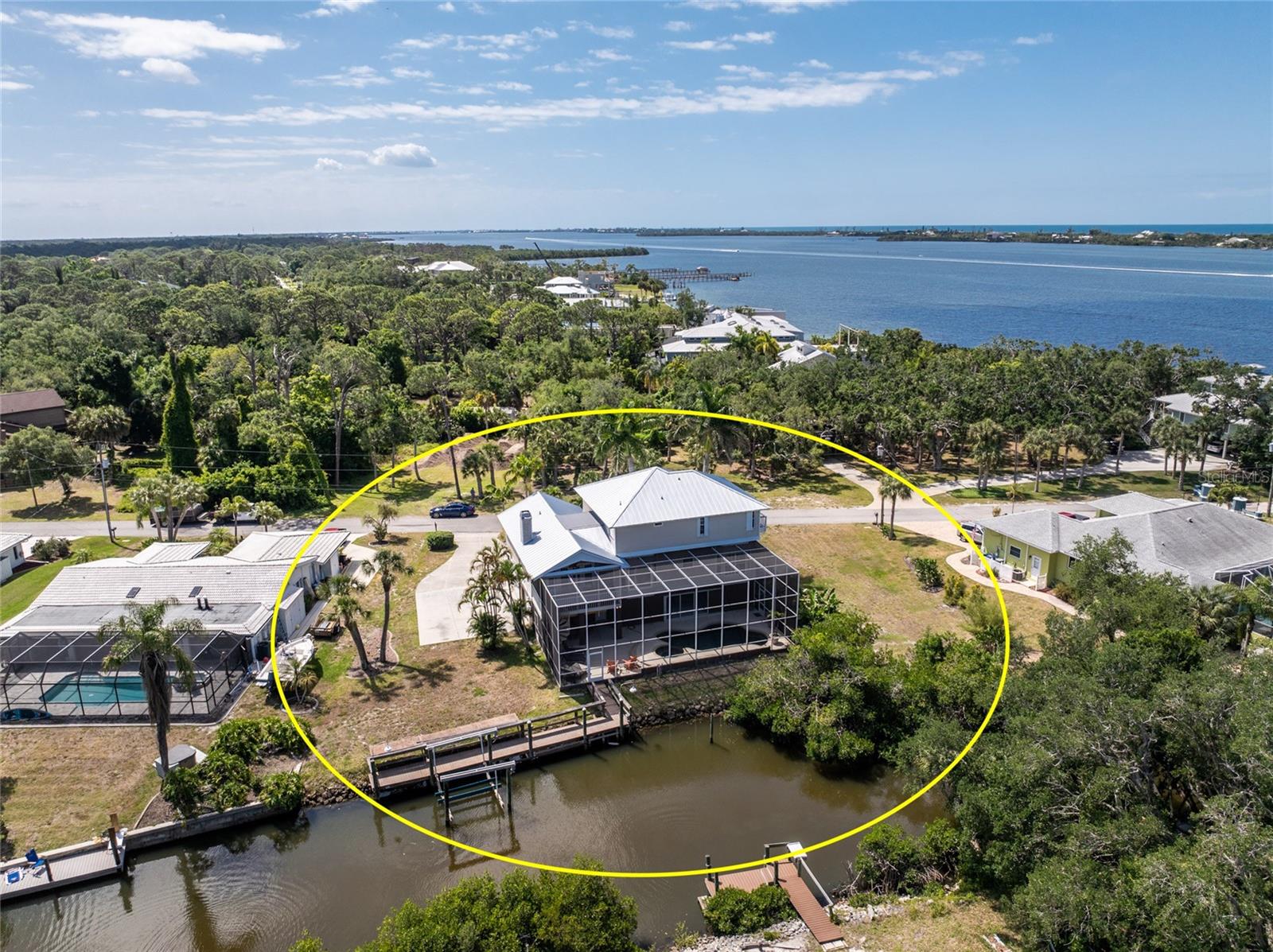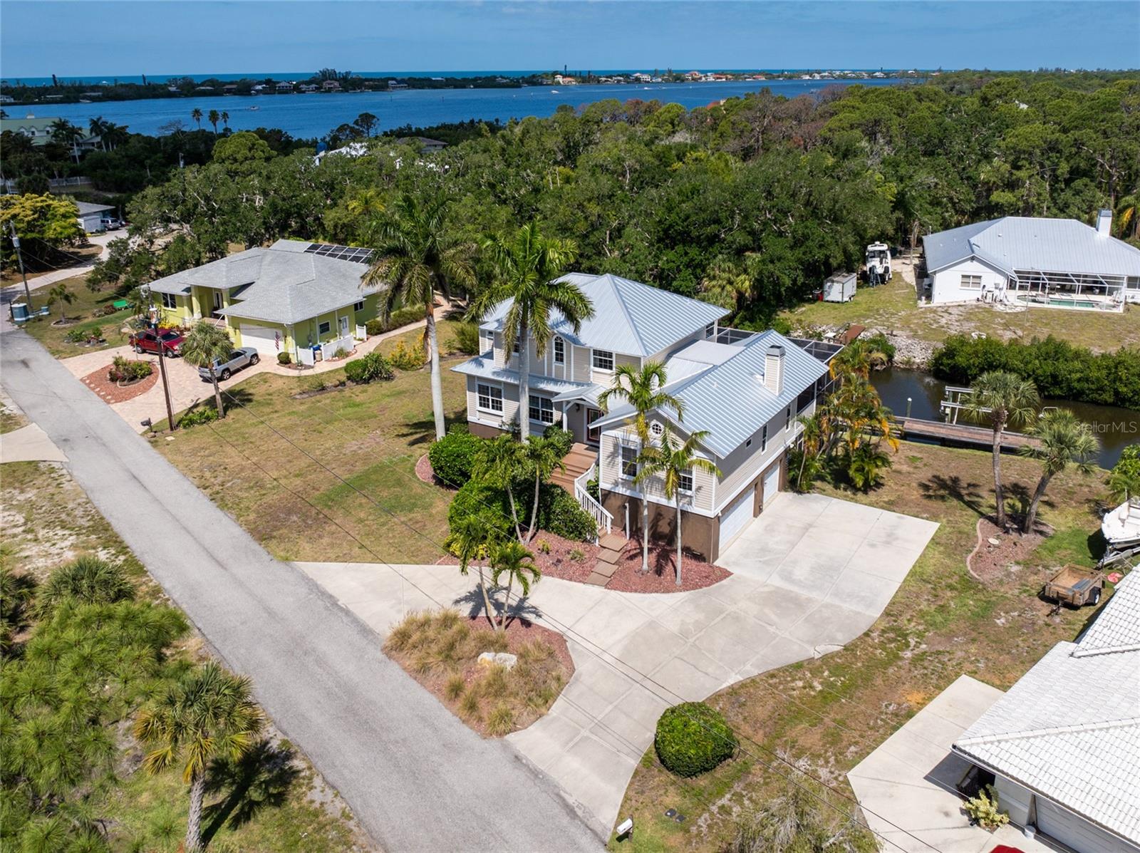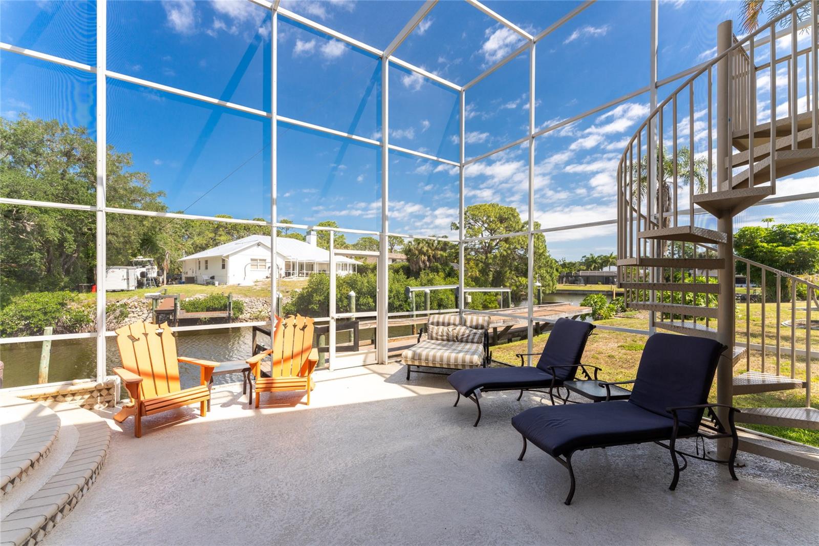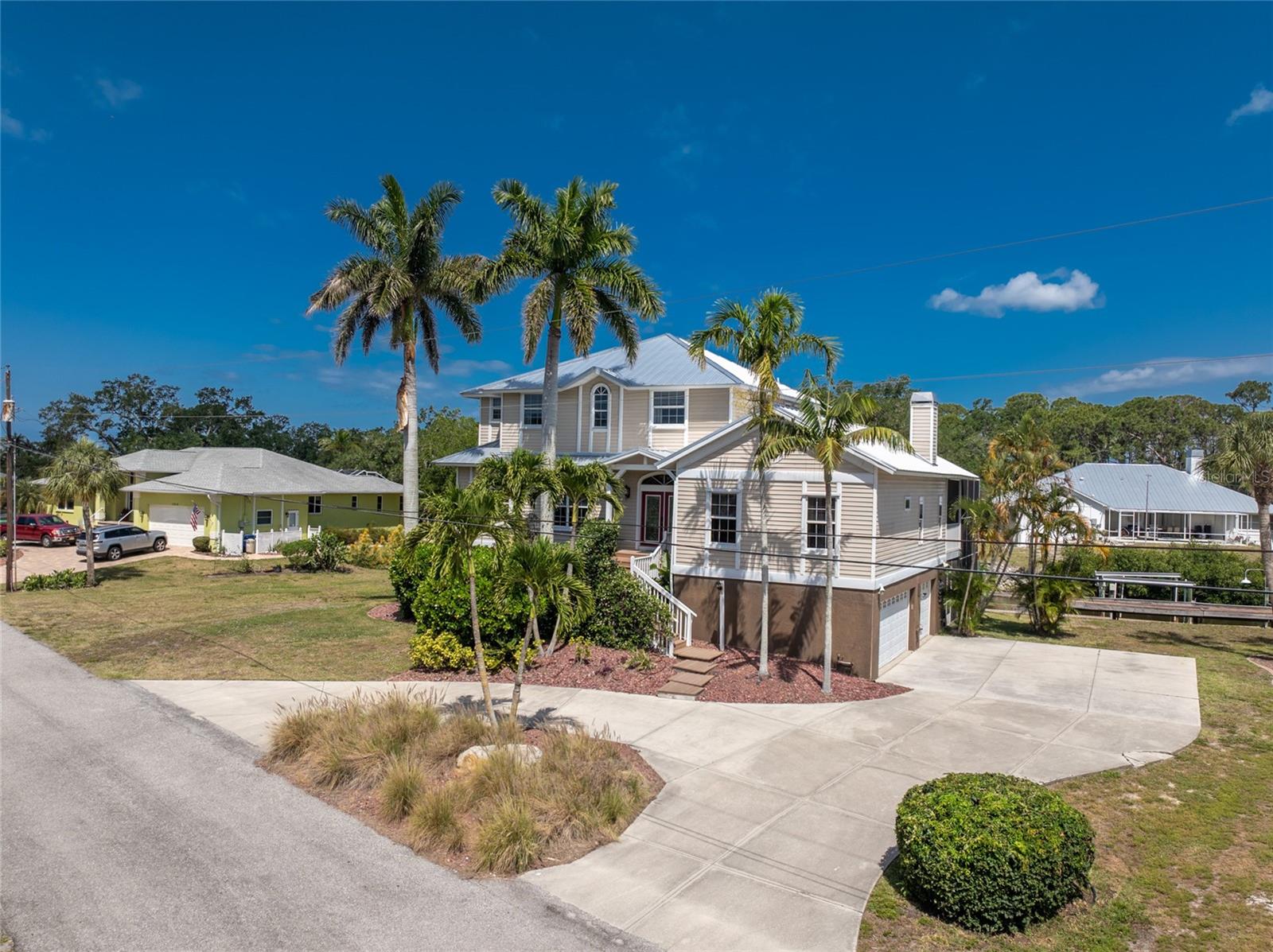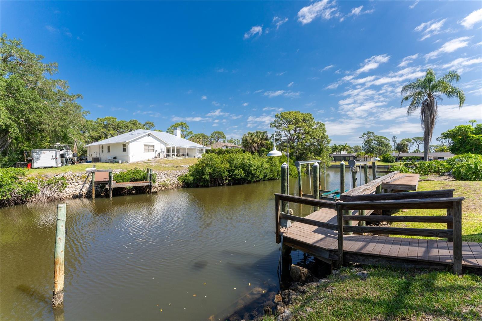 NEW 2023 STANDING SEAM METAL ROOF! TURN-KEY OPTIONAL! This custom-built WATERFRONT KEY WEST STYLE POOL HOME is a rare gem that could become your personal paradise. Situated in a highly sought-after neighborhood with many million-dollar properties, this stunning residence is conveniently located less than 1,000 feet from the Lemon Bay Intracoastal Waterway with no fixed bridges to the Gulf of Mexico. Boasting an oversized dock with a 13,000 LB. lift for your boat and ample space for guest's to tie up while enjoying the large pool or cleaning today's catch. This location is prime for waterfront adventures exploring top-notch inshore and offshore fishing spots, numerous sandbars, islands, and waterfront dining options. INSIDE and up the impressive entryway, this spacious home offers almost 3,000 square feet of living space, perfect for accommodating your family and guests. The main level includes a charming, vaulted ceiling bedroom with an en-suite bathroom, a billiard room, a formal dining room with a bay window, a large utility room, and an additional guest bathroom. The cozy kitchen features quartz countertops, a separate ice maker, a double oven, and a backyard view. You can cook while keeping an eye on the pool and have quick access to the SECOND-FLOOR PORCH with spiral staircase down. The breakfast bar and informal eating nook flow easily with this space and the family room that features a WOOD-BURNING FIREPLACE, CUSTOM BAR with wine refrigerator and French doors. On the top floor, the MASTER SUITE features a balcony for sunset views, custom office/library, walk-in closets, dual sinks, jetted tub and walk-in shower. The THIRD AND FOURTH BEDROOMS are located on this floor as well and share a jack and jill bath. DOWNSTAIRS, is the THREE CAR GARAGE and 1,000 SQUARE FOOT BONUS ROOM with pocket sliding glass doors that open onto your lanai. This versatile space could serve as an entertainment area, home gym, game room, or extra storage. OUTSIDE, the TWO STORY newly remodeled ALUMINUM SCREEN CAGE is where everyone will want to be - framing the sparkling, custom HEATED POOL + SPA with ample entertaining space surrounding it. Additional features include LOW FLOOD INSURANCE COSTS, NEW HVACS, oak wood floors, sprinkler system, hurricane shutters, NEW POOL EQUIPMENT and added cell foam insulation. Sellers willing to negotiate the home turn key for buyer convenience and easy enjoyment! Call today to schedule your private viewing. They aren’t making any more waterfront property & this home is one of a kind.