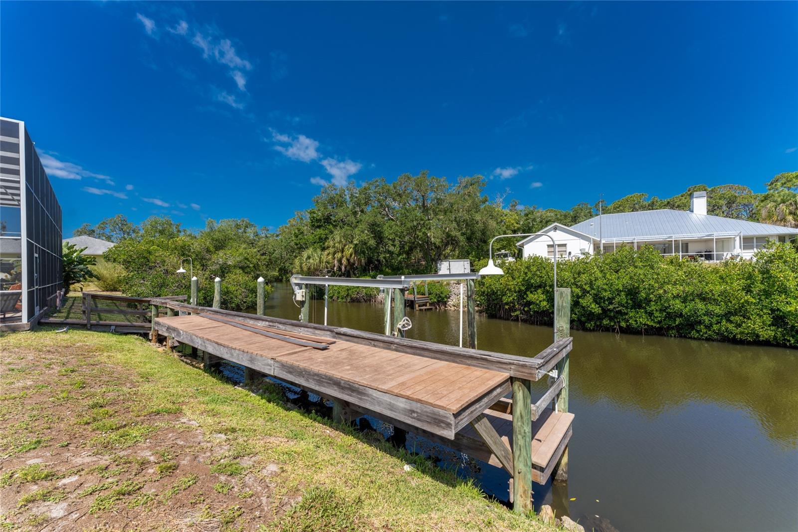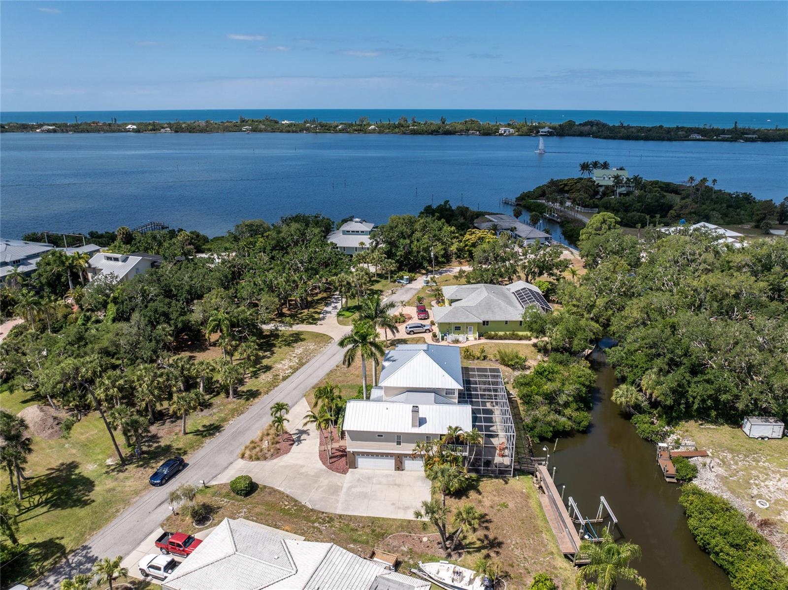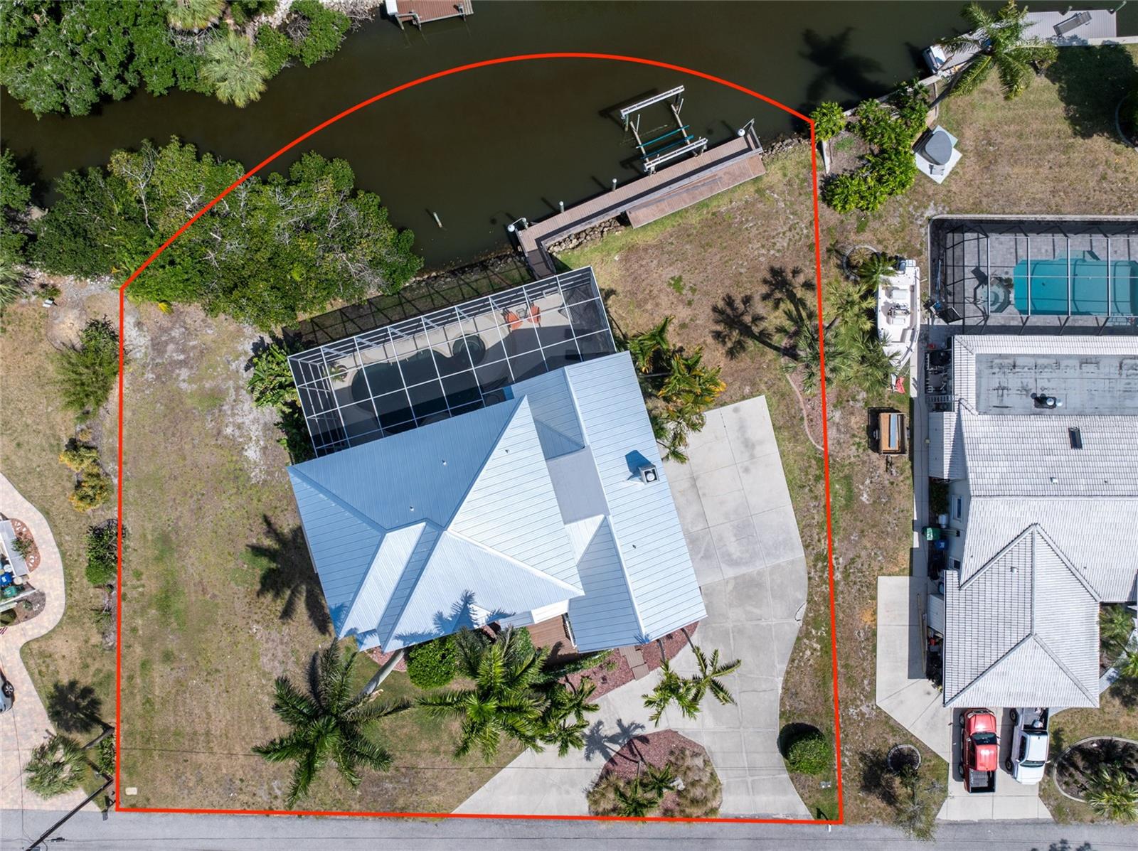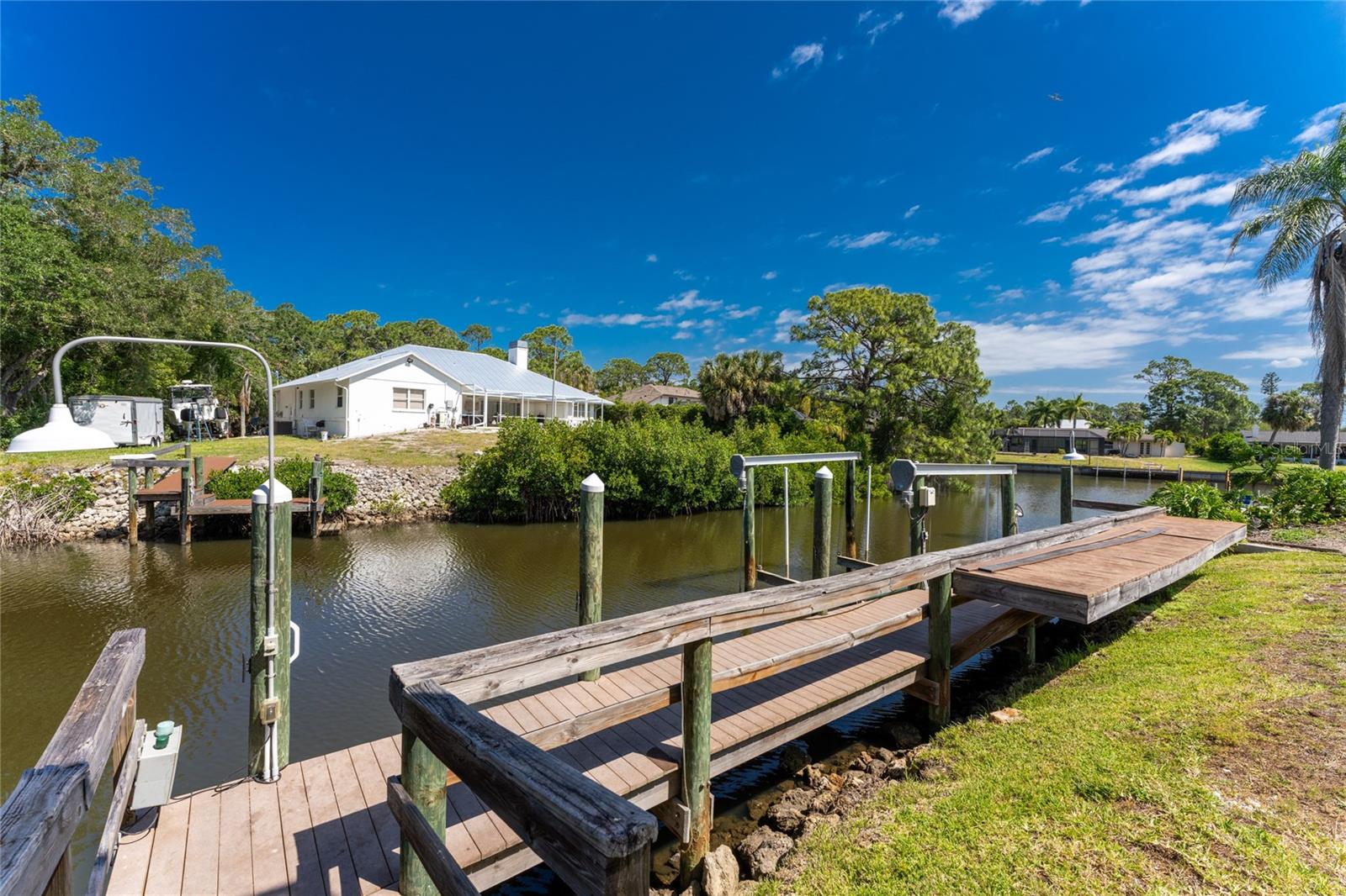 NEW 2023 STANDING SEAM METAL ROOF! TURN-KEY OPTIONAL! This custom-built WATERFRONT KEY WEST STYLE POOL HOME is a rare gem that could become your personal paradise. Situated in a highly sought-after neighborhood with many million-dollar properties, this stunning residence is conveniently located less than 1,000 feet from the Lemon Bay Intracoastal Waterway with no fixed bridges to the Gulf of Mexico. Boasting an oversized dock with a 13,000 LB. lift for your boat and ample space for guest's to tie up while enjoying the large pool or cleaning today's catch. This location is prime for waterfront adventures exploring top-notch inshore and offshore fishing spots, numerous sandbars, islands, and waterfront dining options. INSIDE and up the impressive entryway, this spacious home offers almost 3,000 square feet of living space, perfect for accommodating your family and guests. The main level includes a charming, vaulted ceiling bedroom with an en-suite bathroom, a billiard room, a formal dining room with a bay window, a large utility room, and an additional guest bathroom. The cozy kitchen features quartz countertops, a separate ice maker, a double oven, and a backyard view. You can cook while keeping an eye on the pool and have quick access to the SECOND-FLOOR PORCH with spiral staircase down. The breakfast bar and informal eating nook flow easily with this space and the family room that features a WOOD-BURNING FIREPLACE, CUSTOM BAR with wine refrigerator and French doors. On the top floor, the MASTER SUITE features a balcony for sunset views, custom office/library, walk-in closets, dual sinks, jetted tub and walk-in shower. The THIRD AND FOURTH BEDROOMS are located on this floor as well and share a jack and jill bath. DOWNSTAIRS, is the THREE CAR GARAGE and 1,000 SQUARE FOOT BONUS ROOM with pocket sliding glass doors that open onto your lanai. This versatile space could serve as an entertainment area, home gym, game room, or extra storage. OUTSIDE, the TWO STORY newly remodeled ALUMINUM SCREEN CAGE is where everyone will want to be - framing the sparkling, custom HEATED POOL + SPA with ample entertaining space surrounding it. Additional features include LOW FLOOD INSURANCE COSTS, NEW HVACS, oak wood floors, sprinkler system, hurricane shutters, NEW POOL EQUIPMENT and added cell foam insulation. Sellers willing to negotiate the home turn key for buyer convenience and easy enjoyment! Call today to schedule your private viewing. They aren’t making any more waterfront property & this home is one of a kind.