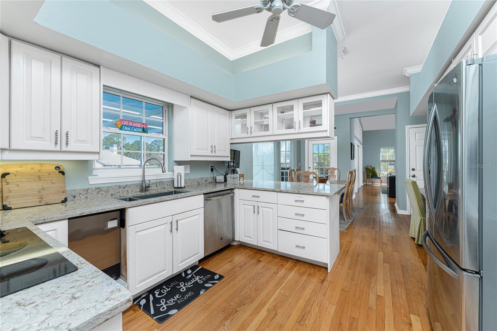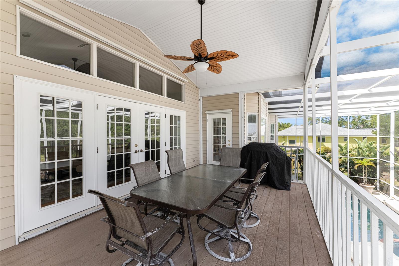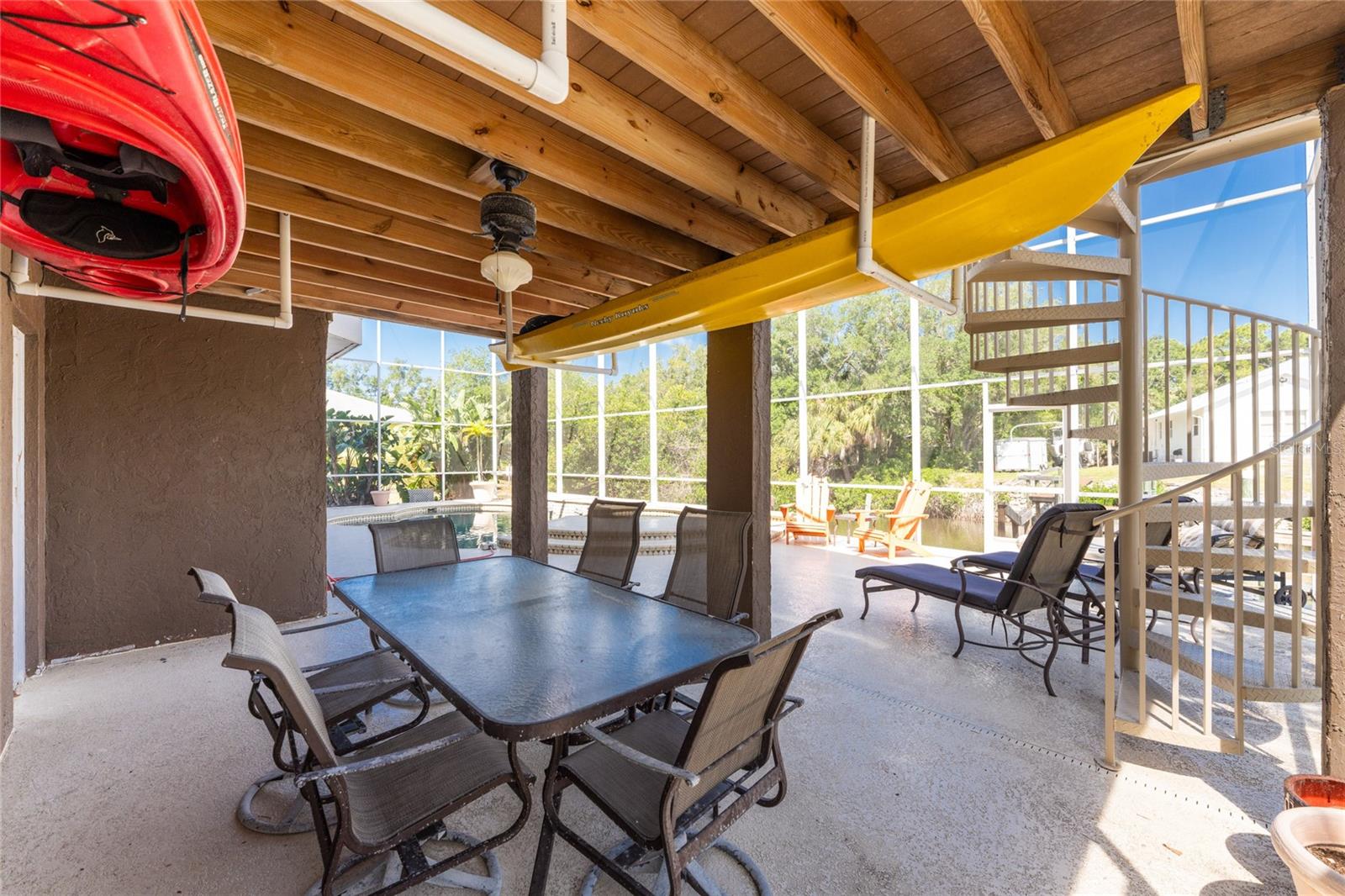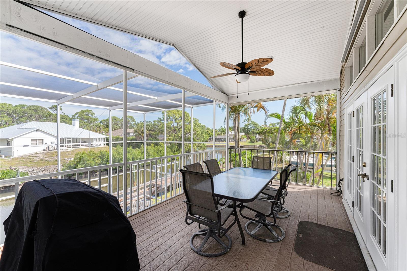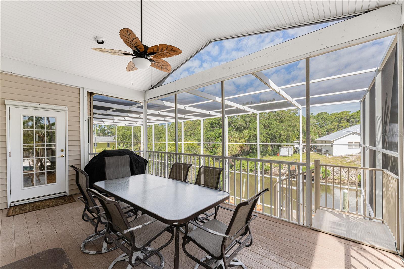 NEW 2023 STANDING SEAM METAL ROOF! TURN-KEY OPTIONAL! This custom-built WATERFRONT KEY WEST STYLE POOL HOME is a rare gem that could become your personal paradise. Situated in a highly sought-after neighborhood with many million-dollar properties, this stunning residence is conveniently located less than 1,000 feet from the Lemon Bay Intracoastal Waterway with no fixed bridges to the Gulf of Mexico. Boasting an oversized dock with a 13,000 LB. lift for your boat and ample space for guest's to tie up while enjoying the large pool or cleaning today's catch. This location is prime for waterfront adventures exploring top-notch inshore and offshore fishing spots, numerous sandbars, islands, and waterfront dining options. INSIDE and up the impressive entryway, this spacious home offers almost 3,000 square feet of living space, perfect for accommodating your family and guests. The main level includes a charming, vaulted ceiling bedroom with an en-suite bathroom, a billiard room, a formal dining room with a bay window, a large utility room, and an additional guest bathroom. The cozy kitchen features quartz countertops, a separate ice maker, a double oven, and a backyard view. You can cook while keeping an eye on the pool and have quick access to the SECOND-FLOOR PORCH with spiral staircase down. The breakfast bar and informal eating nook flow easily with this space and the family room that features a WOOD-BURNING FIREPLACE, CUSTOM BAR with wine refrigerator and French doors. On the top floor, the MASTER SUITE features a balcony for sunset views, custom office/library, walk-in closets, dual sinks, jetted tub and walk-in shower. The THIRD AND FOURTH BEDROOMS are located on this floor as well and share a jack and jill bath. DOWNSTAIRS, is the THREE CAR GARAGE and 1,000 SQUARE FOOT BONUS ROOM with pocket sliding glass doors that open onto your lanai. This versatile space could serve as an entertainment area, home gym, game room, or extra storage. OUTSIDE, the TWO STORY newly remodeled ALUMINUM SCREEN CAGE is where everyone will want to be - framing the sparkling, custom HEATED POOL + SPA with ample entertaining space surrounding it. Additional features include LOW FLOOD INSURANCE COSTS, NEW HVACS, oak wood floors, sprinkler system, hurricane shutters, NEW POOL EQUIPMENT and added cell foam insulation. Sellers willing to negotiate the home turn key for buyer convenience and easy enjoyment! Call today to schedule your private viewing. They aren’t making any more waterfront property & this home is one of a kind.