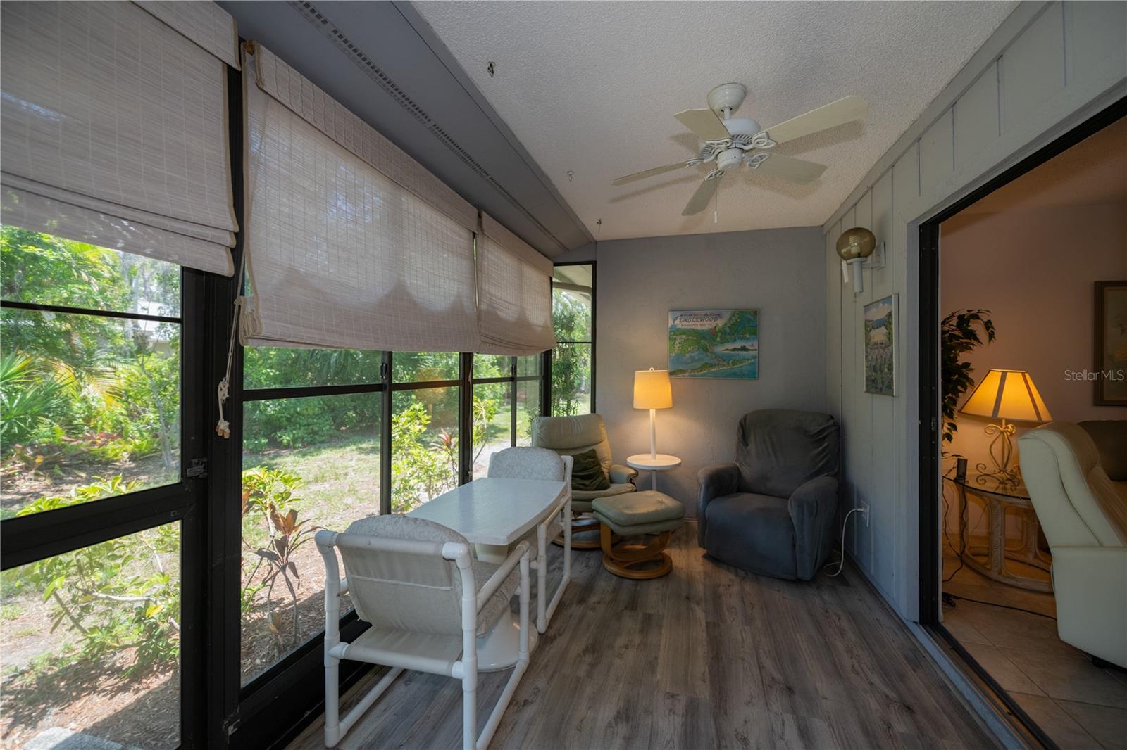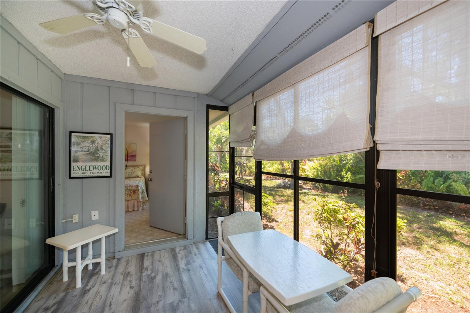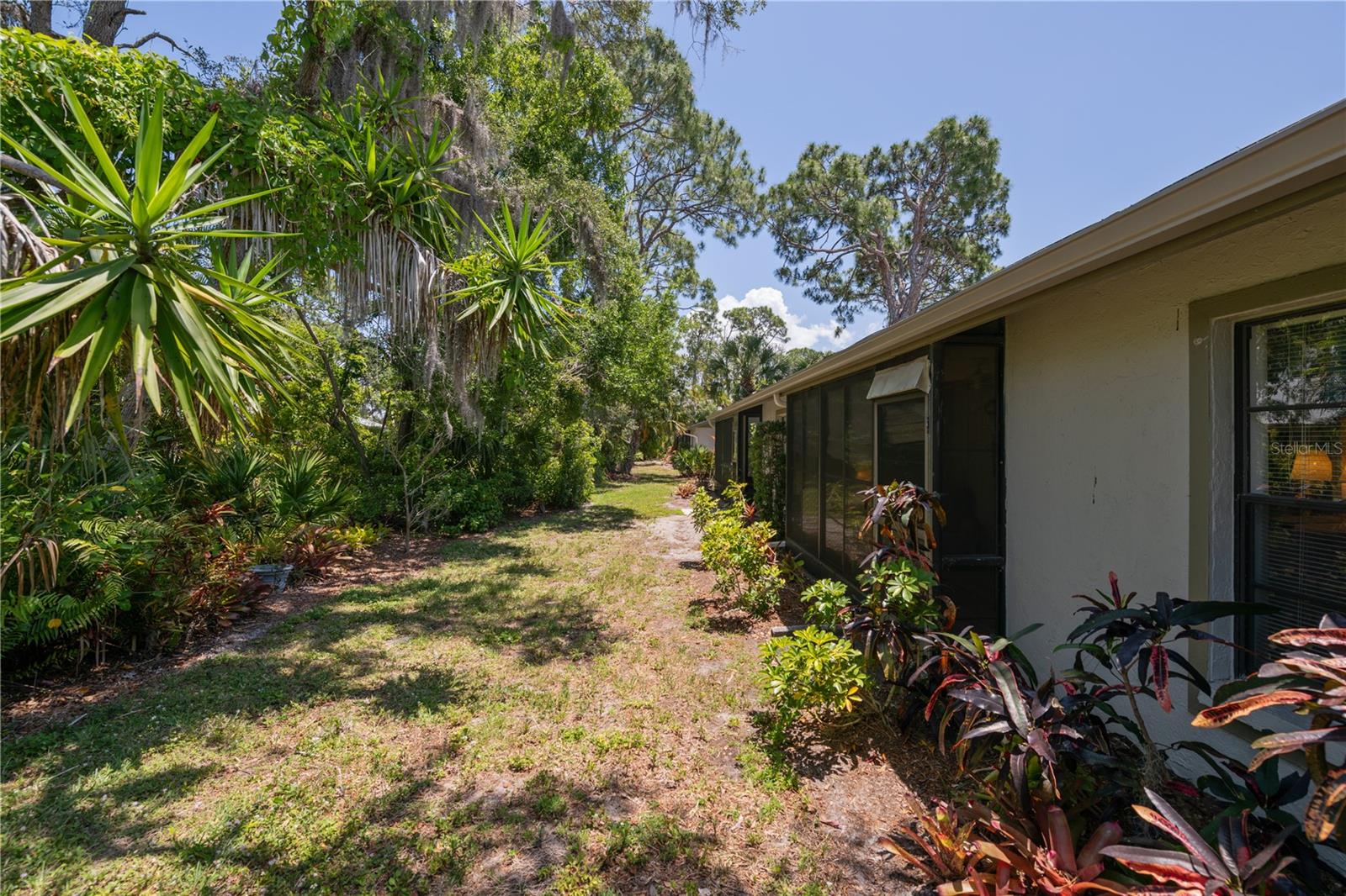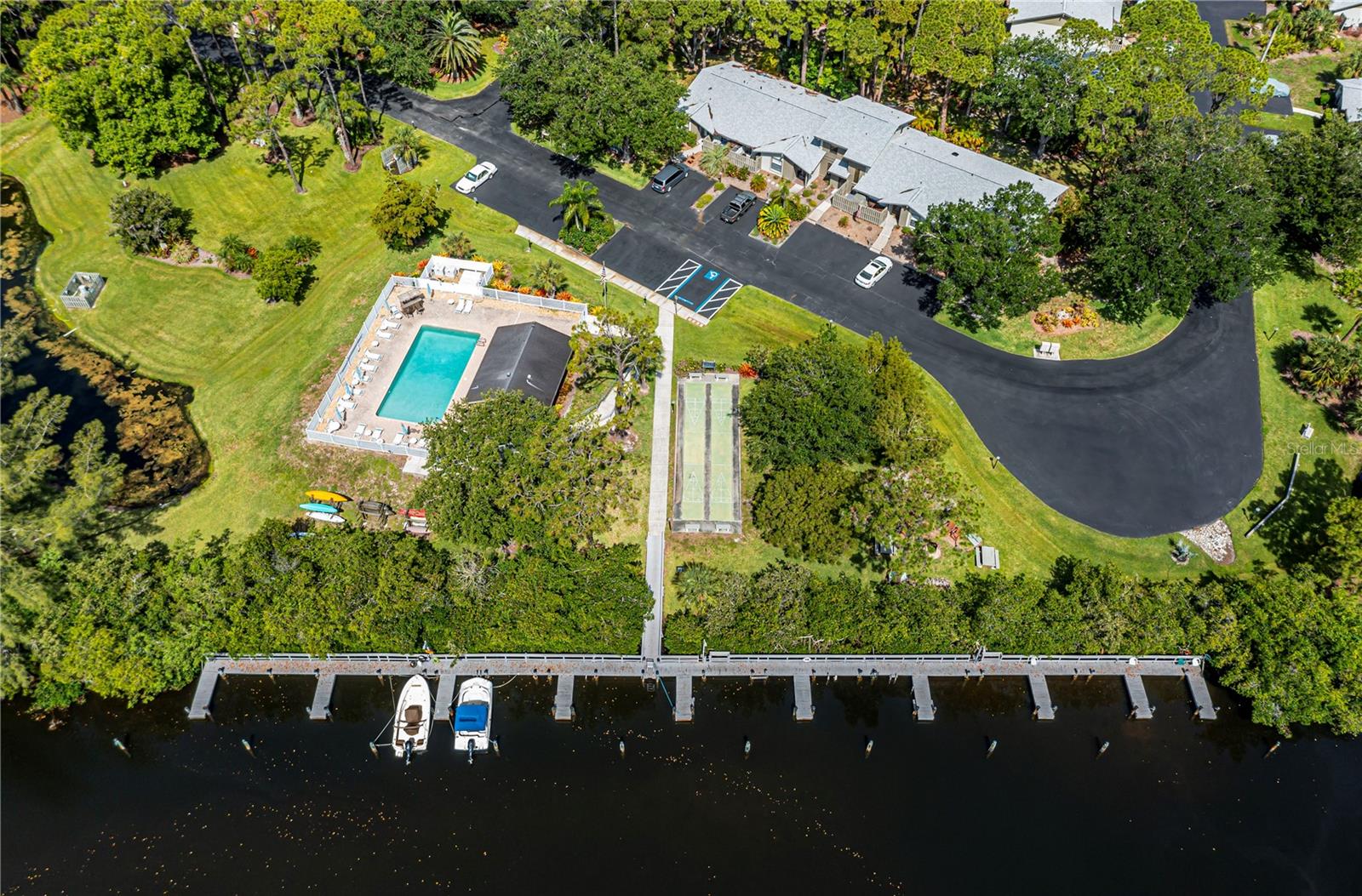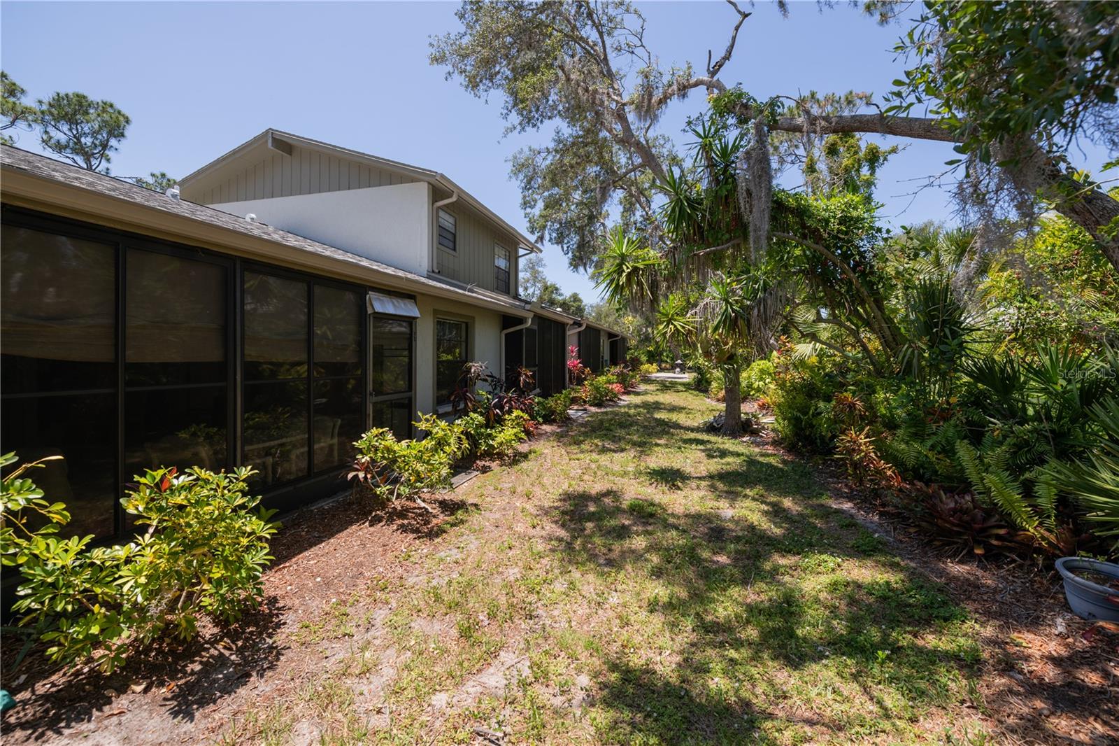 Olde Florida at its finest!!! And a perfect spot to spend your retirement years whether you are a snowbird or full time resident! This beautiful, well-kept secret has it all. An abundance of natural foliage surrounds this neighborhood lending the perfect Olde Florida setting. Situated on Gottfried Creek, there are 15 docks for the owners and the Creek goes to Lemon Bay and ultimately the Gulf of Mexico. For the kayakers, there is a kayak rack giving you another wonderful way to spend a day on the water! Land lovers - there is a large community pool with plenty of patio space for lounging. A cozy cabana gives you a spot out of the sun - great for playing cards or games and the we can't forget the Friday night social! Two shuffleboards to keep your competitive spirit going and when you are ready to relax, there are two small lakes and a fire pit - pull up your chair with good friends or a good book! This setting is tucked away and off the beaten path but within a few minutes of the beach, shopping, medical, cultural or anything else you might want. The bonus is the mint condition, 2 bedroom, 2 bath villa being sold turnkey furnished! The bright and cheerful kithen opens into the dining area and living area giving you an open floorplan. On the rear is an enclosed lanai with screens and plenty of foliage for a private atmosphere. The large primary bedroom includes a private bathroom and a door onto the lanai. A second full bath off the hallway near the guest bedroom is very convenient. This unit is priced to sell - you don't want to miss this opportunity! Call today to view.