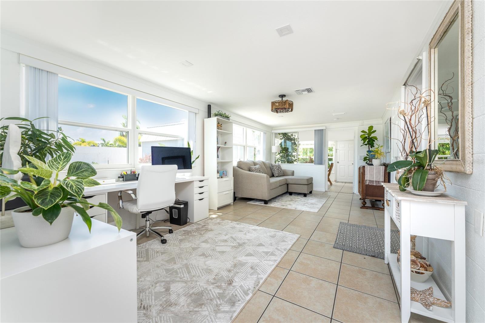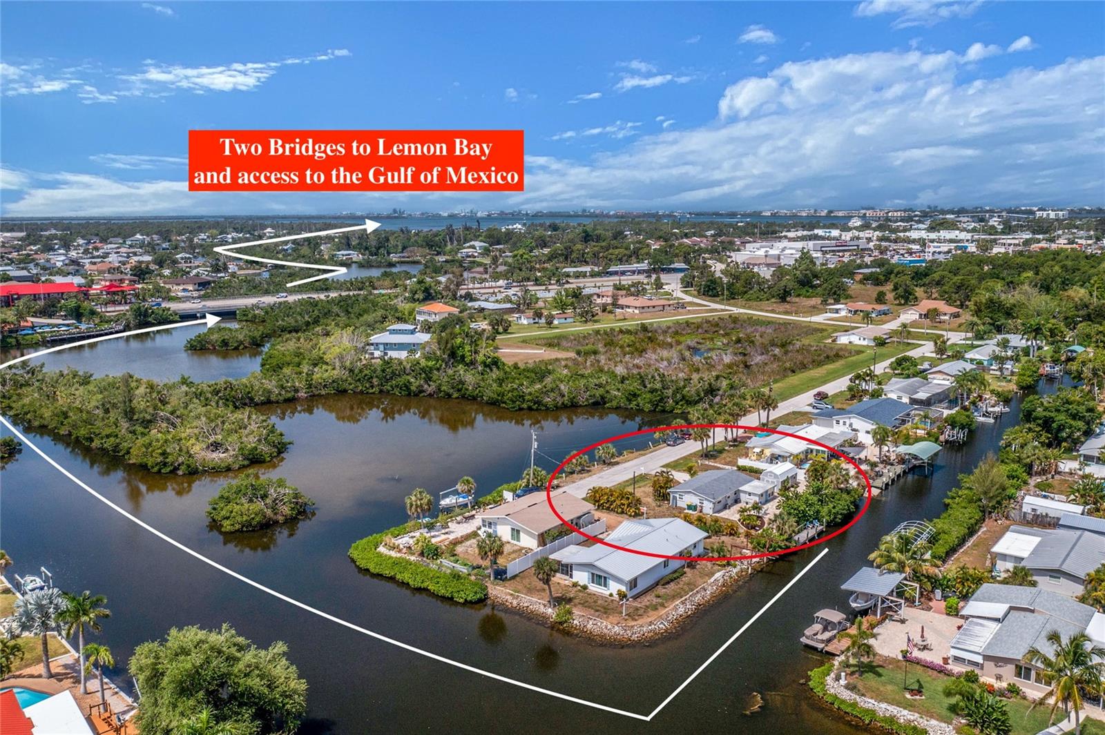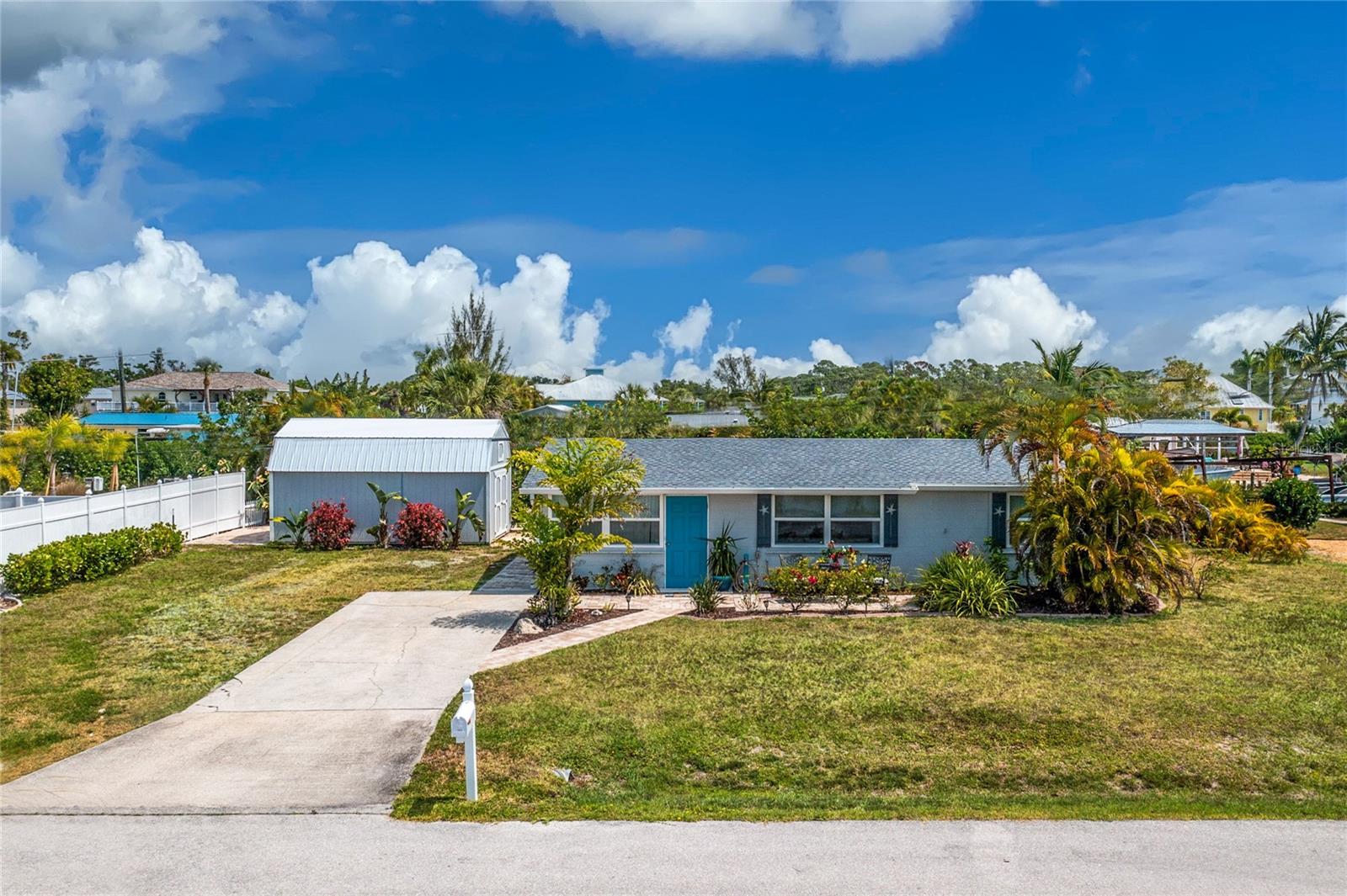 Exuding a CHARMING COASTAL STYLE with UPDATES GALORE, this GULF ACCESS home boasts a PICTURESQUE WATERFRONT SETTING in the front and back of the property. Meticulously maintained by the current owner, this property features several sought-after upgrades, such as a 2023 ROOF REPLACEMENT with SWR and SPRAY FOAM INSULATION, NEW DUCT WORK and home hurricane shutters. Upon entering, you will be delighted by the bright, flowing floor plan with a multitude of windows and tile throughout. Currently set up as an office and sitting room, this flex space could be reimagined any way you see fit. The REMODELED KITCHEN showcases white, soft-close, solid wood cabinetry with QUARTZ countertops, custom tile backsplash, NEW 2024 stainless steel appliances and a breakfast bar overlooking the LIVING ROOM WITH WATER VIEWS. Two well-sized bedrooms with built-in closets are tucked on one side of the home with convenient access to the REMODELED BATHROOM and custom, tile walk-in shower. At the back of the home, the ever-popular Florida Room is currently furnished as a dining space with beautiful views of the outdoors. Outside, an EXPANSIVE PAVER PATIO is the perfect space for outdoor entertaining with a fire pit and multiple areas for seating, lounging and enjoying! Just imagine the outdoor parties you can host here with plenty of space for parking by car or boat. With 100 feet of waterfront on the canal you have plenty of dock space to install a boat lift, kayak launch, a fish cleaning station and more! Just two bridges leads you to Lemon Bay and the intracoastal waterway for access to the world’s best islands, beaches and off shore fishing in The Gulf of Mexico or enjoy an array of inshore, backwater fishing right in your backyard! The oversized 12x20 SHED is exactly what you need for storing your fishing/beach gear, lawn equipment, bikes – you name it. NO DEED RESTRICTIONS means you can enjoy RV or BOAT trailer parking and install a privacy fence if you so wish. Don’t delay – this is the affordable slice of paradise you have been searching for!
