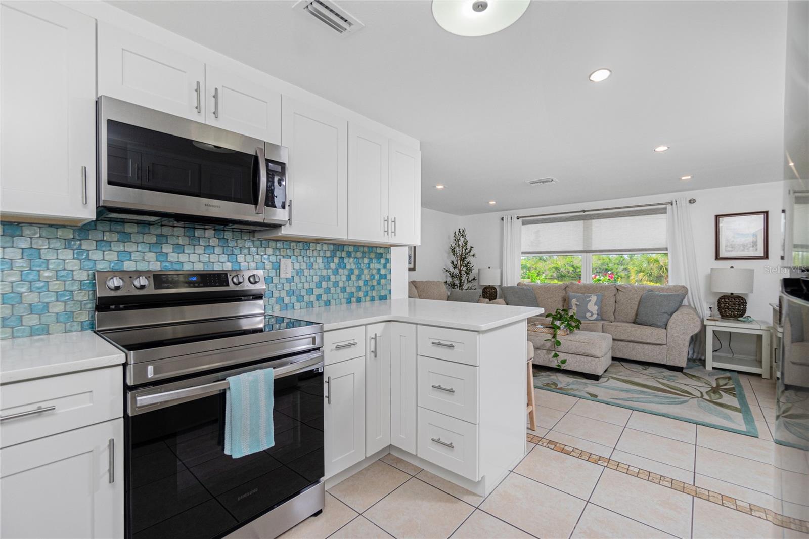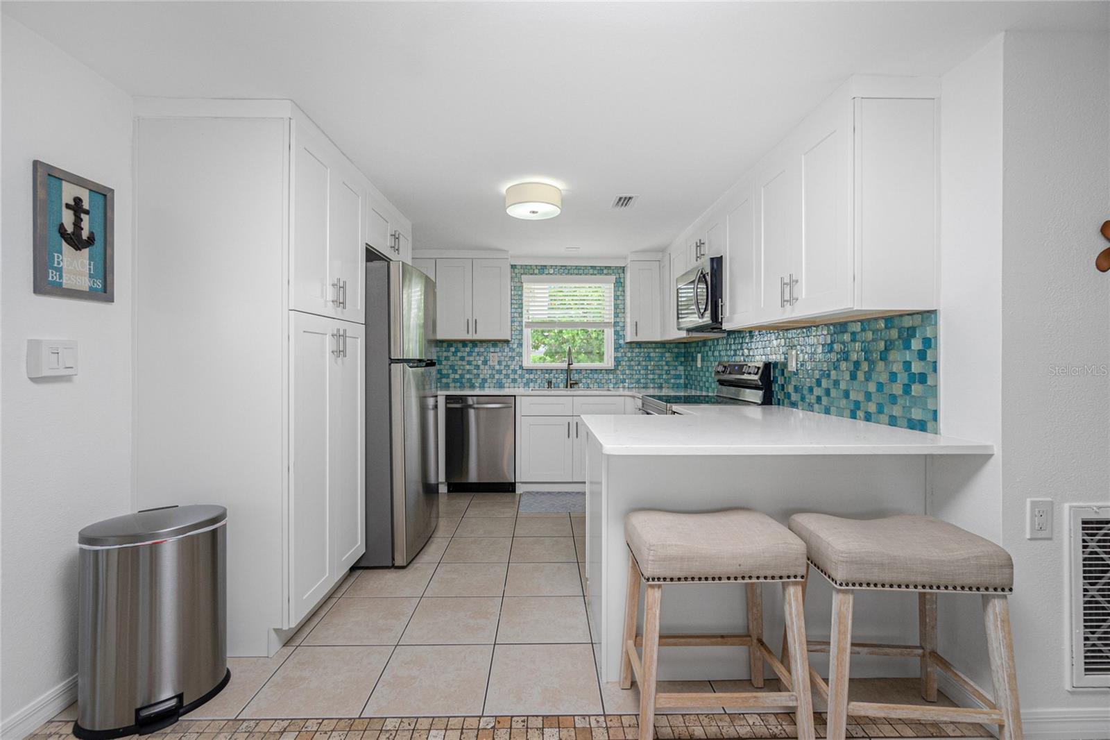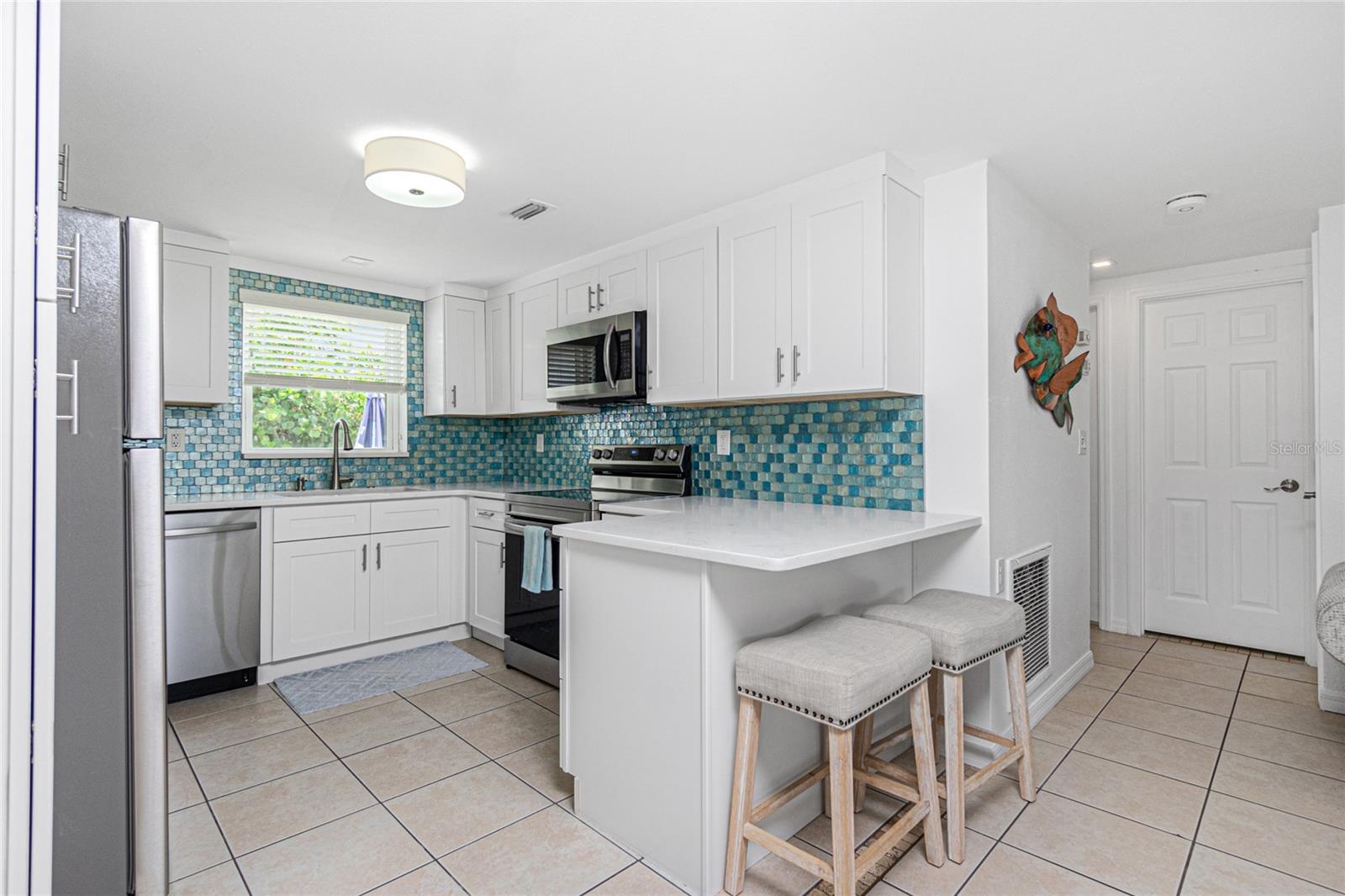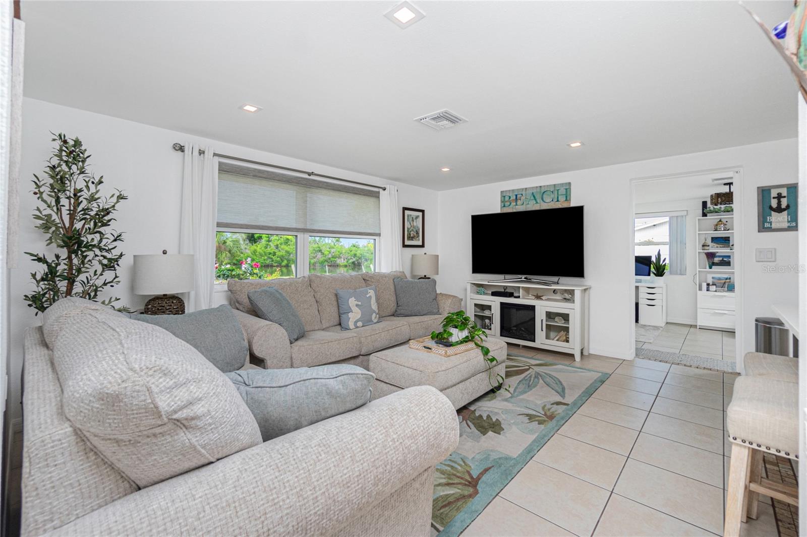 Exuding a CHARMING COASTAL STYLE with UPDATES GALORE, this GULF ACCESS home boasts a PICTURESQUE WATERFRONT SETTING in the front and back of the property. Meticulously maintained by the current owner, this property features several sought-after upgrades, such as a 2023 ROOF REPLACEMENT with SWR and SPRAY FOAM INSULATION, NEW DUCT WORK and home hurricane shutters. Upon entering, you will be delighted by the bright, flowing floor plan with a multitude of windows and tile throughout. Currently set up as an office and sitting room, this flex space could be reimagined any way you see fit. The REMODELED KITCHEN showcases white, soft-close, solid wood cabinetry with QUARTZ countertops, custom tile backsplash, NEW 2024 stainless steel appliances and a breakfast bar overlooking the LIVING ROOM WITH WATER VIEWS. Two well-sized bedrooms with built-in closets are tucked on one side of the home with convenient access to the REMODELED BATHROOM and custom, tile walk-in shower. At the back of the home, the ever-popular Florida Room is currently furnished as a dining space with beautiful views of the outdoors. Outside, an EXPANSIVE PAVER PATIO is the perfect space for outdoor entertaining with a fire pit and multiple areas for seating, lounging and enjoying! Just imagine the outdoor parties you can host here with plenty of space for parking by car or boat. With 100 feet of waterfront on the canal you have plenty of dock space to install a boat lift, kayak launch, a fish cleaning station and more! Just two bridges leads you to Lemon Bay and the intracoastal waterway for access to the world’s best islands, beaches and off shore fishing in The Gulf of Mexico or enjoy an array of inshore, backwater fishing right in your backyard! The oversized 12x20 SHED is exactly what you need for storing your fishing/beach gear, lawn equipment, bikes – you name it. NO DEED RESTRICTIONS means you can enjoy RV or BOAT trailer parking and install a privacy fence if you so wish. Don’t delay – this is the affordable slice of paradise you have been searching for!