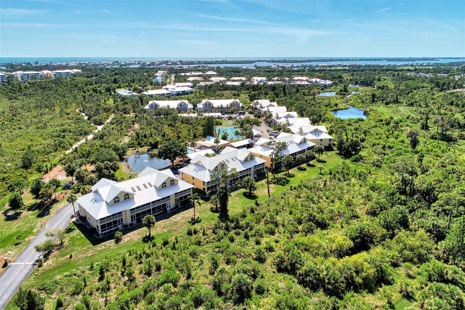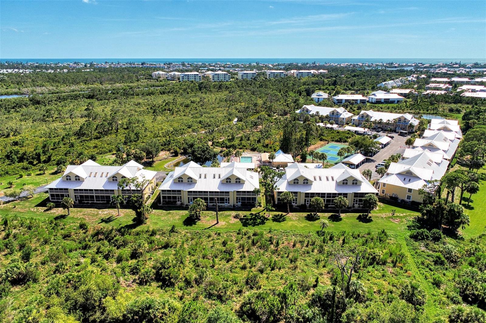 Unique Opportunity to Own a Stunning Condo in The Sanctuary at Cape Haze! This beautiful ground-floor unit awaits an owner ready to make it their own with the option of being Turn-Key Furnished. This unit has undergone the replacement of drywall and ceilings, new lanai screens, and a brand new metal roof! Walls have been freshly painted and new carpet in the living/dining area and the primary bedroom. The spacious kitchen features ample cabinet space, stainless steel appliances, and corian countertops. A new under-mount kitchen sink and extra cabinets under the kitchen bar make storage a breeze! The nook area in the kitchen provides a perfect workspace for those working from home or enjoying crafts. Both bedrooms boast walk-in closets and en suite bathrooms. This 55+ community offers ample parking and the community amenities include a tennis/pickleball court, bocce ball court, and a clubhouse with a large heated pool and deck, perfect for basking in the sun. If being social and having activities daily at your door step this is the place for you! Enjoy a more peaceful atmosphere this units lanai looks overe the Lemon Bay Conservancy land and is a nature lovers dream! Conveniently located near restaurants, golf courses, marinas, and renowned fishing spots and beaches, this community offers the quintessential Florida lifestyle. Schedule your private showing today Conveniently located just a short drive from Boca Grande and Manasota Key, and close to HCA Hospital and shopping, this unit is perfect for anyone looking to create their own piece of Florida paradise.