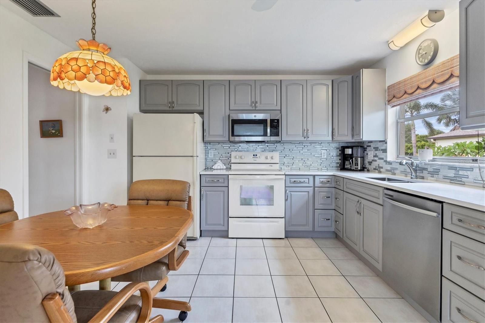 Welcome to your dream villa in the desirable 55+ Foxwood community! This stunning 2 bedroom, 2 bath home with a 2-car garage has everything you've been looking for and more. As you step inside, you'll be greeted by an open floor plan featuring a cozy fireplace and pocket sliding glass doors to the Florida room. The updated kitchen is a chef's delight, boasting quartz countertops, plenty of cabinet space, a stylish tile backsplash, and tile flooring. The home also includes luxury vinyl flooring in key areas for easy maintenance. The split bedrooms ensure privacy for you and your guests. The master suite offers a peaceful retreat with a spacious walk-in tile shower in the en-suite bathroom. The guest bath features a convenient tub/shower combo. Both bathrooms have been thoughtfully designed for comfort and style. This villa also features a screened front porch with a beautiful lead glass front door, perfect for enjoying your morning coffee. The inside laundry room, complete with washer and dryer, adds to the convenience of this home. Not to be overlooked, the villa comes with a new 2023 roof and hurricane shutters, providing peace of mind and protection from the elements. Located close to Manasota Key, you'll have easy access to four pristine beaches, world-class fishing, golfing, shopping, and dining options. Foxwood community residents enjoy a maintenance-free lifestyle with access to a heated pool, spa, shuffleboard, bocci ball, pickleball, and tennis courts. Additionally, there is a clubhouse that offers a full kitchen for events. Don't miss your chance to own this beautiful villa in the Foxwood community. Schedule your showing today and start living the lifestyle you deserve!