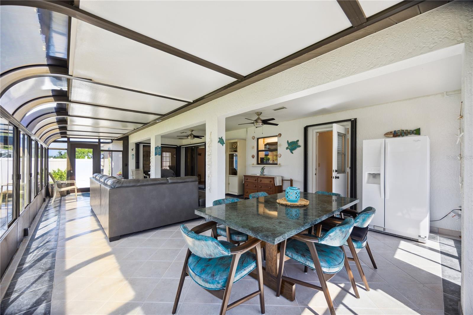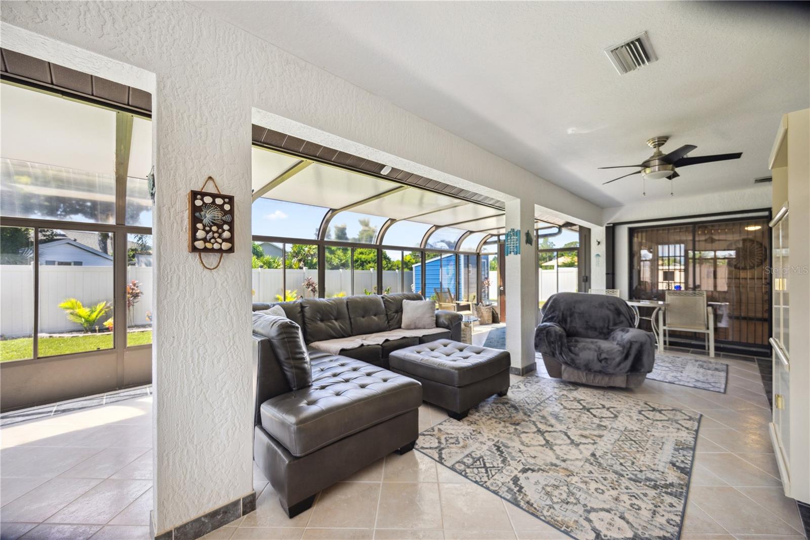 Welcome to 9273 Carnation Avenue in Englewood, Florida! This immaculate 2 bedroom, 2-and-a-half-bathroom home is 2121 square feet including the massive Florda room which is under air! Situated in a desirable X Flood Zone, this beautiful home is move in ready with BRAND NEW ROOF, HVAC system and newer water heater. The septic was recently emptied and inspected. The sellers have taken pride in updating their home with new flooring throughout, new light fixtures and fans, and new bathroom vanities. Home also features easy to close Hurricane accordion shutters, security equipment ready for ADT, and a convenient outdoor shower for those hot Florida days. As you enter through the screened in porch, you will be greeted with a bright and airy open floor plan. The living room, dining room and kitchen offers plenty of space for entertaining and dining. The large kitchen has plenty of counter and cabinet space for all your needs. There is TONS of potential in the massive Florida room. Make it the perfect hang out spot, game room, home office, workshop, or even another bedroom. The possibilities are endless!! The master suite features an en suite bathroom and a HUGE walk-in closet as well as sliders out to the Florida room. The secondary bedroom is spacious and also features its own en suite bathroom! Guests can use the half bath that leads out to the Florida room. Not only is the inside of this home meticulously taken care of, but the outside is also just as immaculate. This home exudes curb appeal! The fully fenced in yard is great for privacy. The shed in the backyard provides extra storage for all your landscaping needs or backyard games! This home features a spacious laundry room and a 2 car garage. With no HOA and plenty of room on the side of the house, you can easily fit your boat or RV. This house is in a prime location, close to beaches, dining, shopping, golf courses, and much more! Don’t wait, this home won’t last long!