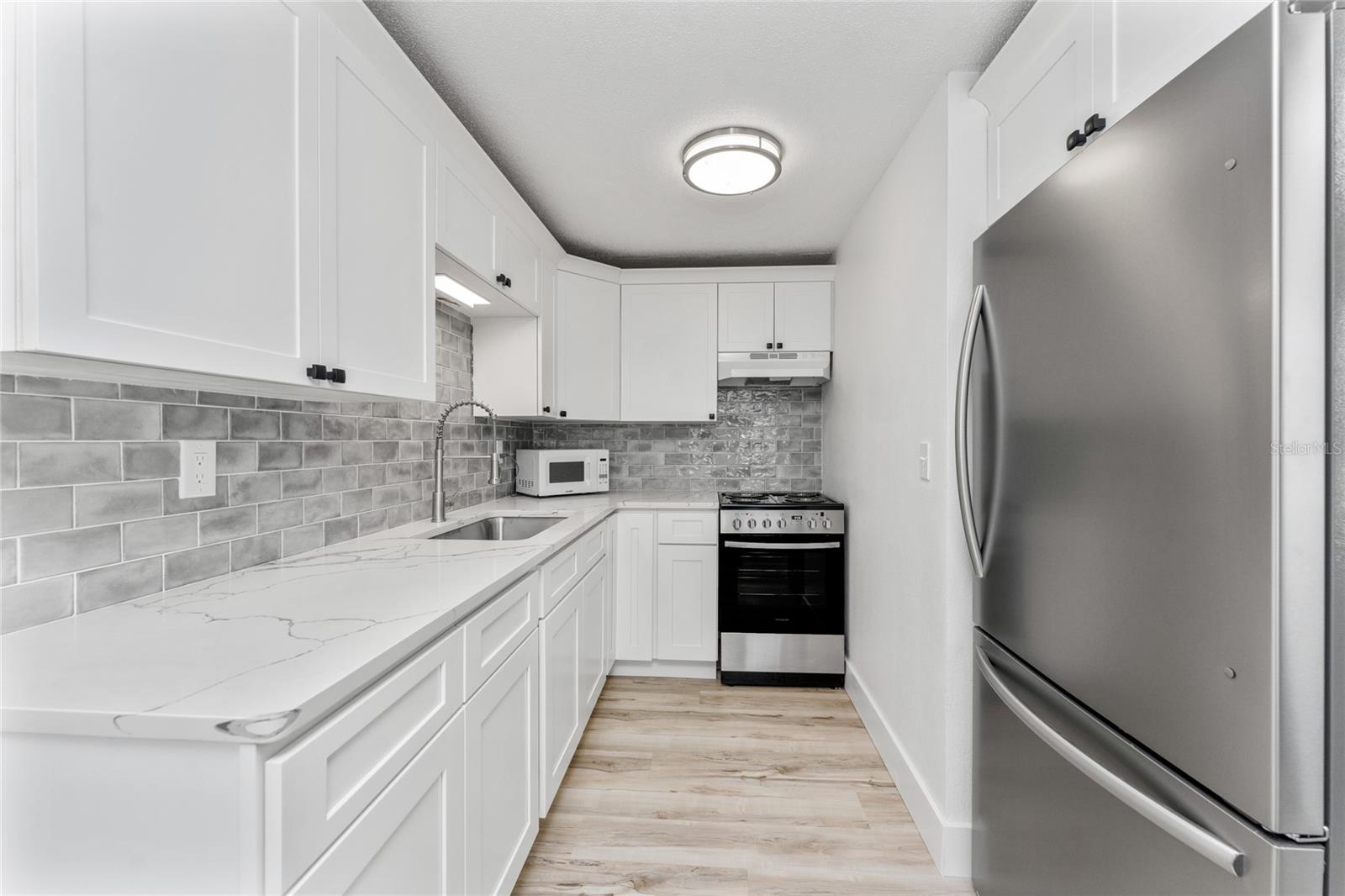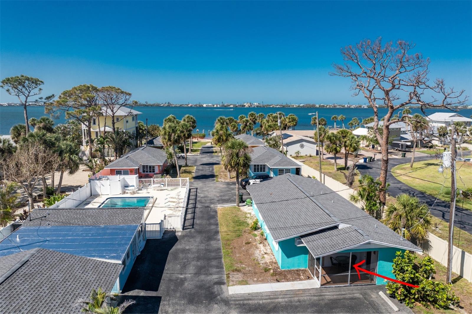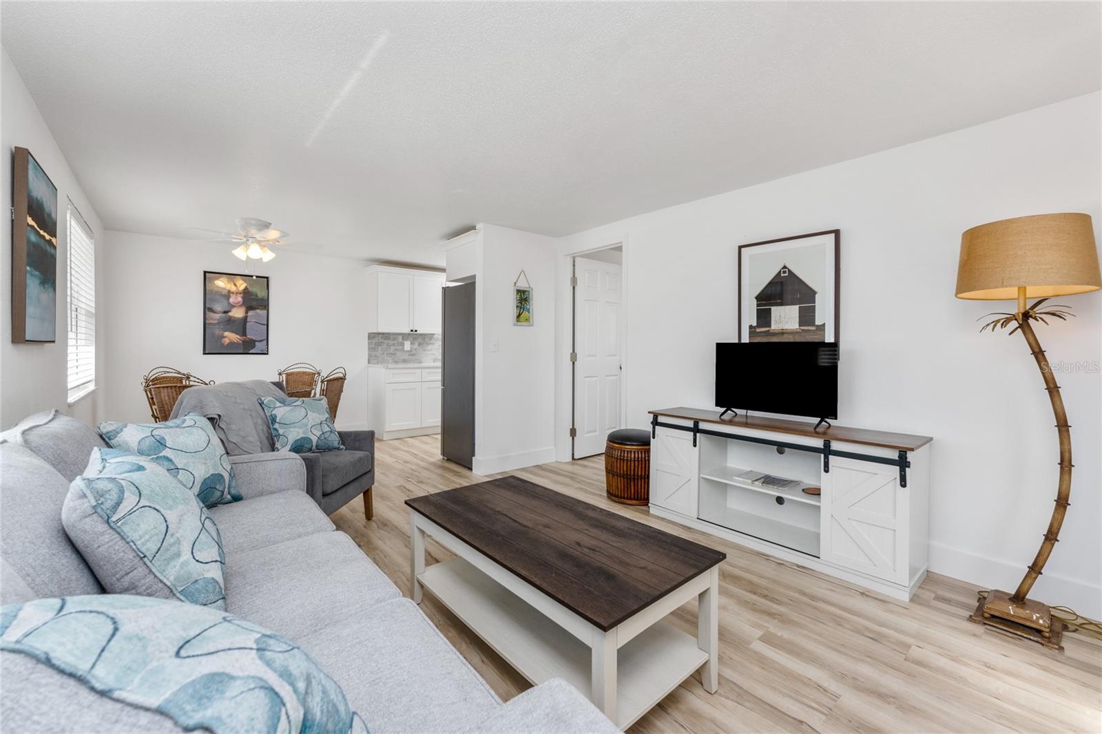 Enjoy stunning sunsets over Lemon Bay from this fully remodeled 1-bedroom, 1-bath villa at Tiki on the Bay. Back on the market and move-in ready, this unit offers a low-maintenance lifestyle with flexible options for seasonal use, full-time living, or nightly rentals. Inside, you'll find new drywall, fresh paint, and easy-care laminate flooring throughout. The kitchen features quartz countertops, white cabinetry, a glass tile backsplash, a newer refrigerator, and an extended counter for added workspace. Just off the kitchen is a cozy breakfast nook, perfect for casual dining. The bathroom has been updated with a wood vanity, quartz top, and a tiled shower-tub combo. A screened, covered lanai offers a great spot to enjoy your morning coffee and includes a private laundry room, ideal for beach gear or extra storage. Built of concrete block with a newer roof, the villa offers peace of mind in a relaxed, well-maintained setting. Tiki on the Bay is a laid-back community with a heated pool, and the waterfront location is the perfect place to unwind and enjoy the bay breezes. Low HOA fees include water, cable, flood insurance, and exterior maintenance, keeping ownership simple and affordable. Ideally located near Historic Dearborn Street’s shops and restaurants, Englewood Beach with its popular tiki bars and live music, public boat ramps and kayak launches, golf courses, pickleball and tennis courts, and several parks, this villa gives you easy access to everything Englewood and Manasota Key have to offer. Whether you're looking for a personal getaway or an investment opportunity, this is the one for you! Contact us today to schedule your showing.