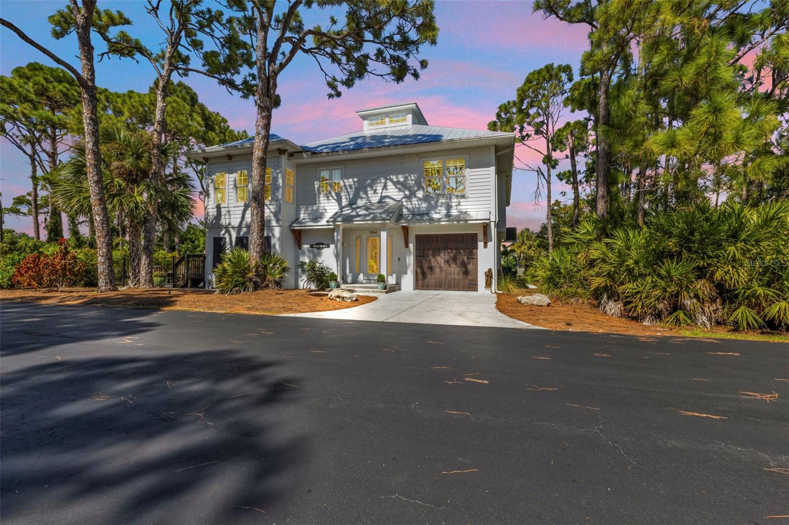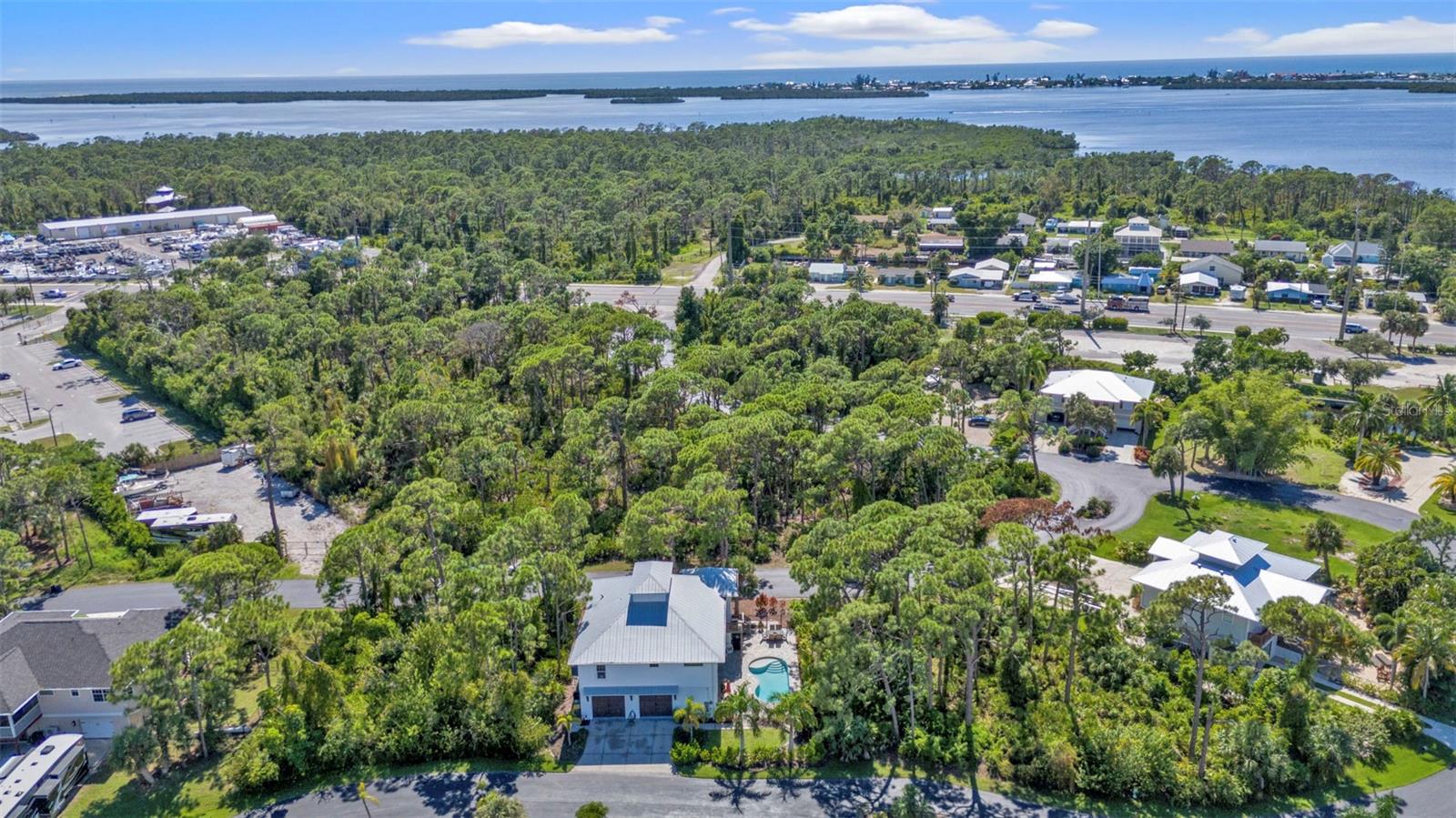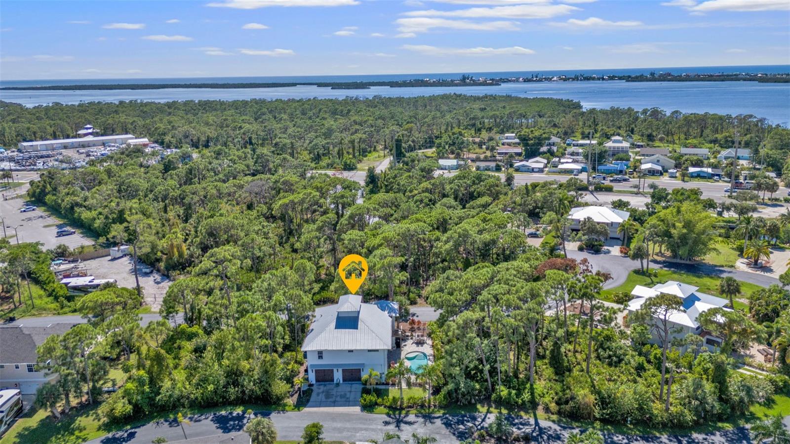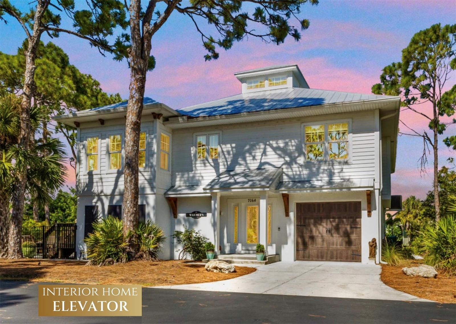 Welcome to "THE PEARL”… a very special pearl of a home indeed. If you have been looking for "The ONE", this is it! Tucked away in a small gated tropical enclave, this property is the epitome of pure paradise. Built in 2018 by a Parade of Homes Custom Builder for their own personal residence, this original owner home has the best of the best incorporated into each detail from the architecture & workmanship to the phenomenal floor plan. The FULLY FURNISHED home has a PRIVATE ELEVATOR that will take you up to the main floor living area where every inch of space is utilized through intentional design. There are 3 EN SUITES in the home encompassing 5 BEDROOMS & 4 BATHROOMS sleeping 14 in total so all your family and friends will have their own private retreat space. The kitchen is the heart of the home featuring gorgeous low maintenance quartz countertops and a large center island with built in beverage cooler. No lack of storage with the abundant cabinetry, built in pantry cabinets and walk in closets in every bedroom. The dining area is accented by 2 walls of windows so the view of the sky is incorporated into the room like a rotating carousel of nature’s artwork. The living room is the central hub with pocketed glass sliding doors that completely open up onto the screened-in balcony overlooking the pool seamlessly integrating the outdoors and indoors into one. LVP waterproof flooring flows throughout the entire home for easy cleaning & maintenance. Relax in the heated saltwater pool with plenty of space on the paved lanai decking for everyone to have their own lounging area. The SUPER LARGE 1324 sq ft garage space is really a WOW factor and has “drive through” accessibility featuring both a front garage door plus 2 additional rear doors. The garage acts as a functional living space extension of the home that is perfect for parties, events & neighborhood get togethers, complete with a mini kitchen countertop and refrigerator. Pines on the Bay is a unique secluded gated community with low HOA fees ($400 a year), NO CDD fees and offers a RV or Boat outdoor storage spot for only $50 a year. For the boaters or kayakers there is a private community boat launch just across the road PLUS the larger public boat launch is just around the corner. Just one bridge with quick access onto Lemon Bay and then onto the Gulf of Mexico. A fantastic location not far from many shopping and dining options. Just under 10 miles to the Boca Grand Causeway and just a 3 mile drive to the stunning sandy beaches along Manasota Key. Make your appointment to view this exceptional tropical resort feel home today!