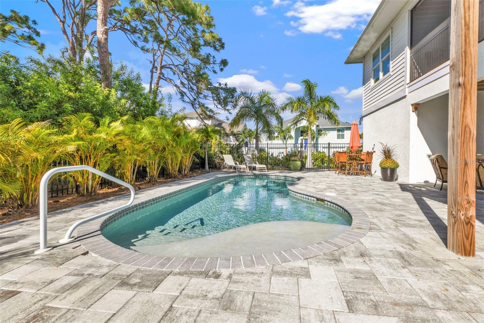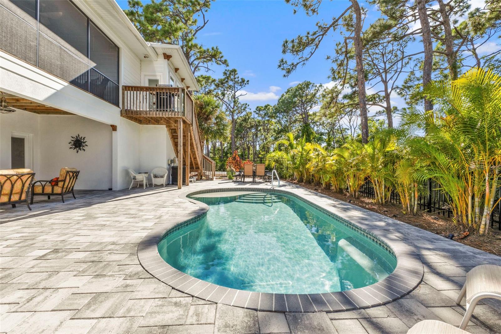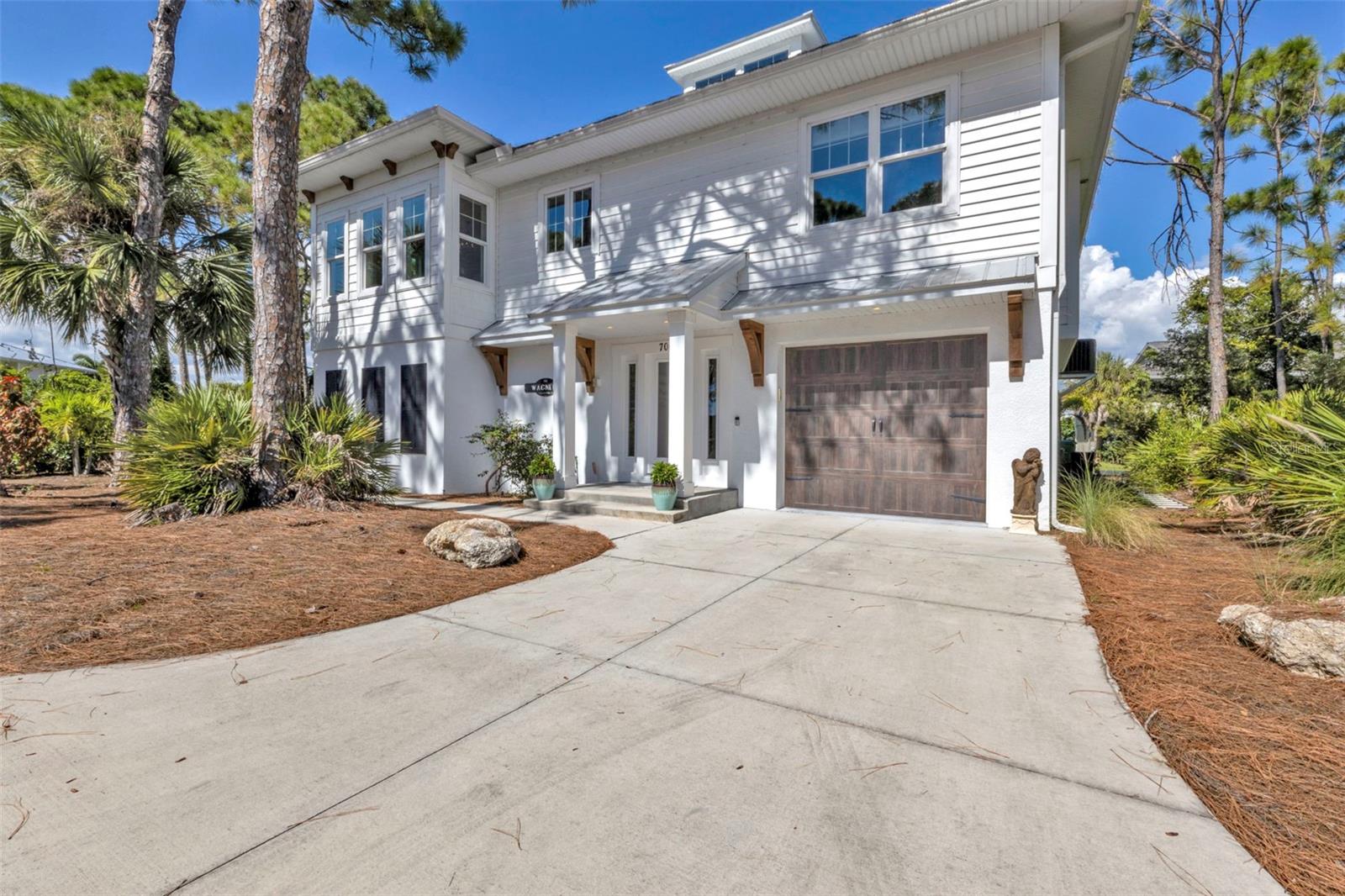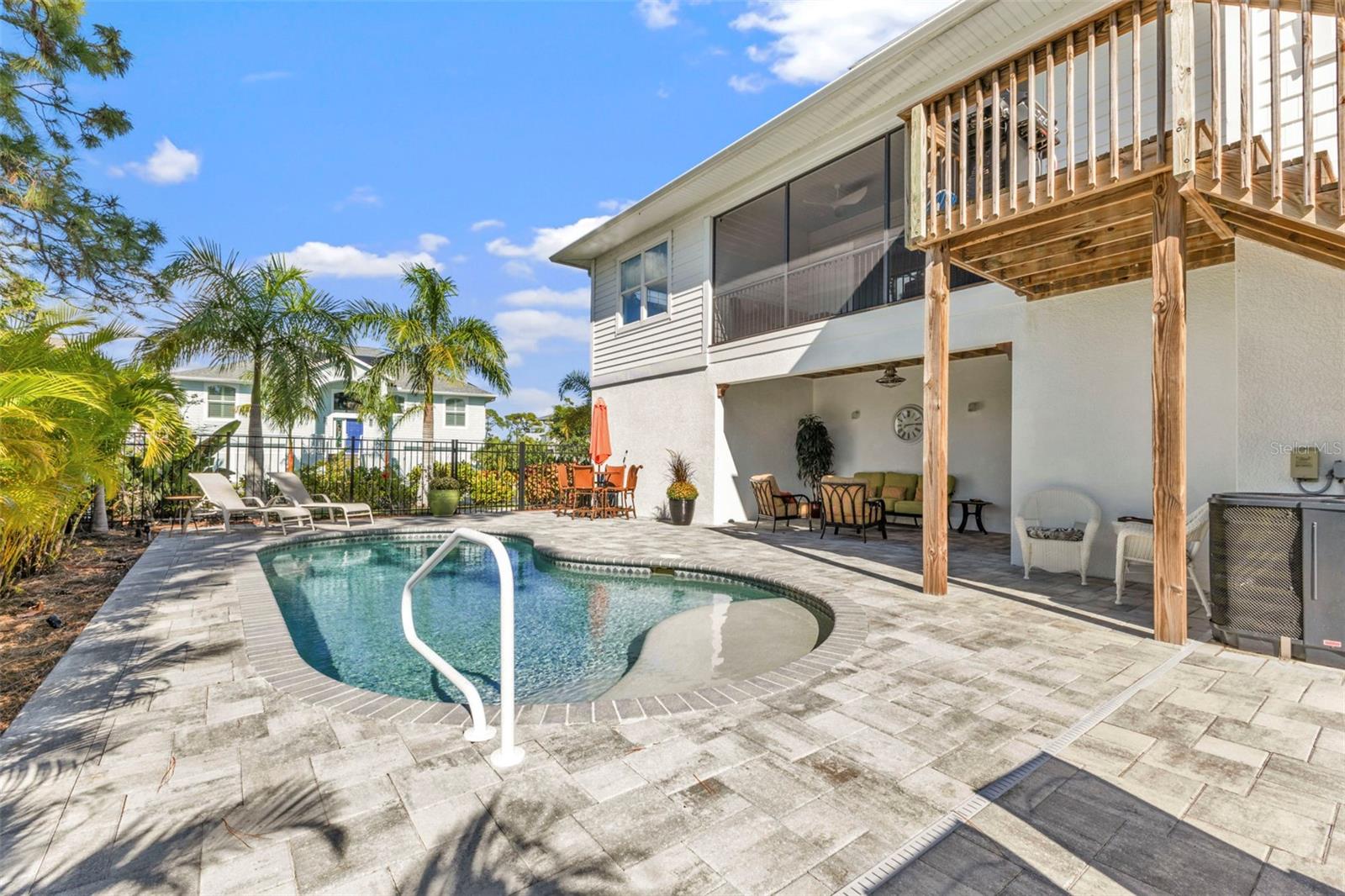 Welcome to "THE PEARL”… a very special pearl of a home indeed. If you have been looking for "The ONE", this is it! Tucked away in a small gated tropical enclave, this property is the epitome of pure paradise. Built in 2018 by a Parade of Homes Custom Builder for their own personal residence, this original owner home has the best of the best incorporated into each detail from the architecture & workmanship to the phenomenal floor plan. The FULLY FURNISHED home has a PRIVATE ELEVATOR that will take you up to the main floor living area where every inch of space is utilized through intentional design. There are 3 EN SUITES in the home encompassing 5 BEDROOMS & 4 BATHROOMS sleeping 14 in total so all your family and friends will have their own private retreat space. The kitchen is the heart of the home featuring gorgeous low maintenance quartz countertops and a large center island with built in beverage cooler. No lack of storage with the abundant cabinetry, built in pantry cabinets and walk in closets in every bedroom. The dining area is accented by 2 walls of windows so the view of the sky is incorporated into the room like a rotating carousel of nature’s artwork. The living room is the central hub with pocketed glass sliding doors that completely open up onto the screened-in balcony overlooking the pool seamlessly integrating the outdoors and indoors into one. LVP waterproof flooring flows throughout the entire home for easy cleaning & maintenance. Relax in the heated saltwater pool with plenty of space on the paved lanai decking for everyone to have their own lounging area. The SUPER LARGE 1324 sq ft garage space is really a WOW factor and has “drive through” accessibility featuring both a front garage door plus 2 additional rear doors. The garage acts as a functional living space extension of the home that is perfect for parties, events & neighborhood get togethers, complete with a mini kitchen countertop and refrigerator. Pines on the Bay is a unique secluded gated community with low HOA fees ($400 a year), NO CDD fees and offers a RV or Boat outdoor storage spot for only $50 a year. For the boaters or kayakers there is a private community boat launch just across the road PLUS the larger public boat launch is just around the corner. Just one bridge with quick access onto Lemon Bay and then onto the Gulf of Mexico. A fantastic location not far from many shopping and dining options. Just under 10 miles to the Boca Grand Causeway and just a 3 mile drive to the stunning sandy beaches along Manasota Key. Make your appointment to view this exceptional tropical resort feel home today!