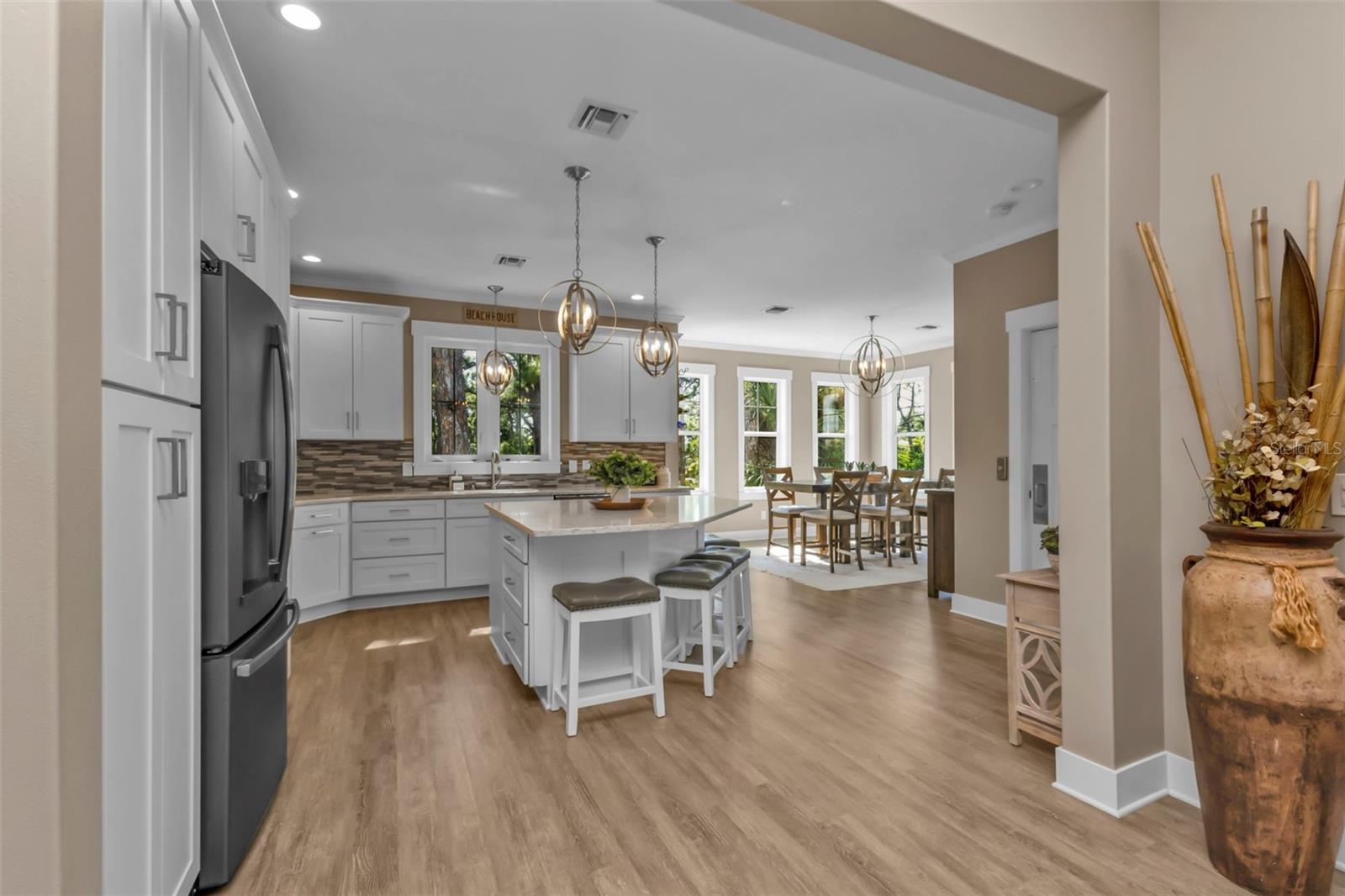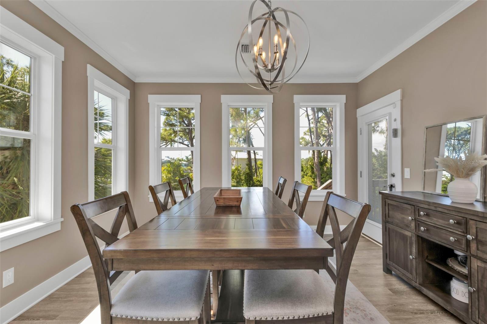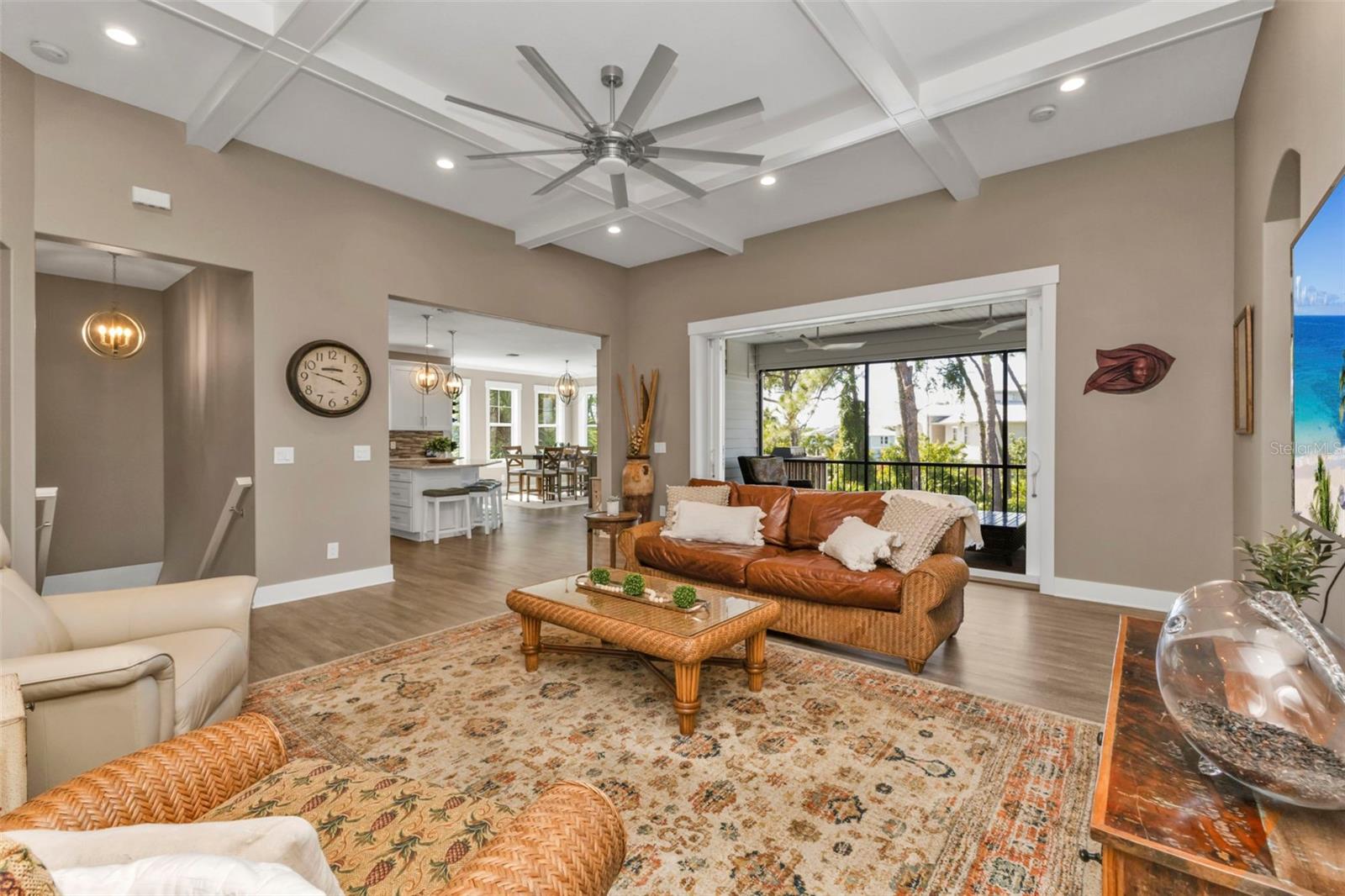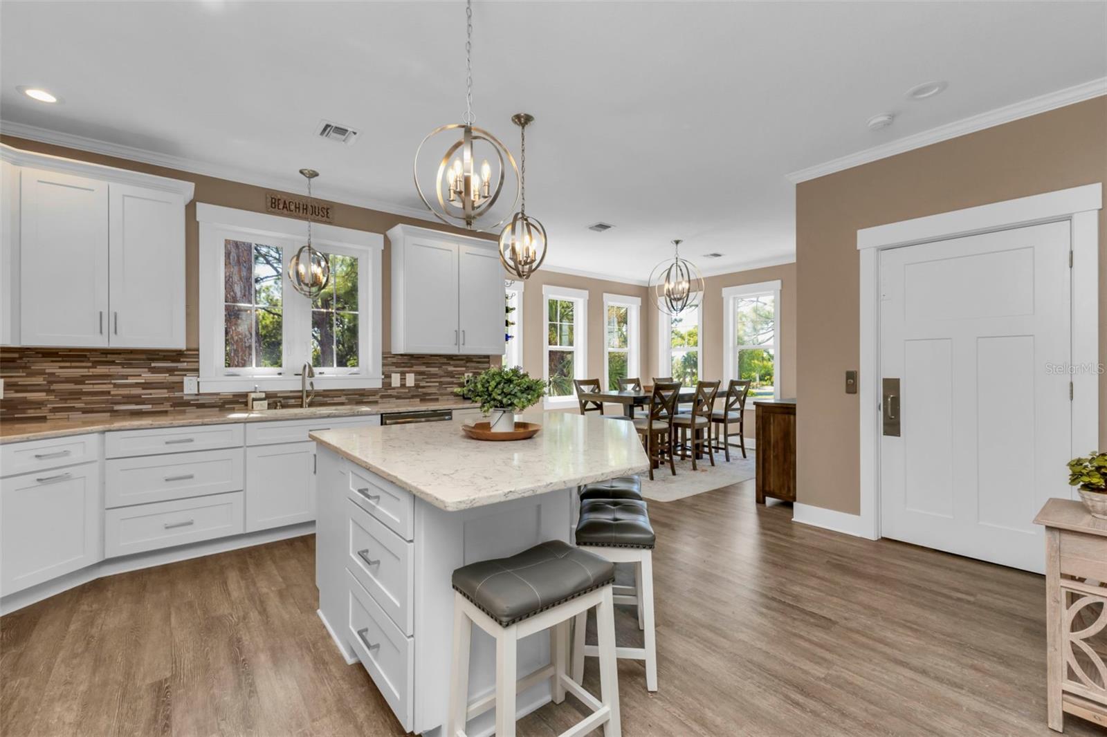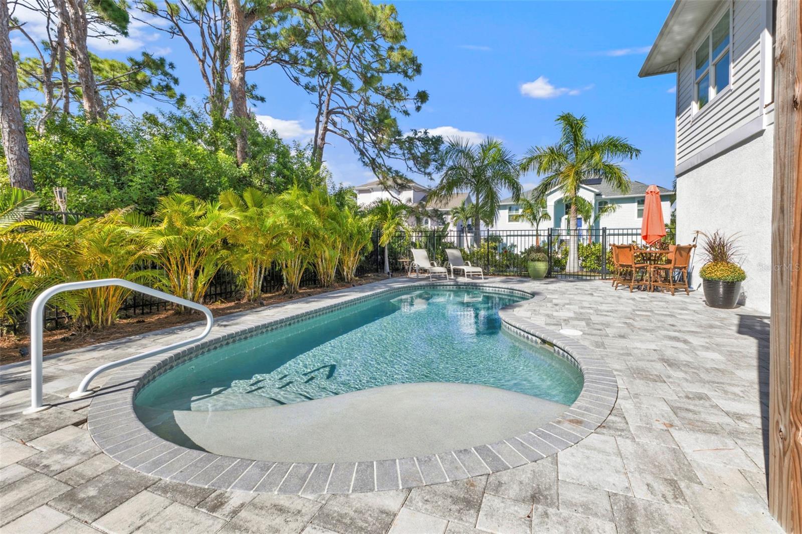 Welcome to "THE PEARL”… a very special pearl of a home indeed. If you have been looking for "The ONE", this is it! Tucked away in a small gated tropical enclave, this property is the epitome of pure paradise. Built in 2018 by a Parade of Homes Custom Builder for their own personal residence, this original owner home has the best of the best incorporated into each detail from the architecture & workmanship to the phenomenal floor plan. The FULLY FURNISHED home has a PRIVATE ELEVATOR that will take you up to the main floor living area where every inch of space is utilized through intentional design. There are 3 EN SUITES in the home encompassing 5 BEDROOMS & 4 BATHROOMS sleeping 14 in total so all your family and friends will have their own private retreat space. The kitchen is the heart of the home featuring gorgeous low maintenance quartz countertops and a large center island with built in beverage cooler. No lack of storage with the abundant cabinetry, built in pantry cabinets and walk in closets in every bedroom. The dining area is accented by 2 walls of windows so the view of the sky is incorporated into the room like a rotating carousel of nature’s artwork. The living room is the central hub with pocketed glass sliding doors that completely open up onto the screened-in balcony overlooking the pool seamlessly integrating the outdoors and indoors into one. LVP waterproof flooring flows throughout the entire home for easy cleaning & maintenance. Relax in the heated saltwater pool with plenty of space on the paved lanai decking for everyone to have their own lounging area. The SUPER LARGE 1324 sq ft garage space is really a WOW factor and has “drive through” accessibility featuring both a front garage door plus 2 additional rear doors. The garage acts as a functional living space extension of the home that is perfect for parties, events & neighborhood get togethers, complete with a mini kitchen countertop and refrigerator. Pines on the Bay is a unique secluded gated community with low HOA fees ($400 a year), NO CDD fees and offers a RV or Boat outdoor storage spot for only $50 a year. For the boaters or kayakers there is a private community boat launch just across the road PLUS the larger public boat launch is just around the corner. Just one bridge with quick access onto Lemon Bay and then onto the Gulf of Mexico. A fantastic location not far from many shopping and dining options. Just under 10 miles to the Boca Grand Causeway and just a 3 mile drive to the stunning sandy beaches along Manasota Key. Make your appointment to view this exceptional tropical resort feel home today!