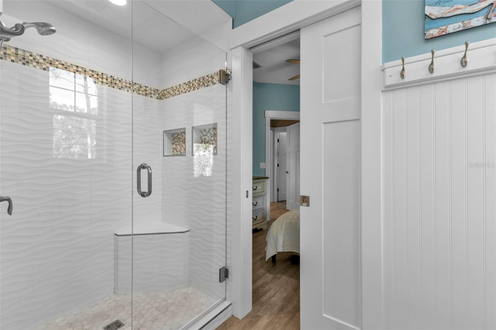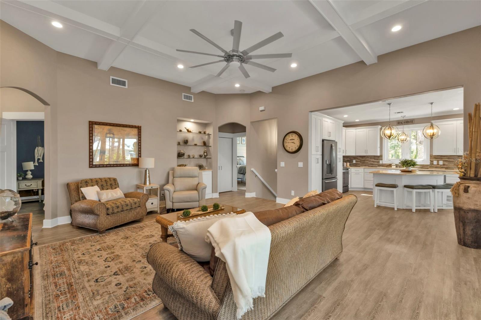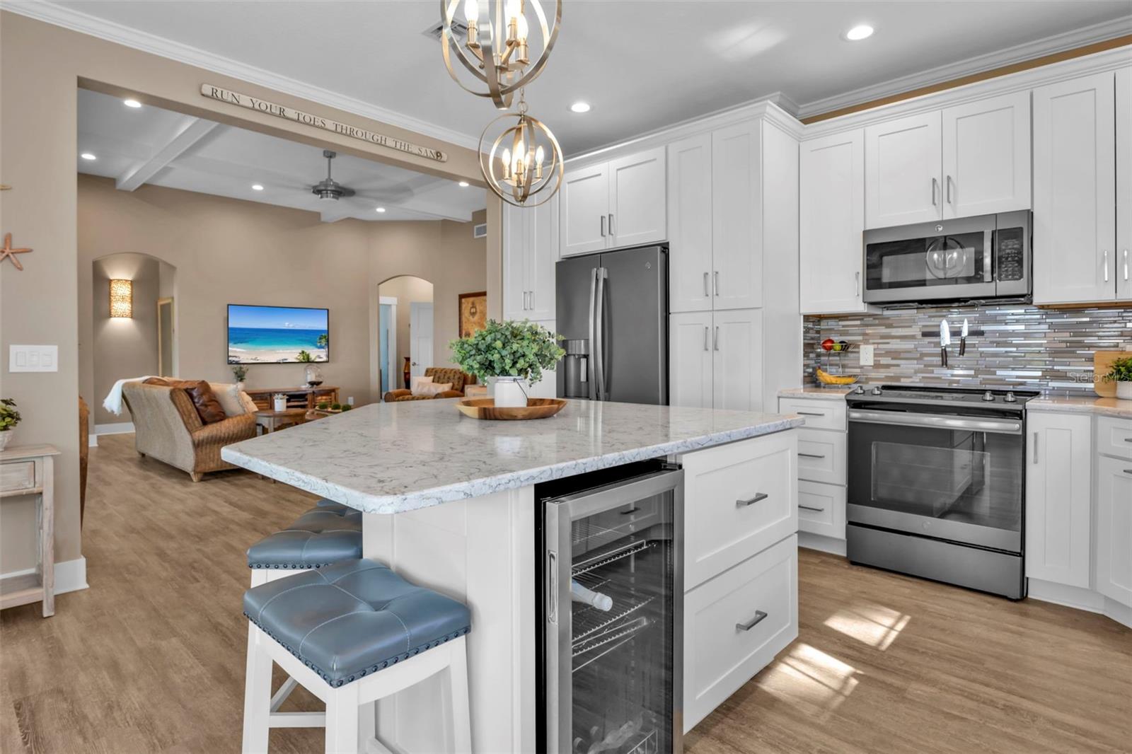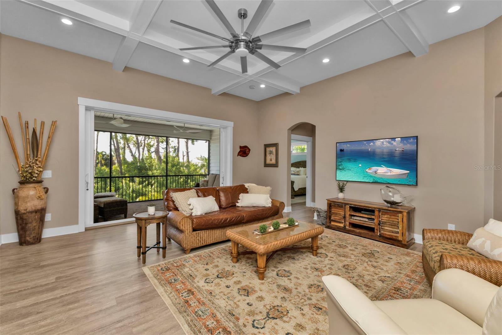 Welcome to "THE PEARL”… a very special pearl of a home indeed. If you have been looking for "The ONE", this is it! Tucked away in a small gated tropical enclave, this property is the epitome of pure paradise. Built in 2018 by a Parade of Homes Custom Builder for their own personal residence, this original owner home has the best of the best incorporated into each detail from the architecture & workmanship to the phenomenal floor plan. The FULLY FURNISHED home has a PRIVATE ELEVATOR that will take you up to the main floor living area where every inch of space is utilized through intentional design. There are 3 EN SUITES in the home encompassing 5 BEDROOMS & 4 BATHROOMS sleeping 14 in total so all your family and friends will have their own private retreat space. The kitchen is the heart of the home featuring gorgeous low maintenance quartz countertops and a large center island with built in beverage cooler. No lack of storage with the abundant cabinetry, built in pantry cabinets and walk in closets in every bedroom. The dining area is accented by 2 walls of windows so the view of the sky is incorporated into the room like a rotating carousel of nature’s artwork. The living room is the central hub with pocketed glass sliding doors that completely open up onto the screened-in balcony overlooking the pool seamlessly integrating the outdoors and indoors into one. LVP waterproof flooring flows throughout the entire home for easy cleaning & maintenance. Relax in the heated saltwater pool with plenty of space on the paved lanai decking for everyone to have their own lounging area. The SUPER LARGE 1324 sq ft garage space is really a WOW factor and has “drive through” accessibility featuring both a front garage door plus 2 additional rear doors. The garage acts as a functional living space extension of the home that is perfect for parties, events & neighborhood get togethers, complete with a mini kitchen countertop and refrigerator. Pines on the Bay is a unique secluded gated community with low HOA fees ($400 a year), NO CDD fees and offers a RV or Boat outdoor storage spot for only $50 a year. For the boaters or kayakers there is a private community boat launch just across the road PLUS the larger public boat launch is just around the corner. Just one bridge with quick access onto Lemon Bay and then onto the Gulf of Mexico. A fantastic location not far from many shopping and dining options. Just under 10 miles to the Boca Grand Causeway and just a 3 mile drive to the stunning sandy beaches along Manasota Key. Make your appointment to view this exceptional tropical resort feel home today!