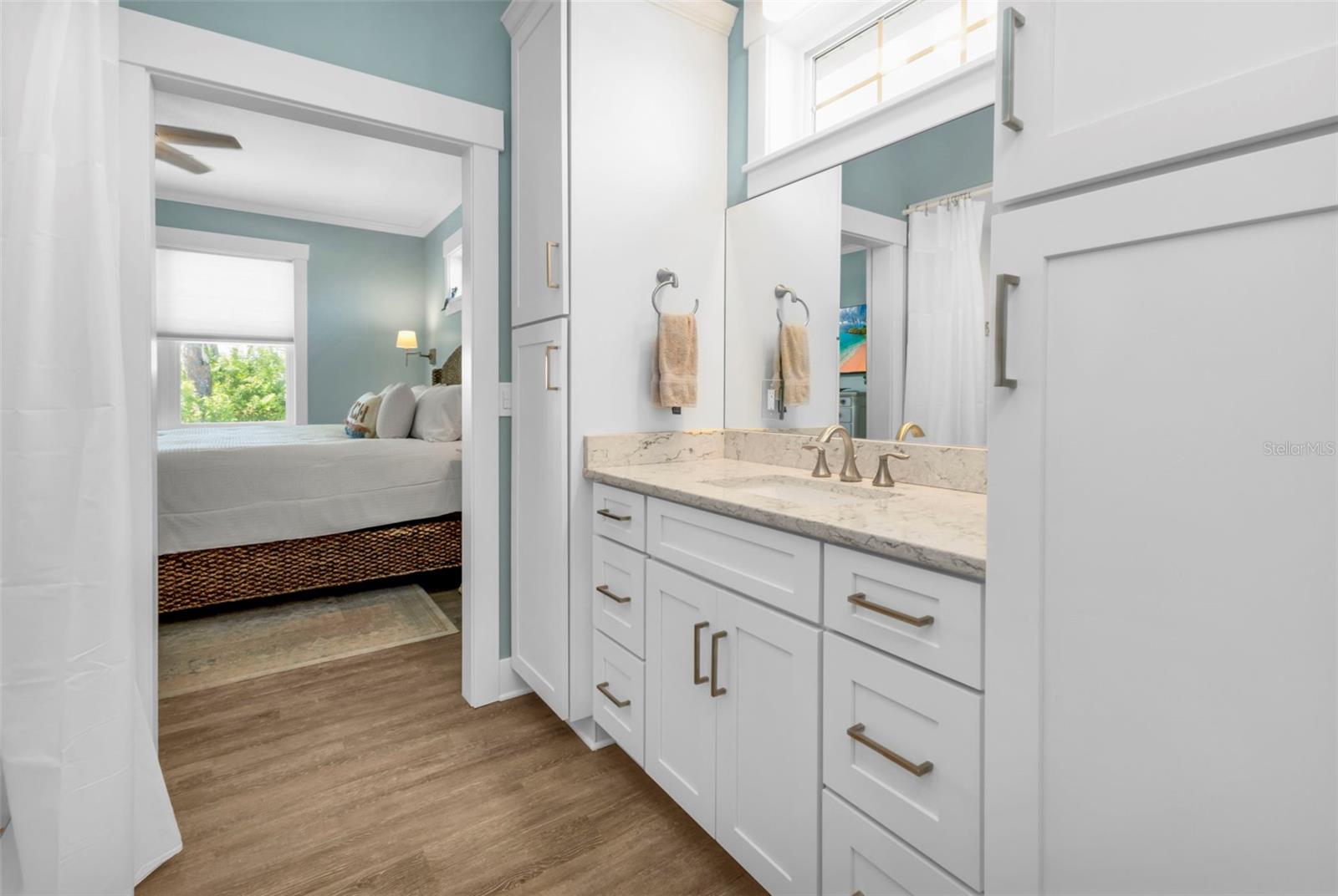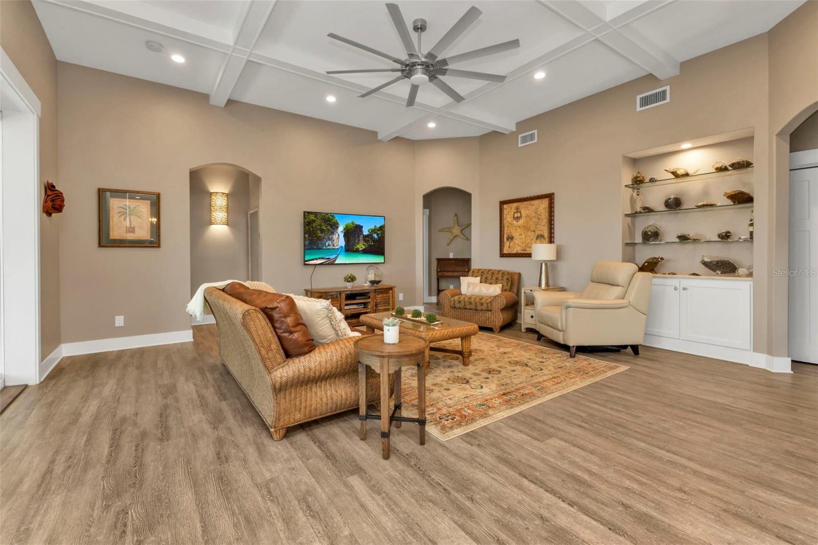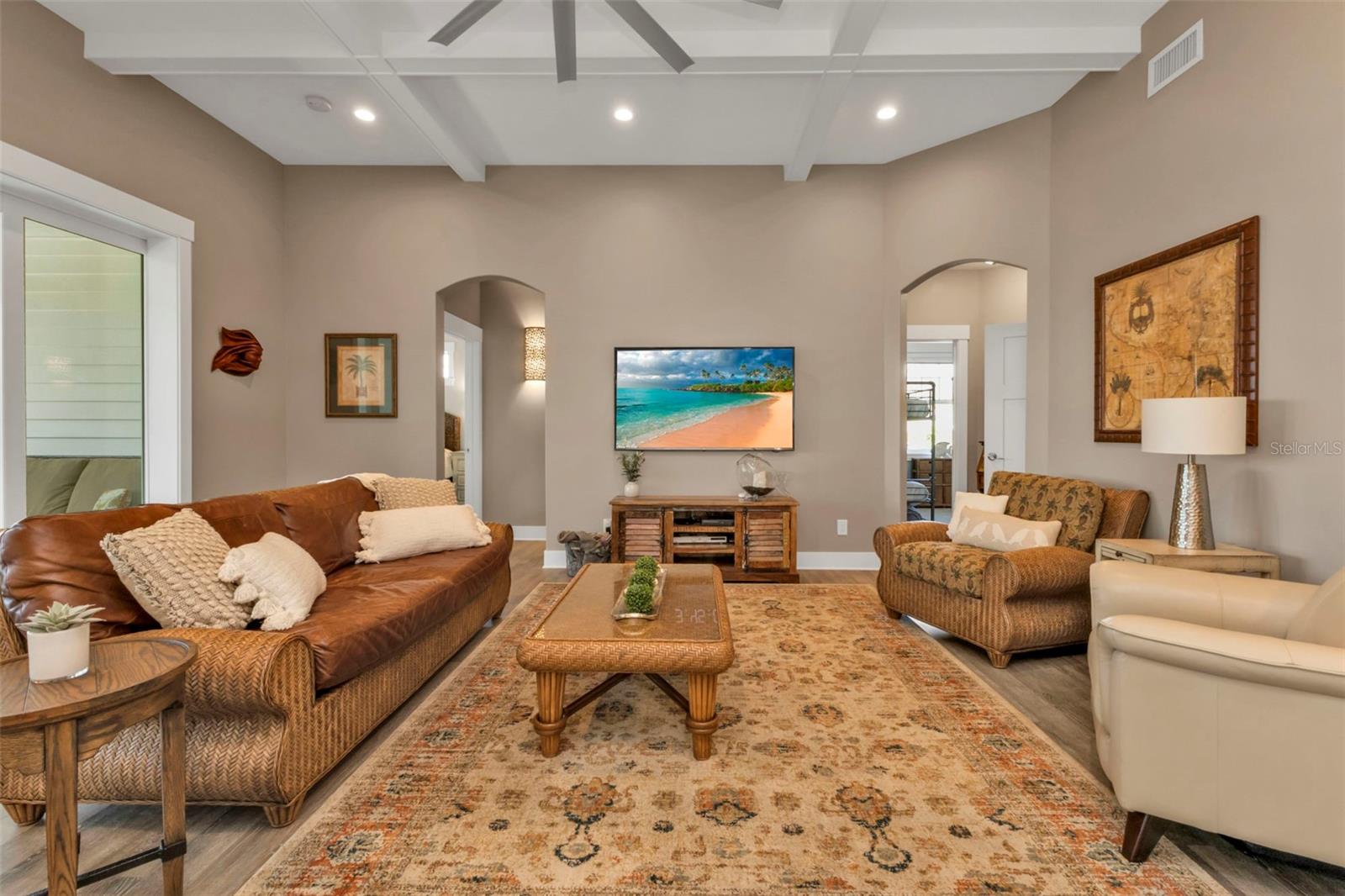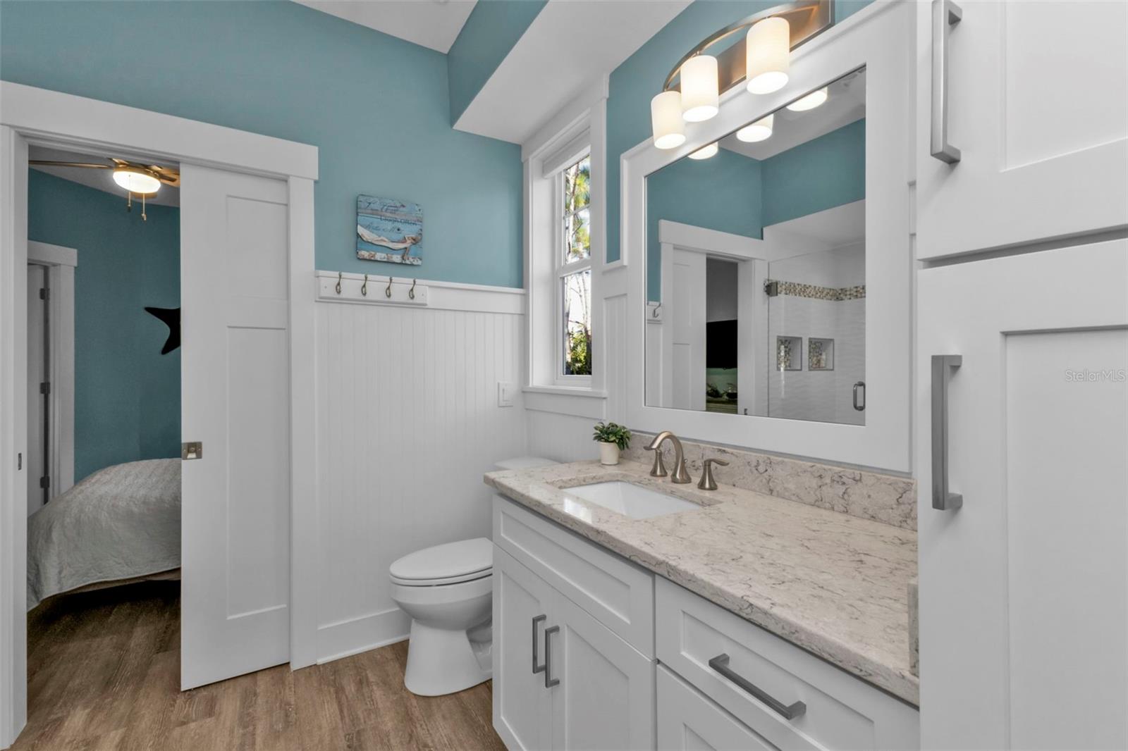 Welcome to "THE PEARL”… a very special pearl of a home indeed. If you have been looking for "The ONE", this is it! Tucked away in a small gated tropical enclave, this property is the epitome of pure paradise. Built in 2018 by a Parade of Homes Custom Builder for their own personal residence, this original owner home has the best of the best incorporated into each detail from the architecture & workmanship to the phenomenal floor plan. The FULLY FURNISHED home has a PRIVATE ELEVATOR that will take you up to the main floor living area where every inch of space is utilized through intentional design. There are 3 EN SUITES in the home encompassing 5 BEDROOMS & 4 BATHROOMS sleeping 14 in total so all your family and friends will have their own private retreat space. The kitchen is the heart of the home featuring gorgeous low maintenance quartz countertops and a large center island with built in beverage cooler. No lack of storage with the abundant cabinetry, built in pantry cabinets and walk in closets in every bedroom. The dining area is accented by 2 walls of windows so the view of the sky is incorporated into the room like a rotating carousel of nature’s artwork. The living room is the central hub with pocketed glass sliding doors that completely open up onto the screened-in balcony overlooking the pool seamlessly integrating the outdoors and indoors into one. LVP waterproof flooring flows throughout the entire home for easy cleaning & maintenance. Relax in the heated saltwater pool with plenty of space on the paved lanai decking for everyone to have their own lounging area. The SUPER LARGE 1324 sq ft garage space is really a WOW factor and has “drive through” accessibility featuring both a front garage door plus 2 additional rear doors. The garage acts as a functional living space extension of the home that is perfect for parties, events & neighborhood get togethers, complete with a mini kitchen countertop and refrigerator. Pines on the Bay is a unique secluded gated community with low HOA fees ($400 a year), NO CDD fees and offers a RV or Boat outdoor storage spot for only $50 a year. For the boaters or kayakers there is a private community boat launch just across the road PLUS the larger public boat launch is just around the corner. Just one bridge with quick access onto Lemon Bay and then onto the Gulf of Mexico. A fantastic location not far from many shopping and dining options. Just under 10 miles to the Boca Grand Causeway and just a 3 mile drive to the stunning sandy beaches along Manasota Key. Make your appointment to view this exceptional tropical resort feel home today!