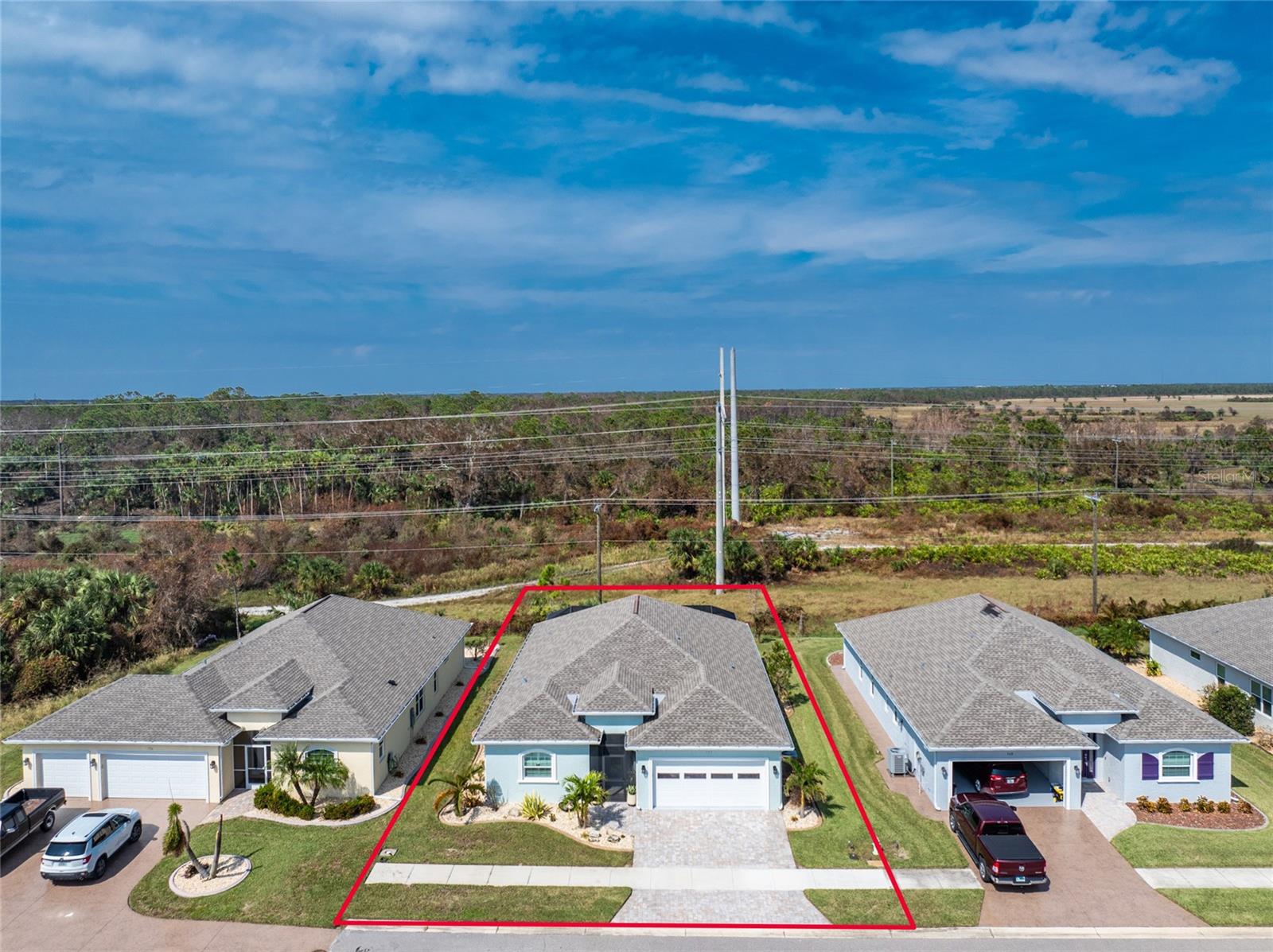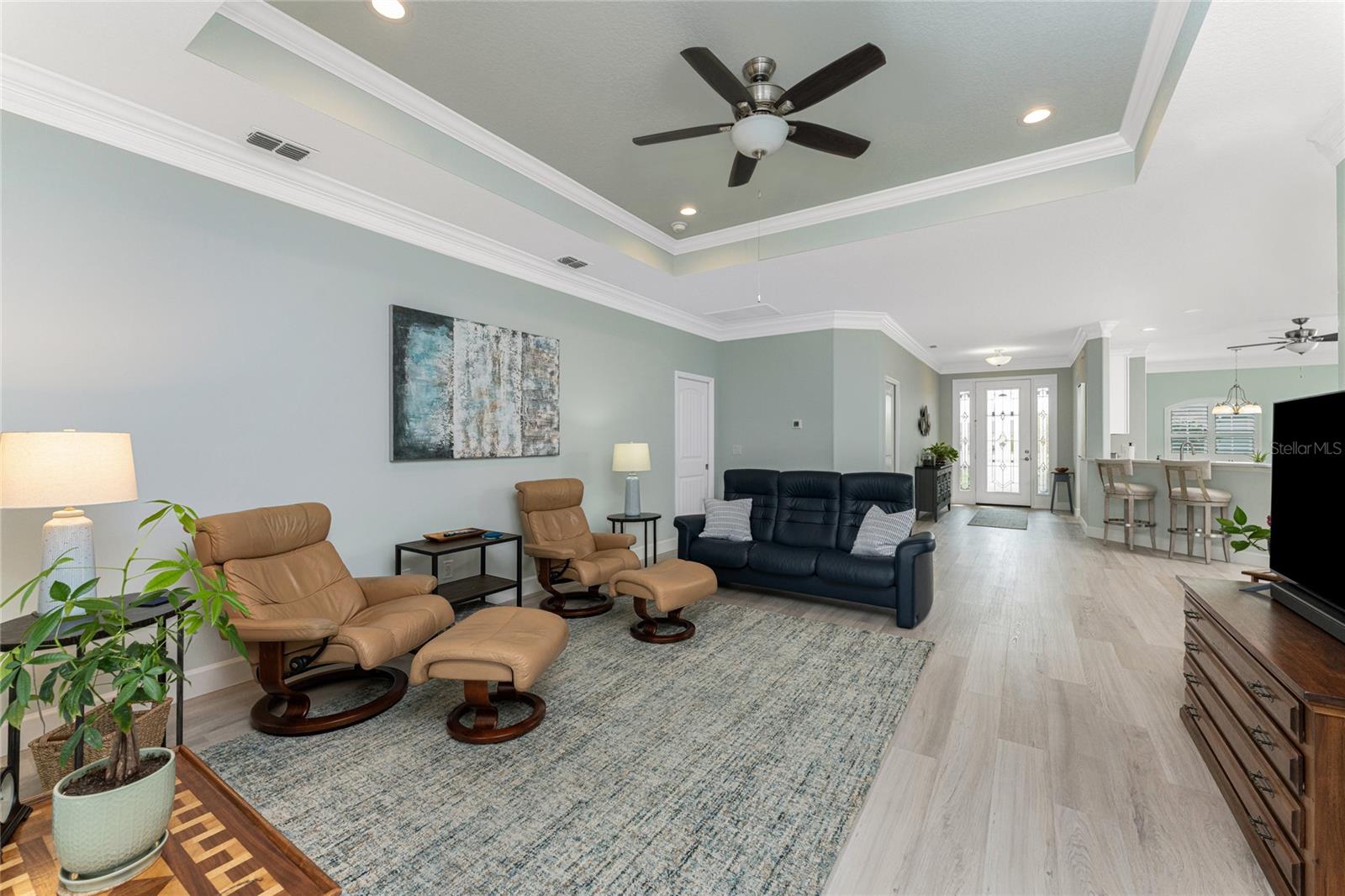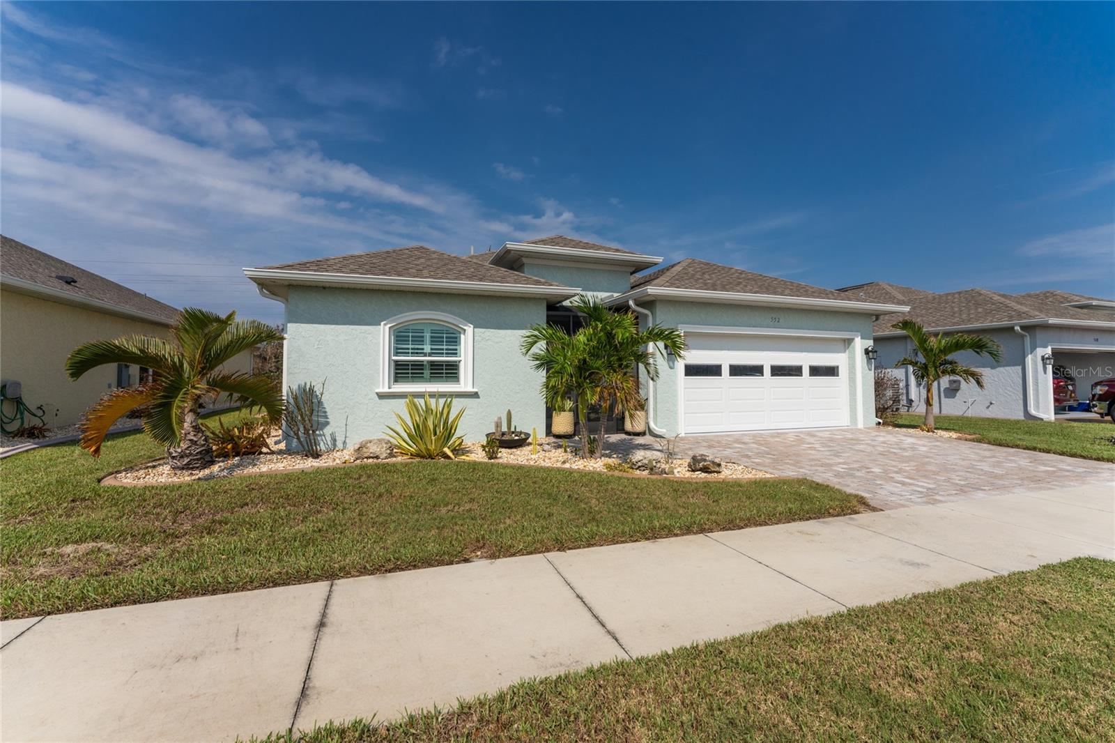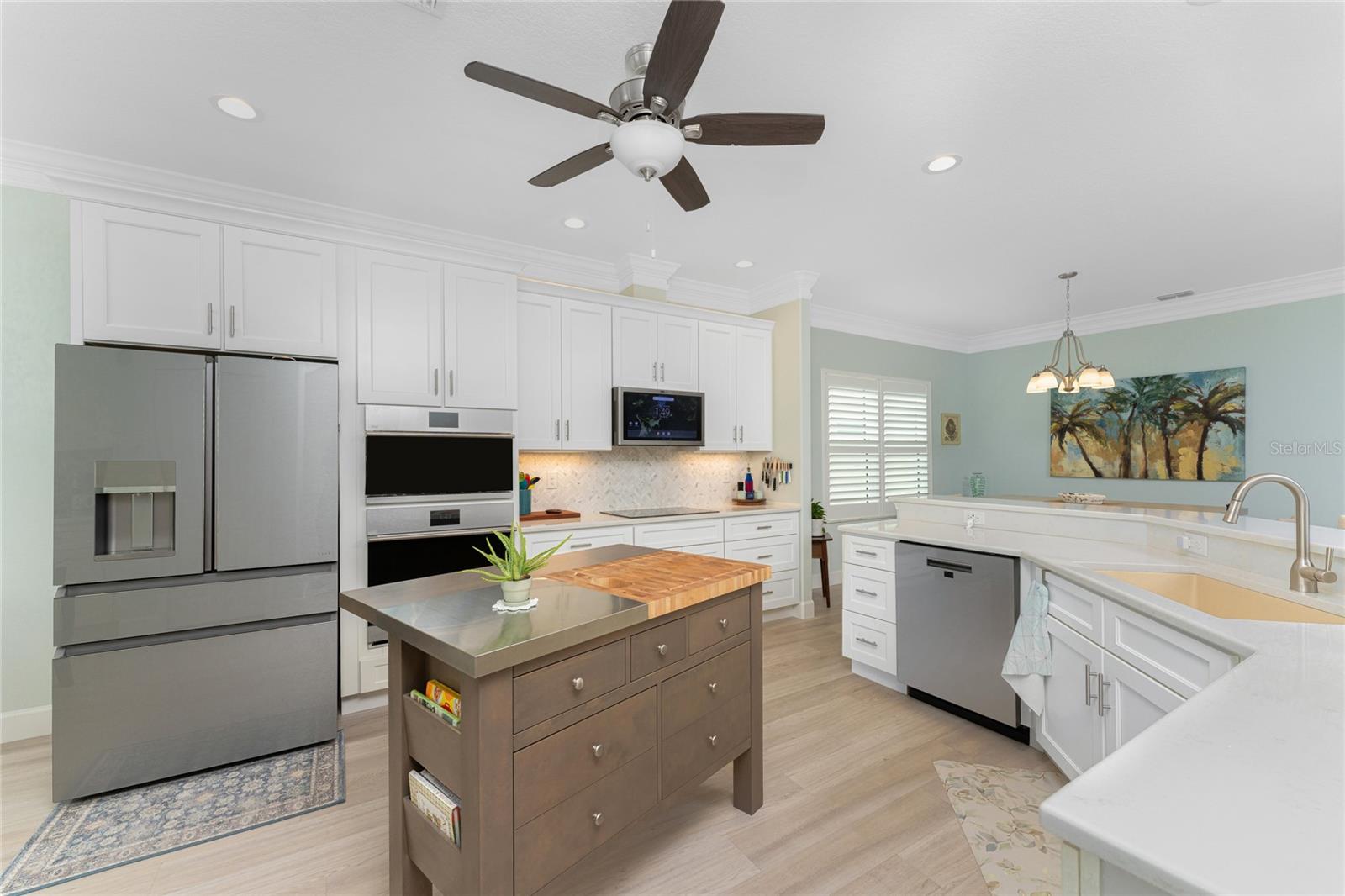 WHY BUILD OR BUY NEW? This 3 bedroom, 2 bath, 2 car garage home has so many upgrades that if you build, will cost you $1000's of dollars extra! Luxury Vinyl Plank flooring through out, crown molding in all major rooms, upgraded kitchen appliances, screened entry with pavers, extended screened lanai area, USB'S in some outlets, Impact windows and doors and so much more!!! Popular Pearl floor plan features a spacious Living area with a tray ceiling with a ceiling fan and pocket sliding doors to the lanai! Adjacent dining area is spacious with plenty of room for entertaining! Kitchen has upgraded Quartz counter tops, upgraded composite sink, pretty backsplash, closet pantry, breakfast bar, ceiling fan and a dinette area with additional cabinetry added for plenty of storage! Appliances include: GE Kitchen Hub Entertainment and Ventilation System, GE Cafe French door refrigerator, GE Cafe microwave, GE Cafe built in oven, GE Cafe dishwasher and GE Profile induction range! Main bedroom has a tray ceiling with crown molding and a ceiling fan, walk in closet with built ins, separate office/den area and another set of sliding glass doors to the lanai!! Main bath has a double vanity with upgraded Quartz top, added cabinetry for lots of storage, Oversized shower with door, privacy commode area and a linen closet. Bedrooms #2 and #3 have ceiling fans and wall closets. The adjacent Guest bath is handily located in between the Guest bedrooms, and features upgraded wood vanity with solid surface countertop, Shower with door (shower walls are tiled to the ceiling, so no wet drywall!) and linen closet. Pocket door to the guest bedrooms adds extra privacy for your guests! Laundry room has a pocket door for access, GE front load washer and dryer, utility tub, and extra cabinetry above for extra storage. The screened lanai has a ceiling fan, OUTDOOR KITCHEN with built in sink with water and electric, perfect for outdoor entertaining! The CAGED AREA has been dramatically increased, so there's plenty of outdoor living area for a firepit, plants, hot tub or whatever you choose!. The 2 car garage has an automatic garage door and pull down stairs for extra storage in the attic! The beautiful tropical landscaping adds to this amazing home. This is a special home and you would do well to call it your Florida paradise! This home is located in one of Englewood's favorite communities, with great amenities such as: clubhouse, pool, tennis/pickleball courts, RV/Boat Parking, and more activities than you could possibly take advantage of! Come take a tour today!