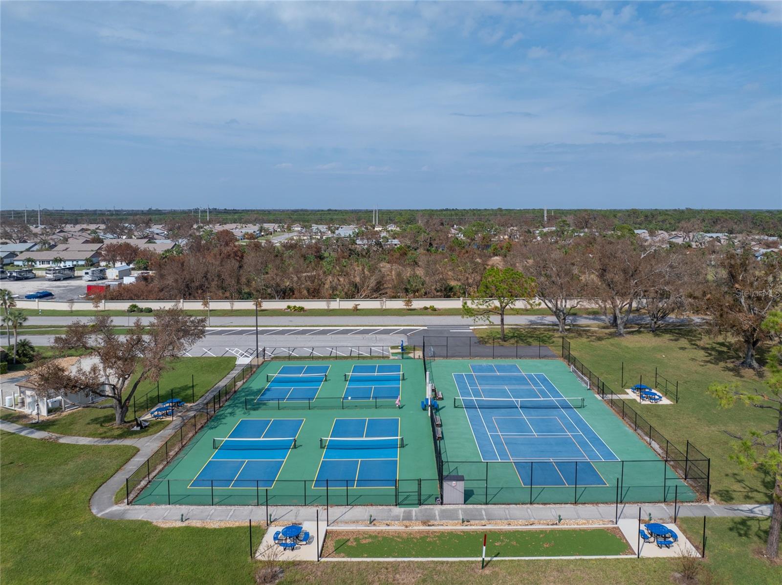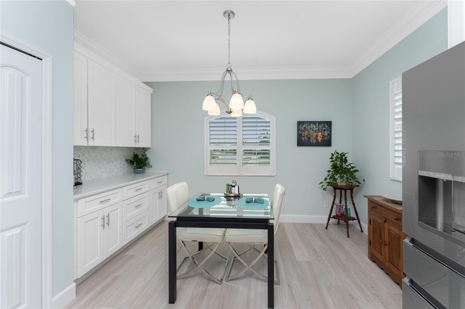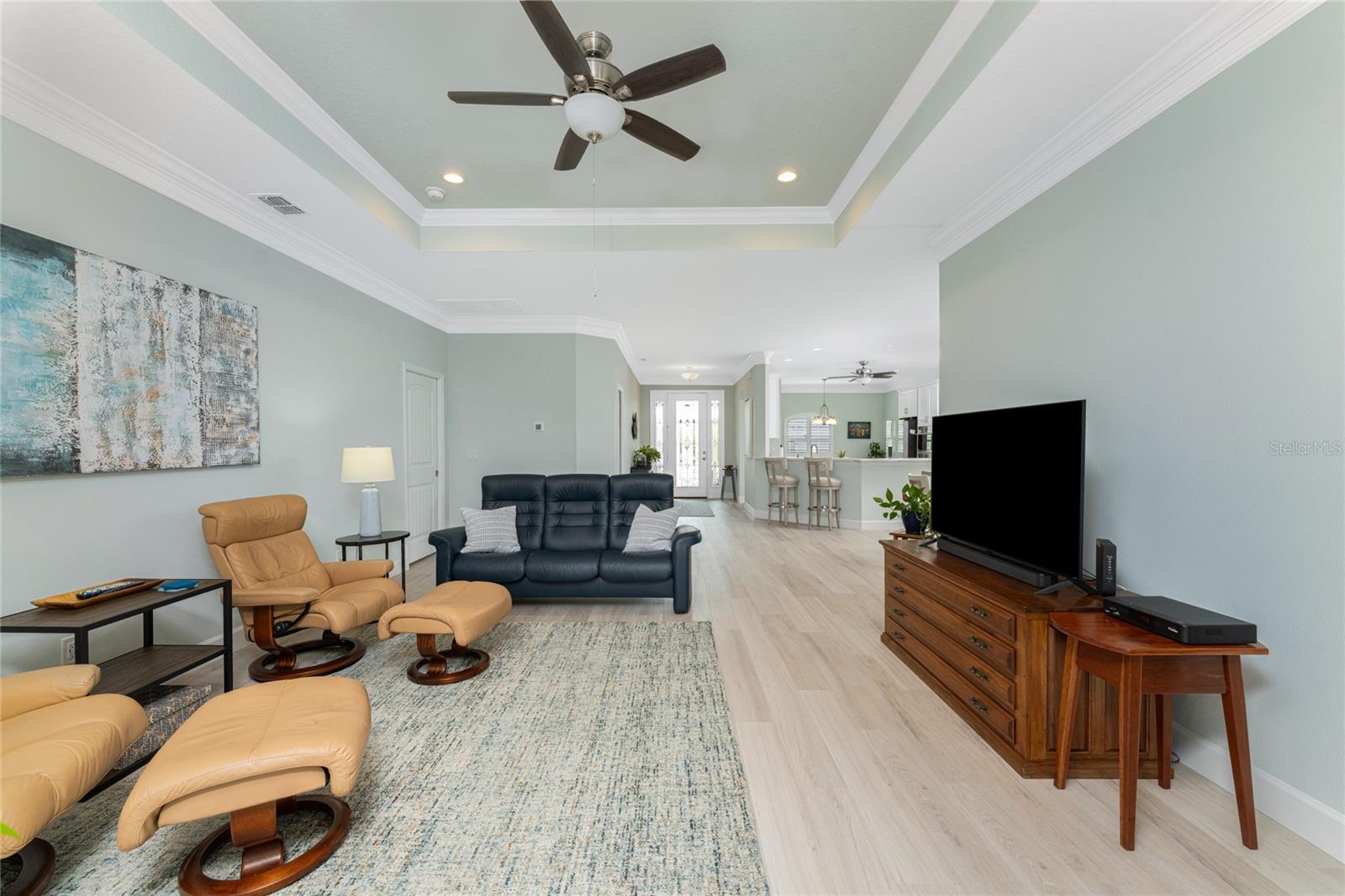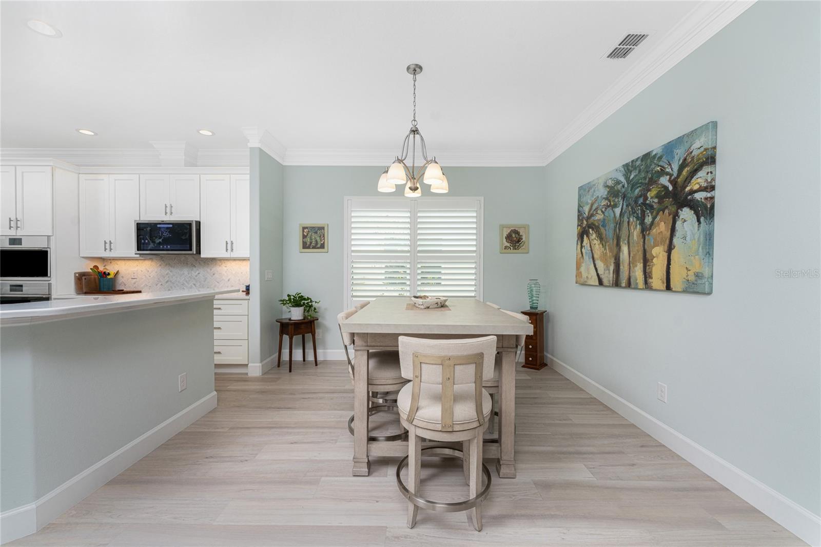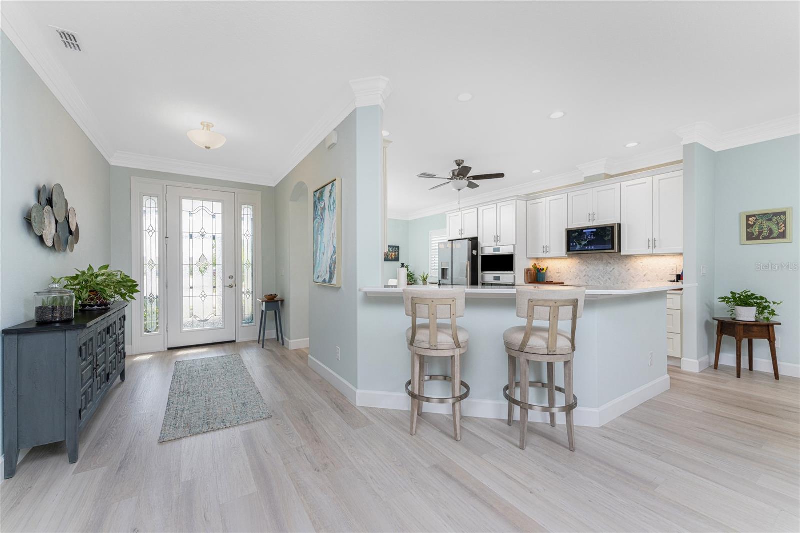 WHY BUILD OR BUY NEW? This 3 bedroom, 2 bath, 2 car garage home has so many upgrades that if you build, will cost you $1000's of dollars extra! Luxury Vinyl Plank flooring through out, crown molding in all major rooms, upgraded kitchen appliances, screened entry with pavers, extended screened lanai area, USB'S in some outlets, Impact windows and doors and so much more!!! Popular Pearl floor plan features a spacious Living area with a tray ceiling with a ceiling fan and pocket sliding doors to the lanai! Adjacent dining area is spacious with plenty of room for entertaining! Kitchen has upgraded Quartz counter tops, upgraded composite sink, pretty backsplash, closet pantry, breakfast bar, ceiling fan and a dinette area with additional cabinetry added for plenty of storage! Appliances include: GE Kitchen Hub Entertainment and Ventilation System, GE Cafe French door refrigerator, GE Cafe microwave, GE Cafe built in oven, GE Cafe dishwasher and GE Profile induction range! Main bedroom has a tray ceiling with crown molding and a ceiling fan, walk in closet with built ins, separate office/den area and another set of sliding glass doors to the lanai!! Main bath has a double vanity with upgraded Quartz top, added cabinetry for lots of storage, Oversized shower with door, privacy commode area and a linen closet. Bedrooms #2 and #3 have ceiling fans and wall closets. The adjacent Guest bath is handily located in between the Guest bedrooms, and features upgraded wood vanity with solid surface countertop, Shower with door (shower walls are tiled to the ceiling, so no wet drywall!) and linen closet. Pocket door to the guest bedrooms adds extra privacy for your guests! Laundry room has a pocket door for access, GE front load washer and dryer, utility tub, and extra cabinetry above for extra storage. The screened lanai has a ceiling fan, OUTDOOR KITCHEN with built in sink with water and electric, perfect for outdoor entertaining! The CAGED AREA has been dramatically increased, so there's plenty of outdoor living area for a firepit, plants, hot tub or whatever you choose!. The 2 car garage has an automatic garage door and pull down stairs for extra storage in the attic! The beautiful tropical landscaping adds to this amazing home. This is a special home and you would do well to call it your Florida paradise! This home is located in one of Englewood's favorite communities, with great amenities such as: clubhouse, pool, tennis/pickleball courts, RV/Boat Parking, and more activities than you could possibly take advantage of! Come take a tour today!