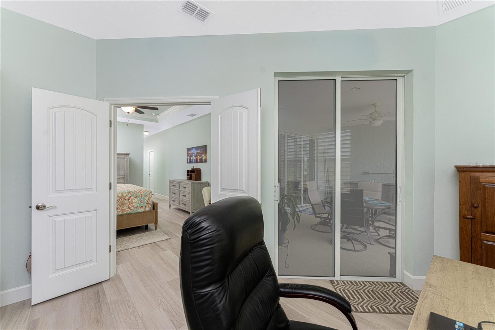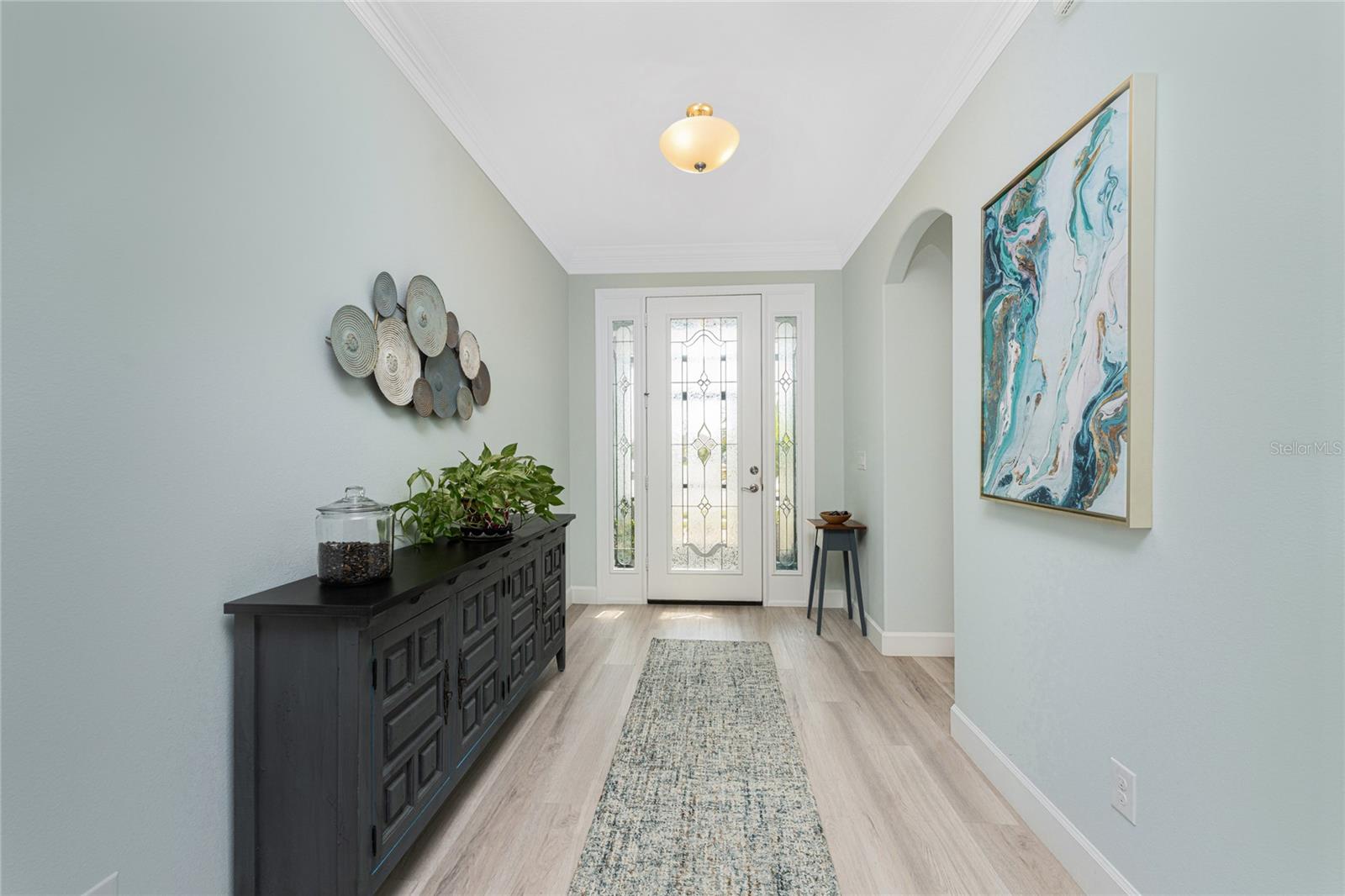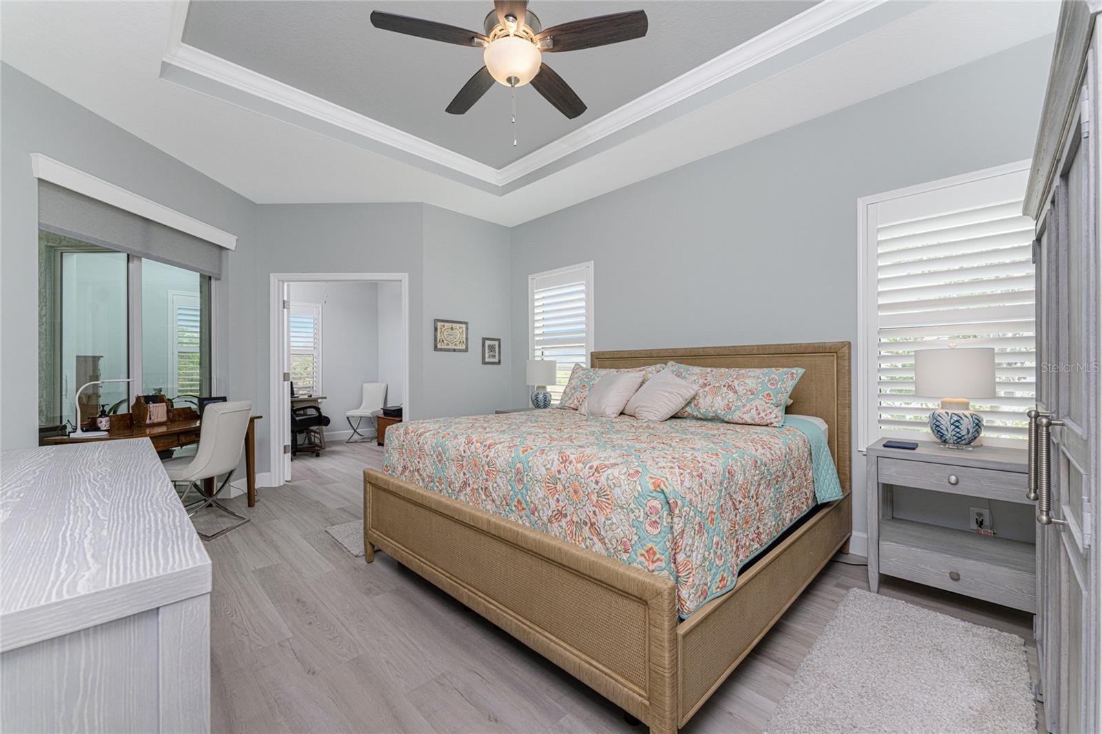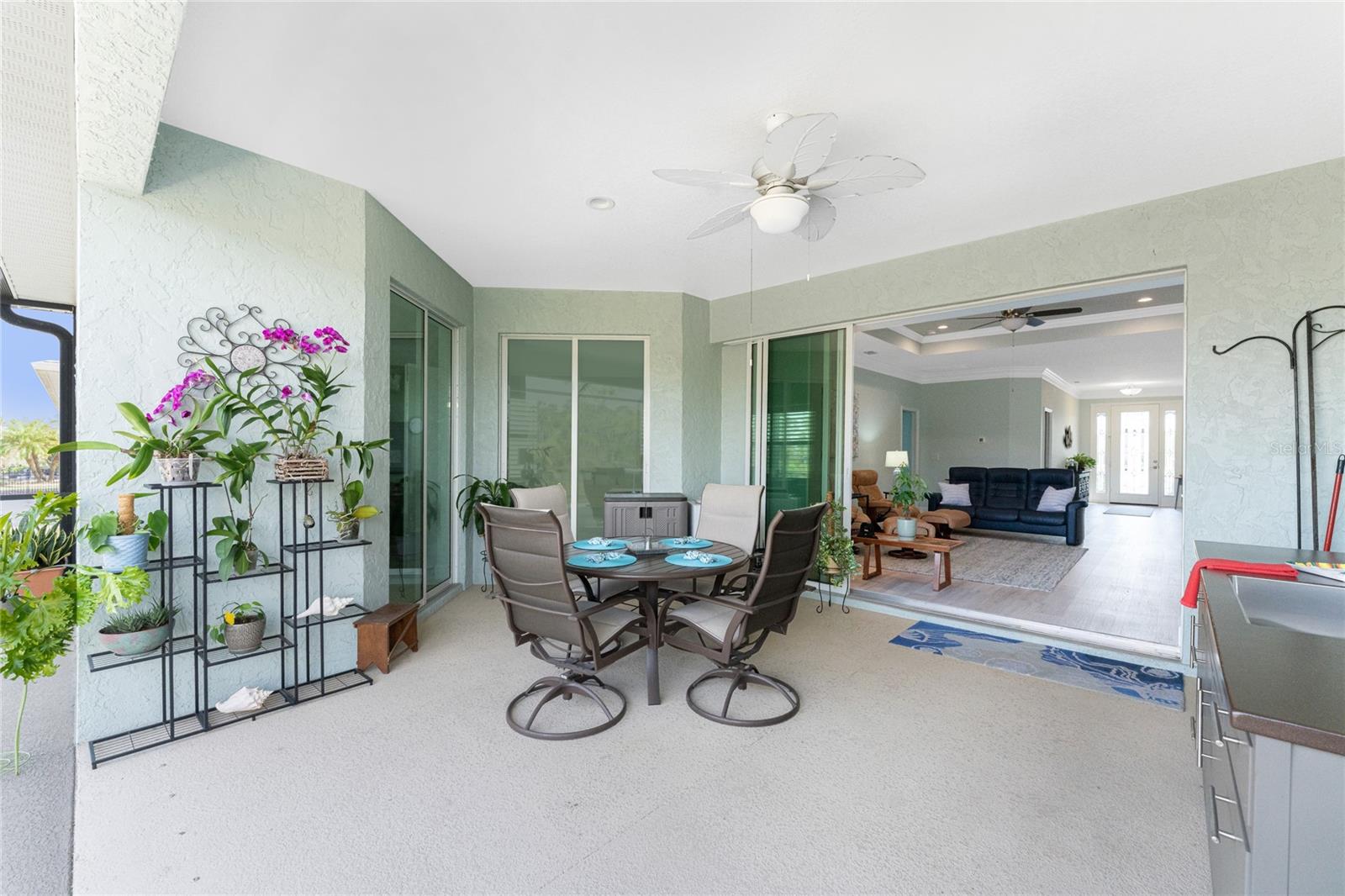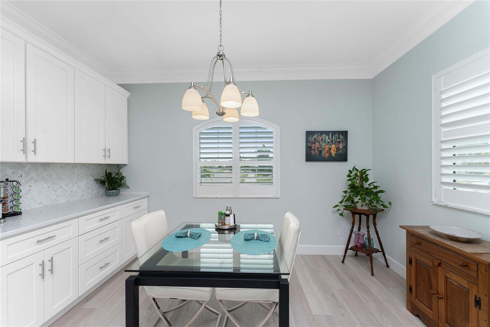 WHY BUILD OR BUY NEW? This 3 bedroom, 2 bath, 2 car garage home has so many upgrades that if you build, will cost you $1000's of dollars extra! Luxury Vinyl Plank flooring through out, crown molding in all major rooms, upgraded kitchen appliances, screened entry with pavers, extended screened lanai area, USB'S in some outlets, Impact windows and doors and so much more!!! Popular Pearl floor plan features a spacious Living area with a tray ceiling with a ceiling fan and pocket sliding doors to the lanai! Adjacent dining area is spacious with plenty of room for entertaining! Kitchen has upgraded Quartz counter tops, upgraded composite sink, pretty backsplash, closet pantry, breakfast bar, ceiling fan and a dinette area with additional cabinetry added for plenty of storage! Appliances include: GE Kitchen Hub Entertainment and Ventilation System, GE Cafe French door refrigerator, GE Cafe microwave, GE Cafe built in oven, GE Cafe dishwasher and GE Profile induction range! Main bedroom has a tray ceiling with crown molding and a ceiling fan, walk in closet with built ins, separate office/den area and another set of sliding glass doors to the lanai!! Main bath has a double vanity with upgraded Quartz top, added cabinetry for lots of storage, Oversized shower with door, privacy commode area and a linen closet. Bedrooms #2 and #3 have ceiling fans and wall closets. The adjacent Guest bath is handily located in between the Guest bedrooms, and features upgraded wood vanity with solid surface countertop, Shower with door (shower walls are tiled to the ceiling, so no wet drywall!) and linen closet. Pocket door to the guest bedrooms adds extra privacy for your guests! Laundry room has a pocket door for access, GE front load washer and dryer, utility tub, and extra cabinetry above for extra storage. The screened lanai has a ceiling fan, OUTDOOR KITCHEN with built in sink with water and electric, perfect for outdoor entertaining! The CAGED AREA has been dramatically increased, so there's plenty of outdoor living area for a firepit, plants, hot tub or whatever you choose!. The 2 car garage has an automatic garage door and pull down stairs for extra storage in the attic! The beautiful tropical landscaping adds to this amazing home. This is a special home and you would do well to call it your Florida paradise! This home is located in one of Englewood's favorite communities, with great amenities such as: clubhouse, pool, tennis/pickleball courts, RV/Boat Parking, and more activities than you could possibly take advantage of! Come take a tour today!