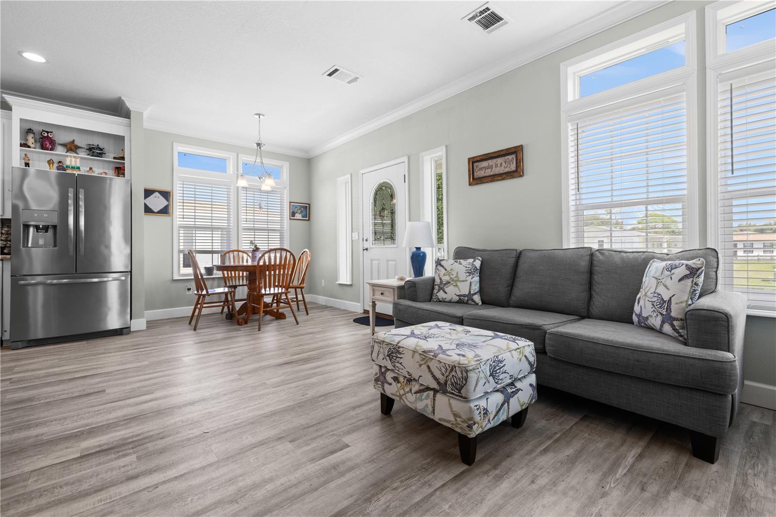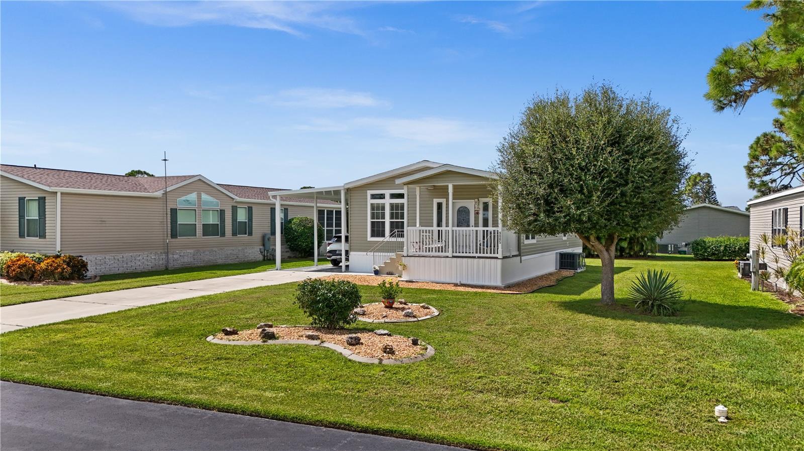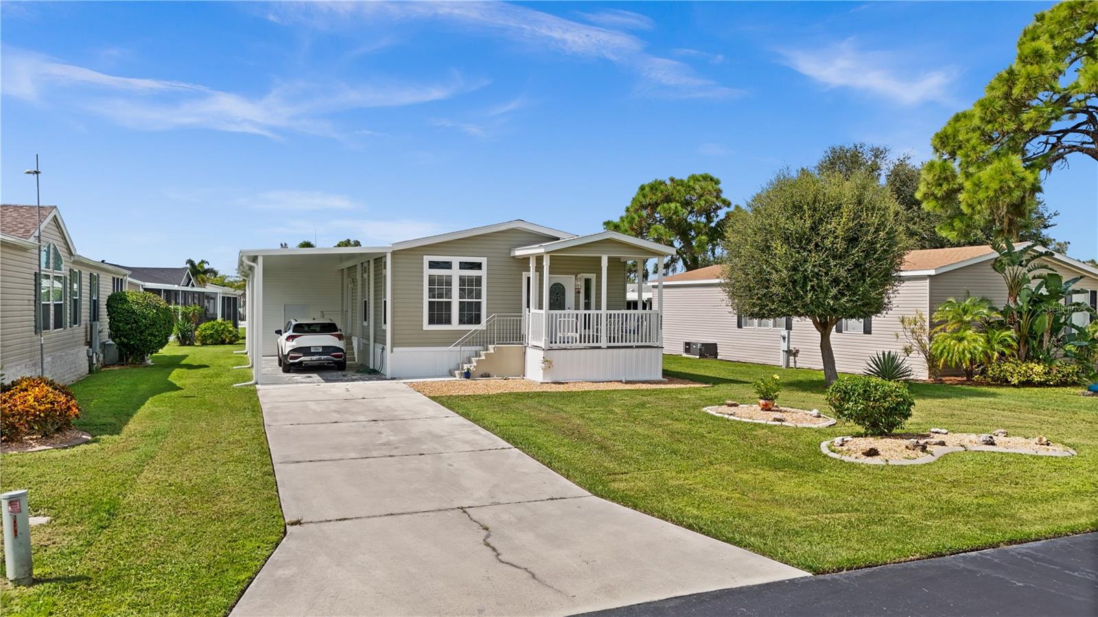 An excellent location on the Placida Road Corridor, which is close to beaches, boating, shopping and areas of preserved land! This is a NEW MANUFACTURED HOME - installed in October 2023. Everything is new and clean - windows, appliances and features! It's in a well kept 55+ community that has a pool and clubhouse. Walk into this home and notice the newness, the clean kitchen, and the open design. The flooring is consistent: luxury vinyl plank flooring throughout. Special features like tray ceilings, crown moulding and ceiling fans adorn the interior! All the kitchen appliances, cabinets and counters are new. It's a two bedroom two bath, and each bedroom has a huge walk in closet. The primary bedroom suite has it's own bathroom. Ample parking and a storage shed at the end of the driveway are outside. Enjoy the community pool and clubhouse that are just across the street. The Wildflower Preserve is is nearby as are Amberjack Environmental Park and Don Pedro Island State Park. Do you like to fish or go boating? There are three marinas nearby and two public boat launches! Add the fantastic local waterfront restaurants and public beaches, and you have the perfect place to visit or retire. A wonderful community is waiting for you, so come take a look!
