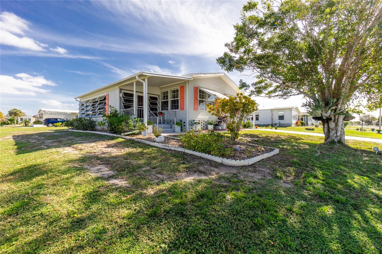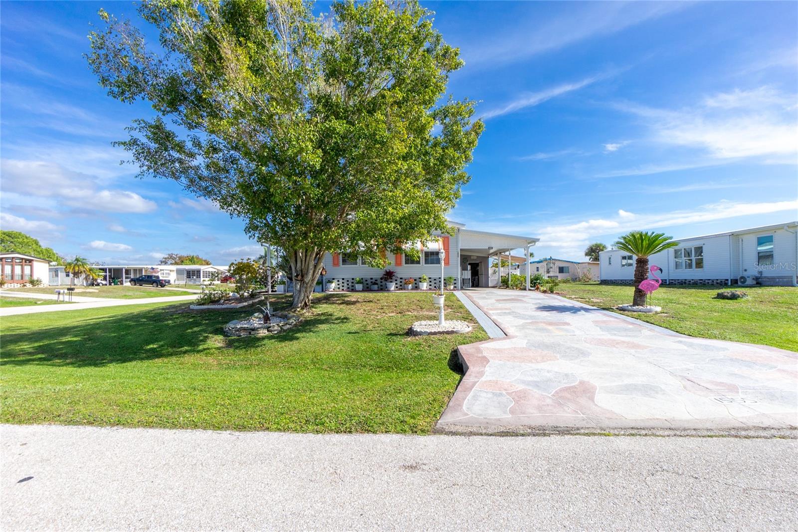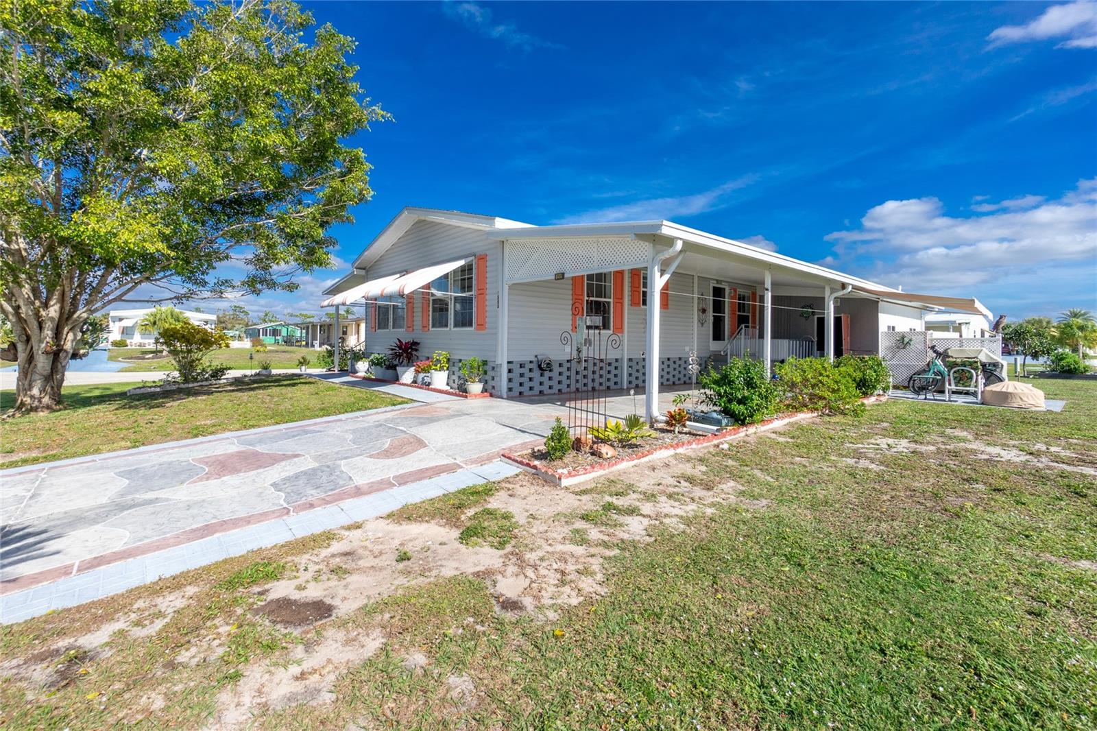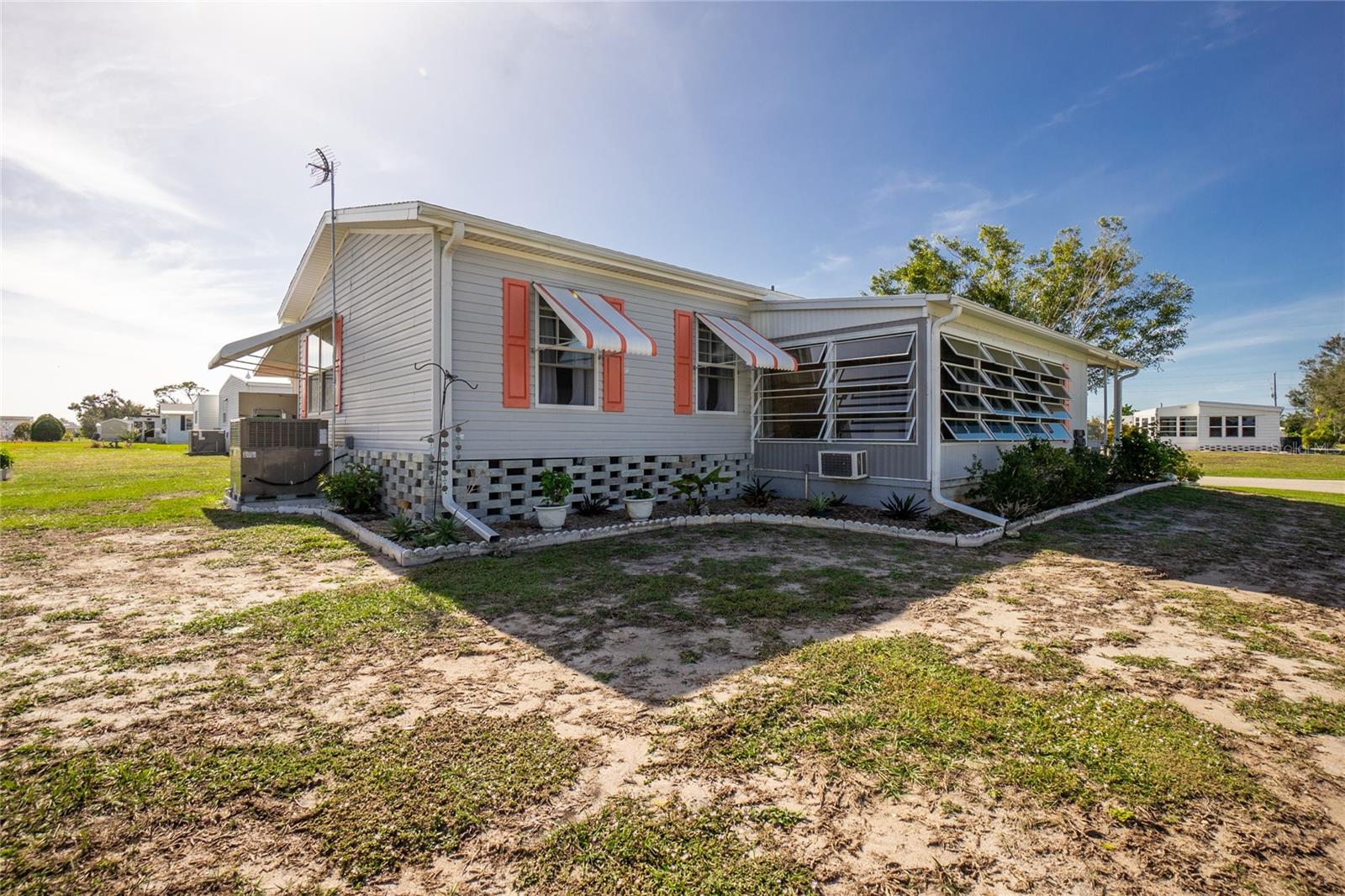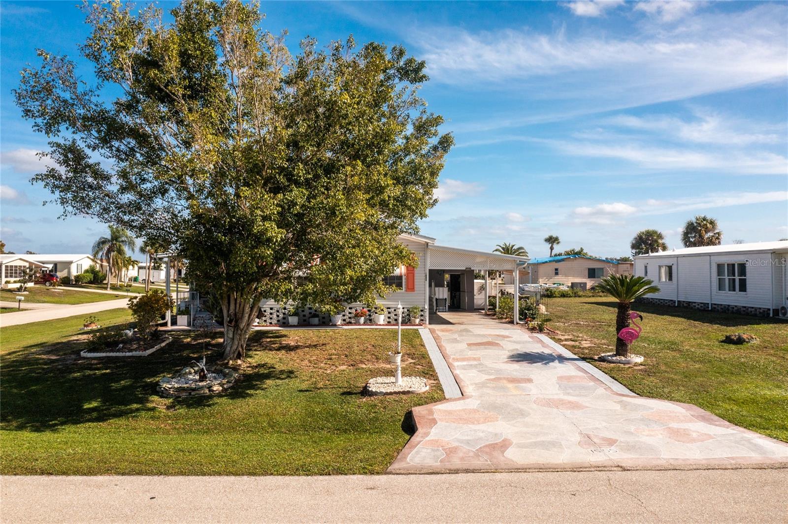 Motivated sellers!! Come see this beautiful, turnkey furnished, spacious home only 3.5 miles from Englewood Beach! Built-in 2005 and meeting more recent hurricane standards than older models, this home was strong during the recent Hurricanes, with minor damage, and all issues have been fixed or replaced. This two-bedroom, two-bath home has a large living room, formal dining, and a peaceful Florida room. The kitchen is comfortable and spacious with nice appliances, a new reverse osmosis water filtering system, a pantry, and an eat-in kitchen area. The formal dining room is large enough for gatherings. The living area has plenty of room to stretch out with windows all around to let in the natural light. The primary bedroom has two closets and a master ensuite featuring two new sinks, new lighting, and an upgraded shower with new drains, done in 2022. The guest bathroom has a new sink, new lighting, a tub/shower, and new shower drains. This home has many features, including new PVC window casing throughout, a covered carport, upgraded outdoor auto lighting, and beautiful newer landscaping with raised garden beds. The roof was re-shingled in November 2022. Central Heat and Air were replaced in 2022. The water heater is less than two years old. The Florida room has a new carpet and a separate entrance with HVAC running throughout. The corner lot is 84' X 110', which gives you extra space and no neighbors on one side. The subflooring is plywood instead of particle board, like others. The Carport has additional storage for the Mower shed. Next to that is the storage, also used as a workshop, which almost always has a nice breeze flowing through, which is lovely for working on projects. The home has water and sewer, but there is also a functioning well. Additional storage is under the house. In the Holiday Mobile Estates 3rd addition 55 plus Community, you own your land by fee-simple and pay no monthly maintenance fees. Golf carts and Pets are welcome. The HOA fee is only $35 a year and includes dinner dances, holiday-themed dances, potlucks, card groups, arts and crafts, and additional activities. For $315 a year, The Edgewater Clubhouse provides access to the heated swimming pool, tennis courts, shuffleboard, pickle ball, bocce ball, and additional outdoor activities. Schedule your appointment today to live in paradise!