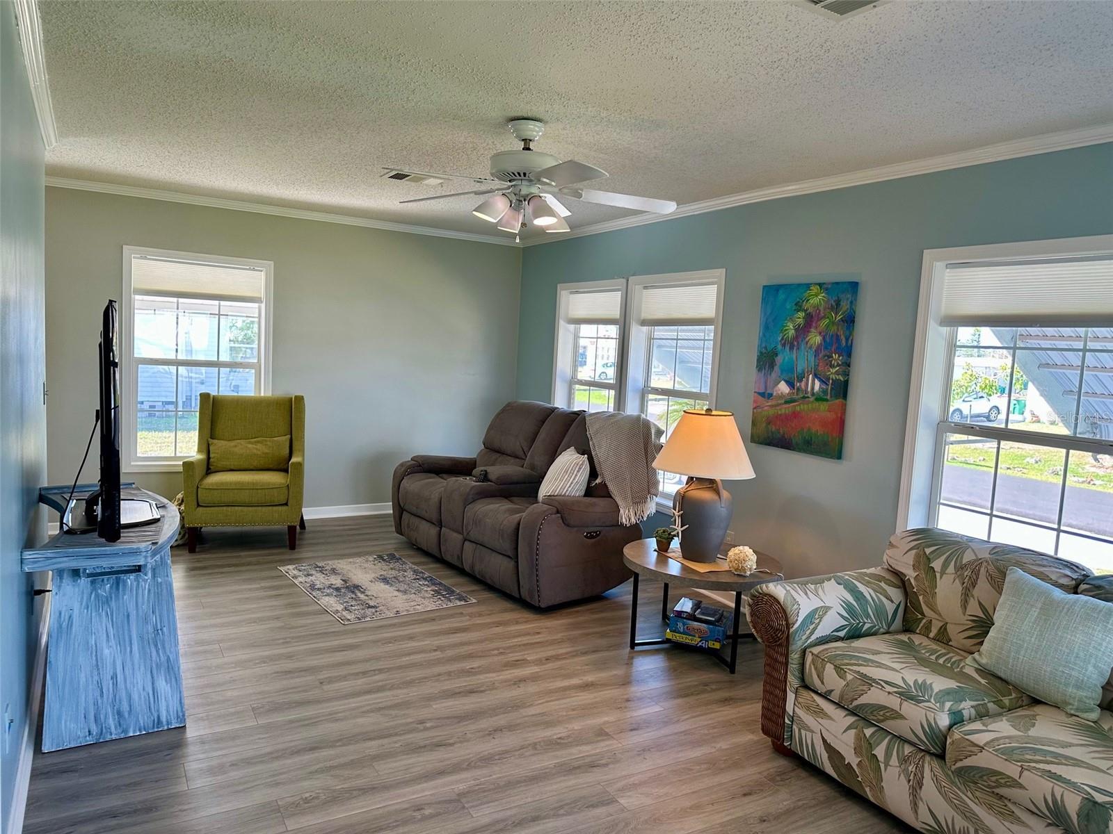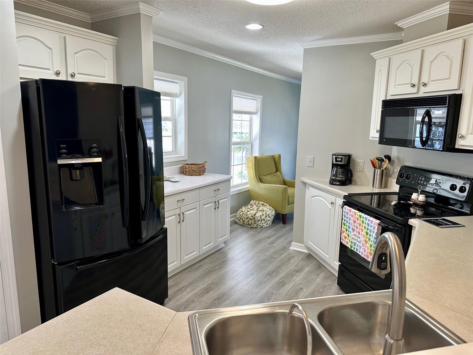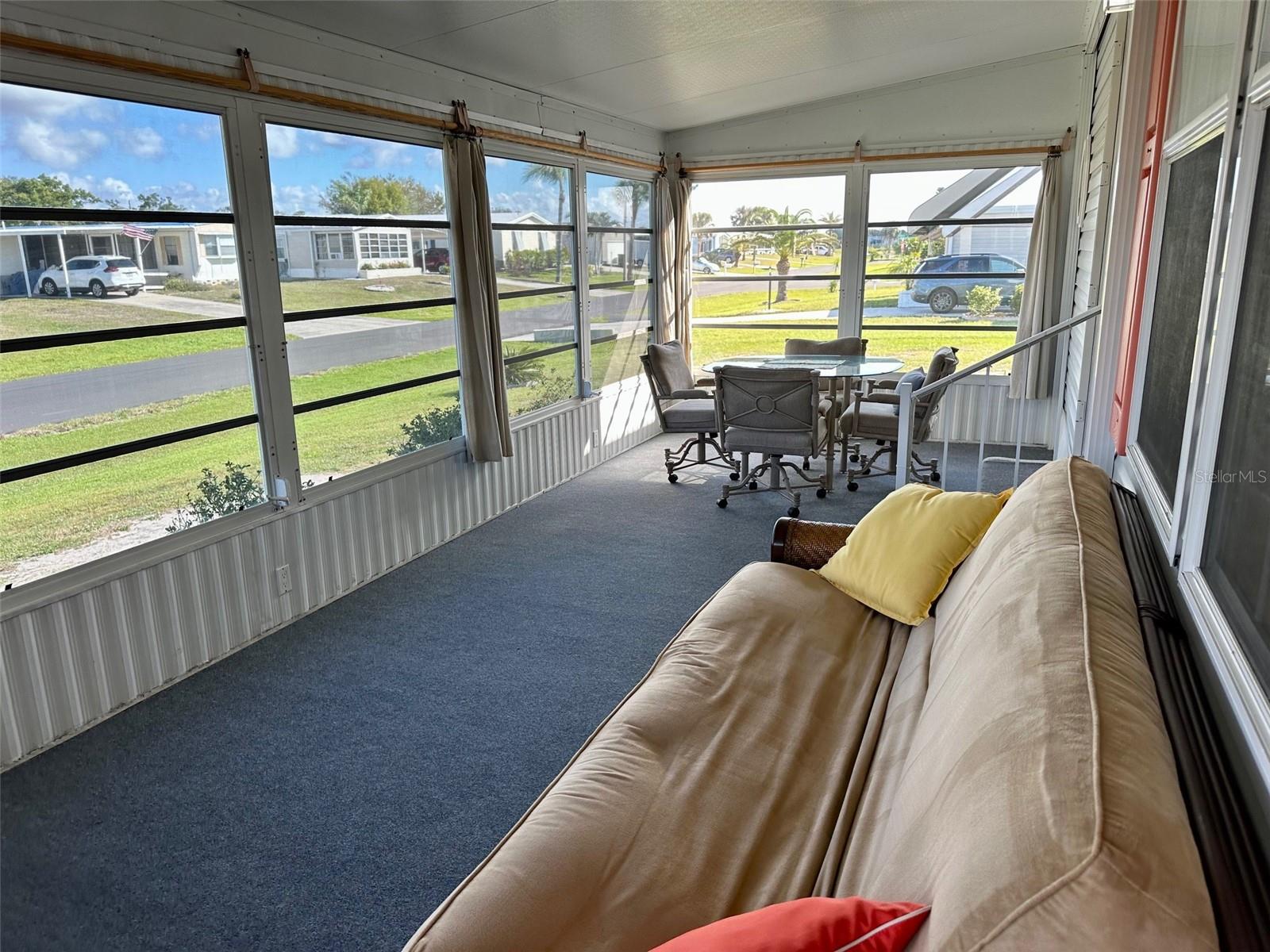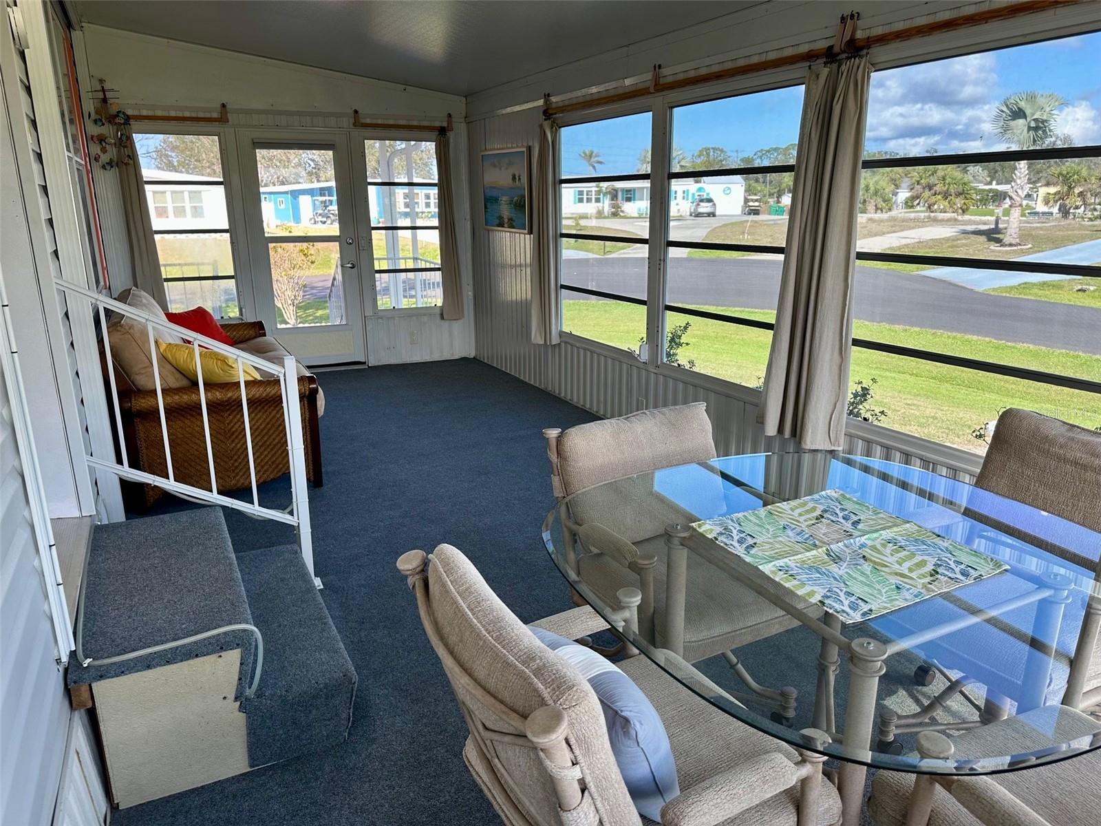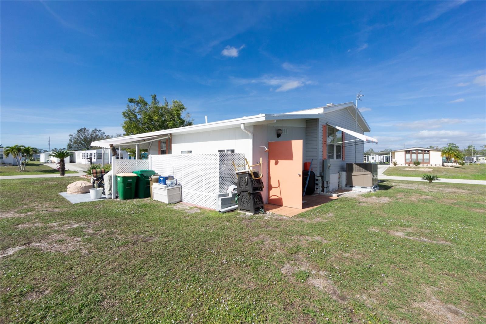 Motivated sellers!! Come see this beautiful, turnkey furnished, spacious home only 3.5 miles from Englewood Beach! Built-in 2005 and meeting more recent hurricane standards than older models, this home was strong during the recent Hurricanes, with minor damage, and all issues have been fixed or replaced. This two-bedroom, two-bath home has a large living room, formal dining, and a peaceful Florida room. The kitchen is comfortable and spacious with nice appliances, a new reverse osmosis water filtering system, a pantry, and an eat-in kitchen area. The formal dining room is large enough for gatherings. The living area has plenty of room to stretch out with windows all around to let in the natural light. The primary bedroom has two closets and a master ensuite featuring two new sinks, new lighting, and an upgraded shower with new drains, done in 2022. The guest bathroom has a new sink, new lighting, a tub/shower, and new shower drains. This home has many features, including new PVC window casing throughout, a covered carport, upgraded outdoor auto lighting, and beautiful newer landscaping with raised garden beds. The roof was re-shingled in November 2022. Central Heat and Air were replaced in 2022. The water heater is less than two years old. The Florida room has a new carpet and a separate entrance with HVAC running throughout. The corner lot is 84' X 110', which gives you extra space and no neighbors on one side. The subflooring is plywood instead of particle board, like others. The Carport has additional storage for the Mower shed. Next to that is the storage, also used as a workshop, which almost always has a nice breeze flowing through, which is lovely for working on projects. The home has water and sewer, but there is also a functioning well. Additional storage is under the house. In the Holiday Mobile Estates 3rd addition 55 plus Community, you own your land by fee-simple and pay no monthly maintenance fees. Golf carts and Pets are welcome. The HOA fee is only $35 a year and includes dinner dances, holiday-themed dances, potlucks, card groups, arts and crafts, and additional activities. For $315 a year, The Edgewater Clubhouse provides access to the heated swimming pool, tennis courts, shuffleboard, pickle ball, bocce ball, and additional outdoor activities. Schedule your appointment today to live in paradise!