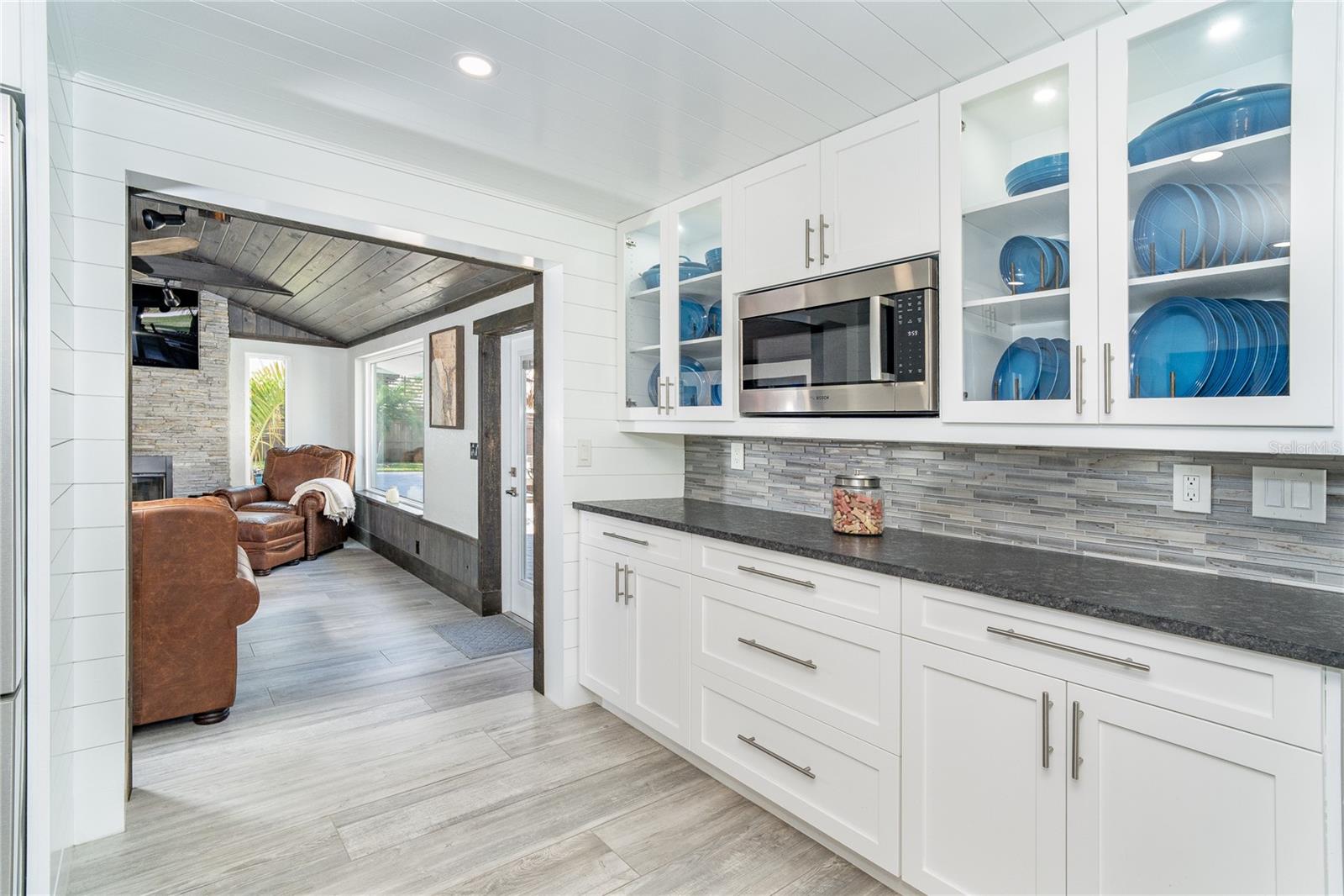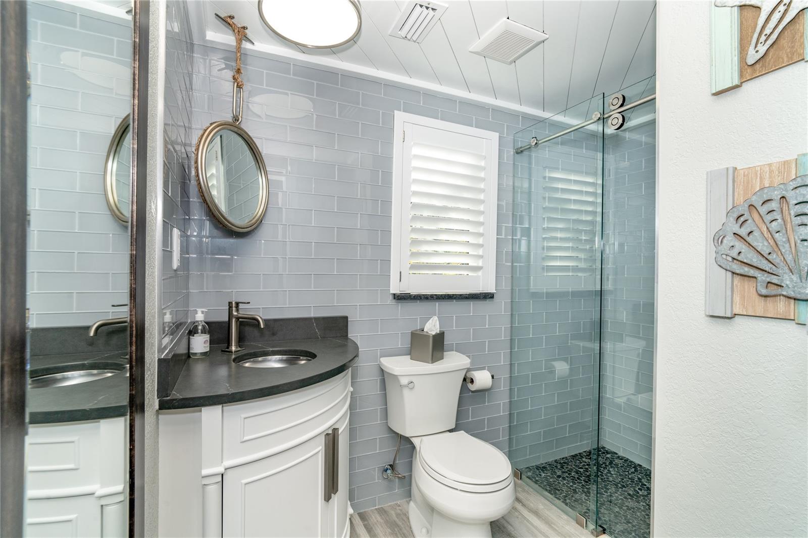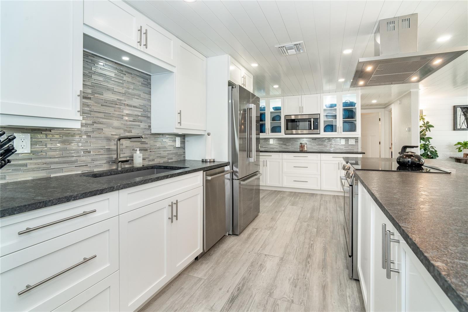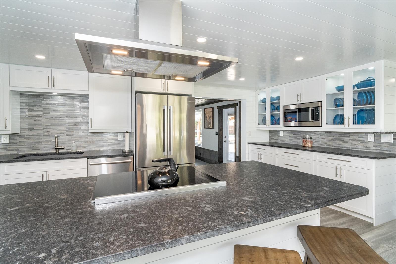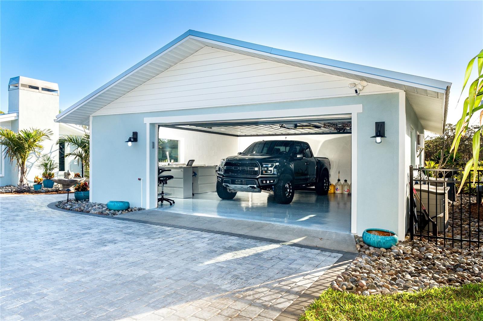 Welcome to an unparalleled sanctuary of luxury upgrades—this extraordinary 3-bedroom, 2-bathroom Florida estate redefines sophistication and leisure, nestled on over half an acre of meticulously landscaped grounds. Crafted for the discerning homeowner, this private retreat boasts an expansive outdoor oasis with three stunning Tiki Huts, perfect for hosting lavish gatherings, unwinding in the serene spa area, or accommodating your recreational toys in style. For peace of mind, this property has never experienced flooding or hurricane damage and is further protected by the nearby Lemon Bay Park. The estate's exquisite outdoor space continues with a detached 25’x25’ garage, featuring an air-conditioned office, granite countertops, and a whole-house attic fan, ensuring year-round comfort. For your convenience, the property also includes a 50-amp RV hookup, and elegantly paved driveways and walkways that weave through the lush tropical landscape. Uncompromising in its attention to detail, this estate offers state-of-the-art HURRICANE IMPACT WINDOWS AND DOORS on both the home and the garage, complemented by stunning landscape lighting, commercial-grade gutters, and a show-stopping 2023 COMMERCIAL GRADE STANDING SEAM ALUMINUM ROOF. The exterior finishes are further elevated by custom smooth stucco, Azek fascia and soffits, and luxurious tropical foliage including foxtail palms, Christmas palms, lime trees, and plumeria. For the ultimate outdoor entertaining experience, a marine-grade kitchen awaits, fully equipped with two beverage refrigerators, a sink, and weather-resistant materials, creating a seamless flow between indoor and outdoor living. Step inside to a world of refined elegance, where every detail has been curated for modern luxury. Porcelain tile floors extend throughout the home, paired with plantation shutters, shiplap walls and ceilings, and bespoke barn doors on all closets. The family room's centerpiece, a stunning Virginia ledgestone wood-burning fireplace, radiates warmth and charm, while the gourmet kitchen is a chef’s dream, featuring top-of-the-line Bosch stainless steel appliances, leather overlay granite countertops, a farmhouse-style stainless steel sink, and custom wood cabinetry. No stone has been left unturned in this estate’s design—from the custom barn doors to the air-conditioned garage that doubles as a functional office space. The fully automated irrigation system ensures your St. Augustine grass and tropical gardens remain lush year-round. Additionally, the estate’s "X" flood zone designation offers peace of mind for both the home and detached garage. Whether you're basking under the tranquil Tiki Huts, soaking in the spa, or hosting lavish outdoor soirées, this extraordinary estate is a masterpiece of elegance, privacy, and natural beauty. Truly a one-of-a-kind Florida oasis, it offers a lifestyle defined by comfort, grandeur, and thoughtful craftsmanship at every turn. This fabulous location offers convenient access to Downtown Englewood and Dearborn Street, just 5 minutes from the pristine beaches and a short walk to the scenic Lemon Bay Park. Leave the car at home and cruise around in your street-legal golf cart, exploring all the wonderful spots in our charming community.