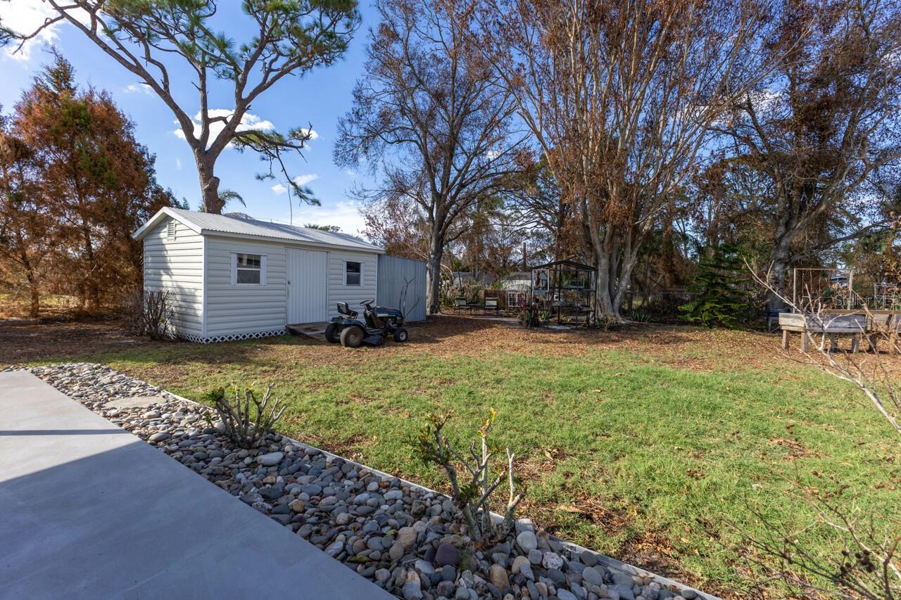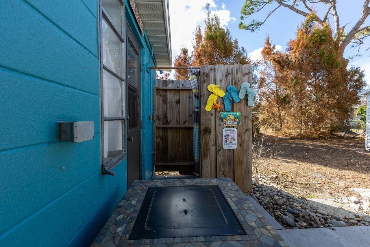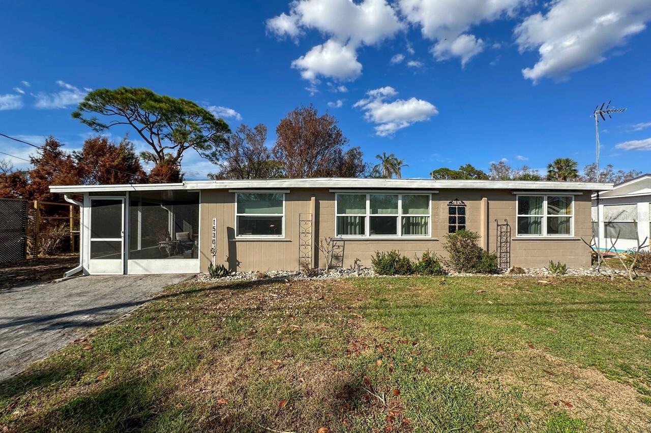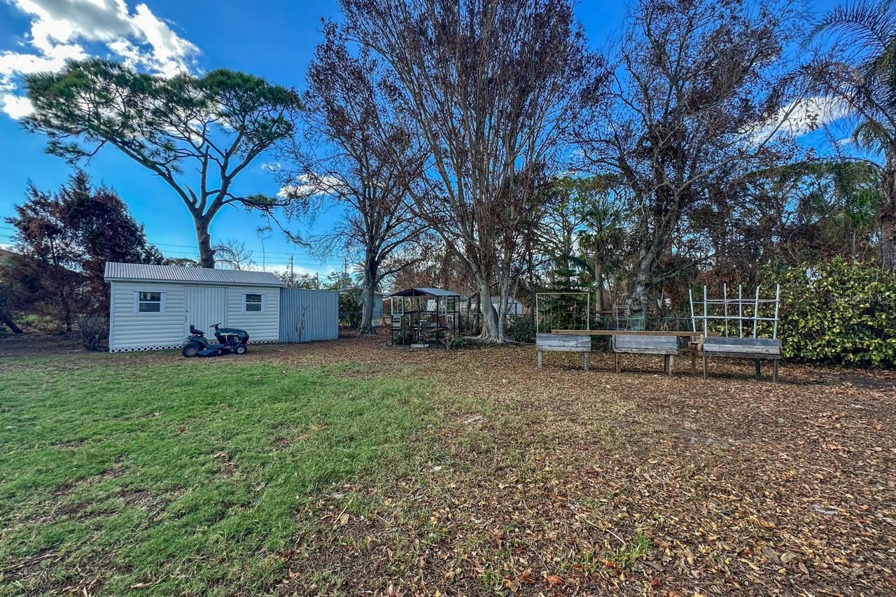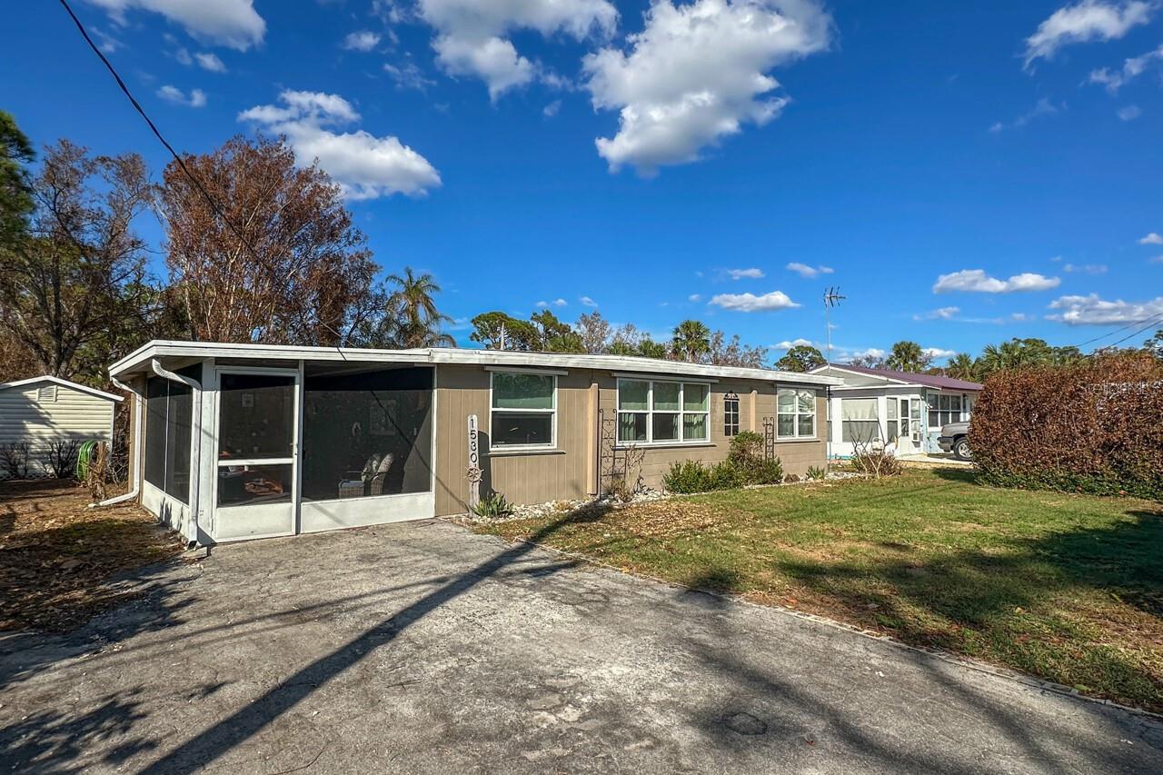 This beach cottage, meticulously maintained and boasting numerous custom upgrades, is conveniently located near Englewood Beach. The enhancements include a multi-zoned A/C mini-split system for individual room temperature control, a new roof installed in 2022 with a 25-year transferable warranty, custom wood cabinetry, and hurricane shutters for the entire home. Additionally, it features a new on-demand hot water system, an upgraded kitchen and bathroom with tile flooring throughout. The washer, dryer, and dishwasher have all been updated as of 2024. The home exudes character with its exposed wood ceiling beams, solid wood interior doors, and a private outdoor hot and cold shower, encapsulating that old Florida charm. It offers an oversized, covered outdoor living space at both the front and rear, suitable for all seasons. The expansive lot provides ample space for entertainment, storage, or potential expansion. A metal shed, included with the home, serves as additional storage or a studio space.