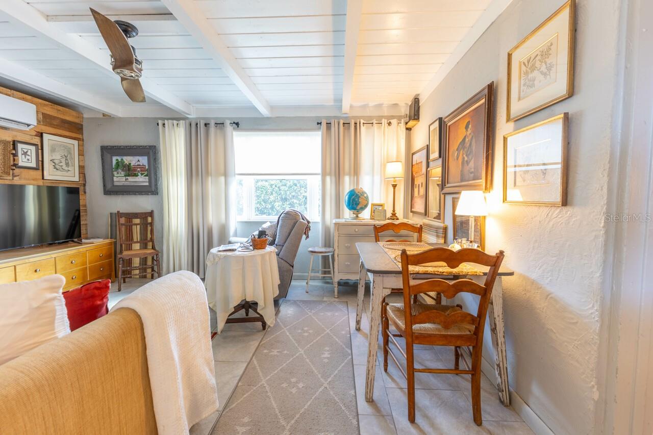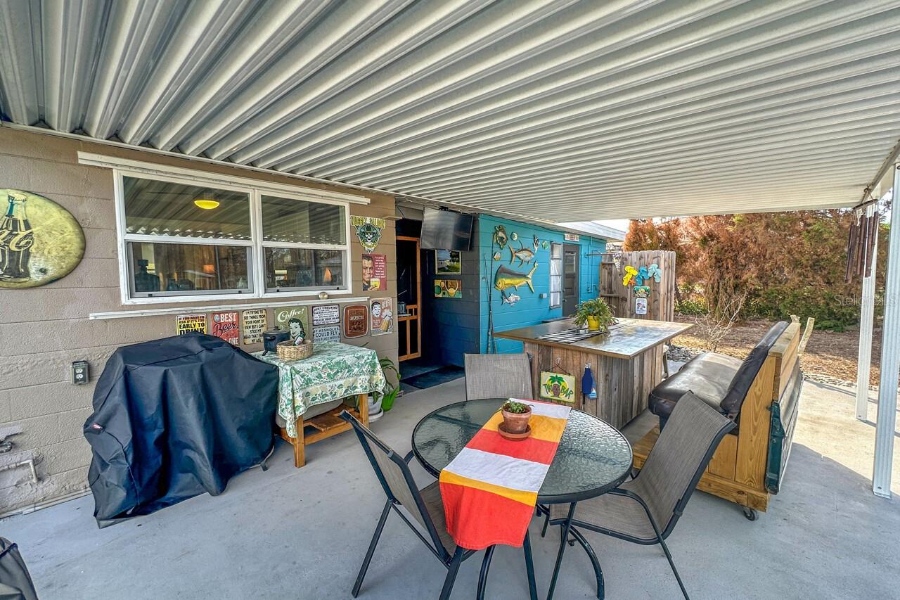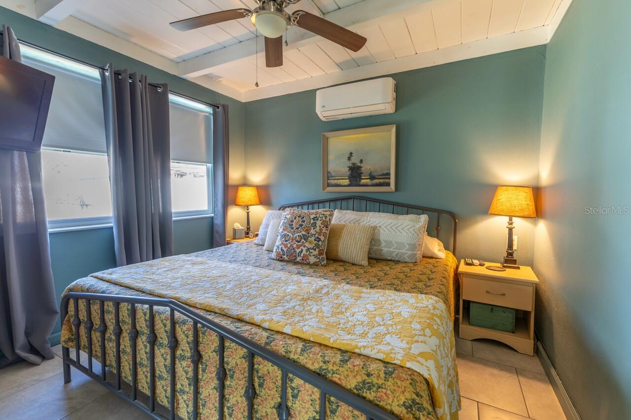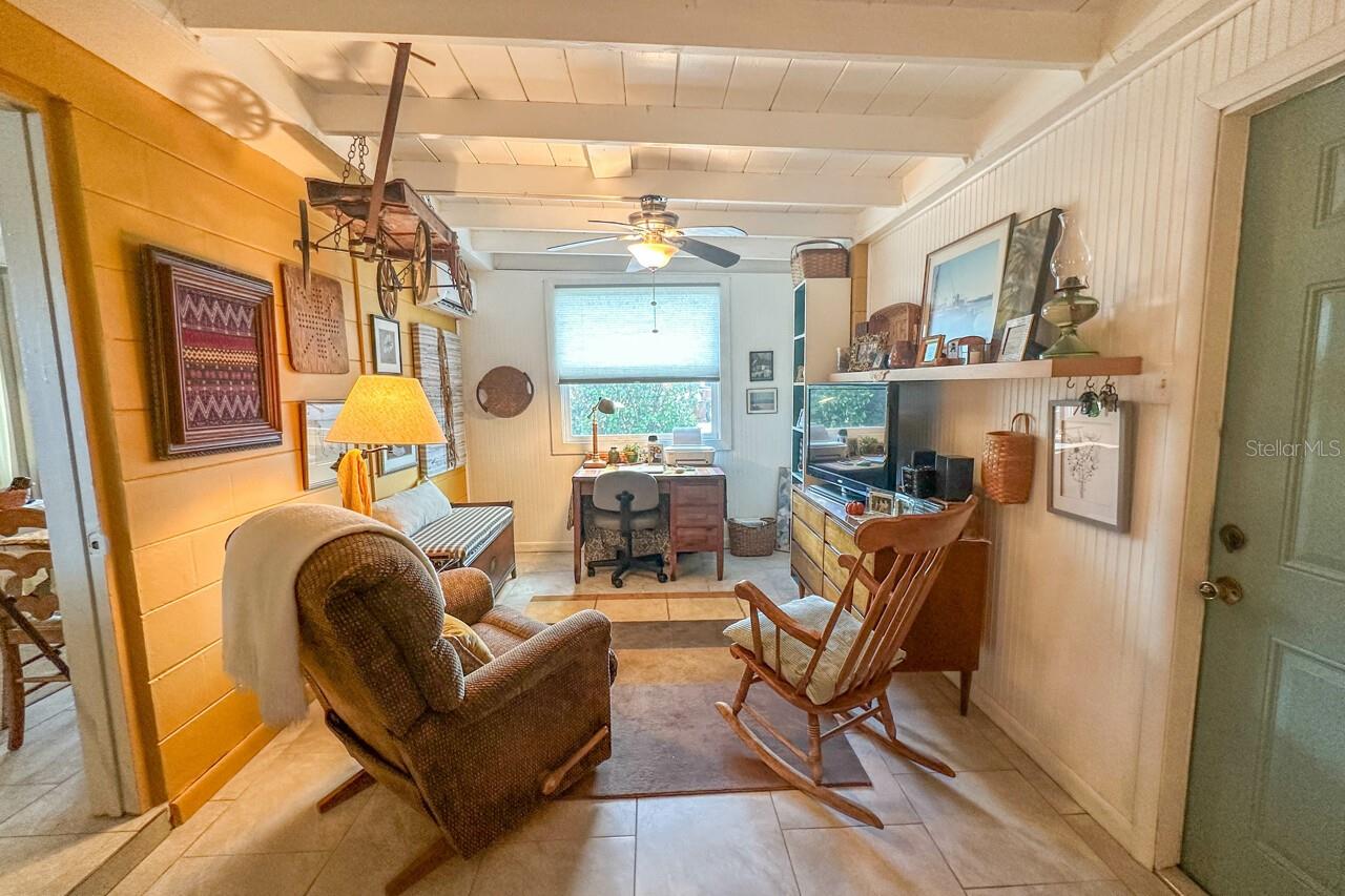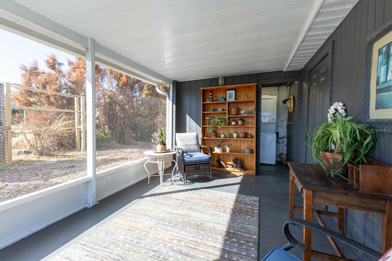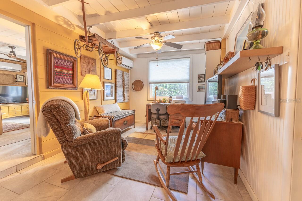 This beach cottage, meticulously maintained and boasting numerous custom upgrades, is conveniently located near Englewood Beach. The enhancements include a multi-zoned A/C mini-split system for individual room temperature control, a new roof installed in 2022 with a 25-year transferable warranty, custom wood cabinetry, and hurricane shutters for the entire home. Additionally, it features a new on-demand hot water system, an upgraded kitchen and bathroom with tile flooring throughout. The washer, dryer, and dishwasher have all been updated as of 2024. The home exudes character with its exposed wood ceiling beams, solid wood interior doors, and a private outdoor hot and cold shower, encapsulating that old Florida charm. It offers an oversized, covered outdoor living space at both the front and rear, suitable for all seasons. The expansive lot provides ample space for entertainment, storage, or potential expansion. A metal shed, included with the home, serves as additional storage or a studio space.
