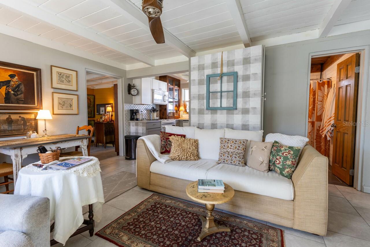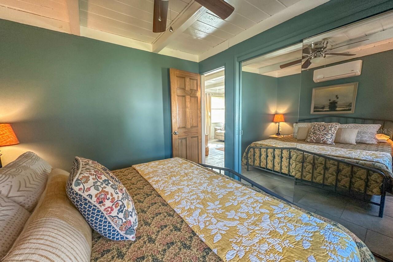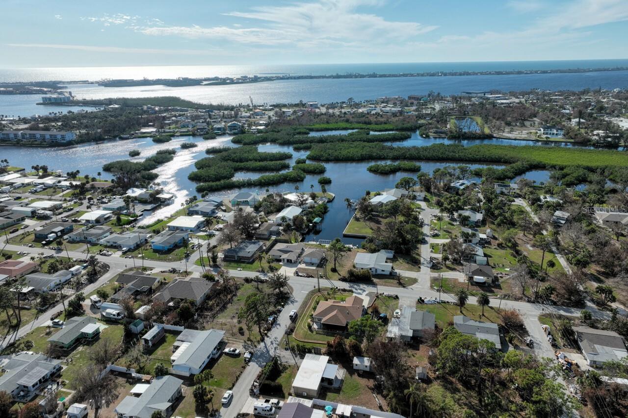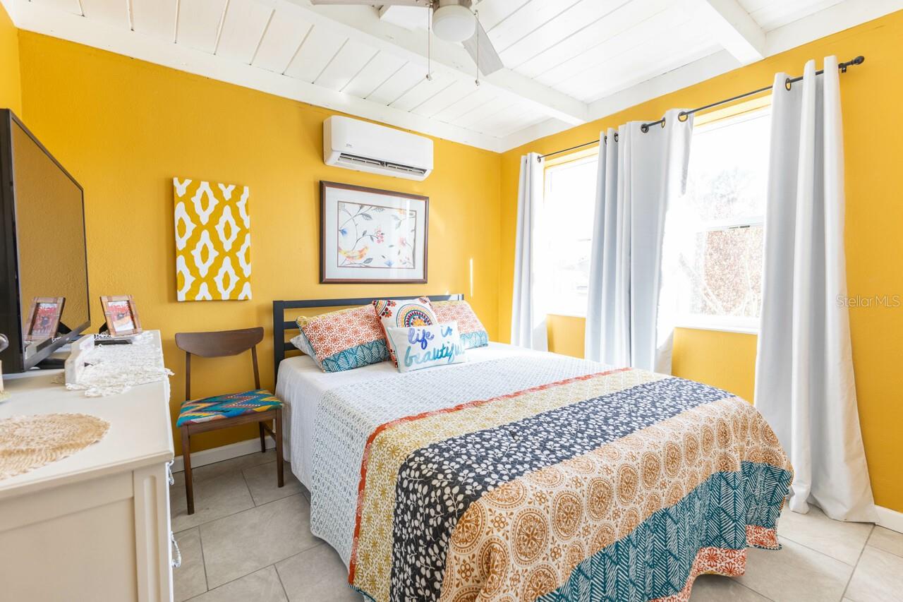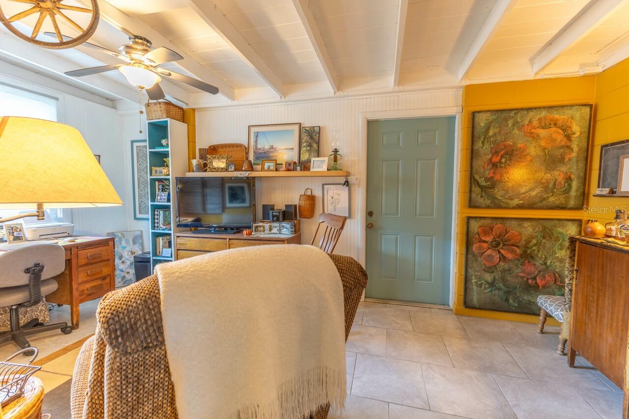 This beach cottage, meticulously maintained and boasting numerous custom upgrades, is conveniently located near Englewood Beach. The enhancements include a multi-zoned A/C mini-split system for individual room temperature control, a new roof installed in 2022 with a 25-year transferable warranty, custom wood cabinetry, and hurricane shutters for the entire home. Additionally, it features a new on-demand hot water system, an upgraded kitchen and bathroom with tile flooring throughout. The washer, dryer, and dishwasher have all been updated as of 2024. The home exudes character with its exposed wood ceiling beams, solid wood interior doors, and a private outdoor hot and cold shower, encapsulating that old Florida charm. It offers an oversized, covered outdoor living space at both the front and rear, suitable for all seasons. The expansive lot provides ample space for entertainment, storage, or potential expansion. A metal shed, included with the home, serves as additional storage or a studio space.