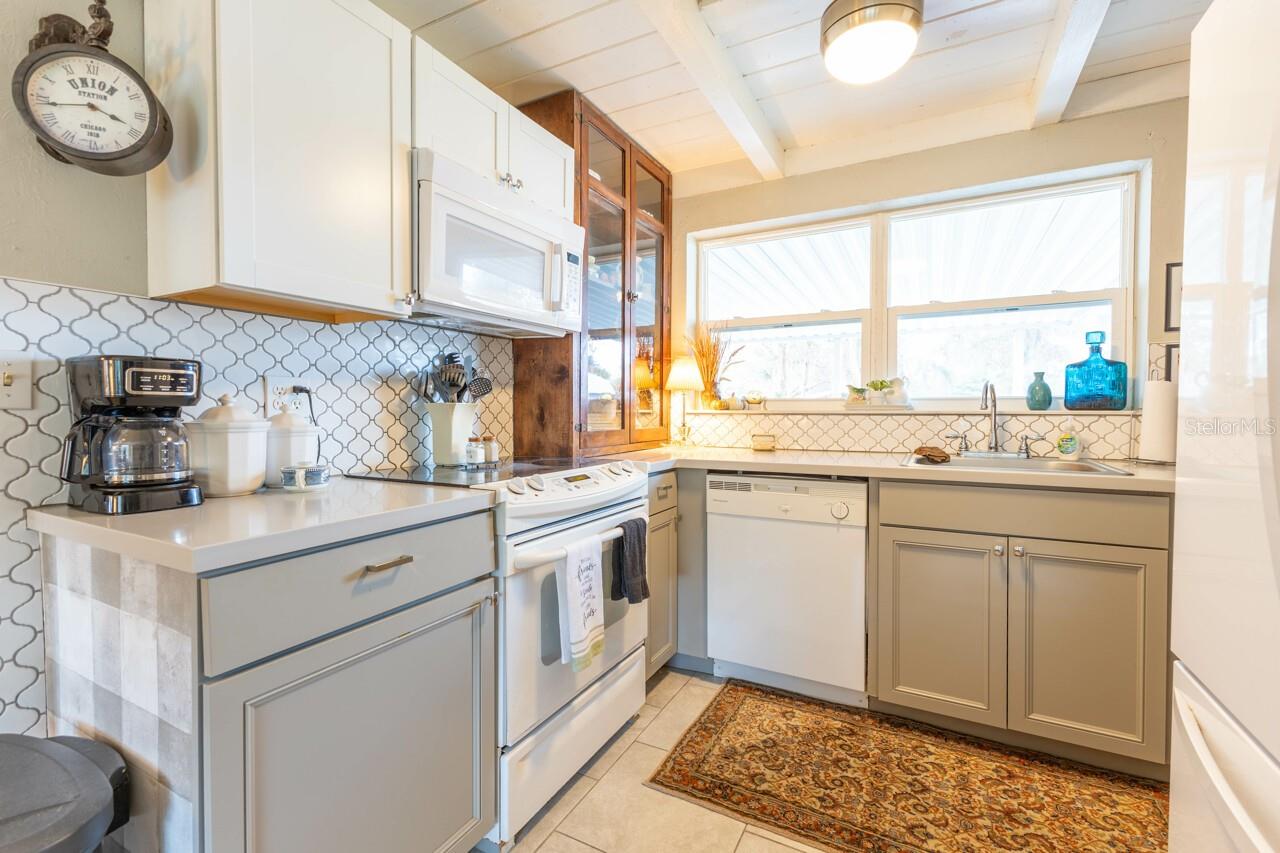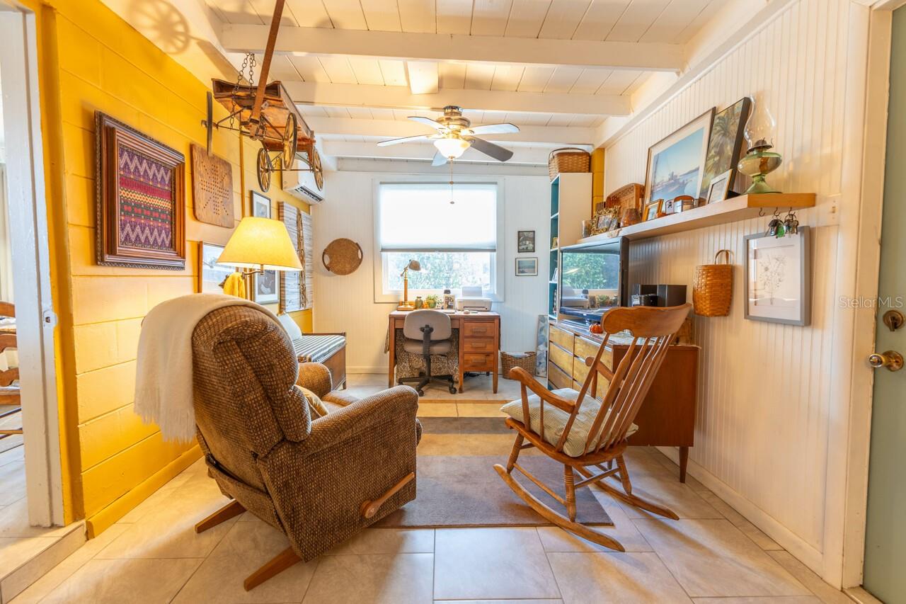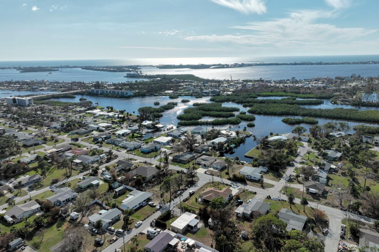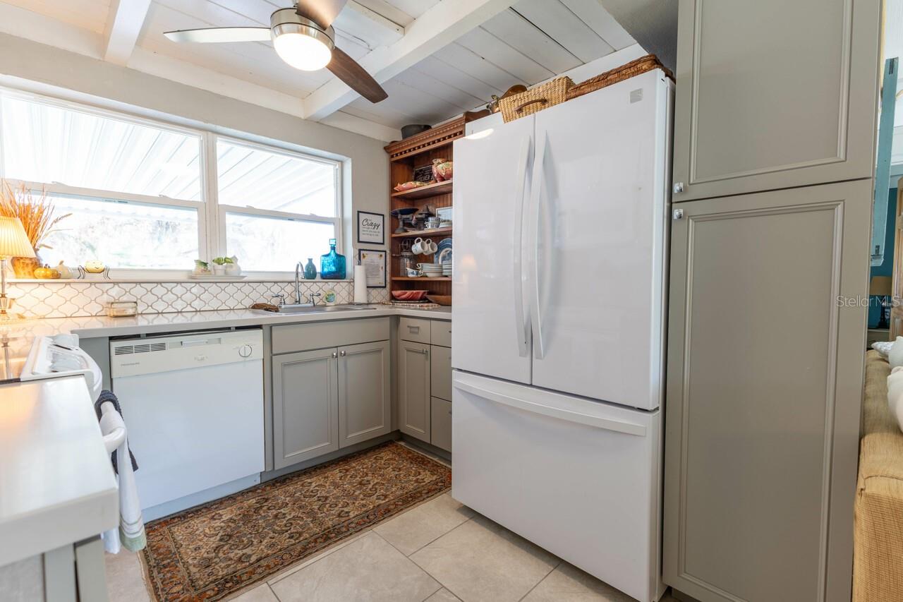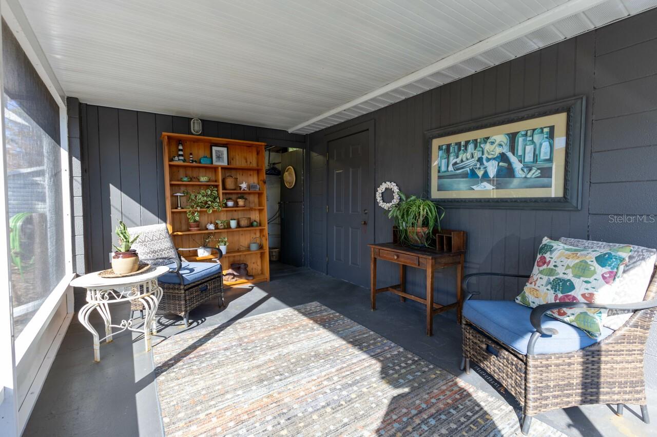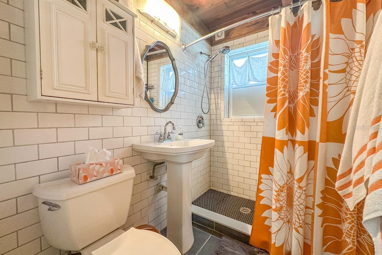 This beach cottage, meticulously maintained and boasting numerous custom upgrades, is conveniently located near Englewood Beach. The enhancements include a multi-zoned A/C mini-split system for individual room temperature control, a new roof installed in 2022 with a 25-year transferable warranty, custom wood cabinetry, and hurricane shutters for the entire home. Additionally, it features a new on-demand hot water system, an upgraded kitchen and bathroom with tile flooring throughout. The washer, dryer, and dishwasher have all been updated as of 2024. The home exudes character with its exposed wood ceiling beams, solid wood interior doors, and a private outdoor hot and cold shower, encapsulating that old Florida charm. It offers an oversized, covered outdoor living space at both the front and rear, suitable for all seasons. The expansive lot provides ample space for entertainment, storage, or potential expansion. A metal shed, included with the home, serves as additional storage or a studio space.