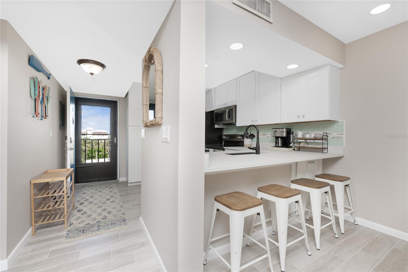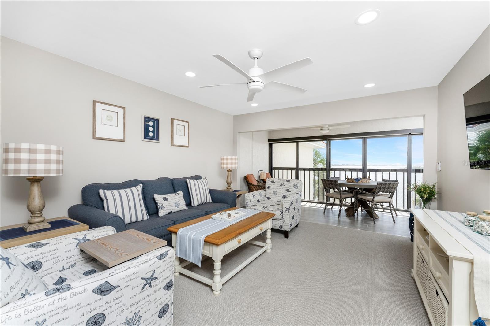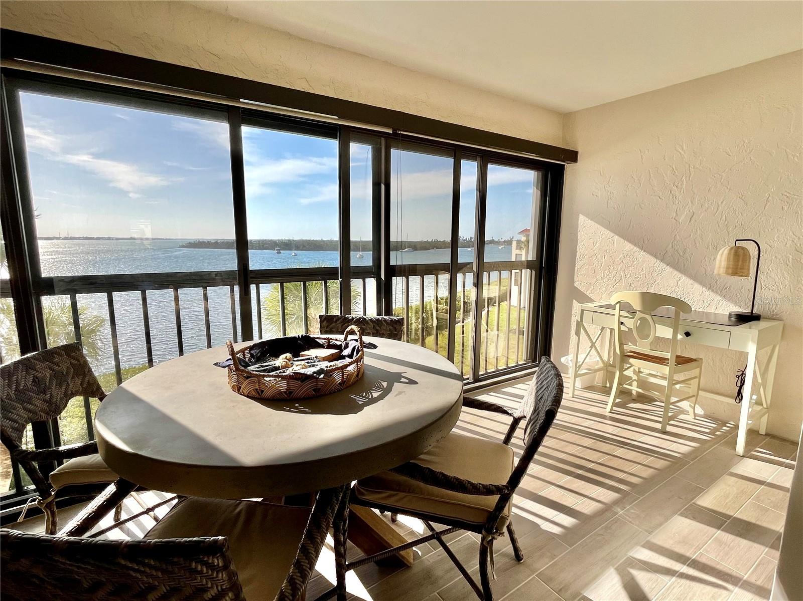Welcome to SANDPIPER KEY CONDOMINIUMS, a beautifully maintained 215-unit community located on Sandpiper Key, in Englewood, Florida. You must see this FULLY UPDATED TOP-FLOOR TURNKEY FURNISHED unit with breathtaking view of the Intra-coastal waterway and Lemon Bay. This 2Bed/2Bath condo residence includes beautiful plank tile in the kitchen and air-conditioned Florida room. The kitchen is sure to impress, with sleek shaker-style cabinets, quartz countertops, tile backsplash, stainless-steel appliances and recessed LED lighting. The spacious breakfast bar flows seamlessly into the dining and living areas. Just beyond, the interior Florida room lets in an abundance of natural light and is a great place to sit and watch the boats pass by or observe the wildlife that graces the area. The primary bedroom suite offers a water view and includes a walk-in closet, a laundry closet with an oversized washer/dryer, and a gorgeous en-suite bathroom with separate sink vanities. The Guest Bathroom has been fully updated with new tub, wall tile, vanity and lighting. *New electrical panel. No damage from recent storms in the unit. Common areas are currently undergoing the replacement of storage units, parking lot clean up, etc. Residents in Sandpiper Key are all assigned a designated, covered parking space and storage room under their building. This community also offers elevators, two heated bayfront pools and a clubhouse for social gatherings. Englewood Beach, Restaurants & Shopping are within walking or biking distance. Escape the snow and enjoy the laid-back lifestyle of island living in this beautifully maintained condo community!