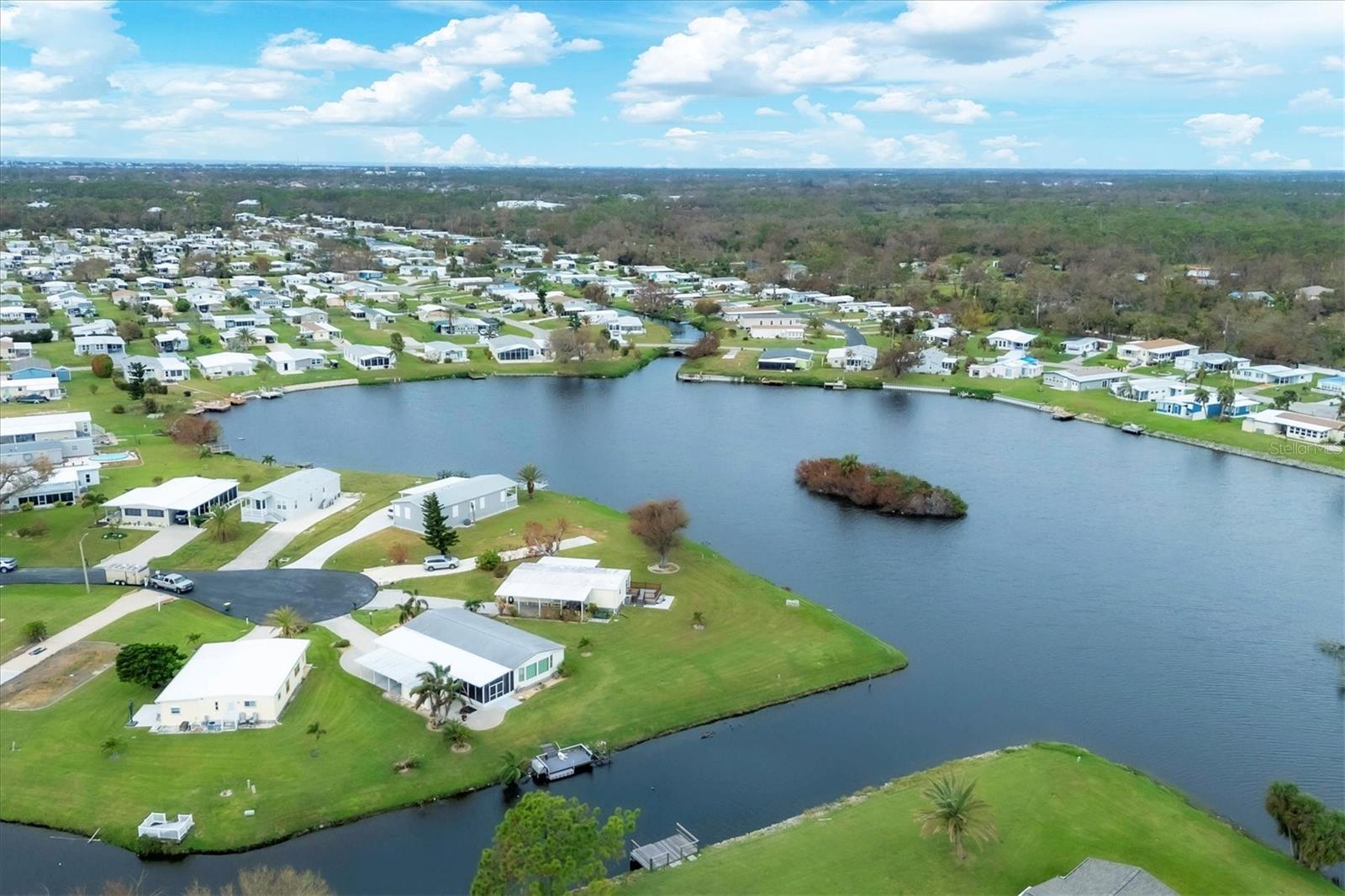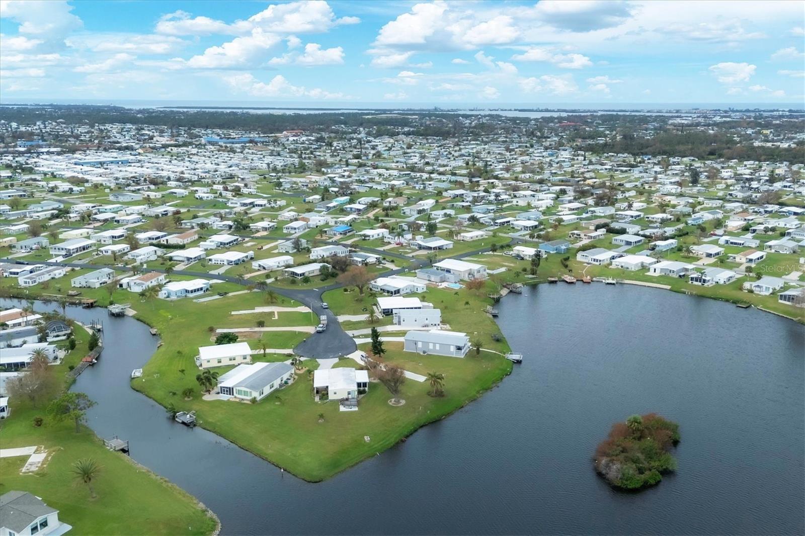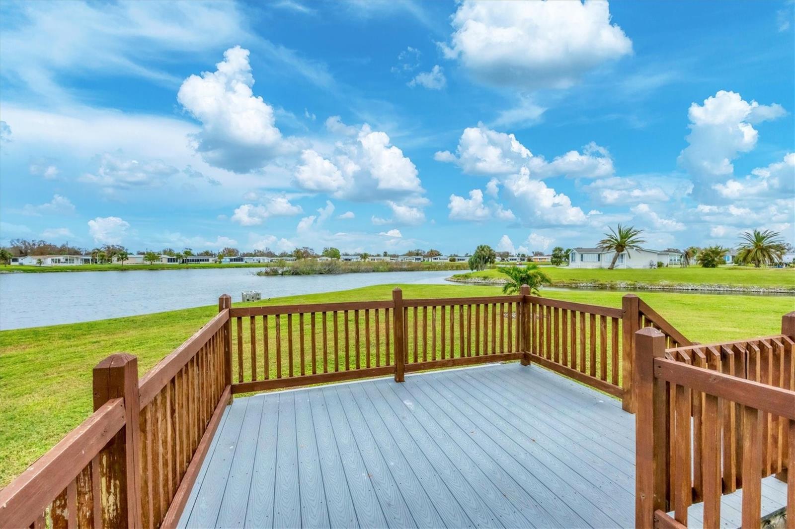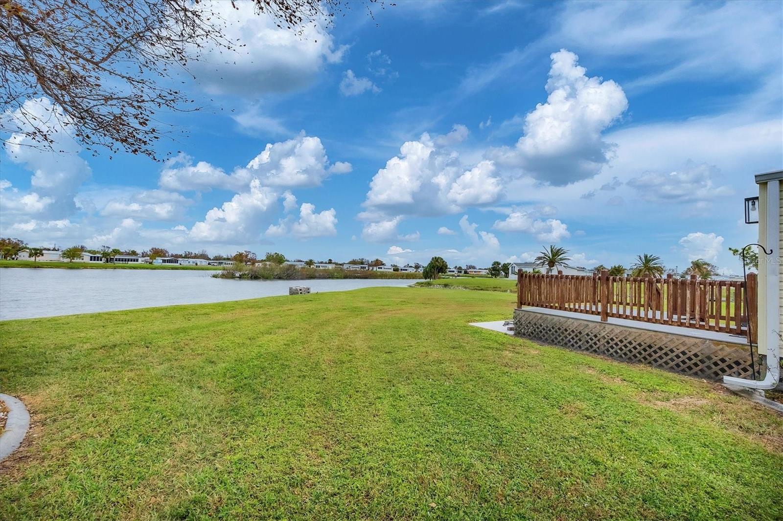 Come see this beautiful waterfront home roughly 3.5 miles from Englewood Beach! The home suffered zero damage from hurricanes Helene and Milton. This home was also high and dry with no flooding during either storm. This home is a two-bedroom, two-bath home with a large living room, formal dining, and a peaceful New Florida Room completed this year to current hurricane codes. Enjoy morning coffee or evening cocktails while enjoying the expansive water views overlooking bird island. The kitchen is designed with a flat cook top, plenty of cabinets, decorative backsplash with stainless steel appliances. The dining room is located off the kitchen with access to the living room making it perfect for family gatherings. The living area is 18 x 14 giving you plenty of room to stretch out with windows all around to let in the natural light. The Primary Bedroom has beautiful views of the lake, built in desk / make-up counter with a large closet. The primary bathroom has dual sinks and a enclosed shower with grab bars. Bedroom Two is 12 x 11 with fan light combo. This home has many features, including a finished Florida Room with a few furnishings staying, new vapor barrier installed under the entire home, irrigation from the lake, New Covered Carport built in 2024 to current hurricane standards. The oversized waterfront lot has roughly 169 feet on the lake, which gives you incredible water views. Nature Lovers Paradise with water birds and song birds of all kinds on Bird Island. The home has water and sewer with an irrigation pump to water from the lake. Home comes partially furnished as well making it an easy transition for the new owners. In the Holiday Mobile Estates 3rd addition 55 plus Community, you own your land by fee-simple. Golf carts and Pets are welcome. The HOA fee is only $35 a year. For $300 per year, The Edgewater Clubhouse gets you access to the heated swimming pool, tennis courts, shuffleboard, pickle ball, bocce ball, and additional outdoor activities. Secure Your Piece of Paradise Today.