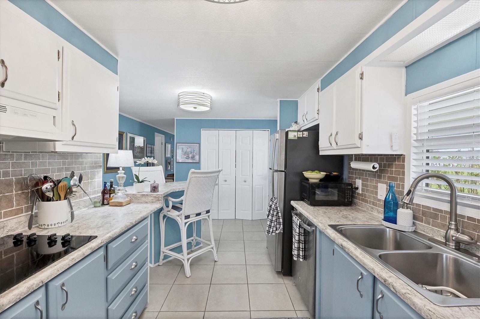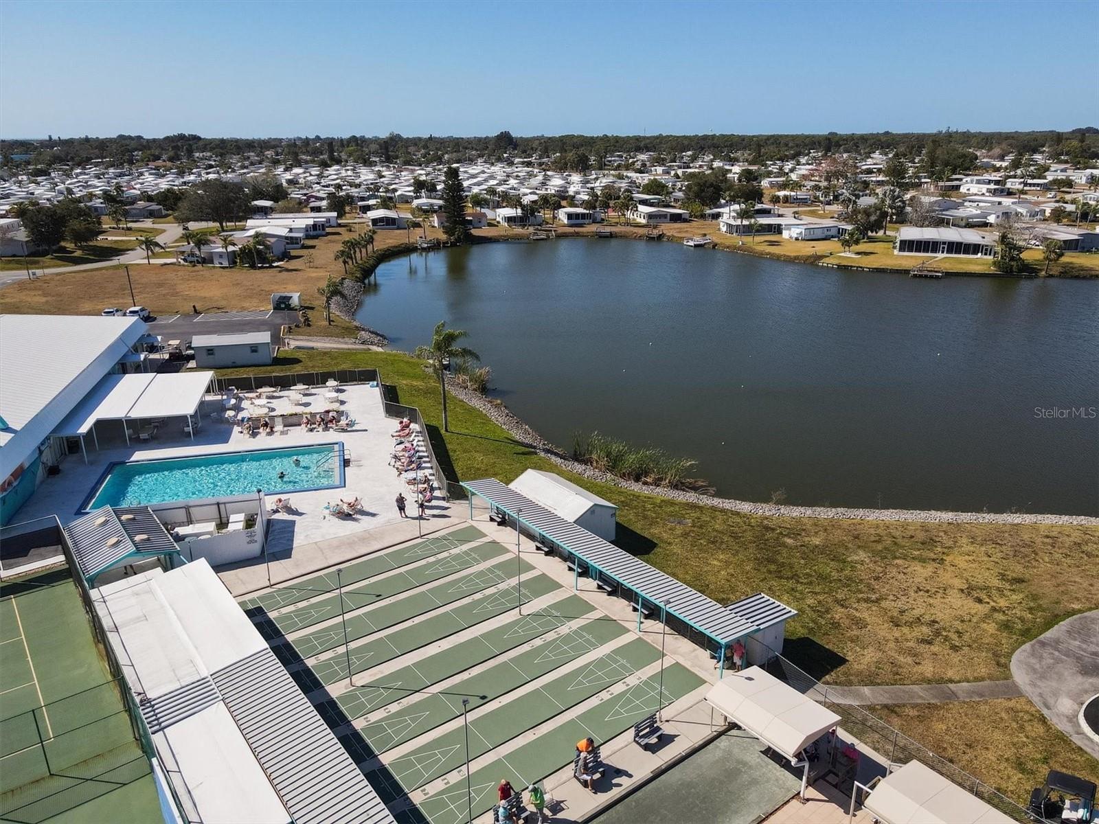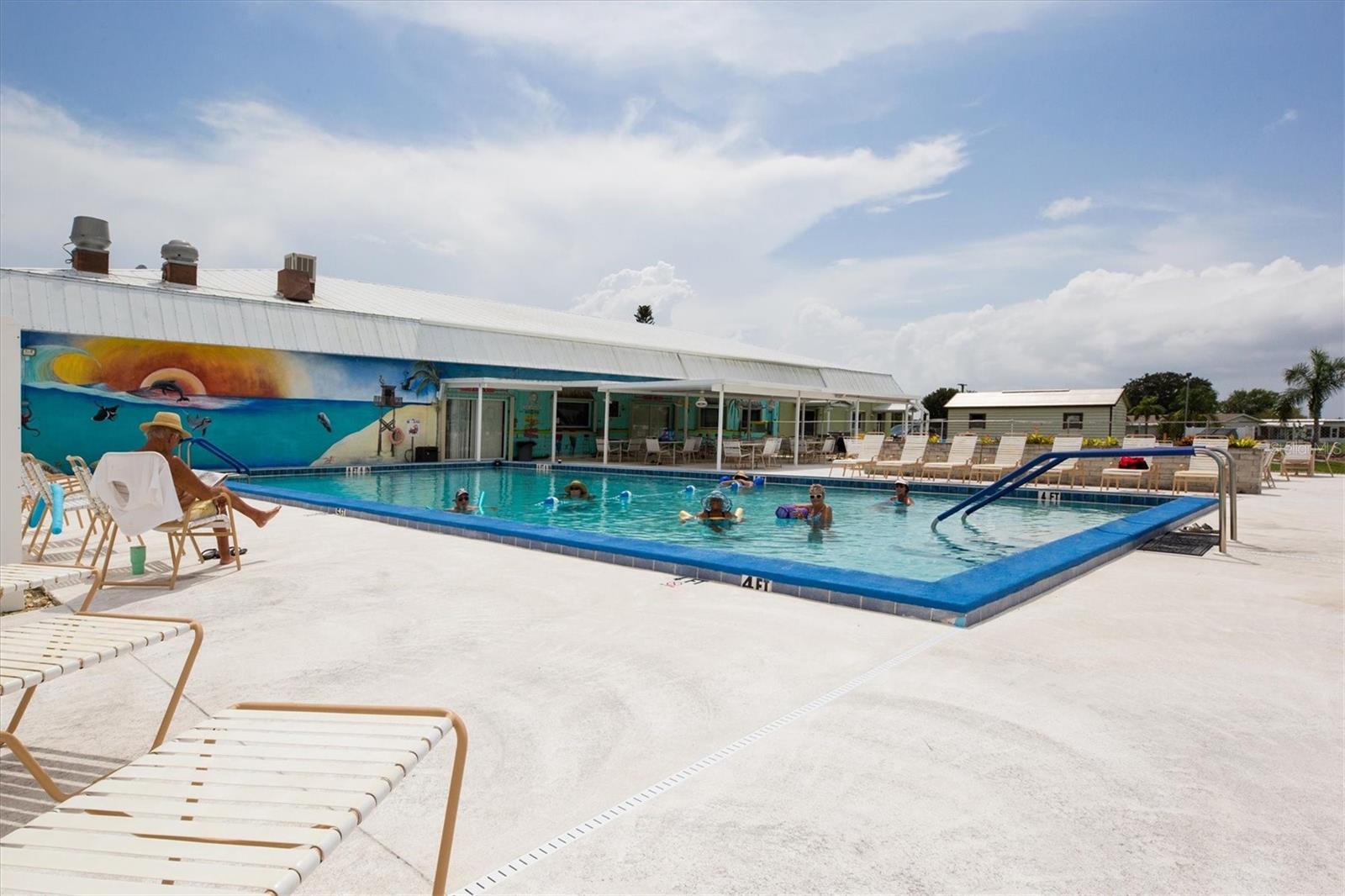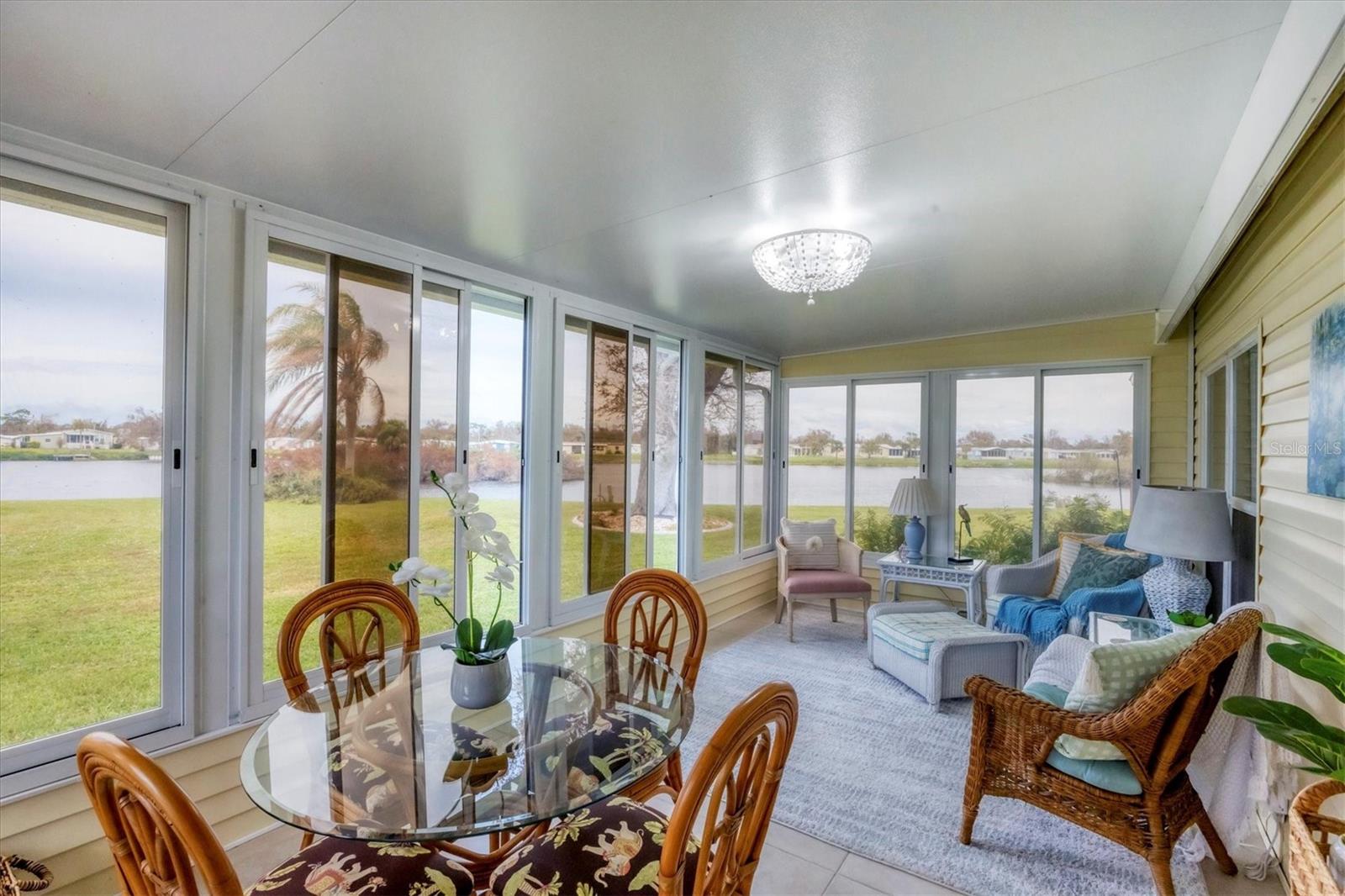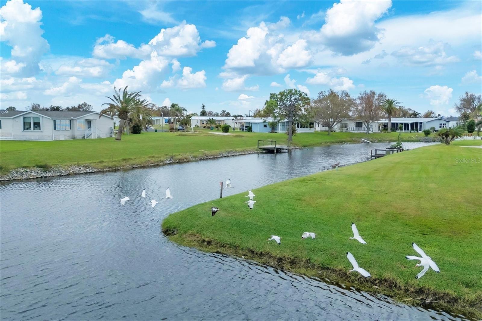 Come see this beautiful waterfront home roughly 3.5 miles from Englewood Beach! The home suffered zero damage from hurricanes Helene and Milton. This home was also high and dry with no flooding during either storm. This home is a two-bedroom, two-bath home with a large living room, formal dining, and a peaceful New Florida Room completed this year to current hurricane codes. Enjoy morning coffee or evening cocktails while enjoying the expansive water views overlooking bird island. The kitchen is designed with a flat cook top, plenty of cabinets, decorative backsplash with stainless steel appliances. The dining room is located off the kitchen with access to the living room making it perfect for family gatherings. The living area is 18 x 14 giving you plenty of room to stretch out with windows all around to let in the natural light. The Primary Bedroom has beautiful views of the lake, built in desk / make-up counter with a large closet. The primary bathroom has dual sinks and a enclosed shower with grab bars. Bedroom Two is 12 x 11 with fan light combo. This home has many features, including a finished Florida Room with a few furnishings staying, new vapor barrier installed under the entire home, irrigation from the lake, New Covered Carport built in 2024 to current hurricane standards. The oversized waterfront lot has roughly 169 feet on the lake, which gives you incredible water views. Nature Lovers Paradise with water birds and song birds of all kinds on Bird Island. The home has water and sewer with an irrigation pump to water from the lake. Home comes partially furnished as well making it an easy transition for the new owners. In the Holiday Mobile Estates 3rd addition 55 plus Community, you own your land by fee-simple. Golf carts and Pets are welcome. The HOA fee is only $35 a year. For $300 per year, The Edgewater Clubhouse gets you access to the heated swimming pool, tennis courts, shuffleboard, pickle ball, bocce ball, and additional outdoor activities. Secure Your Piece of Paradise Today.