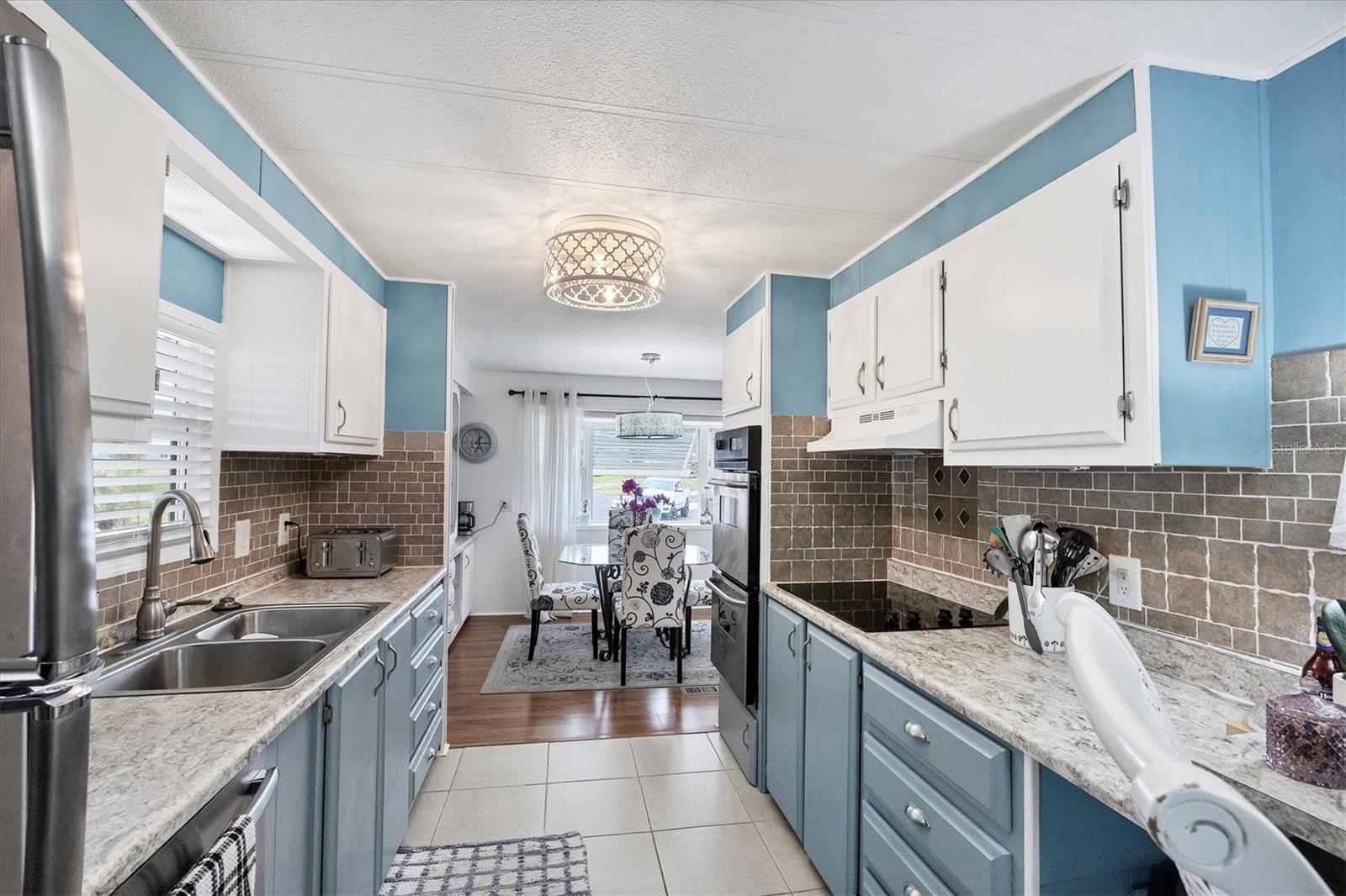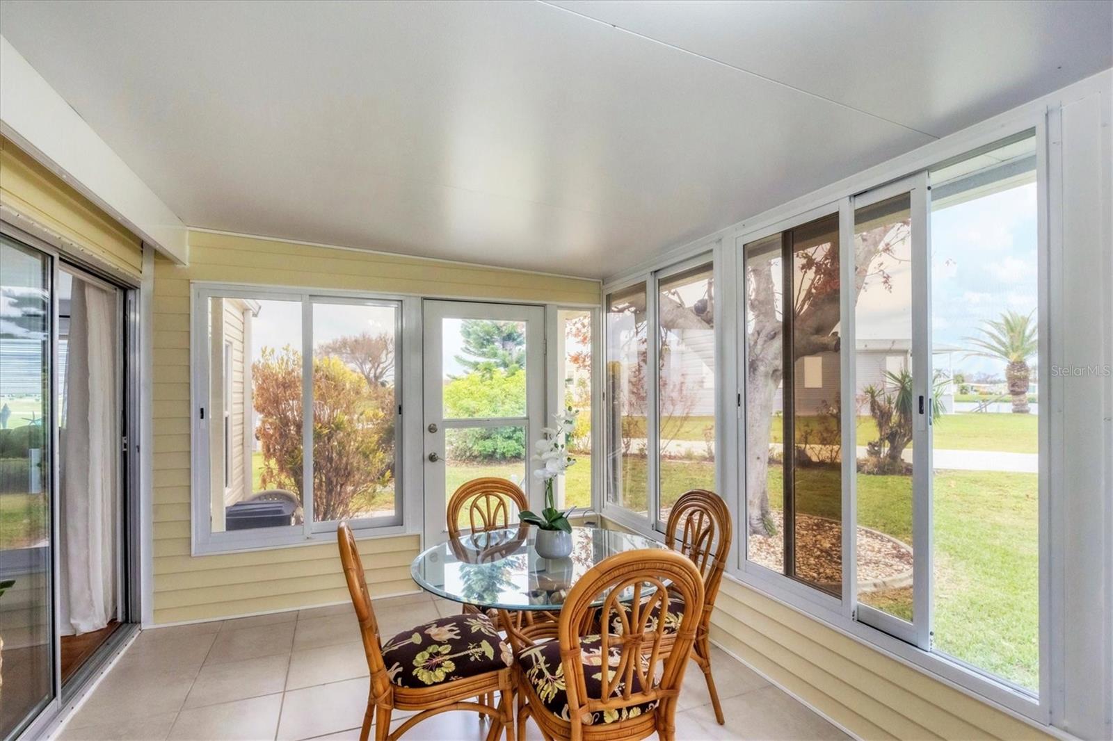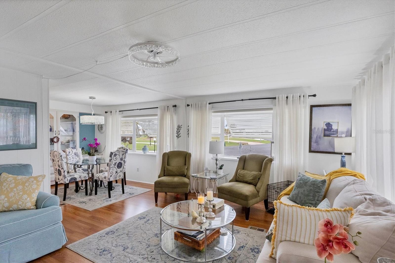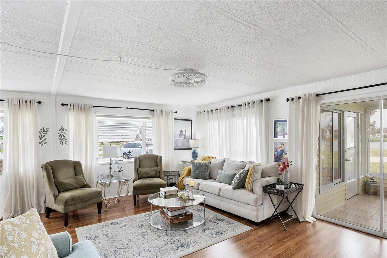 Come see this beautiful waterfront home roughly 3.5 miles from Englewood Beach! The home suffered zero damage from hurricanes Helene and Milton. This home was also high and dry with no flooding during either storm. This home is a two-bedroom, two-bath home with a large living room, formal dining, and a peaceful New Florida Room completed this year to current hurricane codes. Enjoy morning coffee or evening cocktails while enjoying the expansive water views overlooking bird island. The kitchen is designed with a flat cook top, plenty of cabinets, decorative backsplash with stainless steel appliances. The dining room is located off the kitchen with access to the living room making it perfect for family gatherings. The living area is 18 x 14 giving you plenty of room to stretch out with windows all around to let in the natural light. The Primary Bedroom has beautiful views of the lake, built in desk / make-up counter with a large closet. The primary bathroom has dual sinks and a enclosed shower with grab bars. Bedroom Two is 12 x 11 with fan light combo. This home has many features, including a finished Florida Room with a few furnishings staying, new vapor barrier installed under the entire home, irrigation from the lake, New Covered Carport built in 2024 to current hurricane standards. The oversized waterfront lot has roughly 169 feet on the lake, which gives you incredible water views. Nature Lovers Paradise with water birds and song birds of all kinds on Bird Island. The home has water and sewer with an irrigation pump to water from the lake. Home comes partially furnished as well making it an easy transition for the new owners. In the Holiday Mobile Estates 3rd addition 55 plus Community, you own your land by fee-simple. Golf carts and Pets are welcome. The HOA fee is only $35 a year. For $300 per year, The Edgewater Clubhouse gets you access to the heated swimming pool, tennis courts, shuffleboard, pickle ball, bocce ball, and additional outdoor activities. Secure Your Piece of Paradise Today.