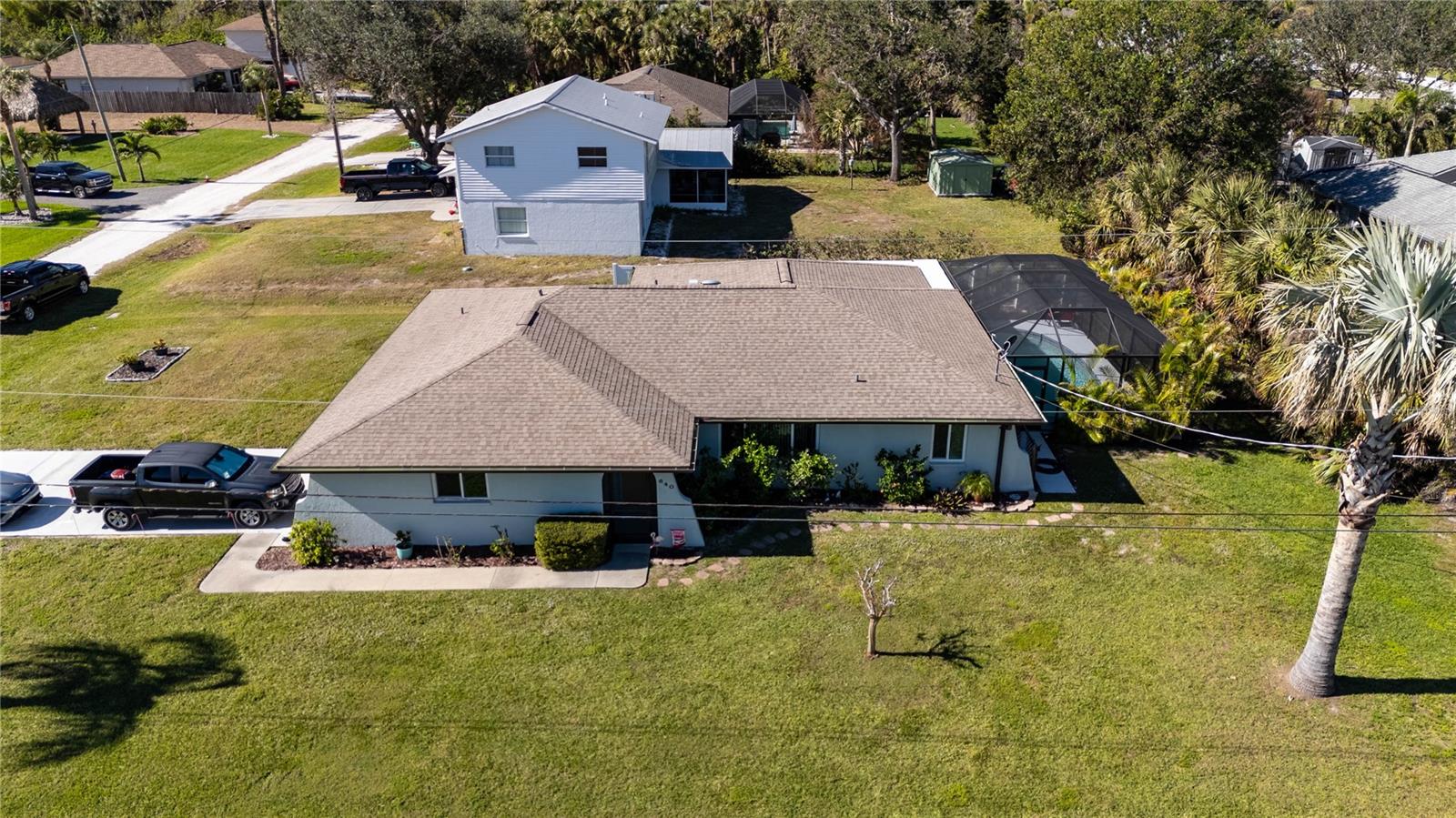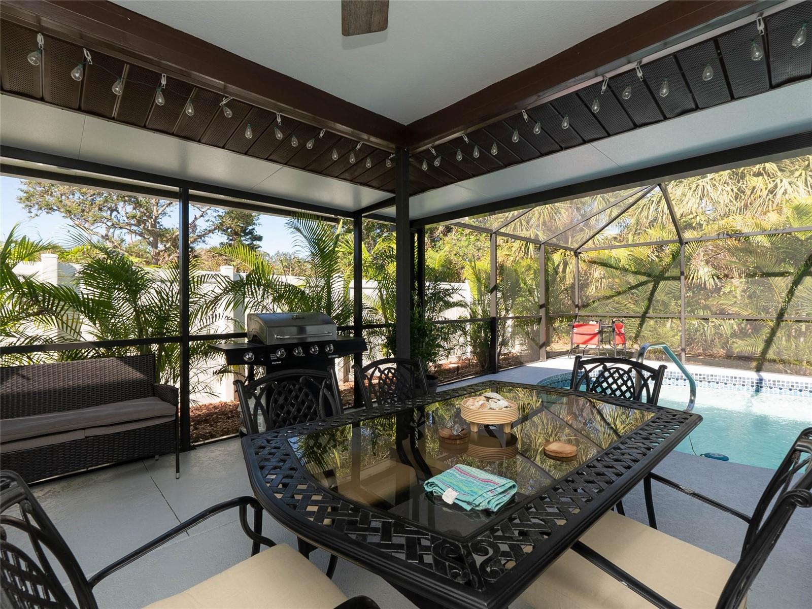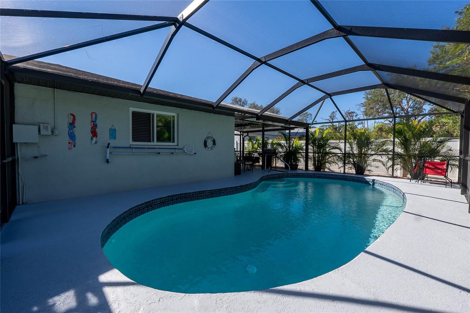 You will love this quiet peaceful location with a new price. Just a short walk or bike ride to Lemon Bay Environmental Park and Lemon Bay! This split floor plan three bedroom home, located on an over sized lot, features many upgrades, including an updated kitchen with stainless steel appliances and granite counter tops. Ceramic tile floors in every room except the second bedroom (vinyl). No carpet to replace. New roof in August of 2018. New water heater, hurricane windows amd hurricane rated garage door, which will give you a discount on your insurance premium! New A/C in 2018. New pool cage in 2023, and a brand new driveway. Also, a newer electric panel. If you are purchasing with financing, no flood insurance required! Many furniture items are available by separate contract. Homes in this highly sought after neighborhood are rarely available, so make your showing appointment before it is gone!